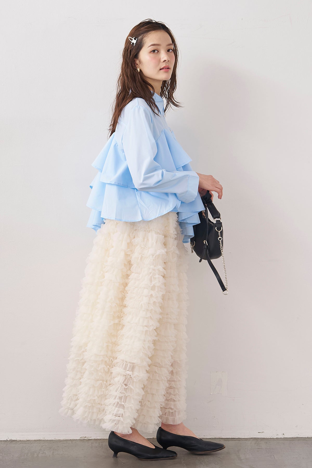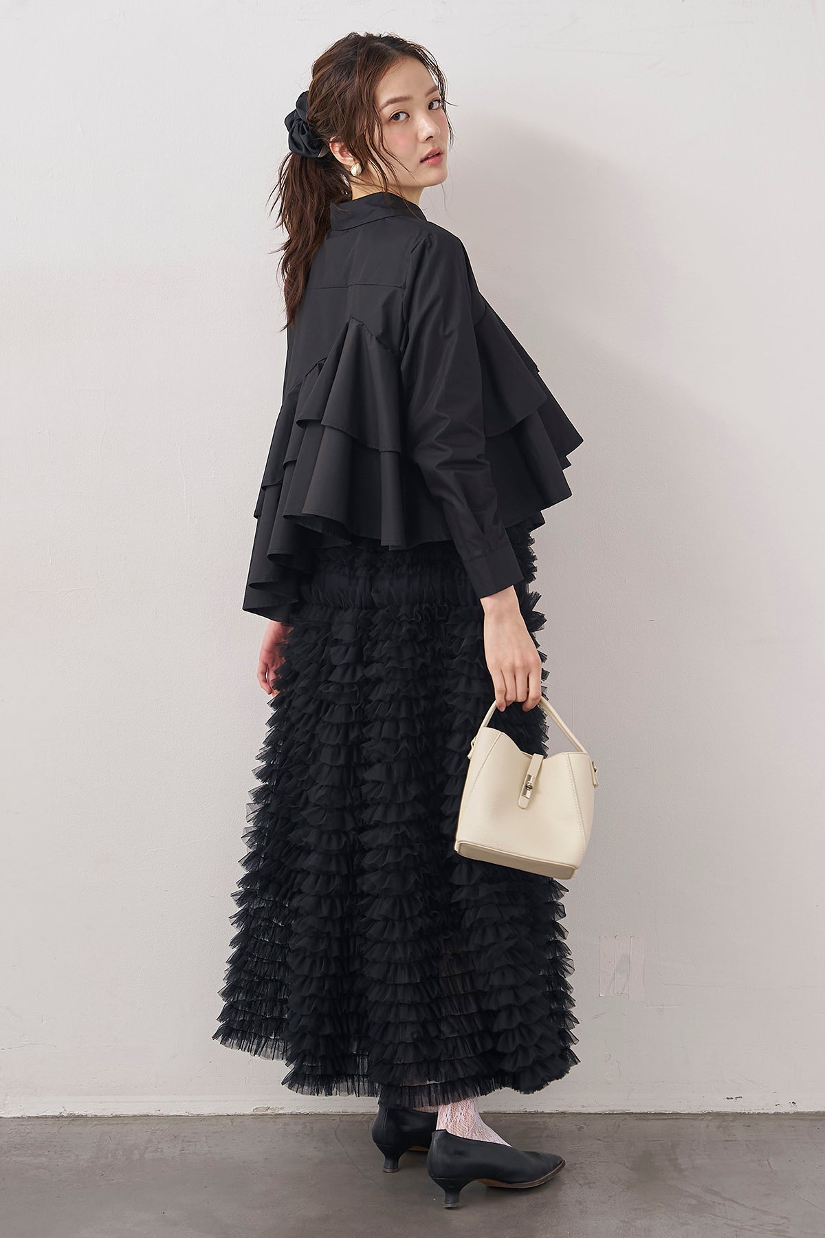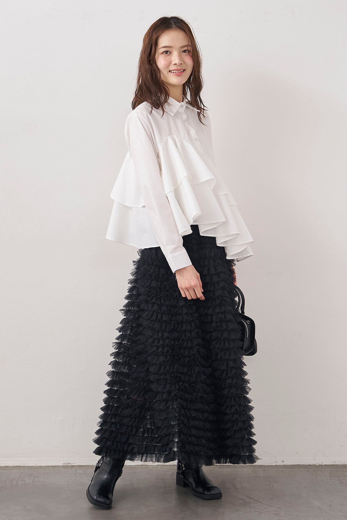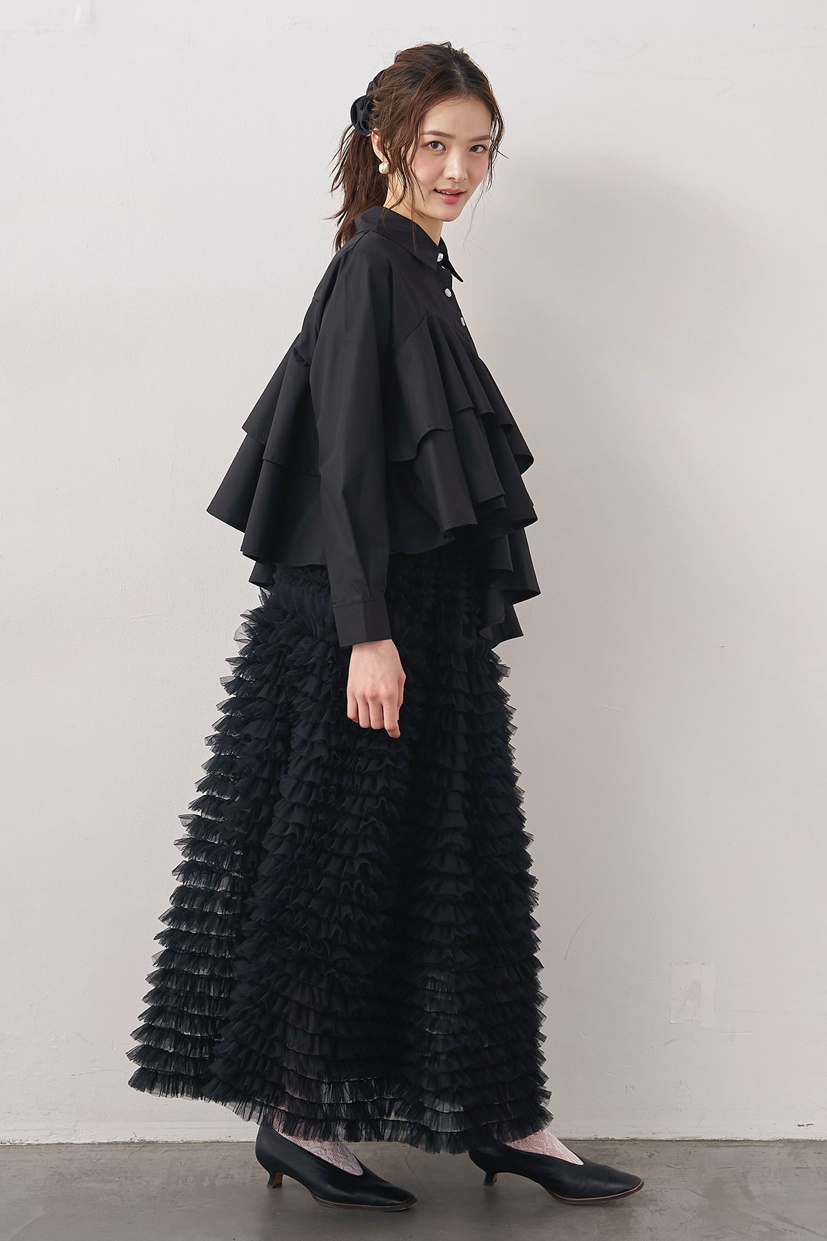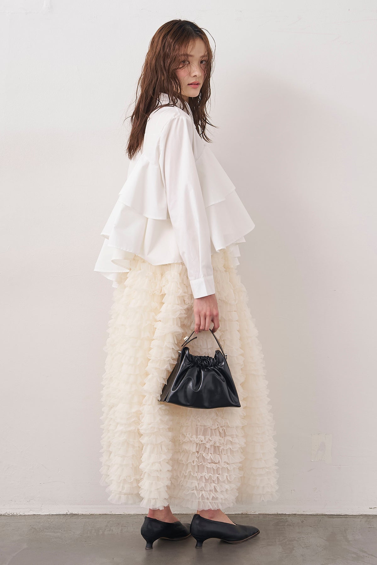 [予約/SET]アシメフリルティアードシャツ+ホイップチュールティアードスカート(2set)
