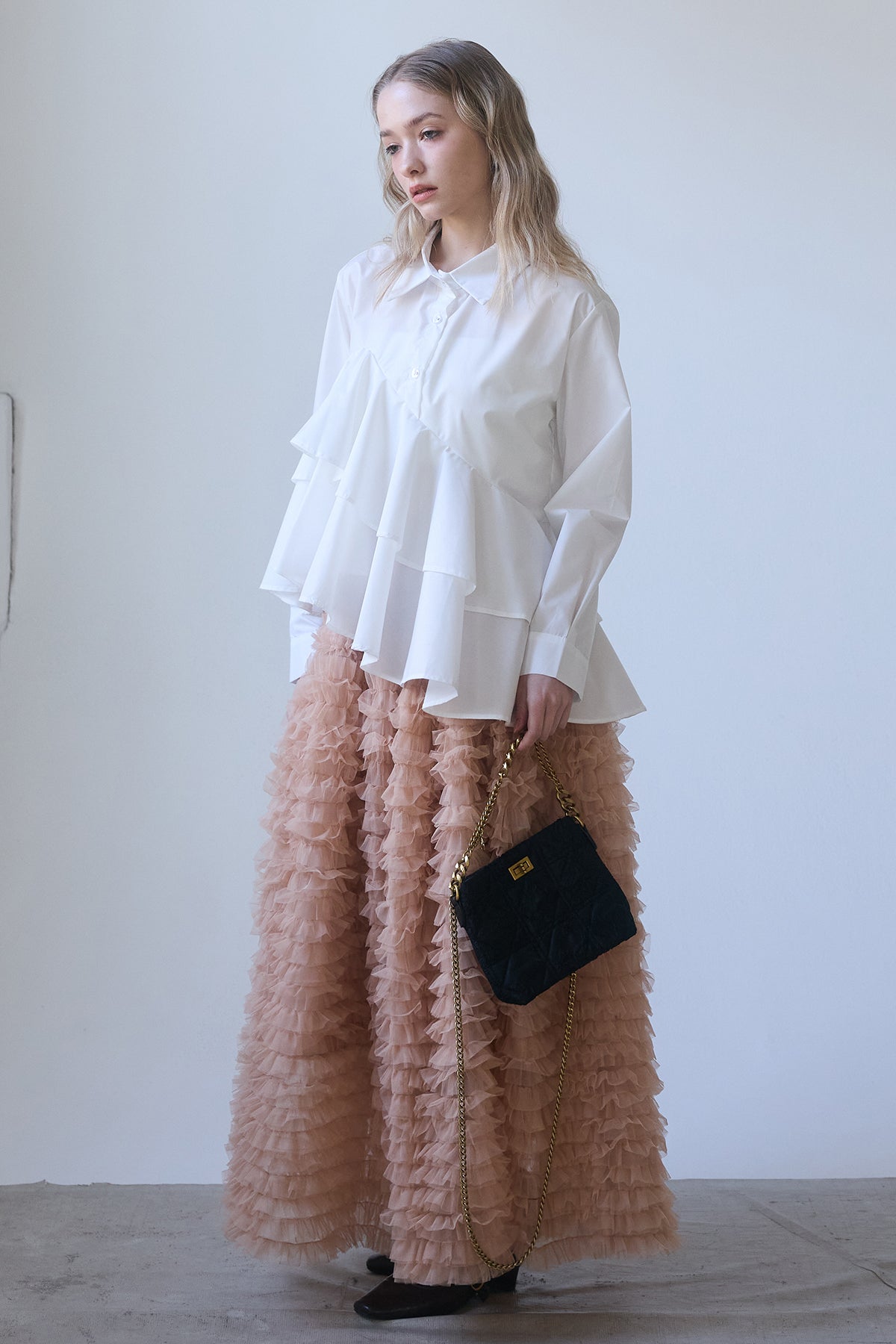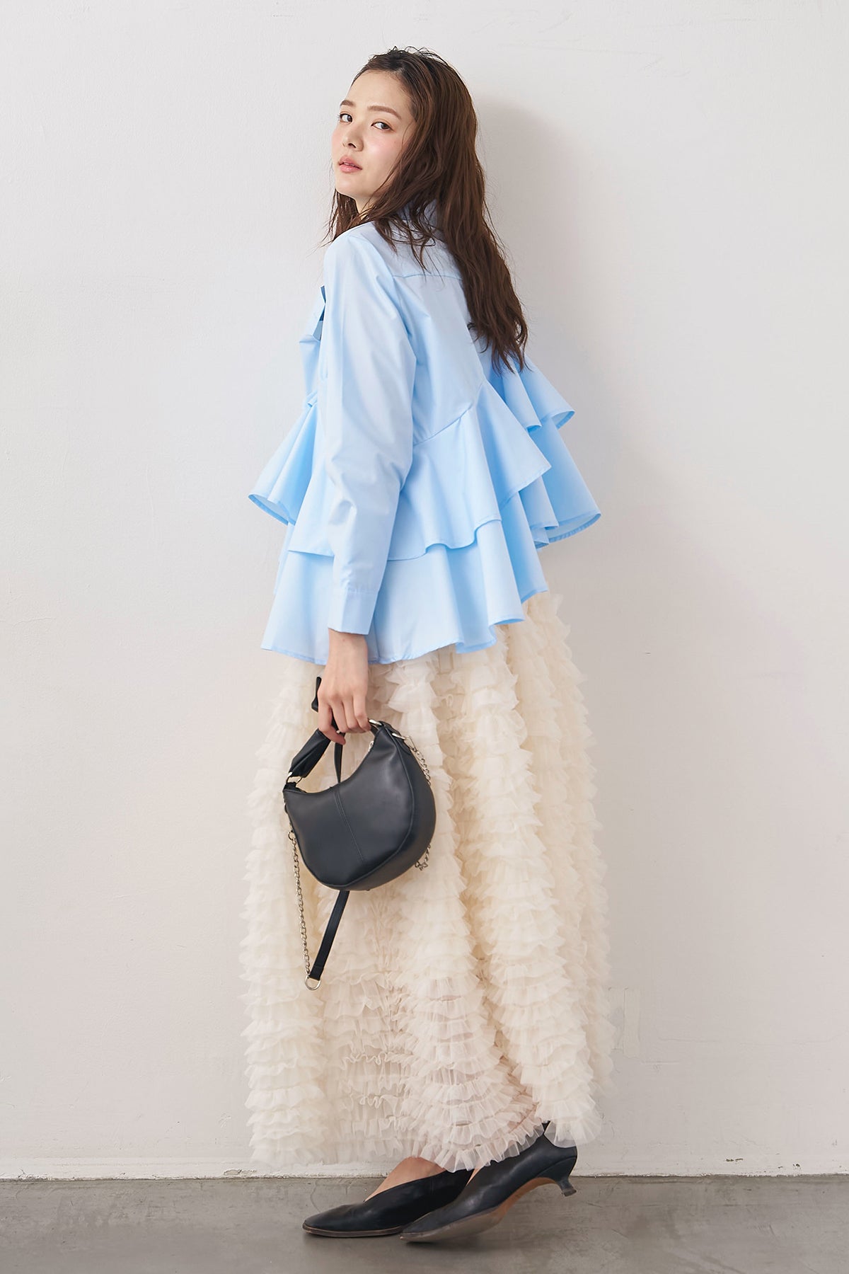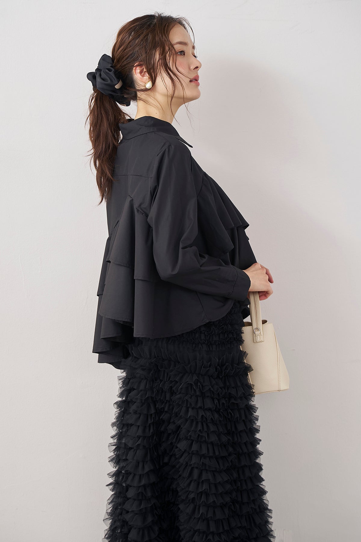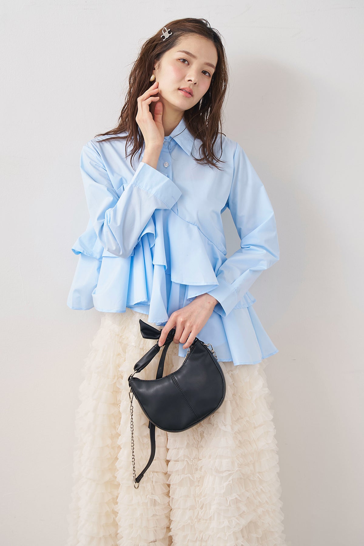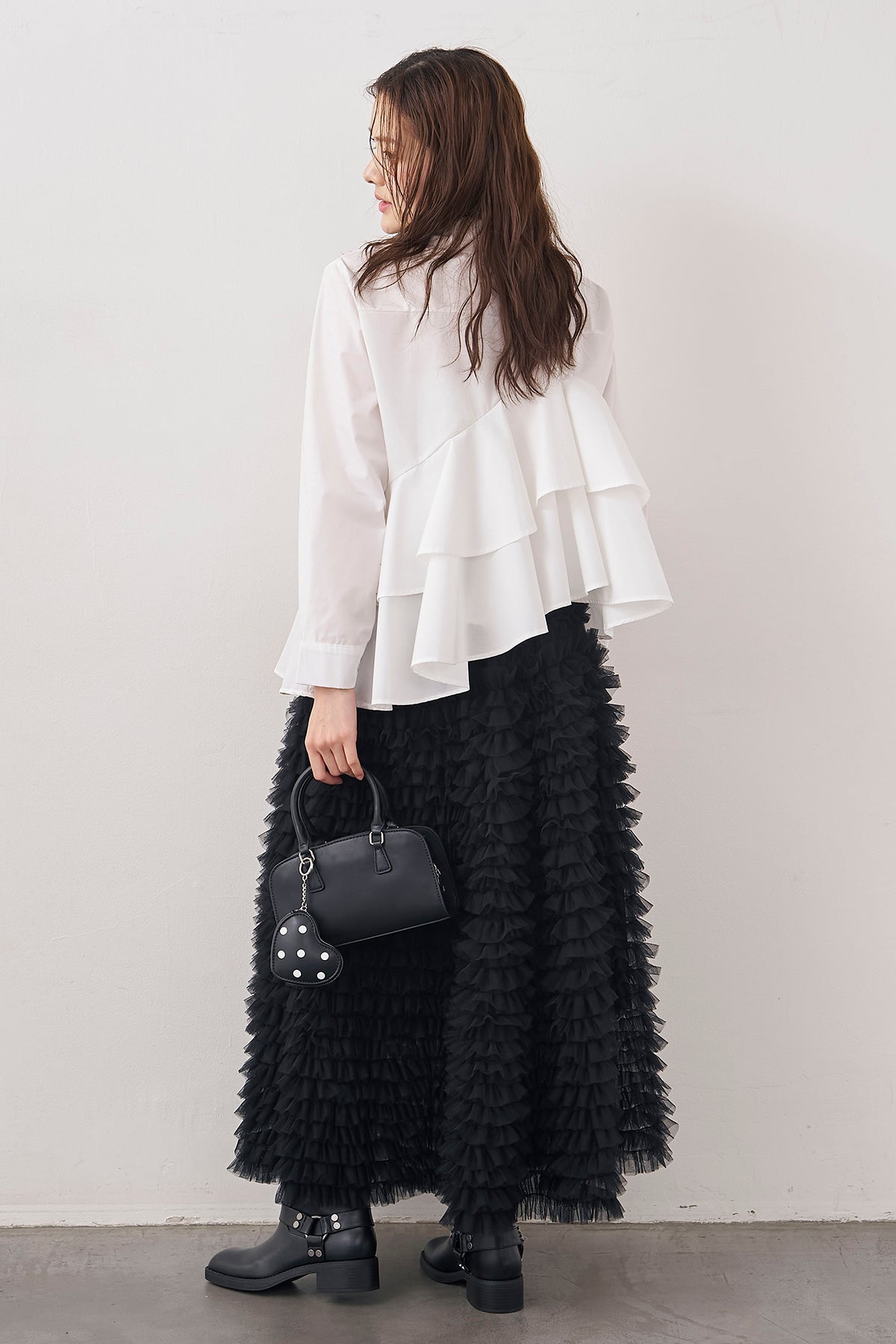 [予約/SET]アシメフリルティアードシャツ+ホイップチュールティアードスカート(2set)