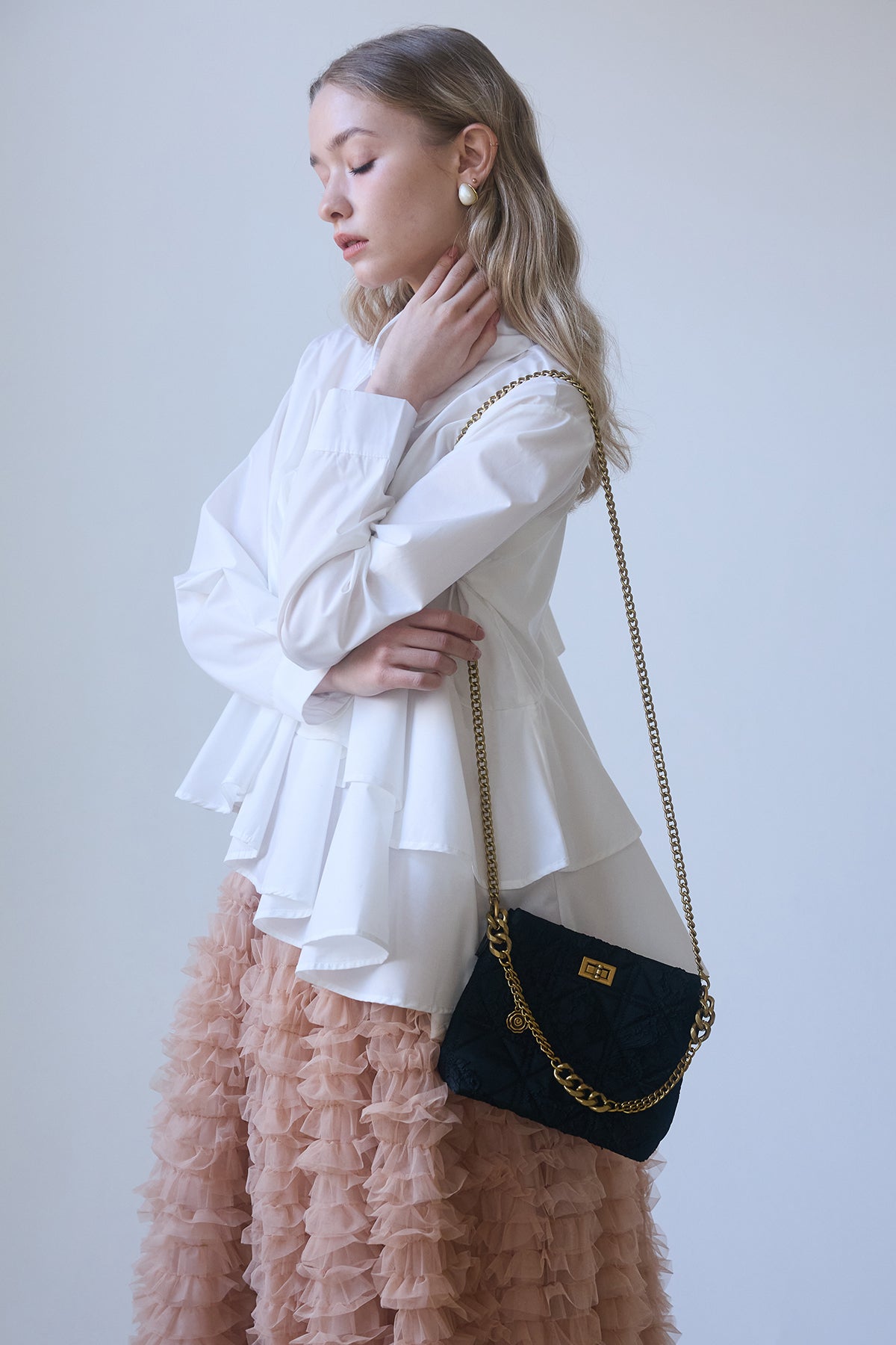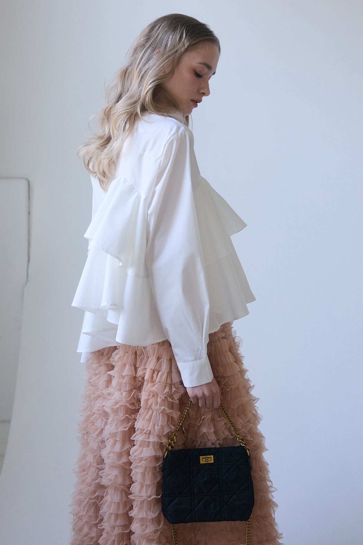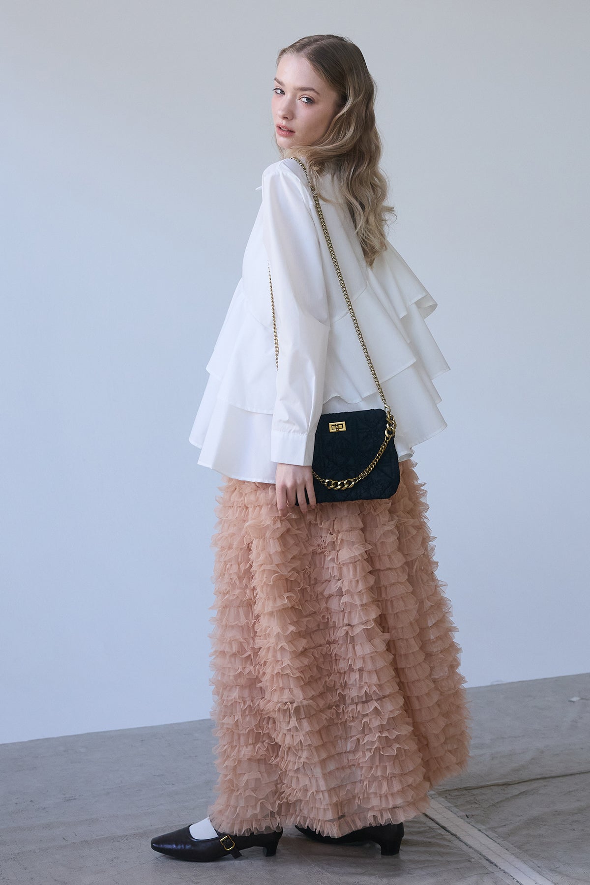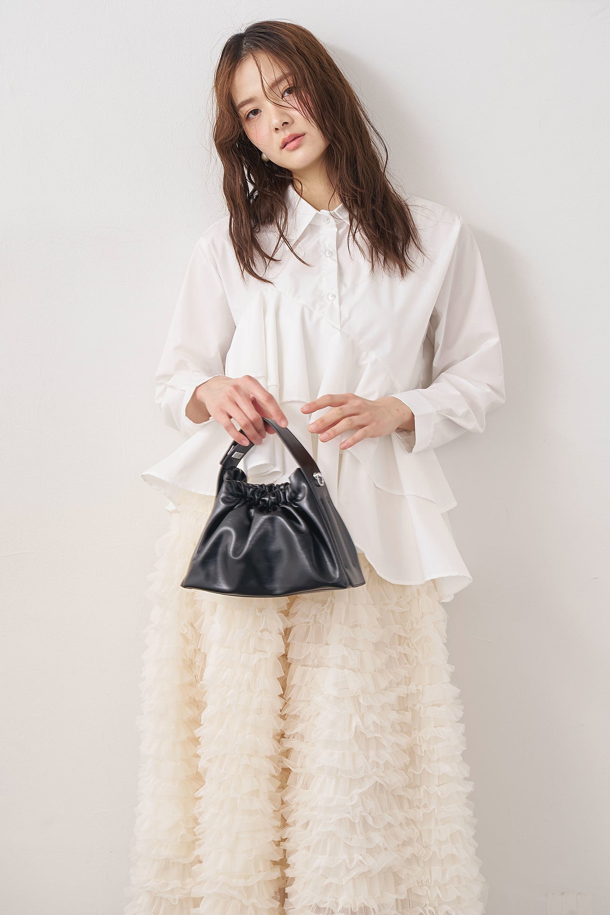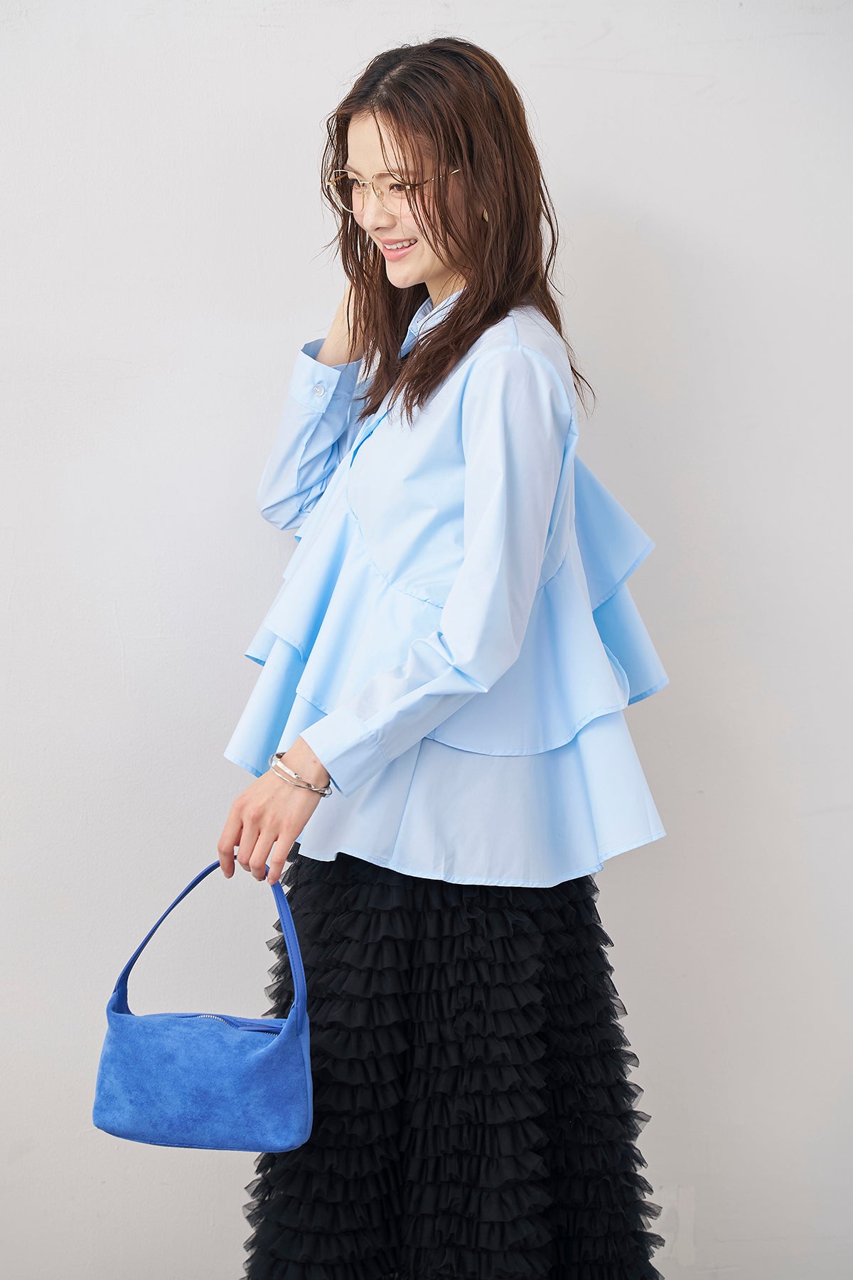 [予約/SET]アシメフリルティアードシャツ+ホイップチュールティアードスカート(2set)