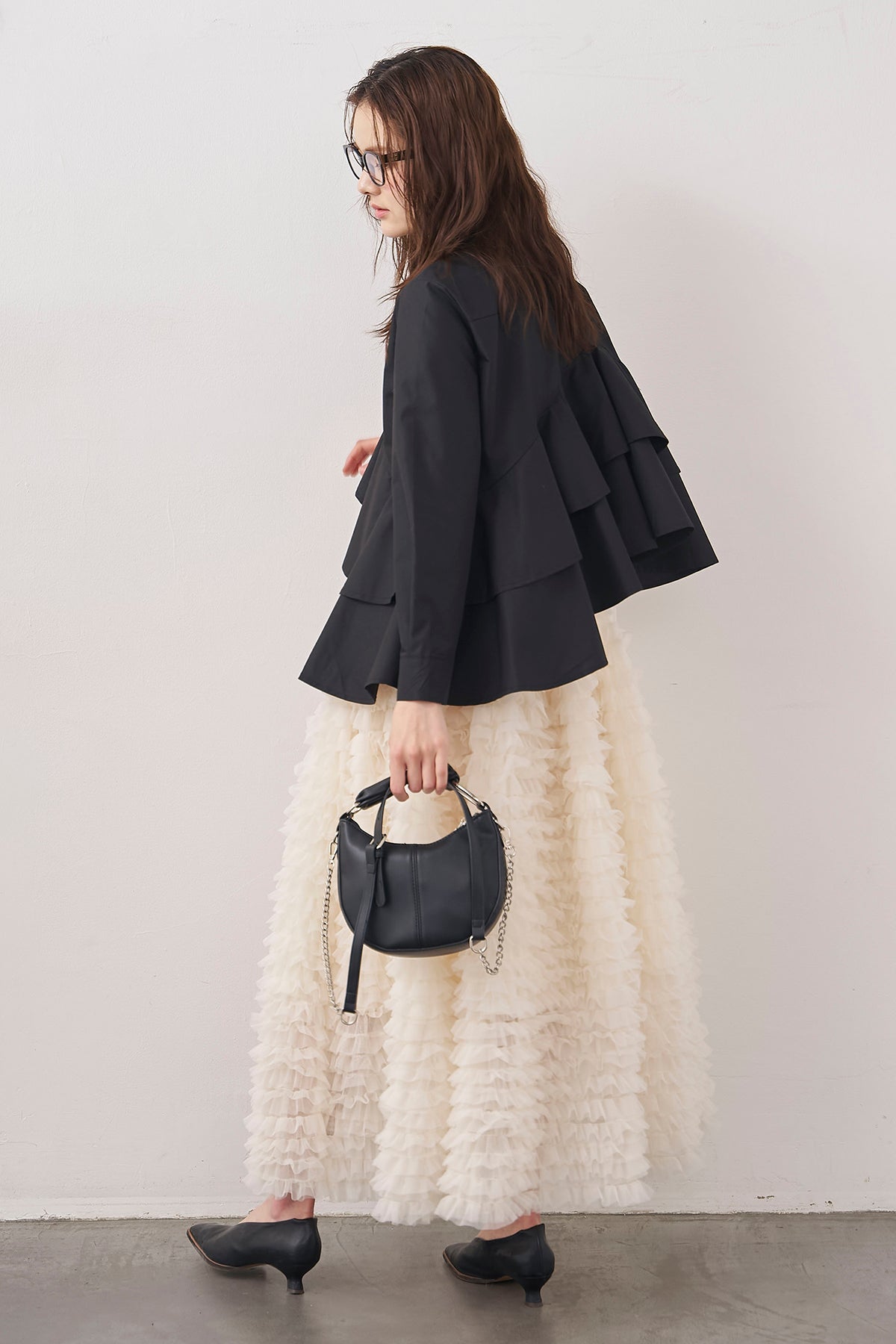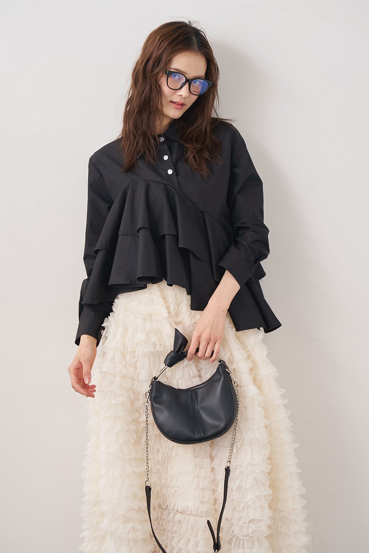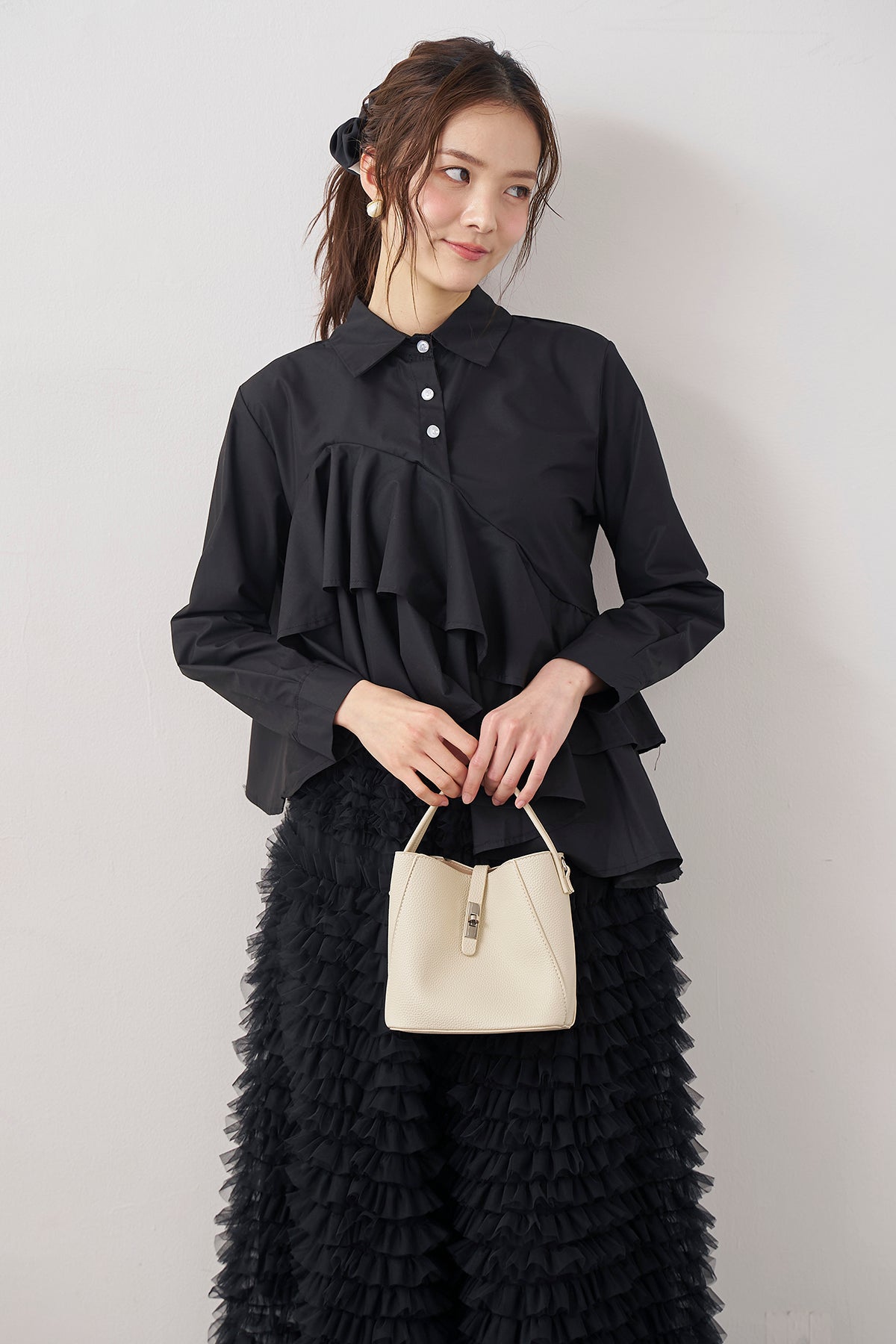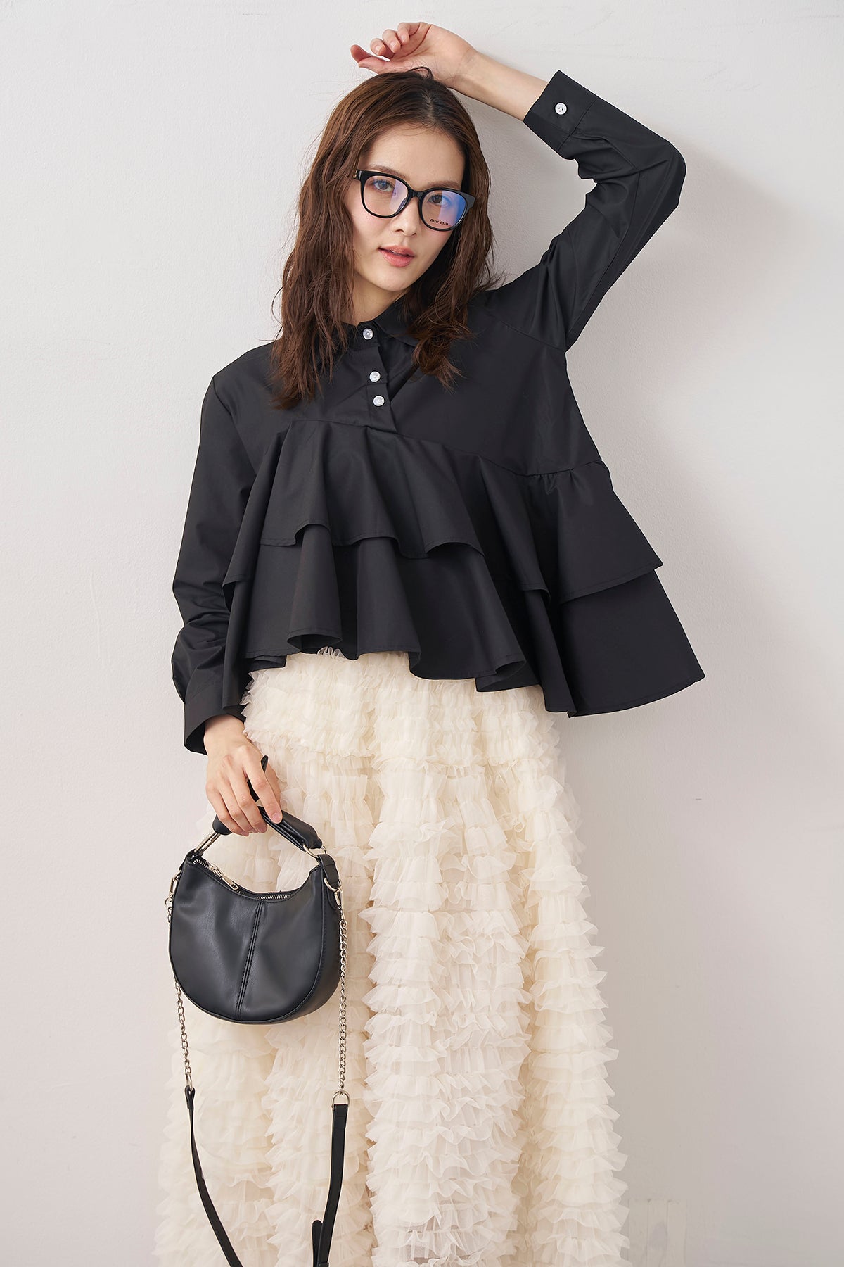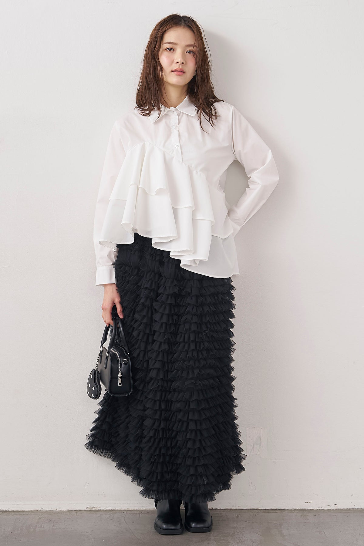 ◆ アシメフリルティアードシャツ