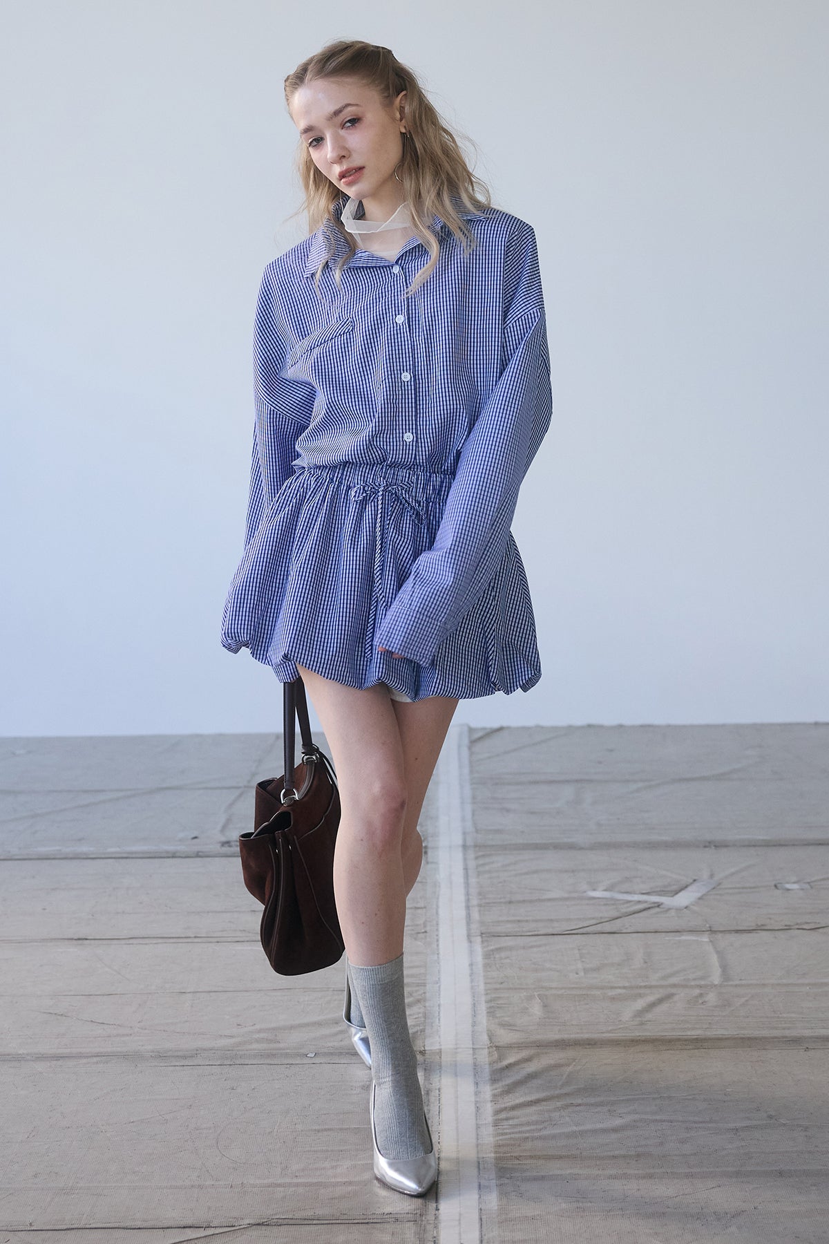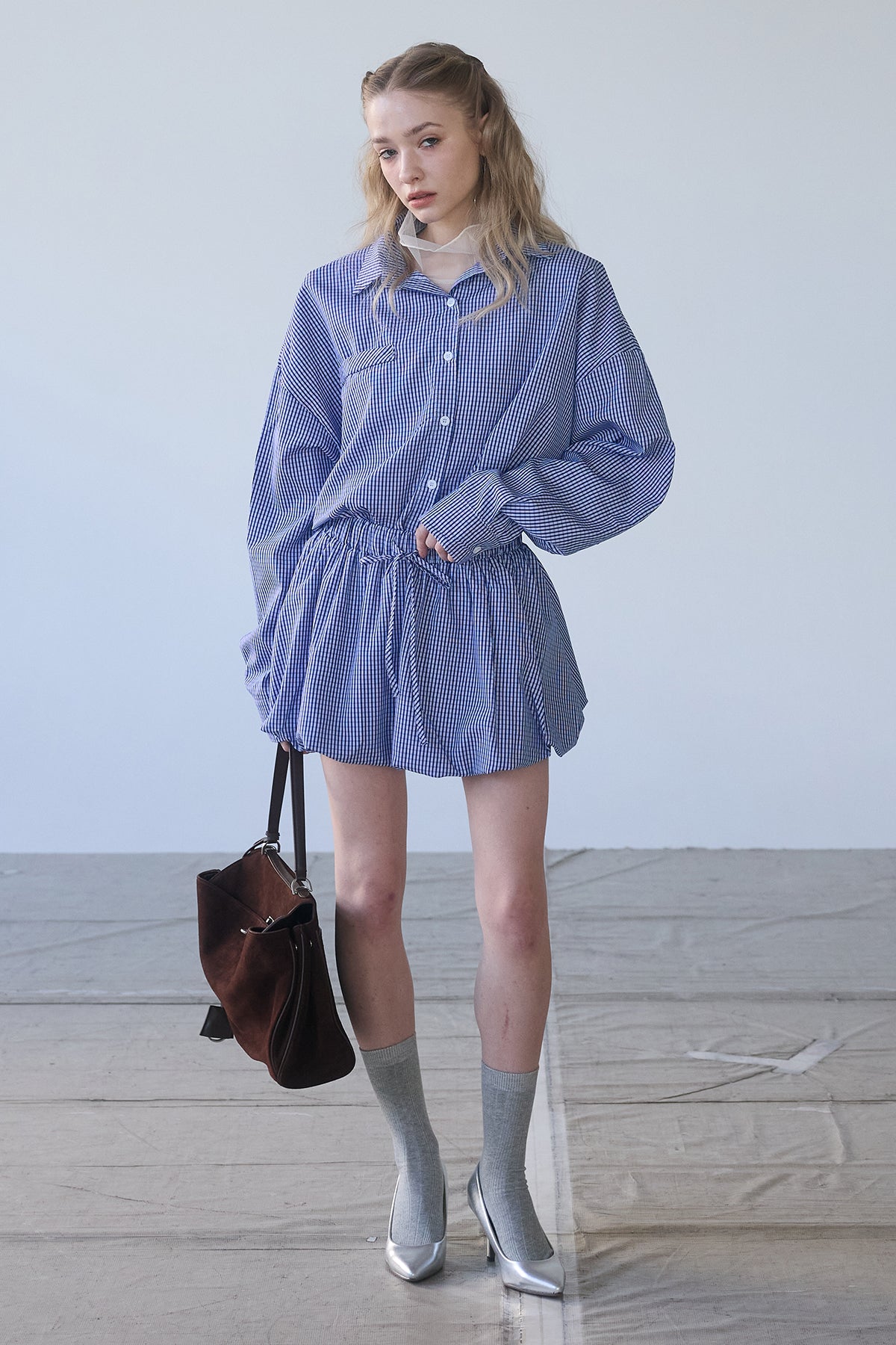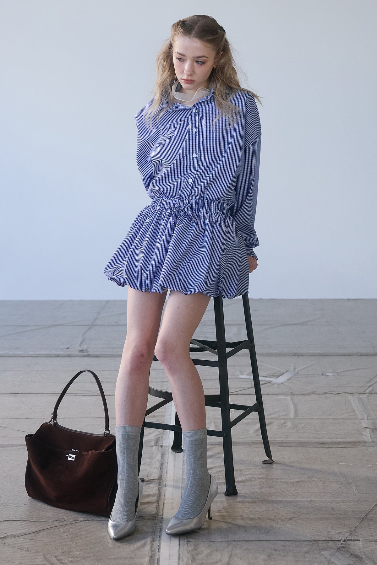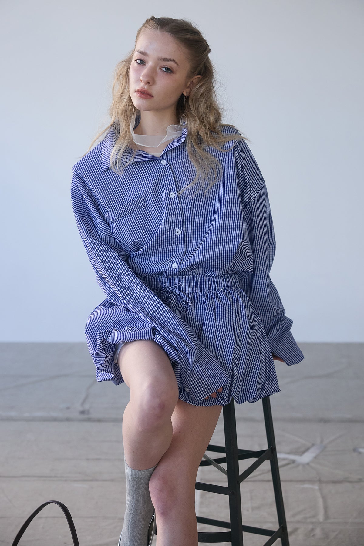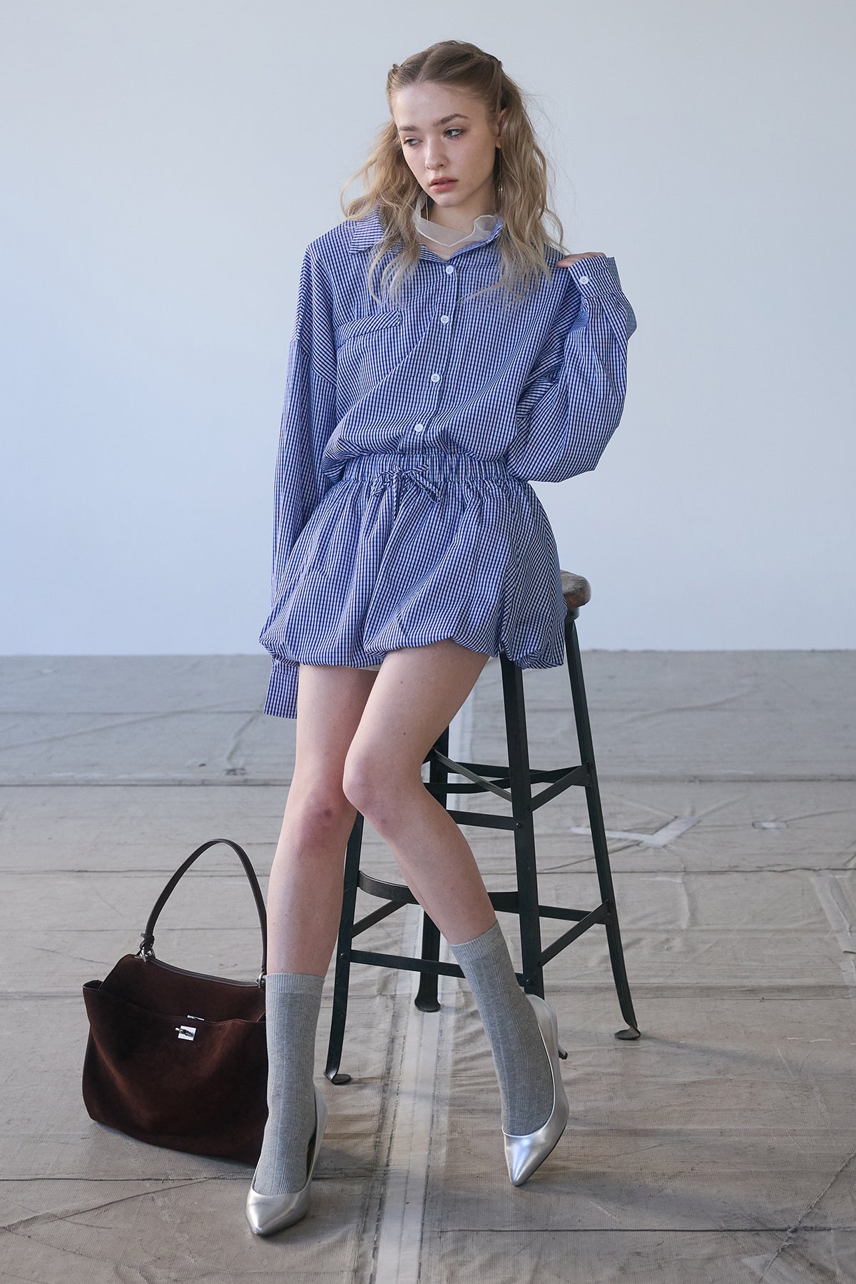 [予約]ギンガムチェックバルーンミニボトムセットアップ