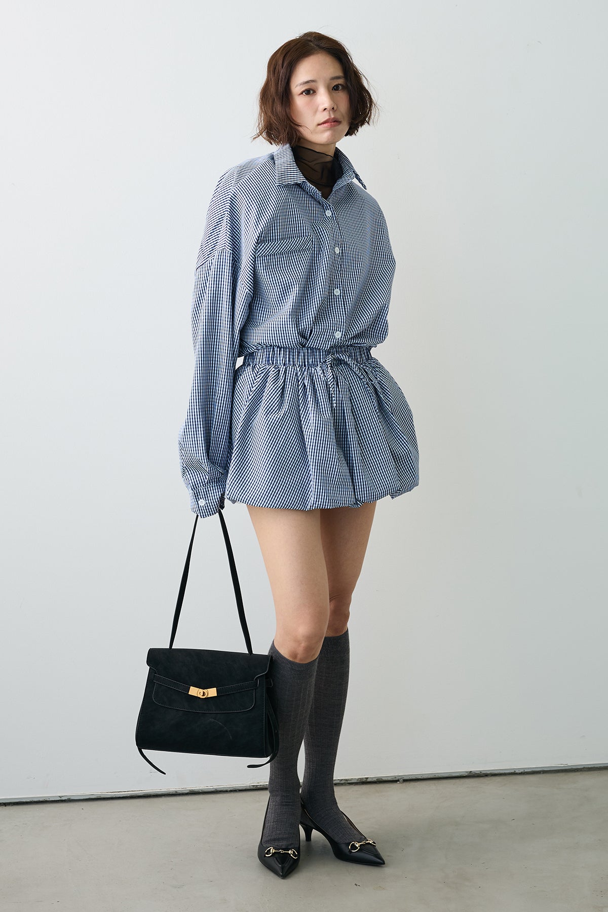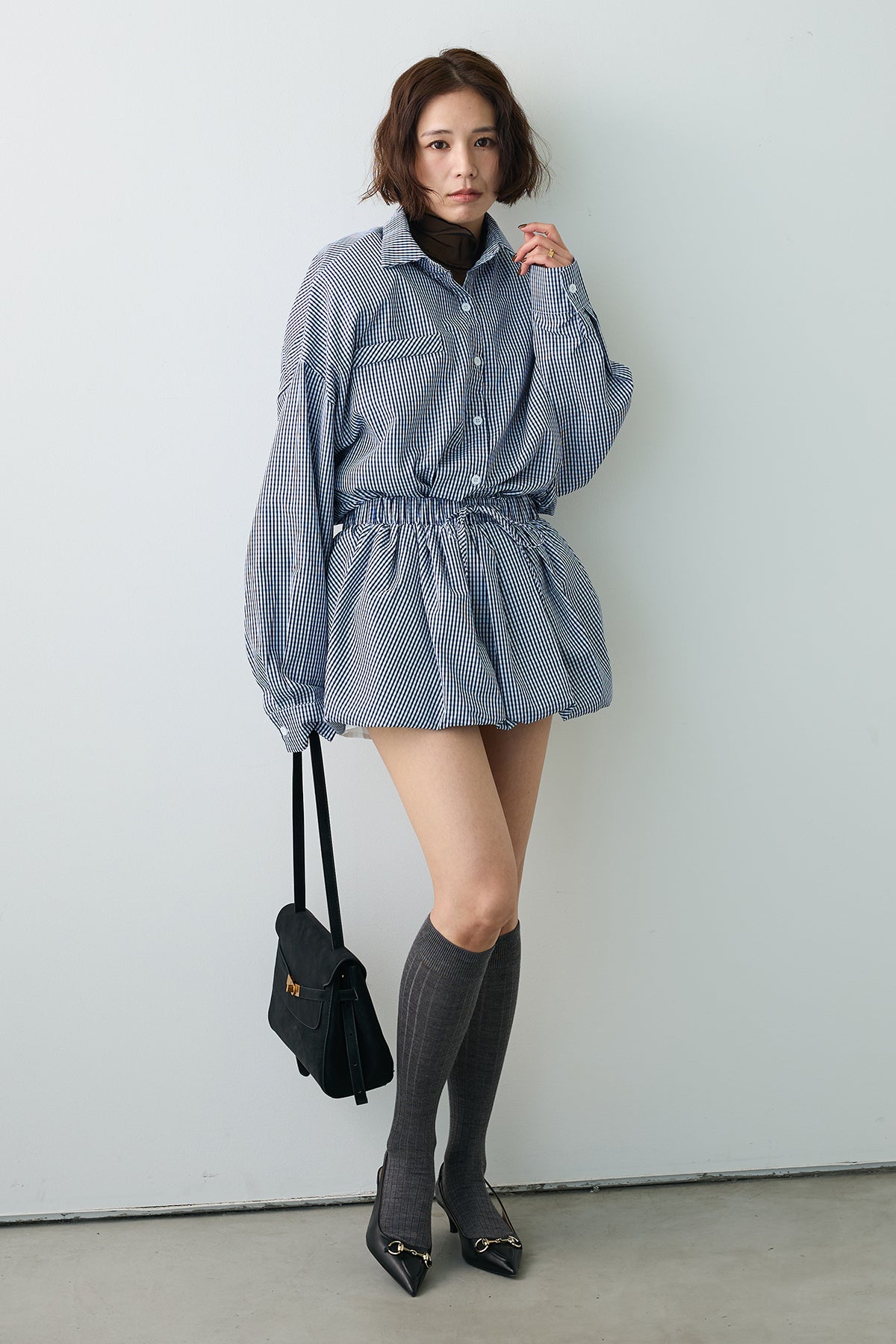 ◆ ギンガムチェックバルーンミニボトムセットアップ