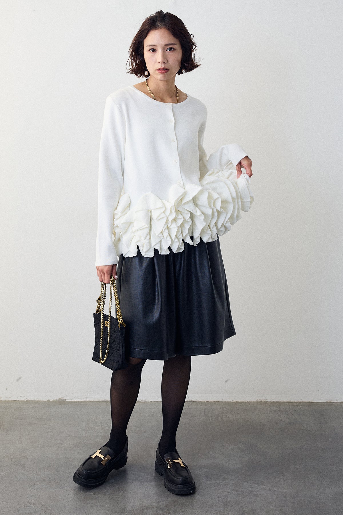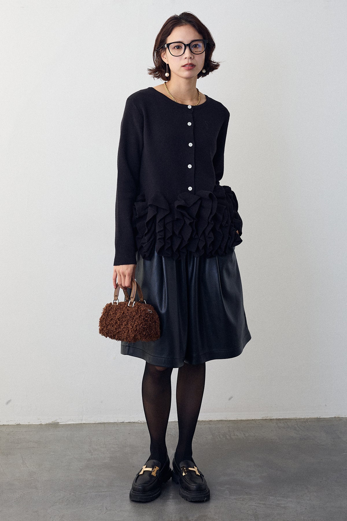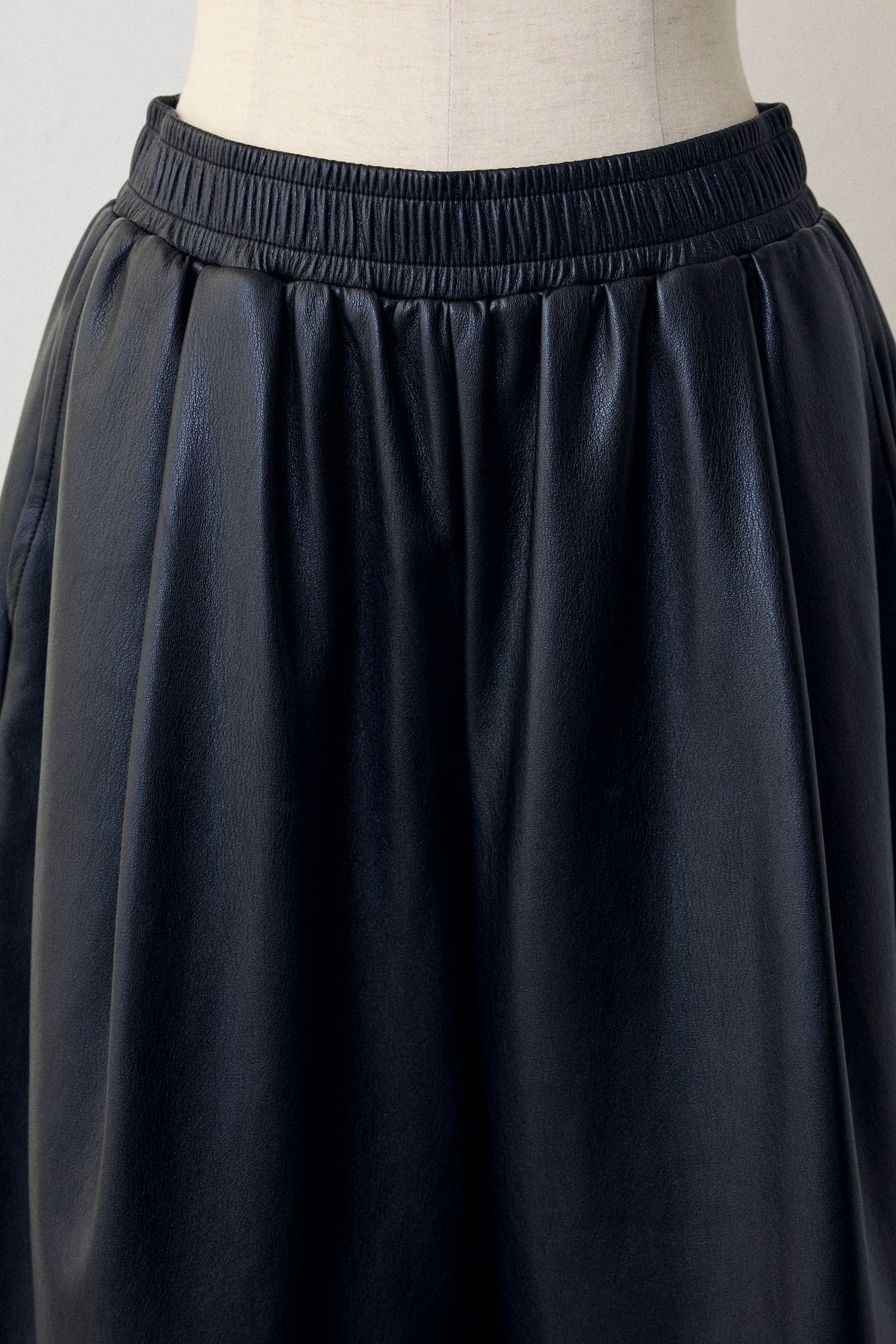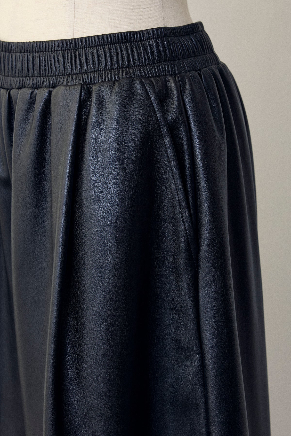 柔らかな風合いと程よいツヤ感が魅力のレザーライク素材で仕上げたハーフパンツ。広がりすぎないフレアシルエットが大人の上品さを保ちながら、コーディネートにモードなエッセンスを添えてくれます。ウエストは総ゴム仕様で着心地も快適。タイツを合わせれば季節を問わず楽しめ、フェミニンなニットとも相性抜群です。シンプルながら存在感のある一枚が、日常のスタイリングをさりげなくアップデートしてくれます。