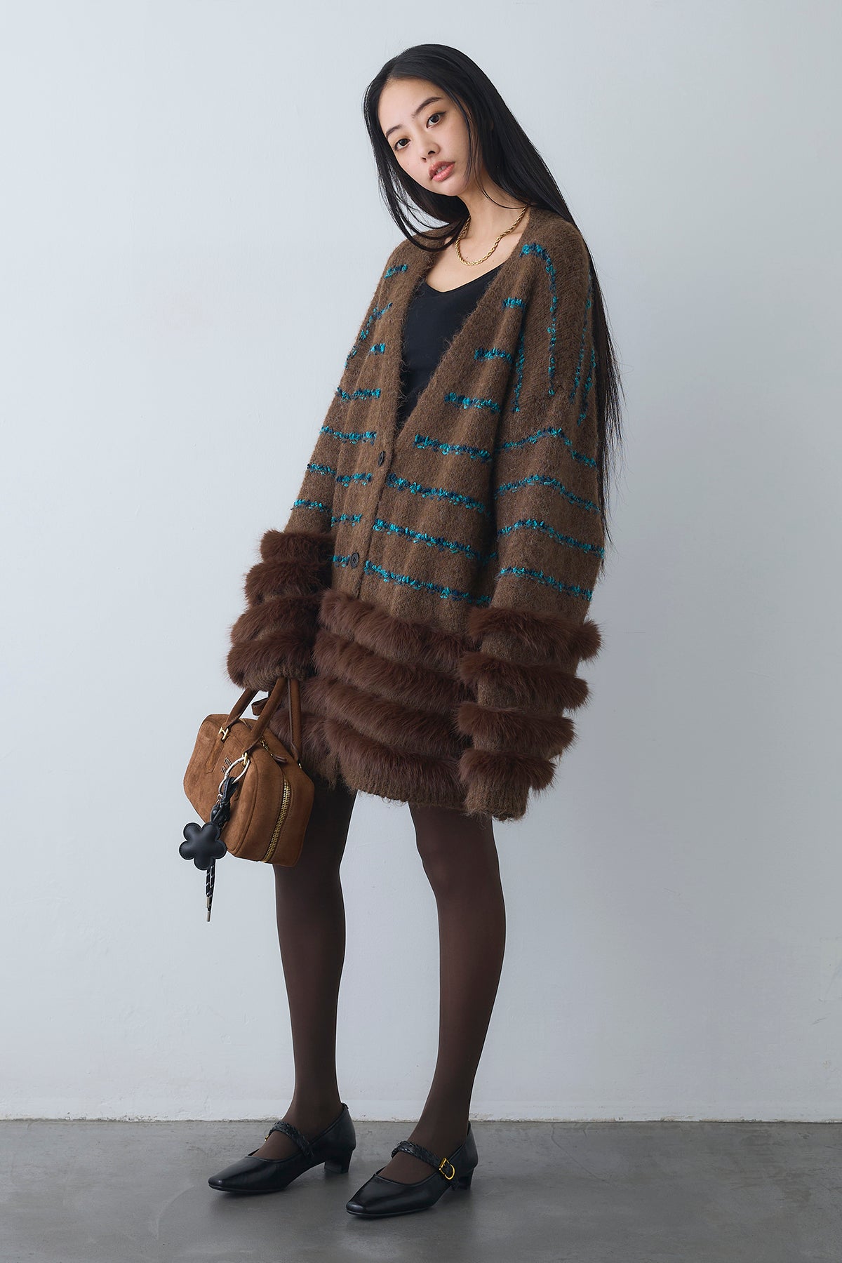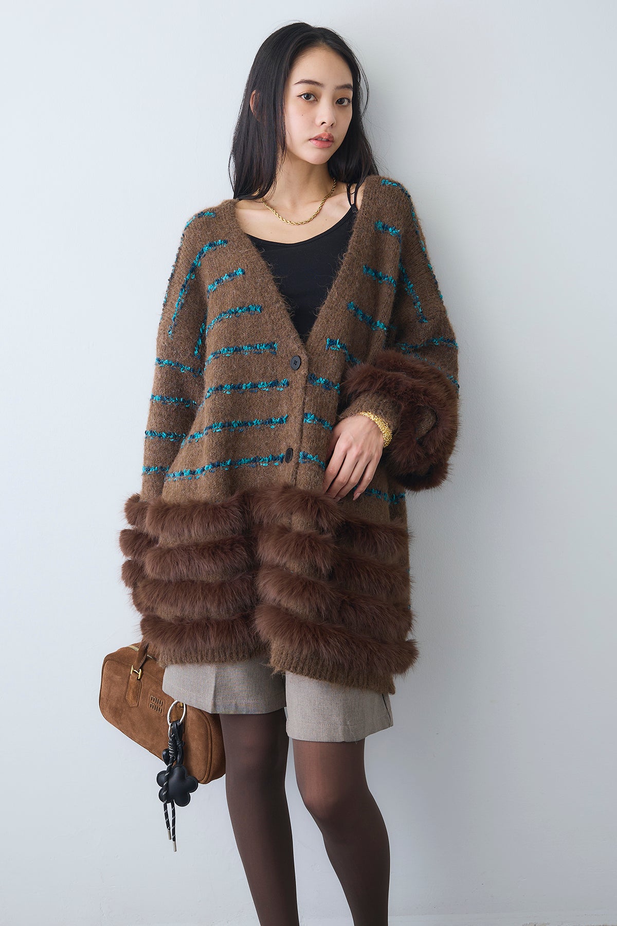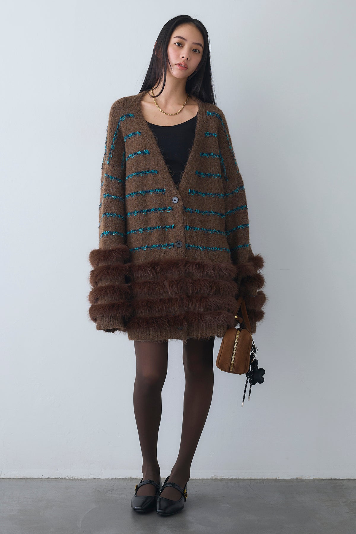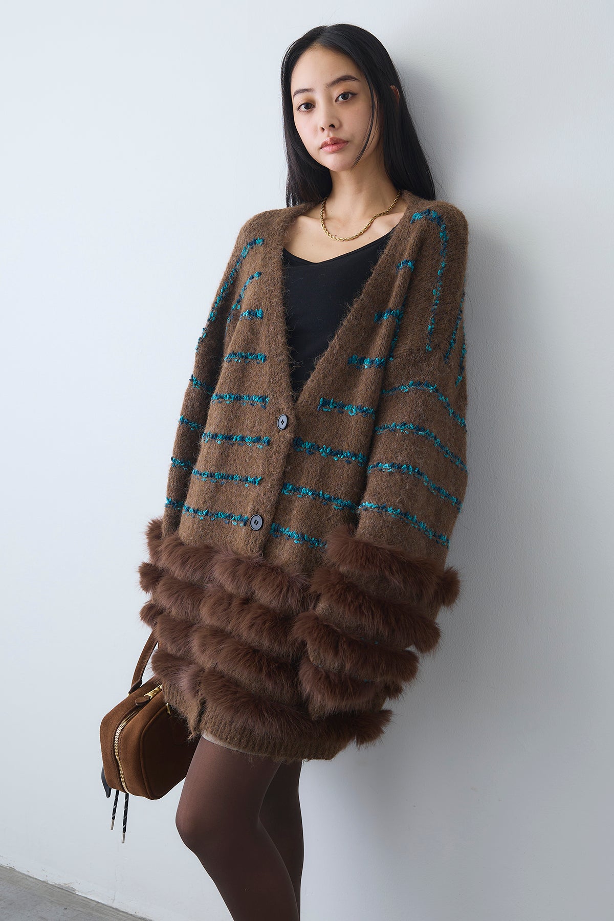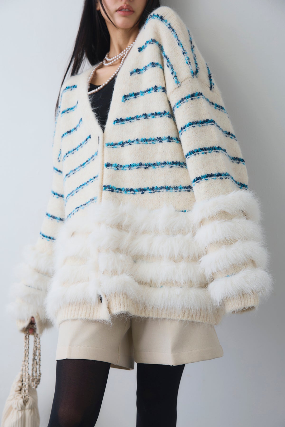 ◆ フェザーライン配色シャギーニットカーディガン
