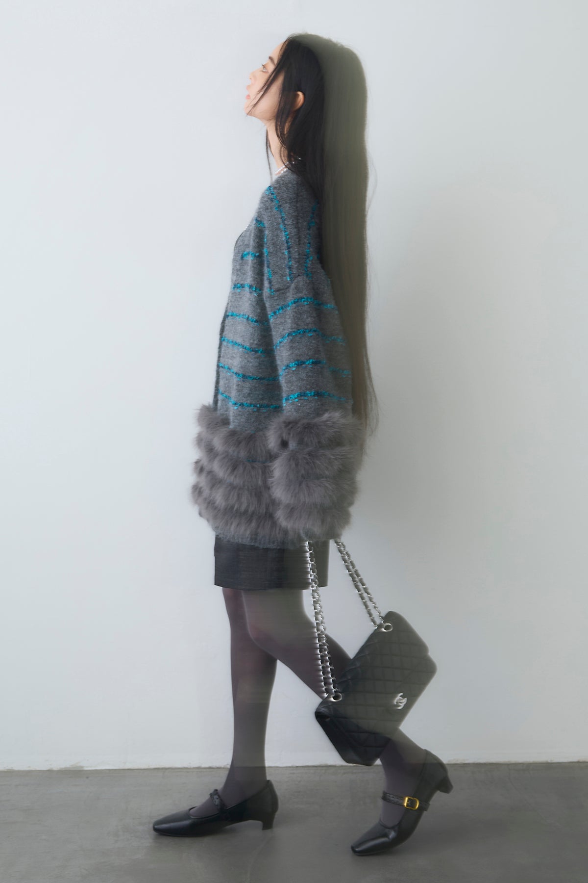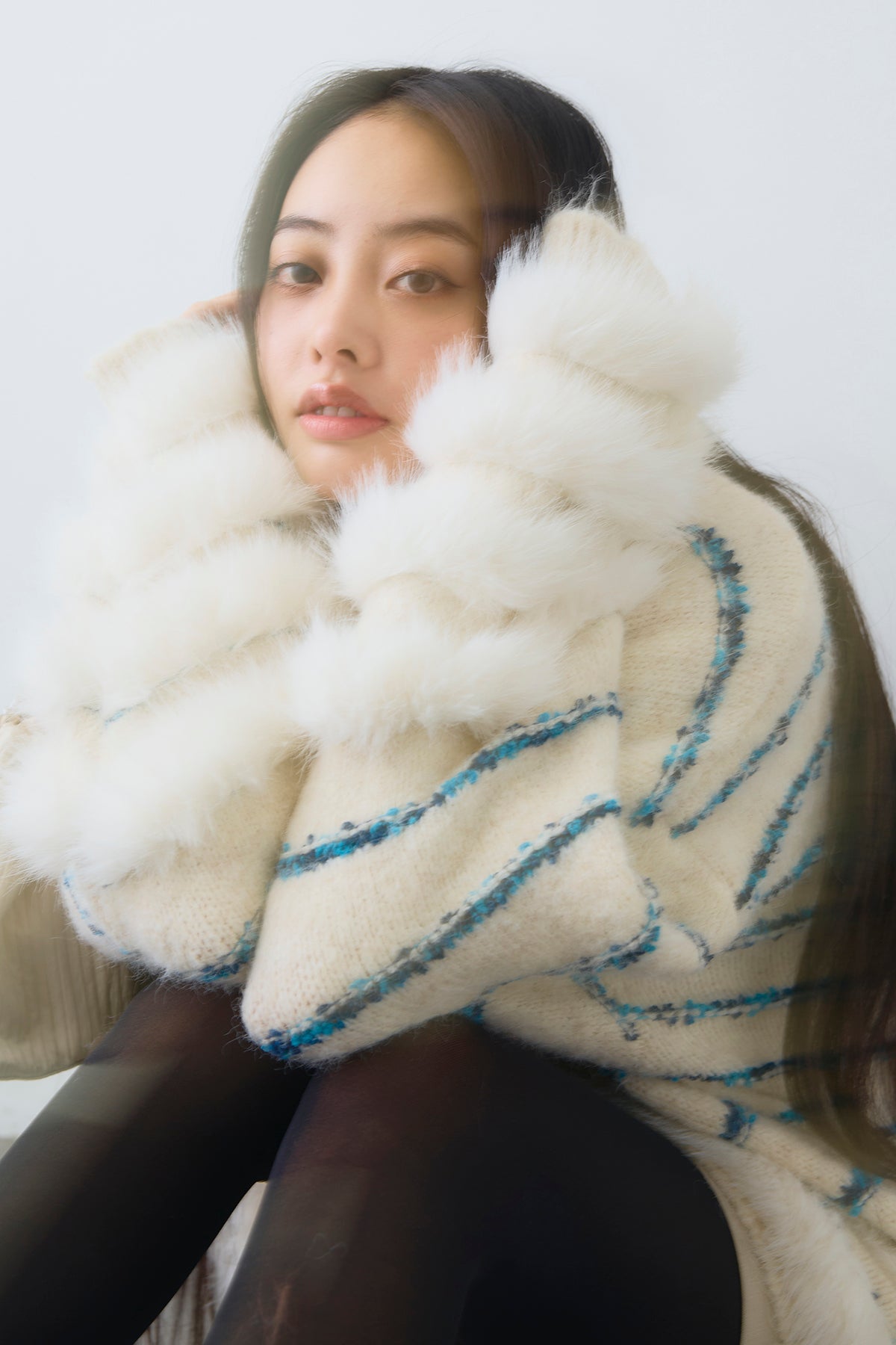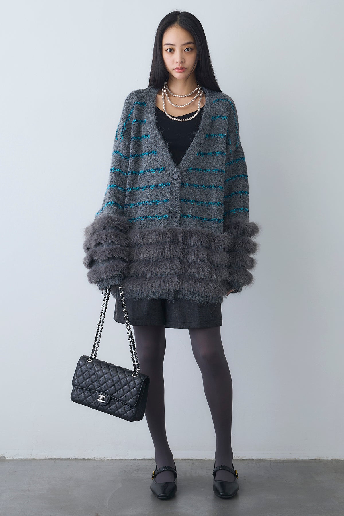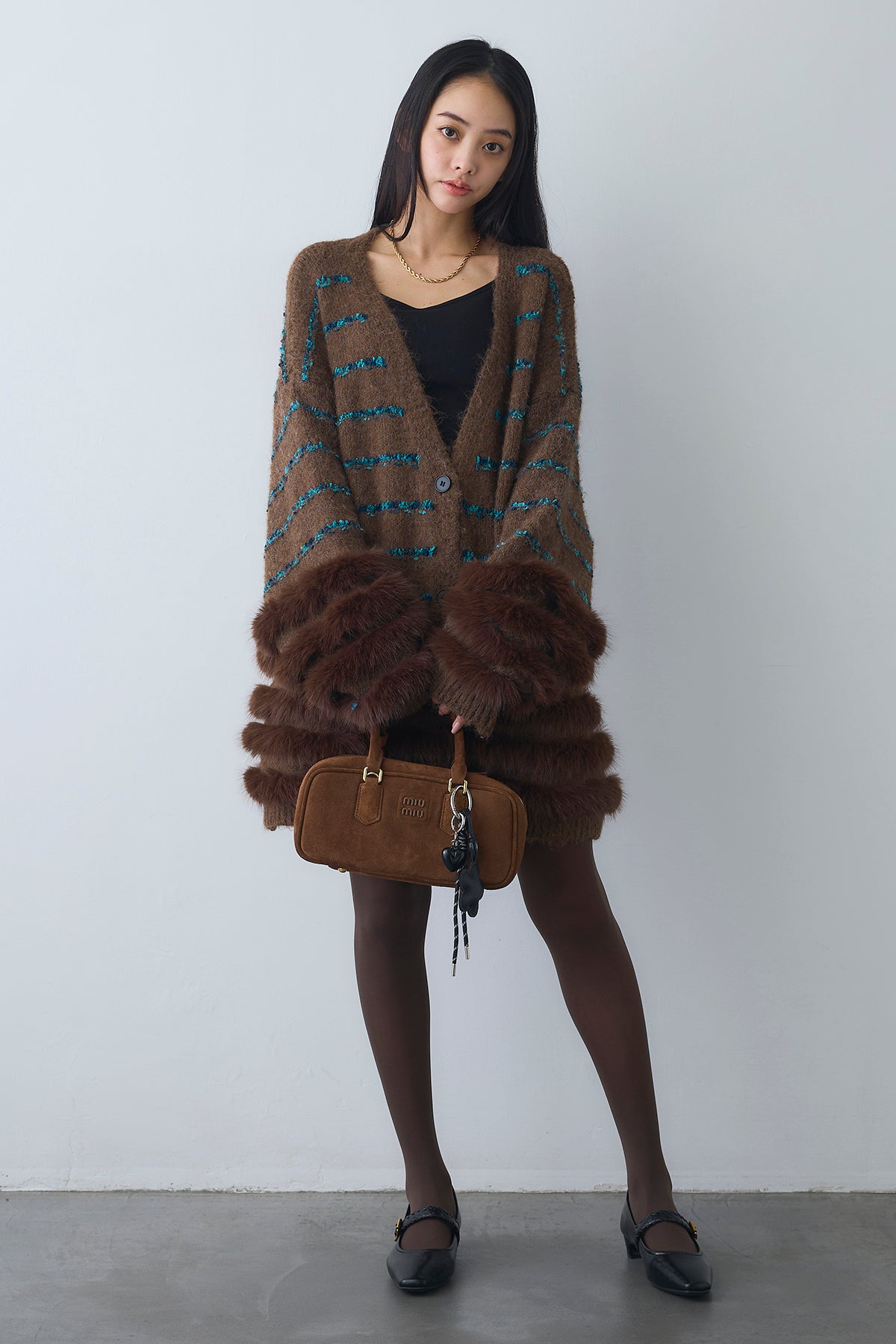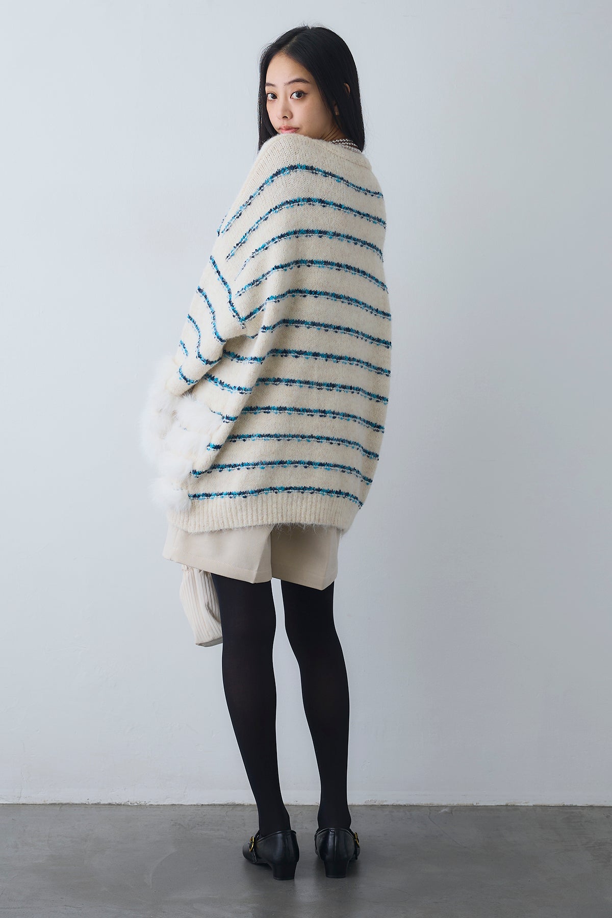 ◆ フェザーライン配色シャギーニットカーディガン