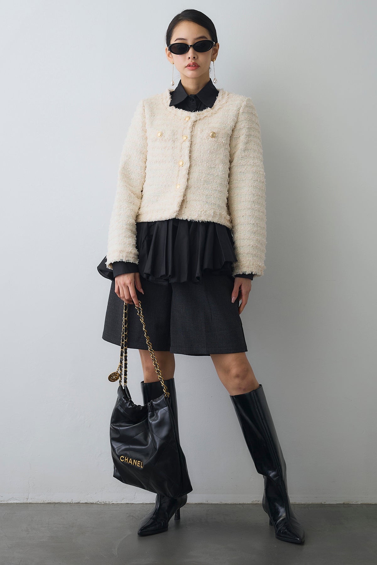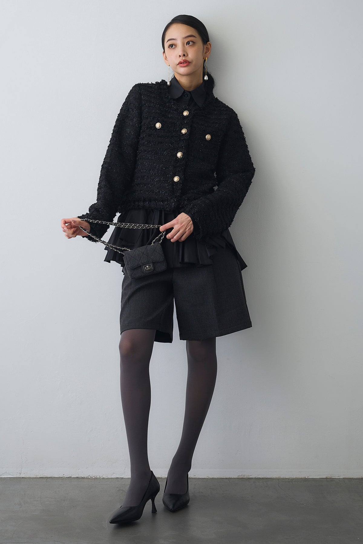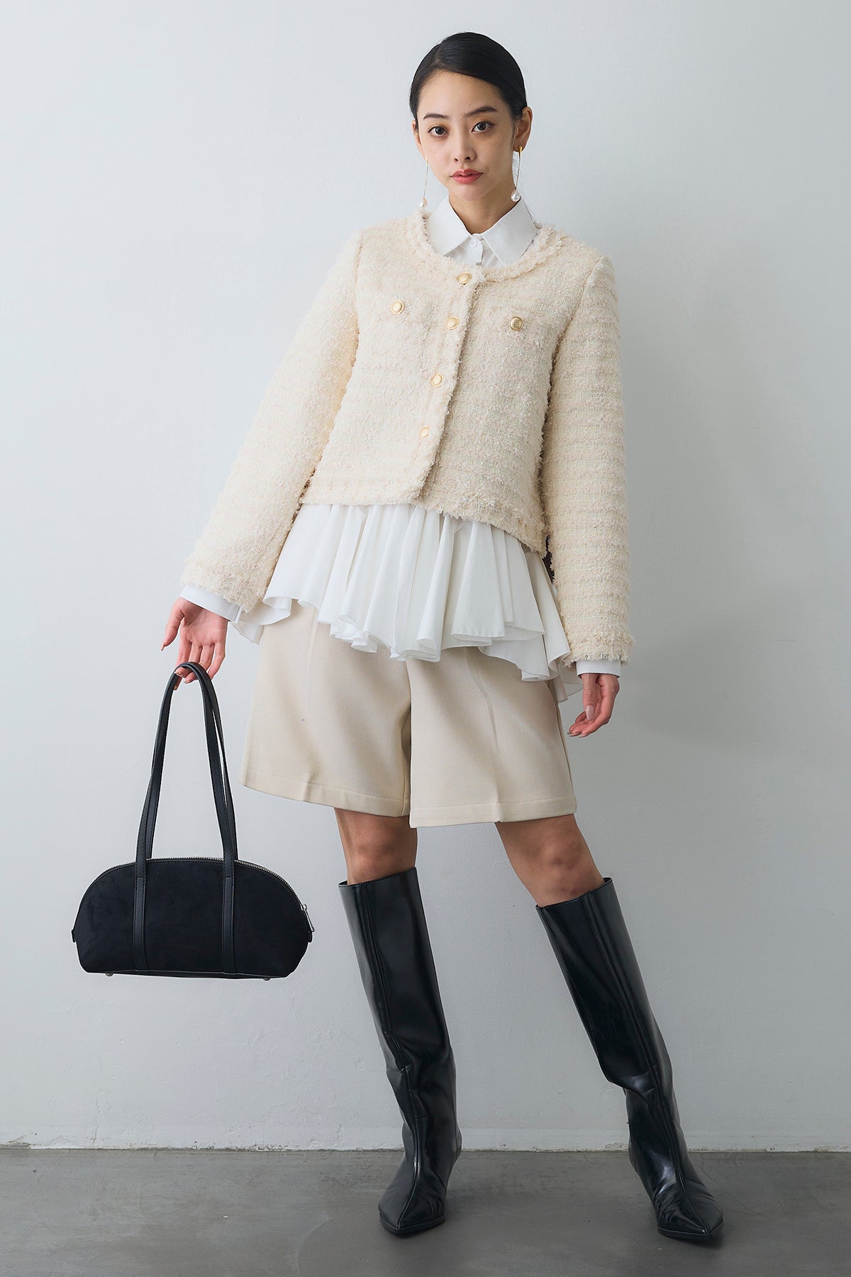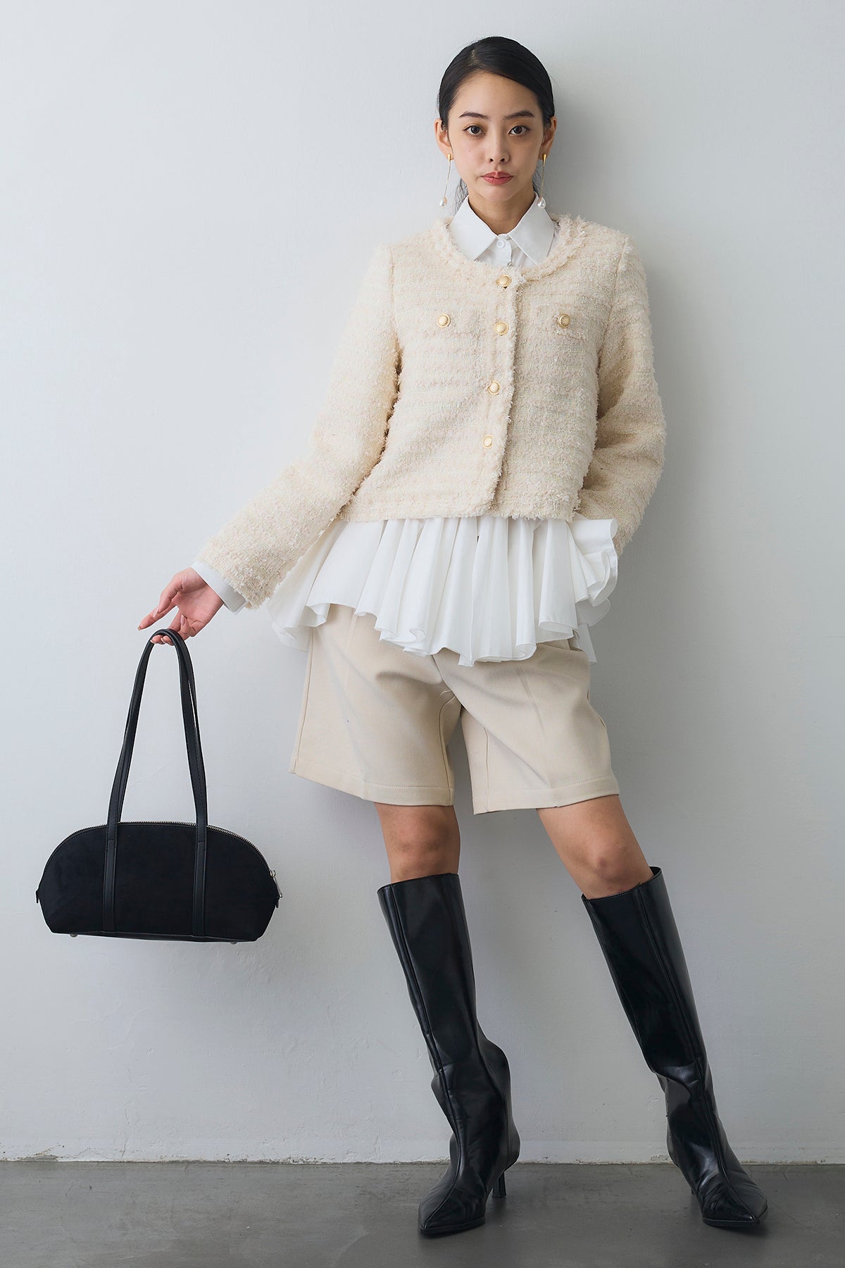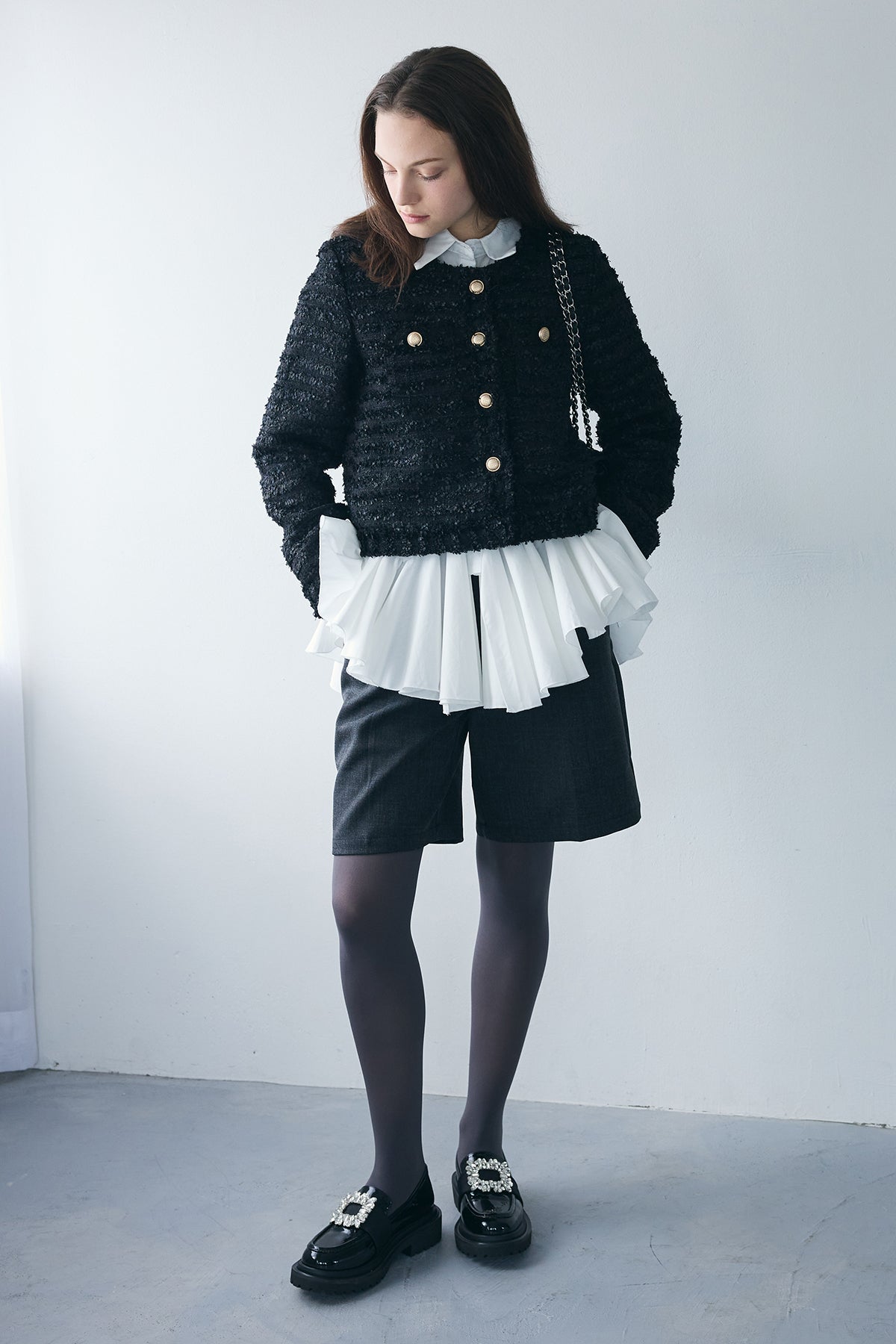 [予約/SET]パネルフレアヘムシャツ+フレンチクラシックツイードジャケット+ウールタッチセンタープレスハーフパンツ(3set)