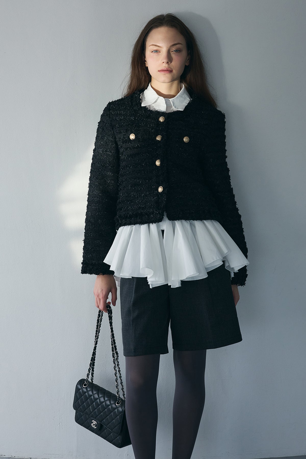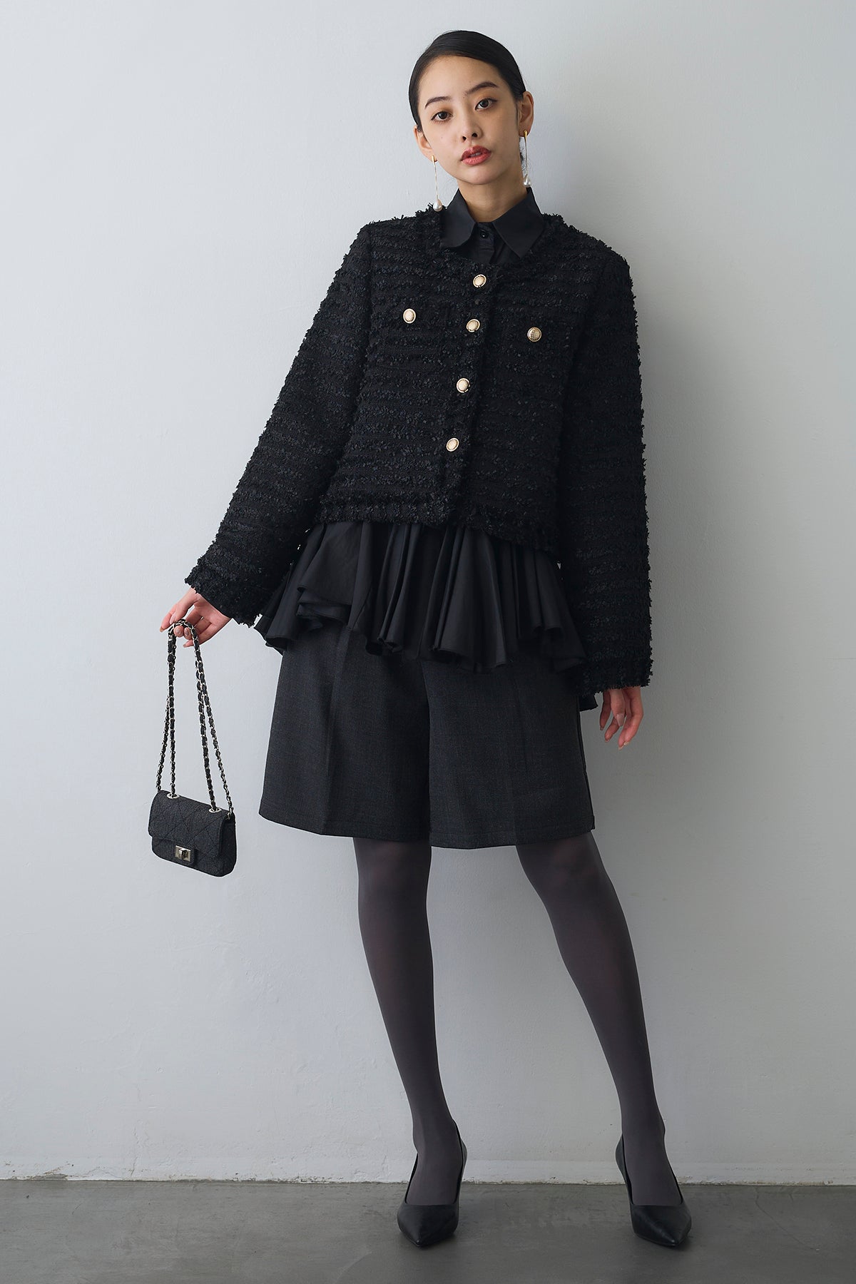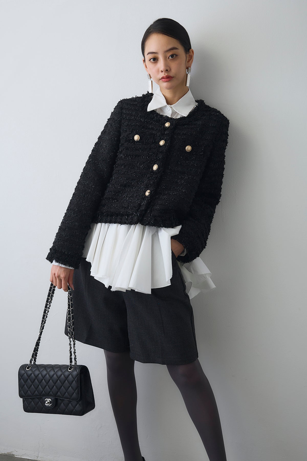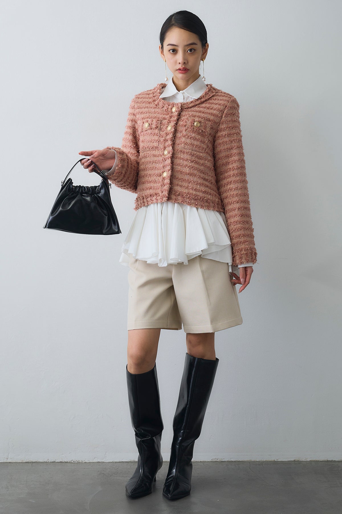 [予約/SET]パネルフレアヘムシャツ+フレンチクラシックツイードジャケット+ウールタッチセンタープレスハーフパンツ(3set)