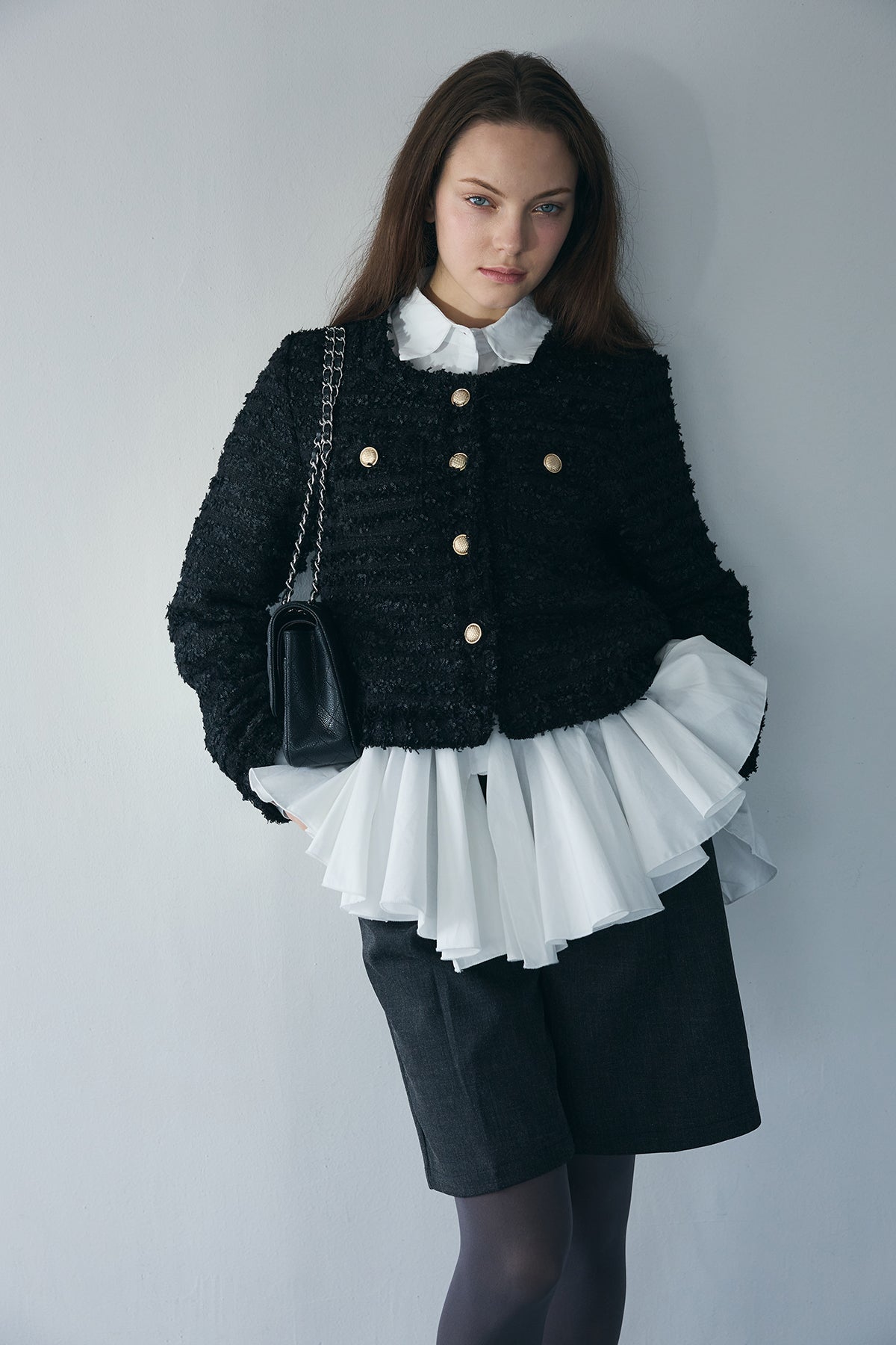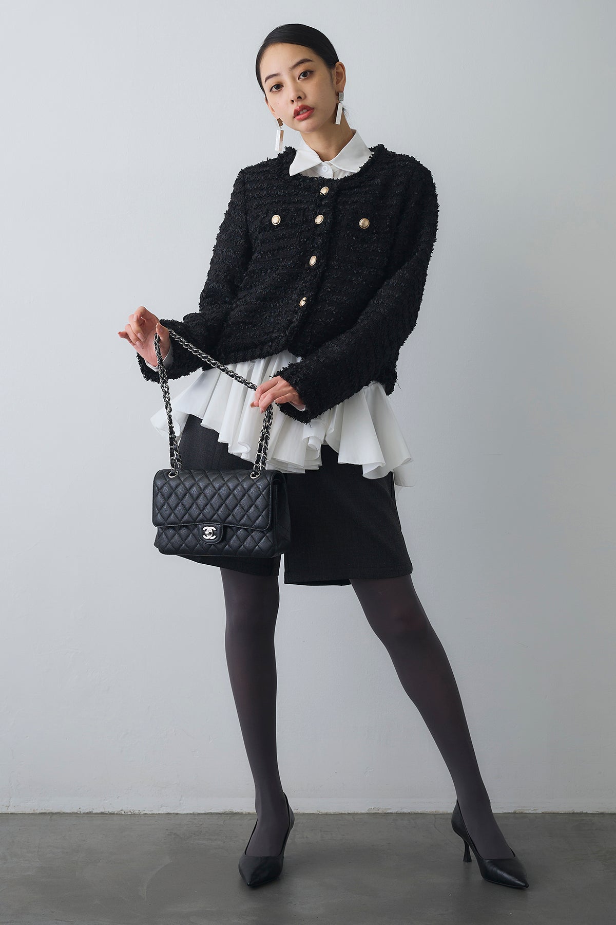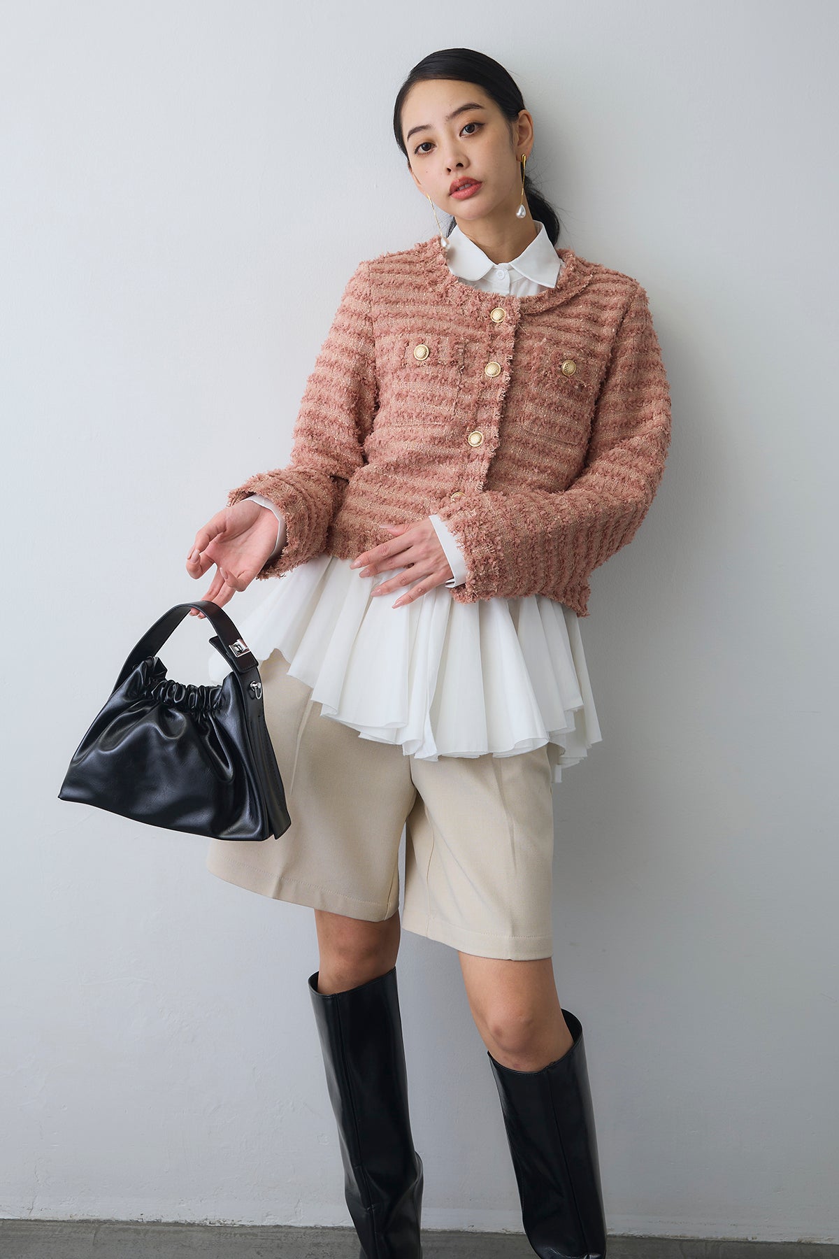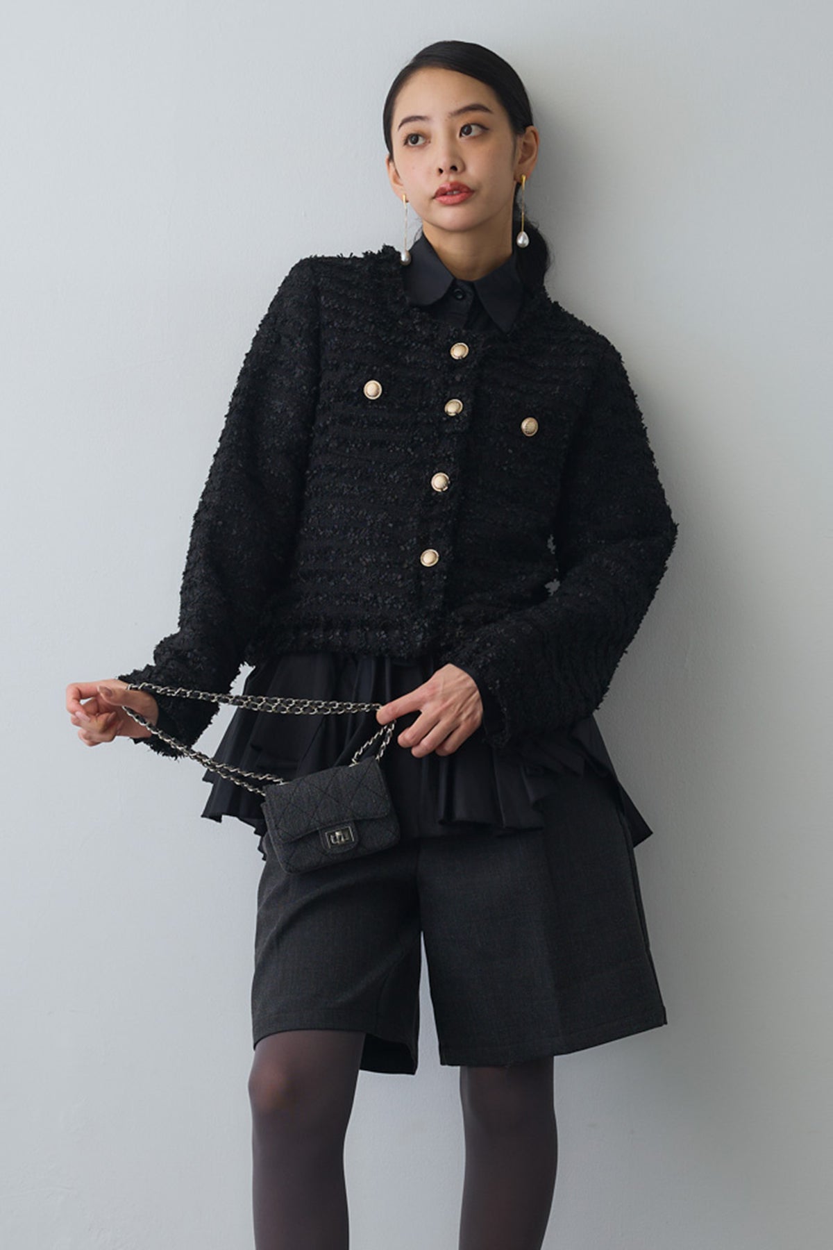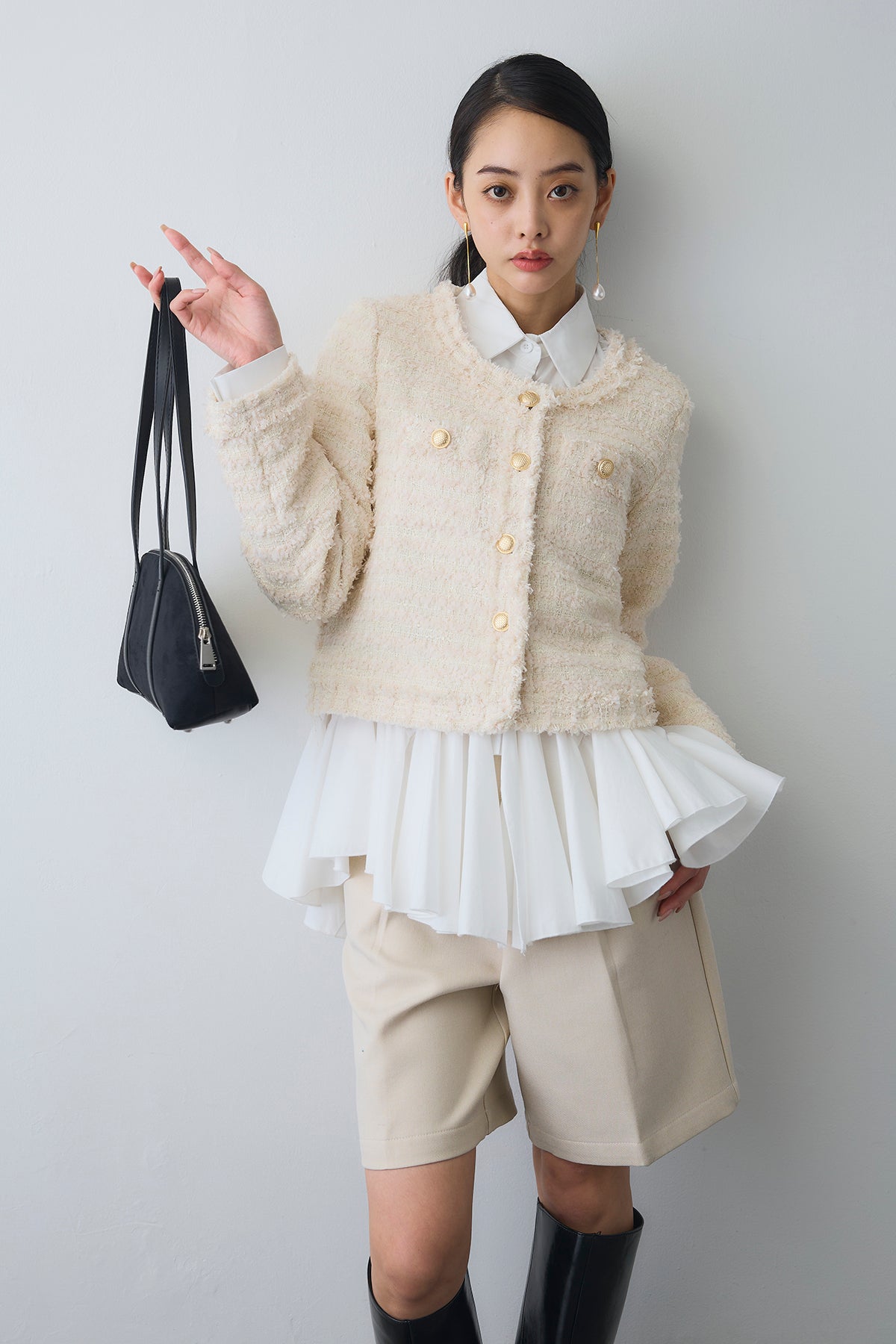 [予約/SET]パネルフレアヘムシャツ+フレンチクラシックツイードジャケット+ウールタッチセンタープレスハーフパンツ(3set)