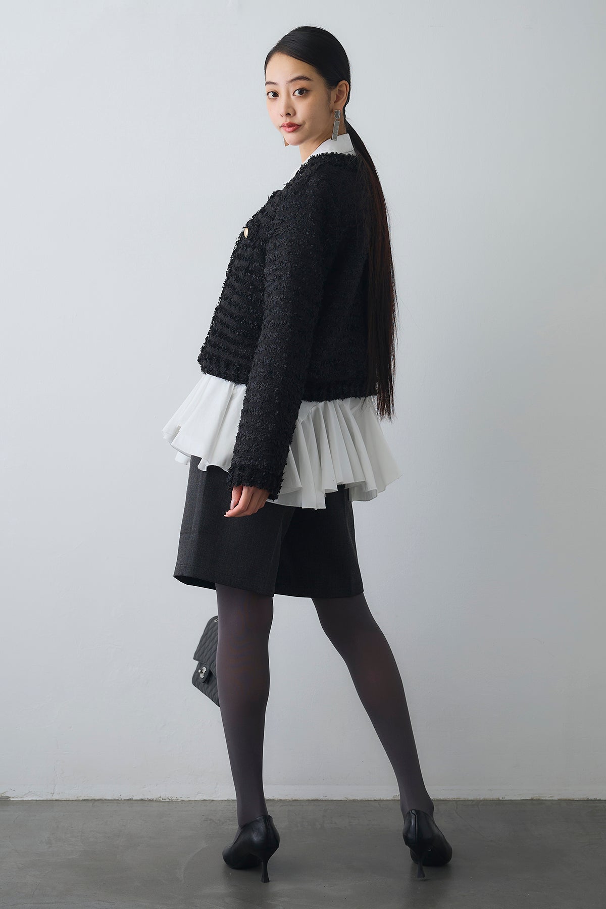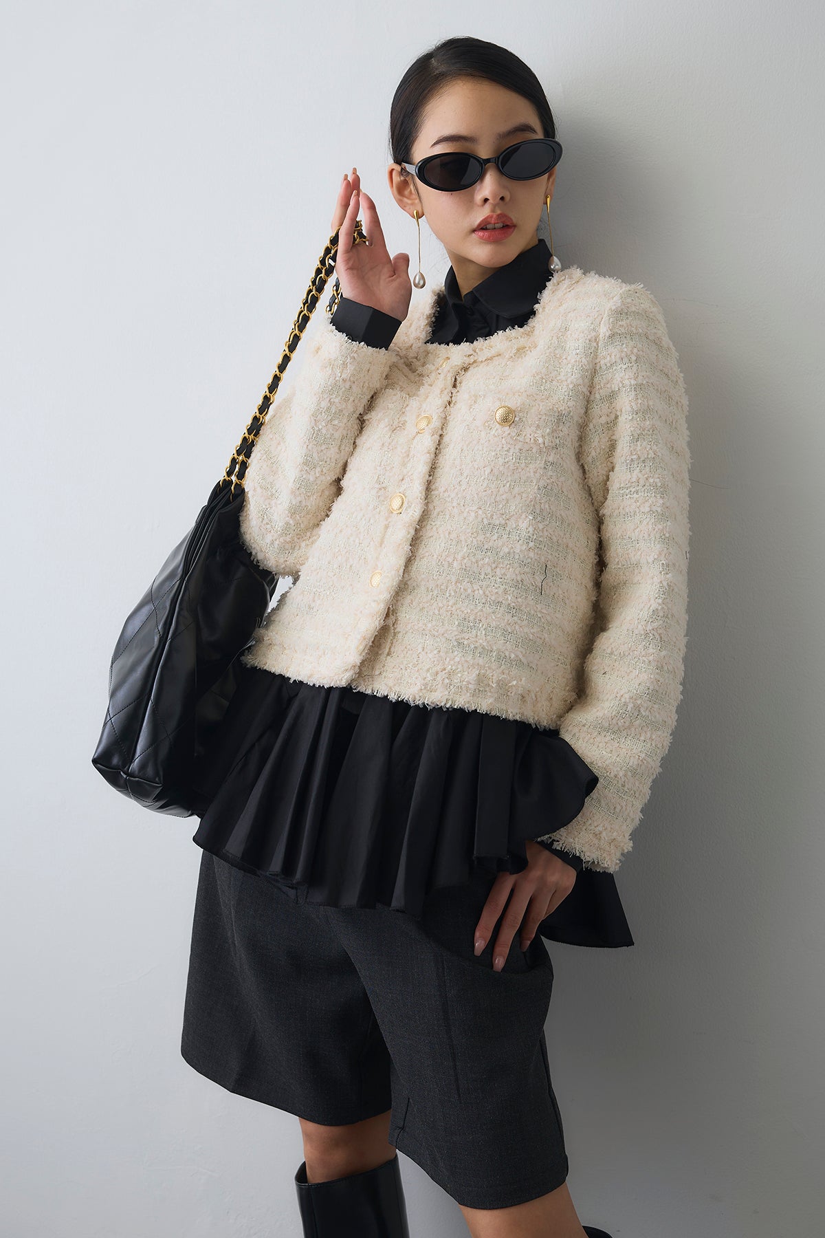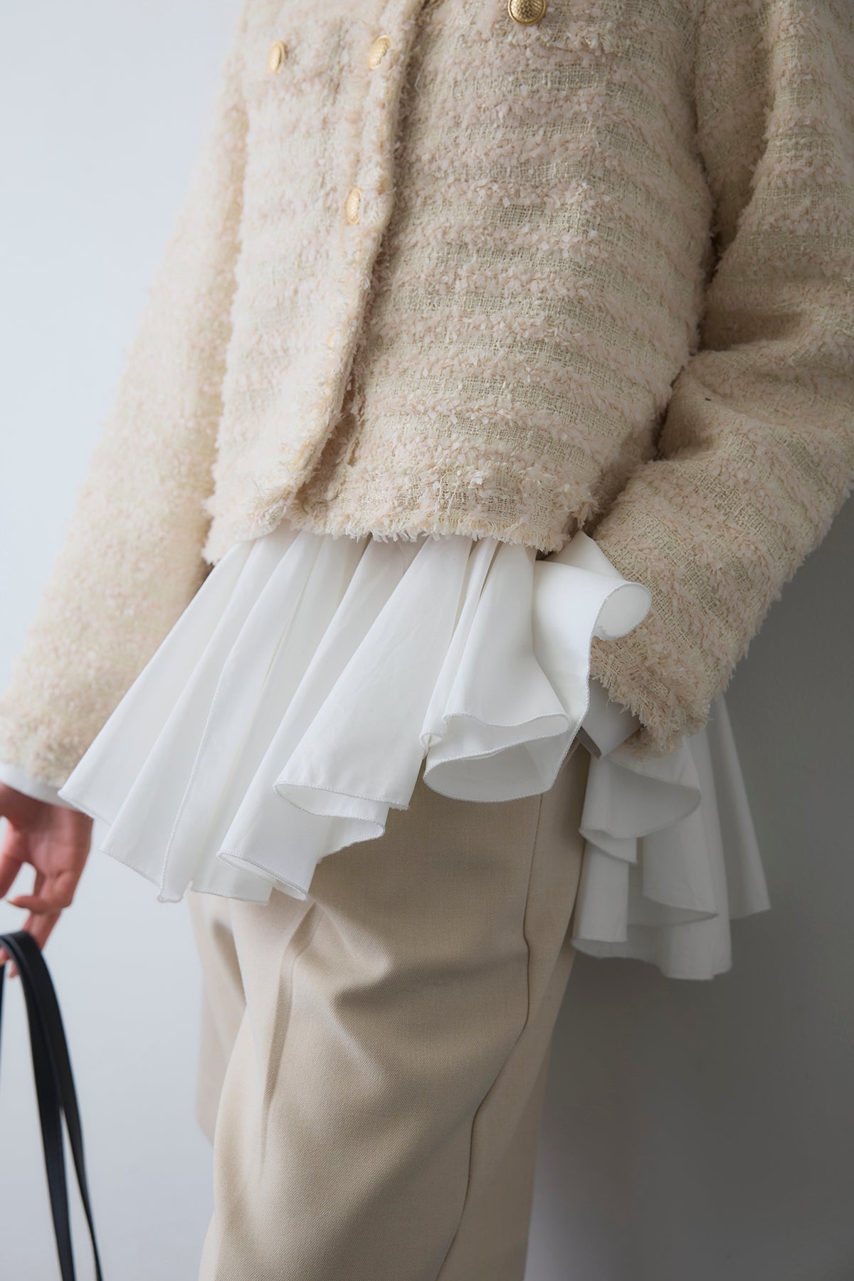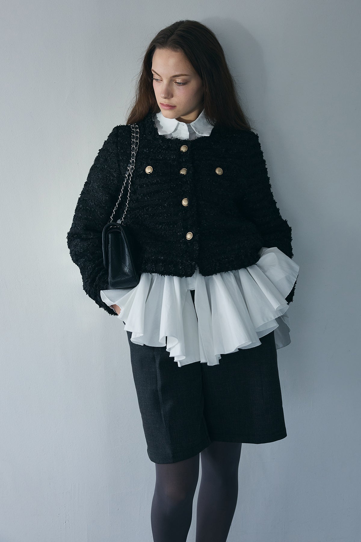 [予約/SET]パネルフレアヘムシャツ+フレンチクラシックツイードジャケット+ウールタッチセンタープレスハーフパンツ(3set)