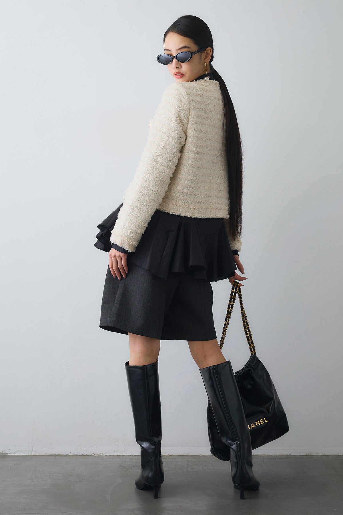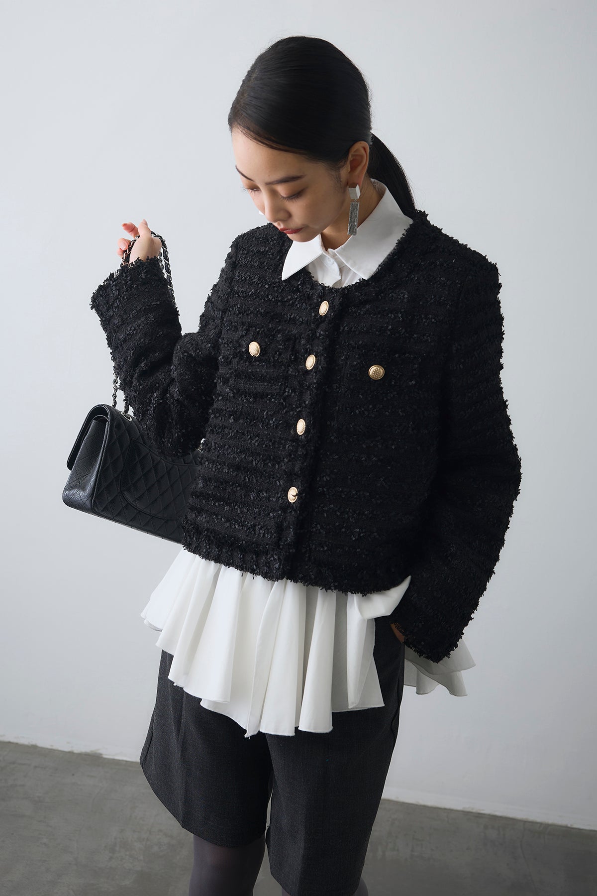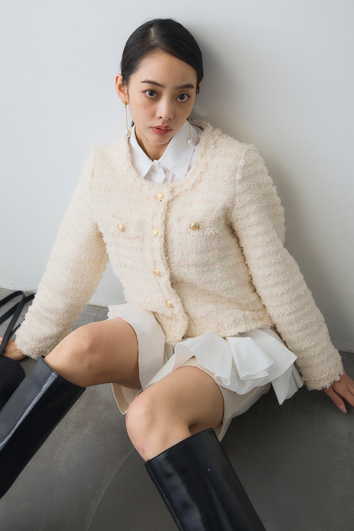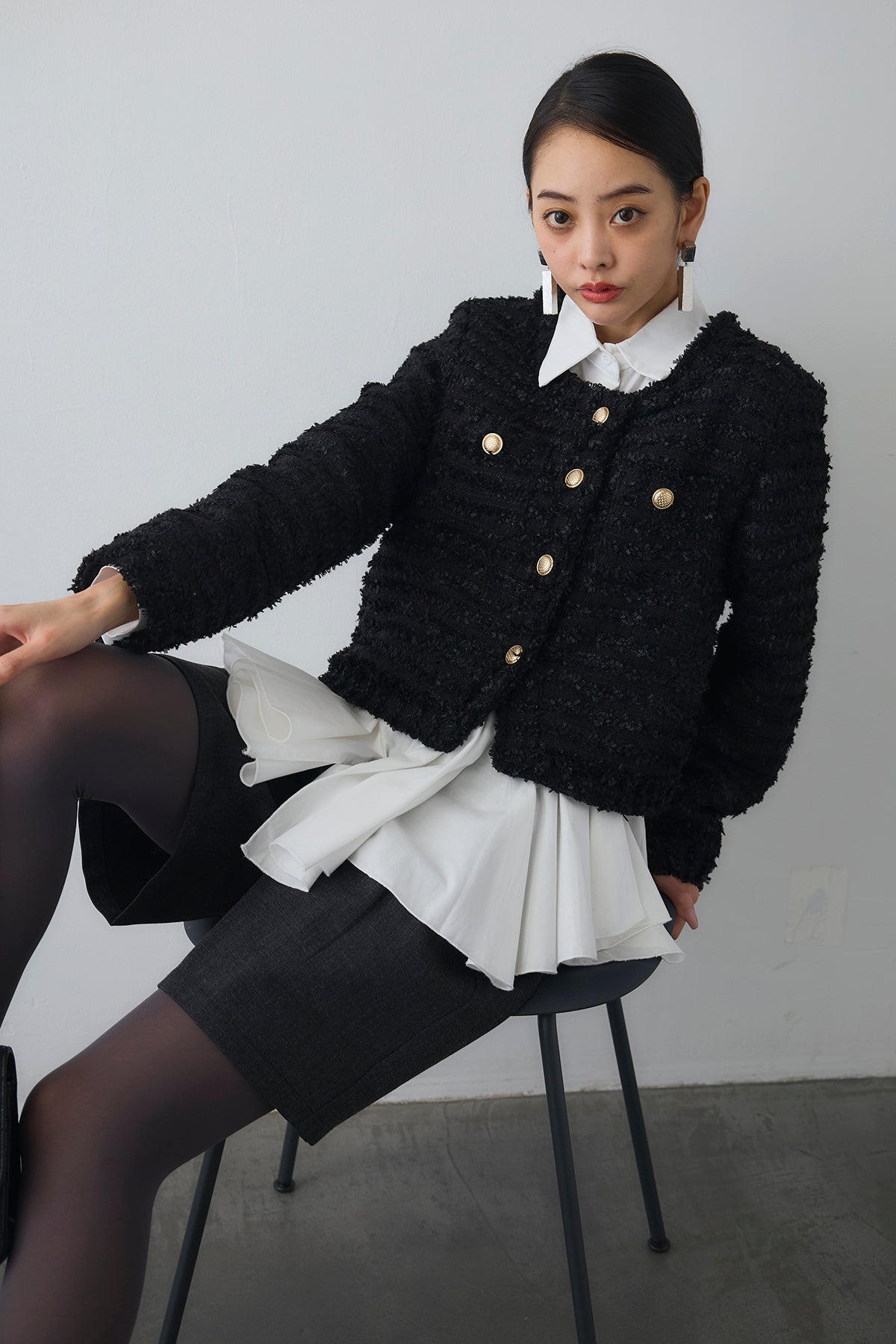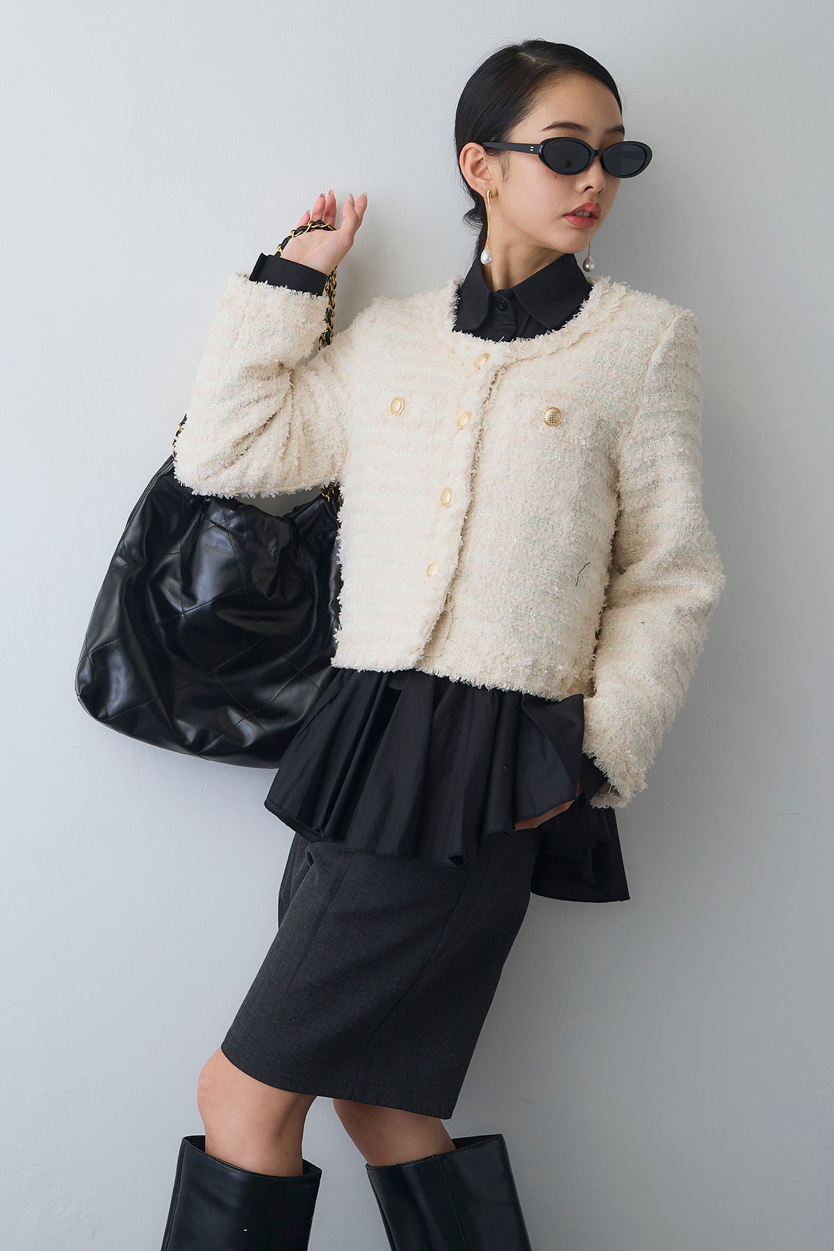 [予約/SET]パネルフレアヘムシャツ+フレンチクラシックツイードジャケット+ウールタッチセンタープレスハーフパンツ(3set)