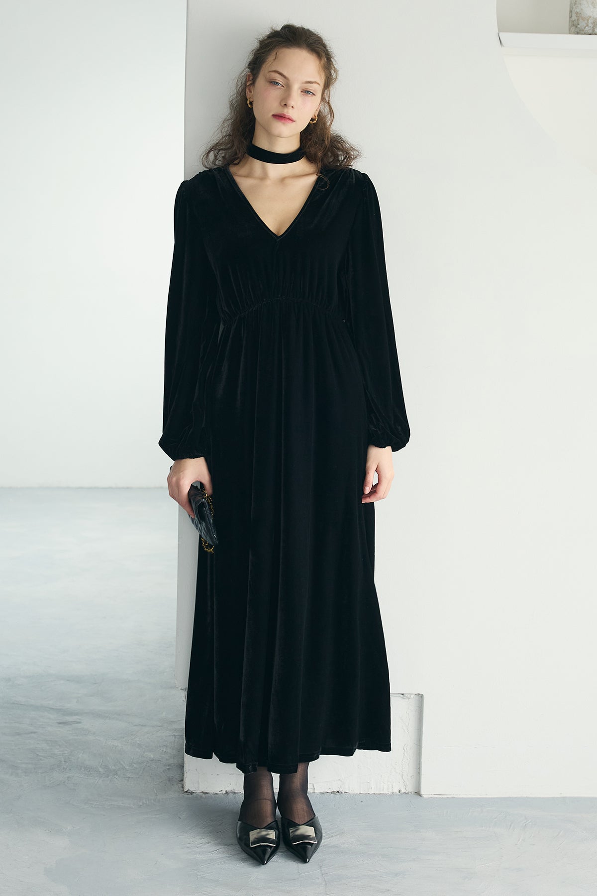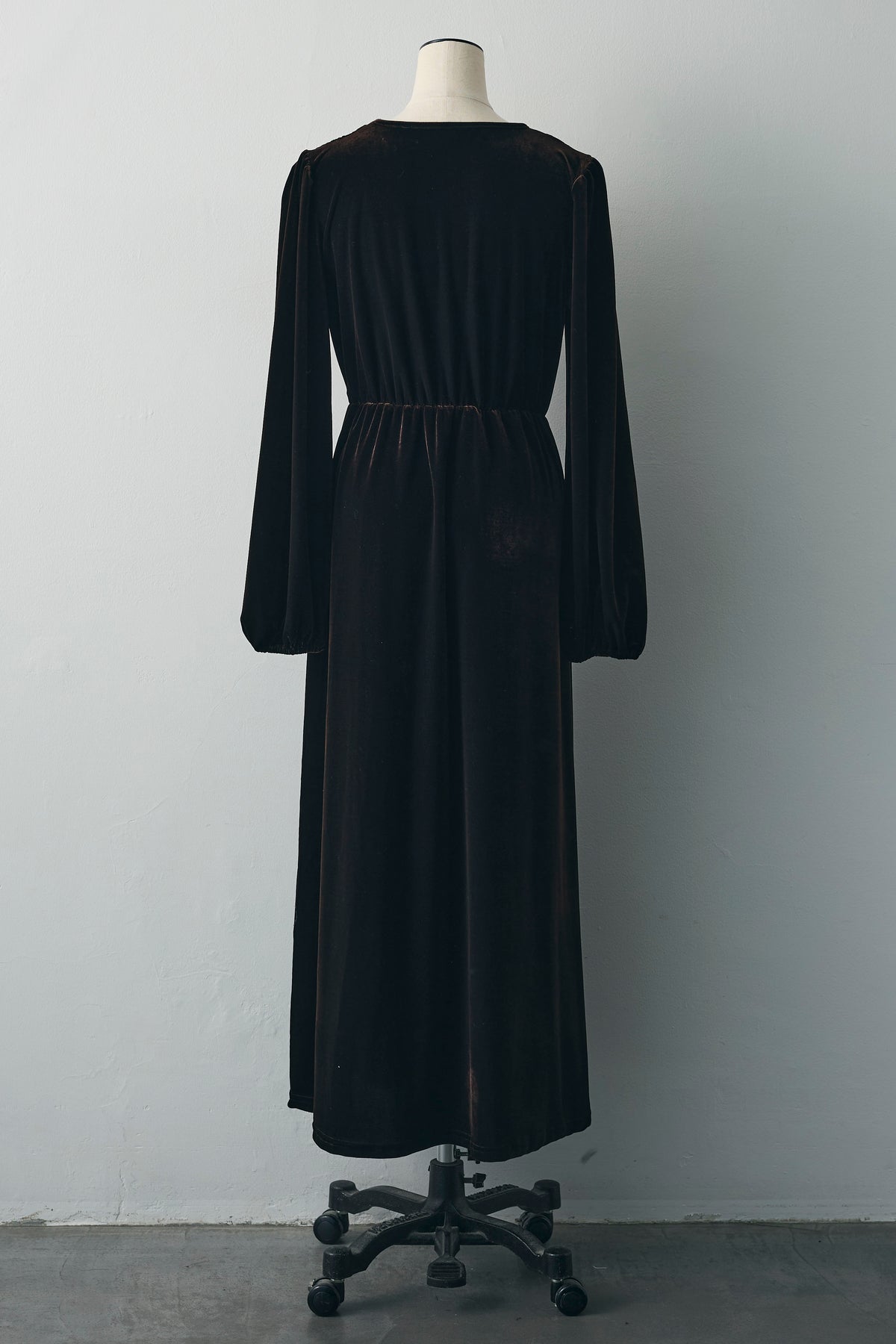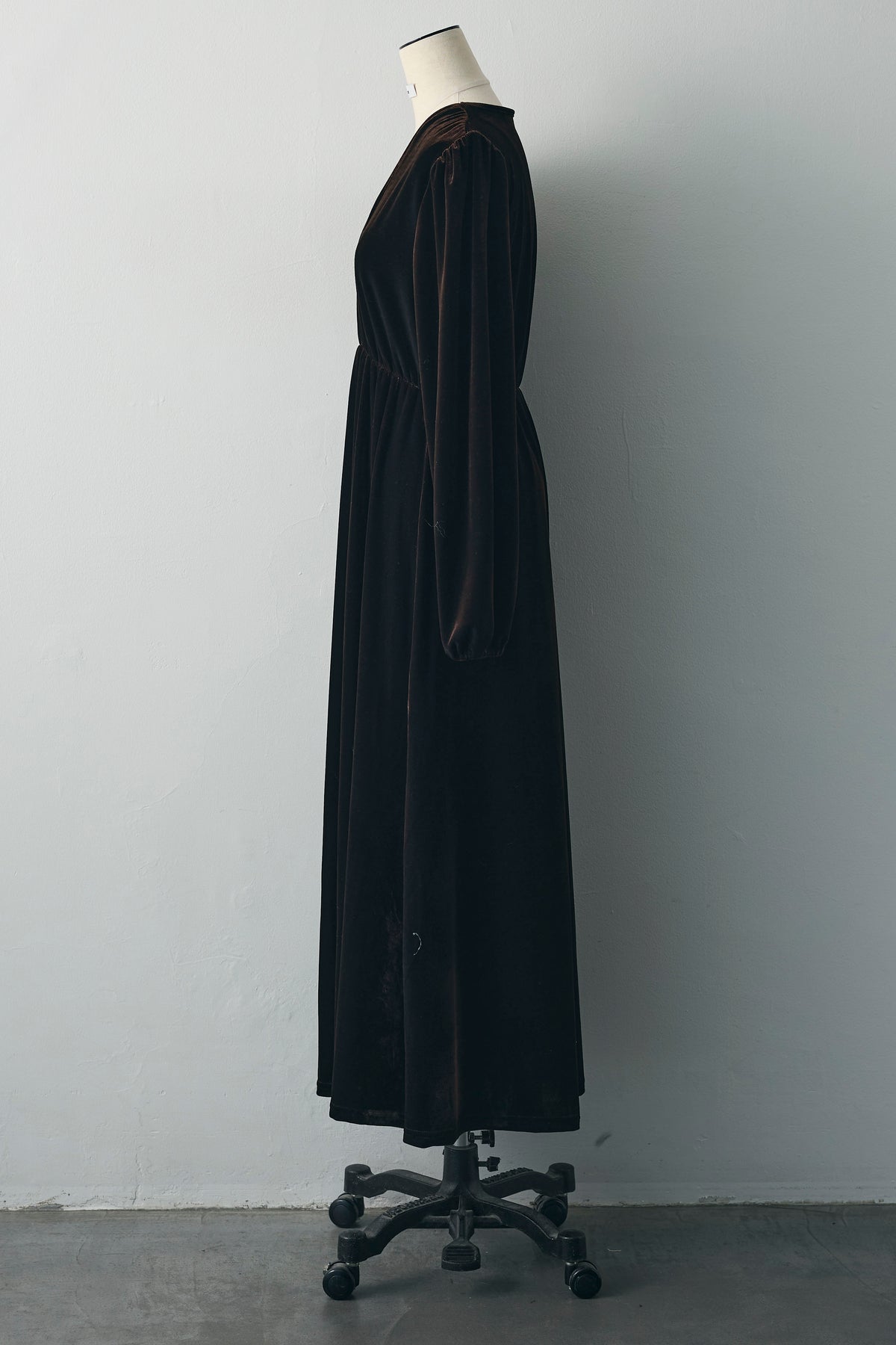 [予約]Vネックベロアロングワンピース