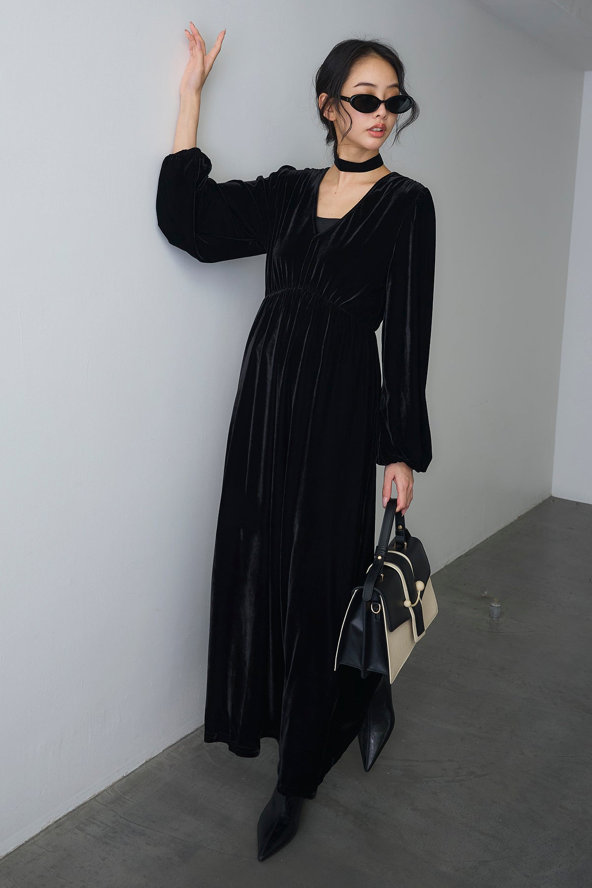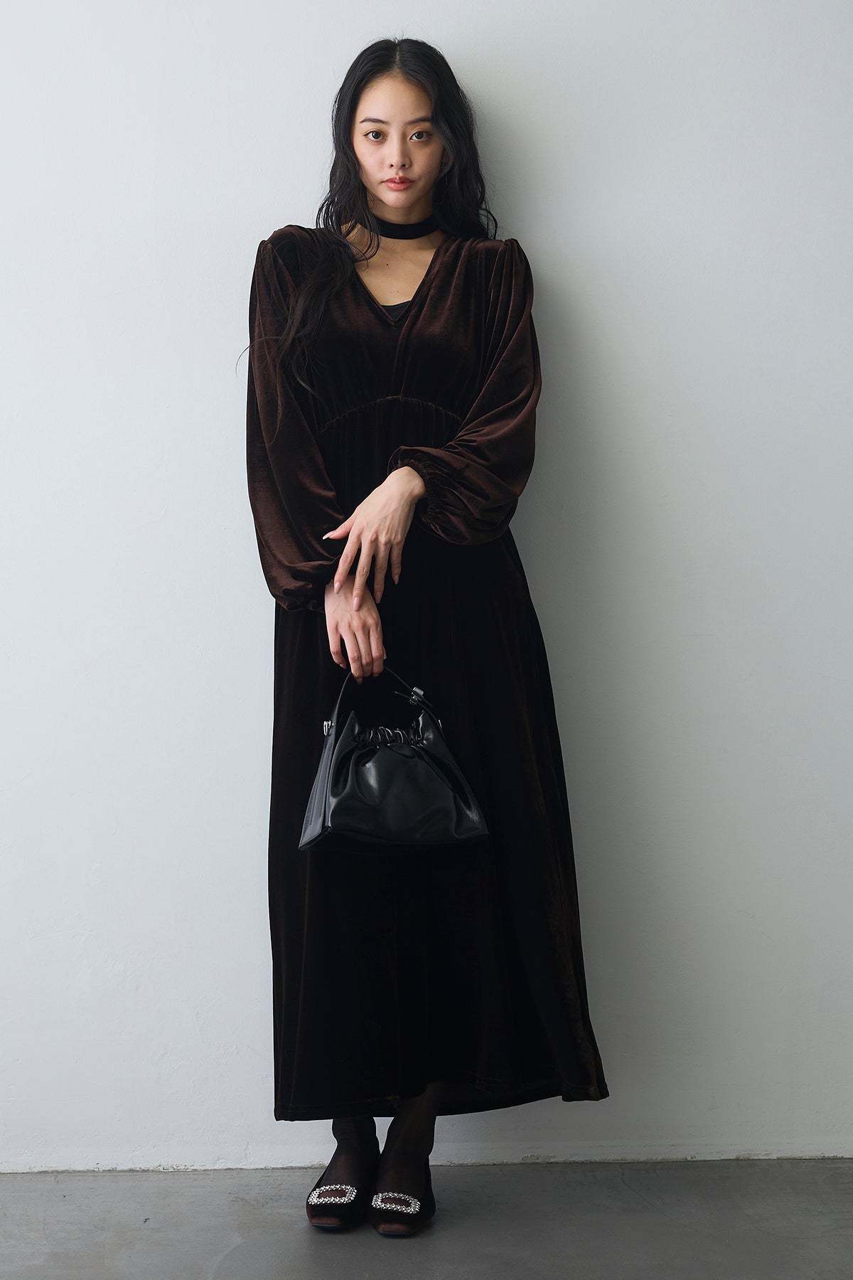 [予約]Vネックベロアロングワンピースを含んだコーデセット商品を探す↓