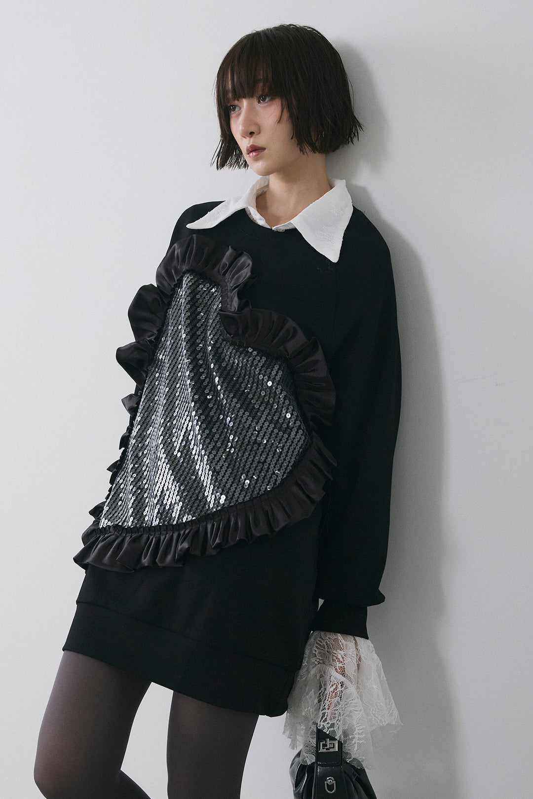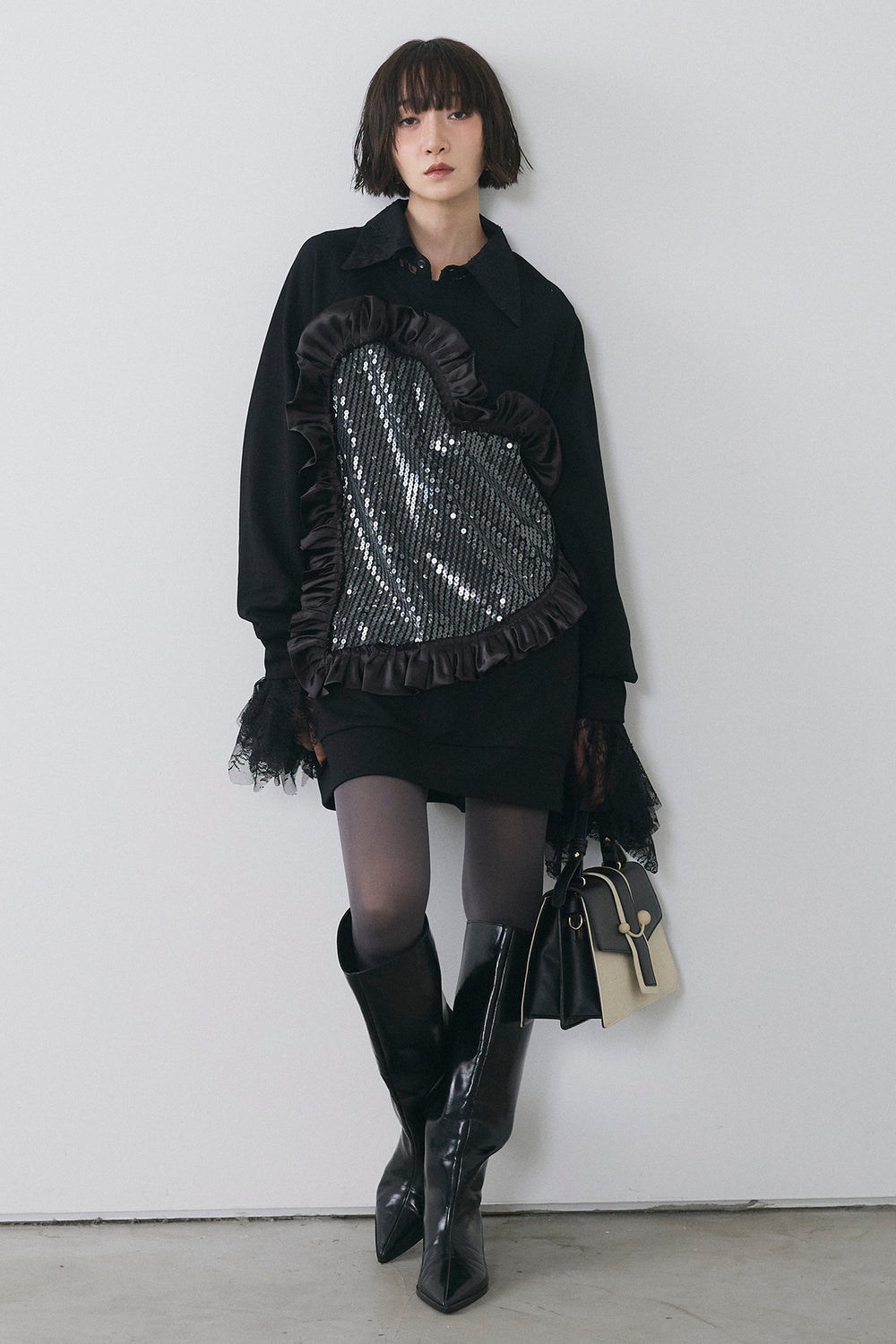 [予約/SET]ロマンティックフレアレースブラウス+スパンコールハートモチーフスウェットミニワンピ(2set)