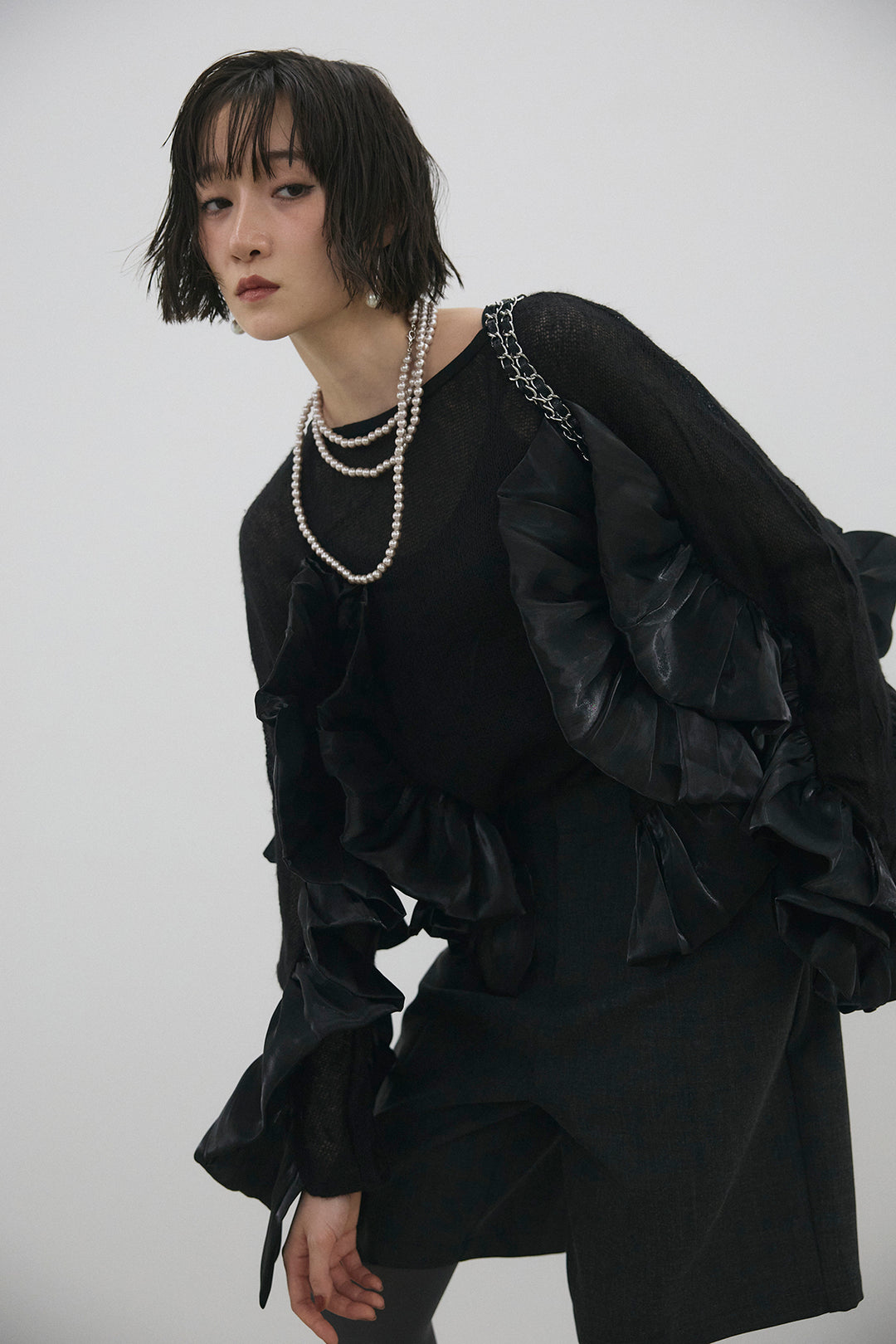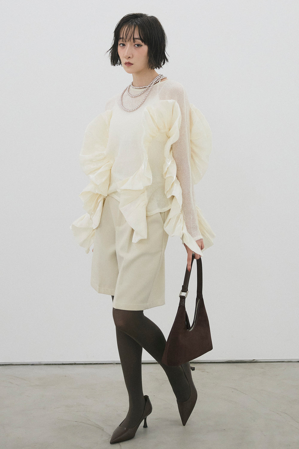[予約/SET]フローティングフリルドッキングシアーニット+ウールタッチセンタープレスハーフパンツ(2set)