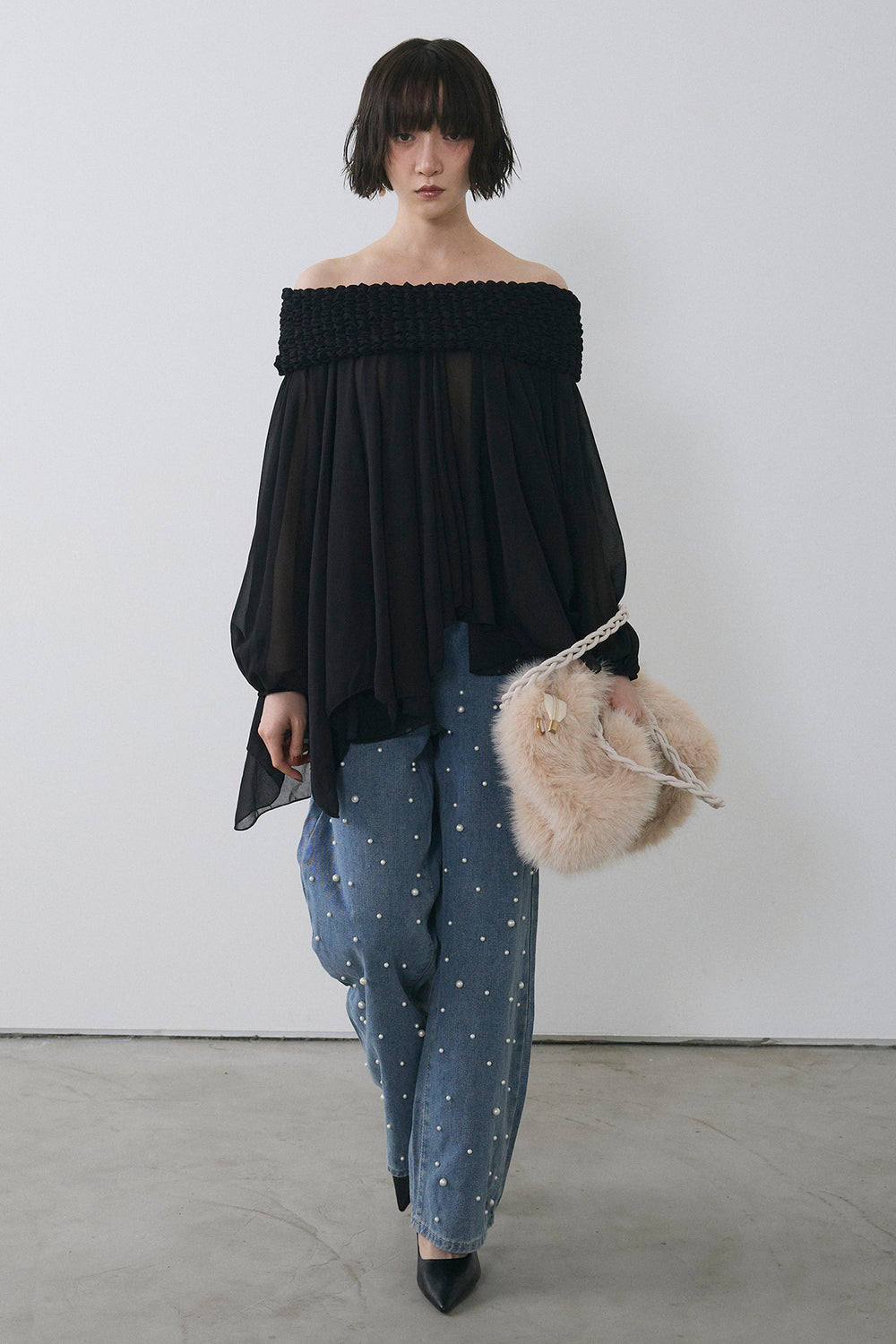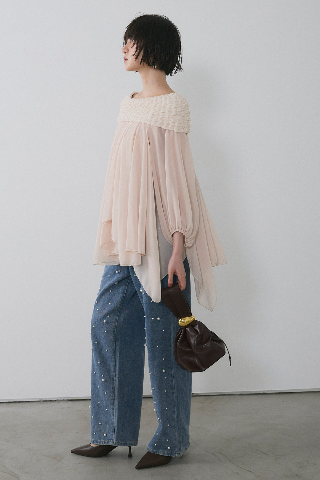 [予約/SET]シャーリングエアリーチュニック+ランダムパールハイウエストストレートデニム(2set)