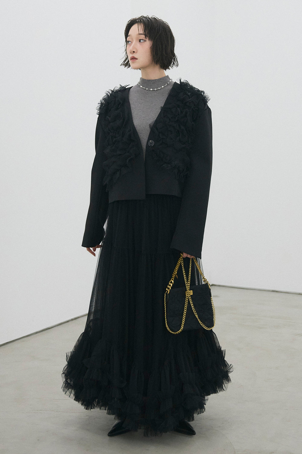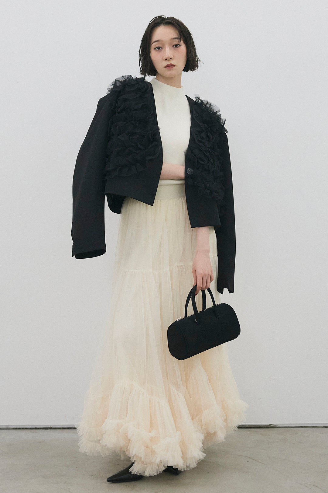 [予約/SET]ハーフスリーブハイネックニット+ホイップチュールショート丈ジャケット+スウィートチュールフリルスカート(3set)