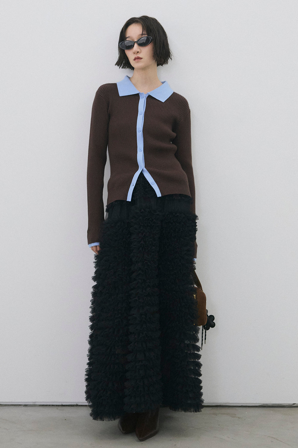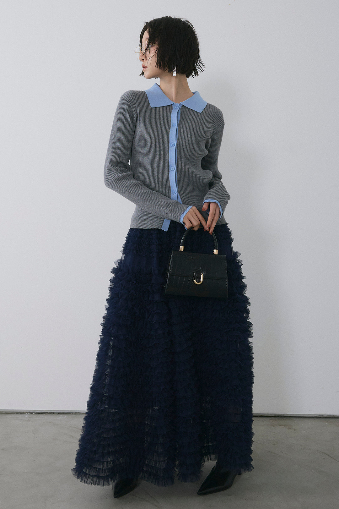 [予約/SET]配色襟ニットポロ+ホイップチュールティアードスカート(2set)
