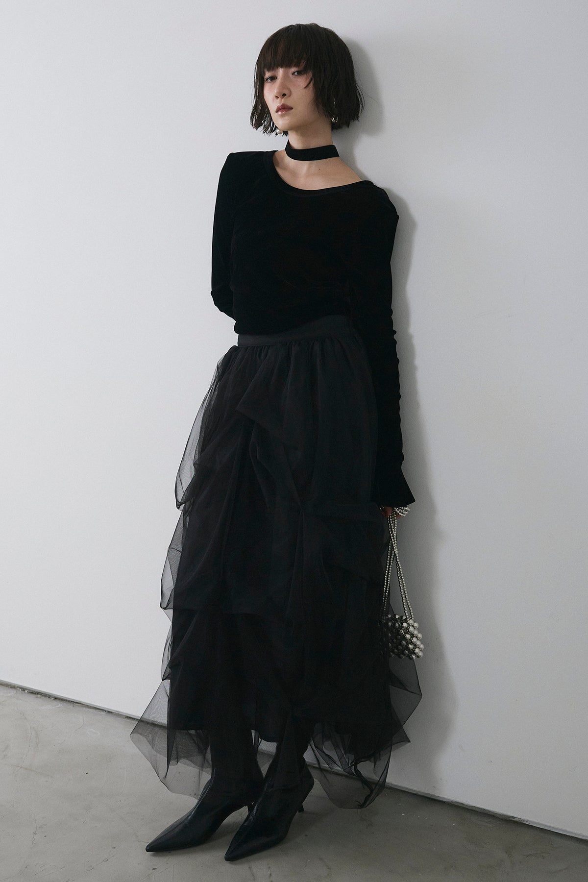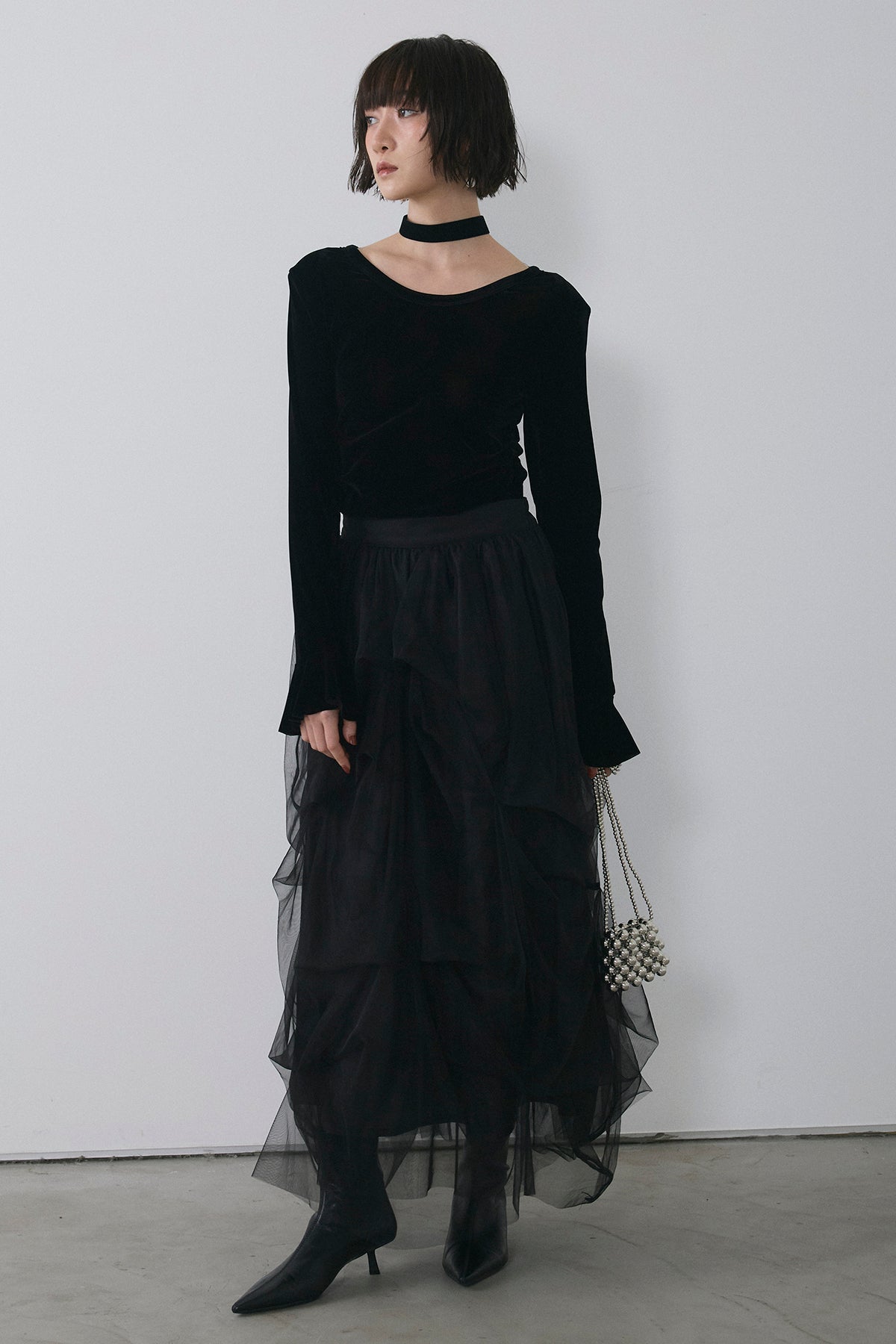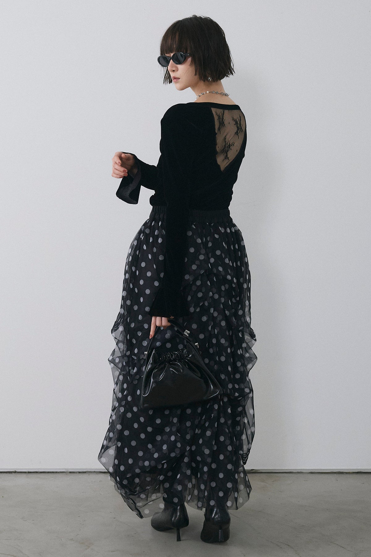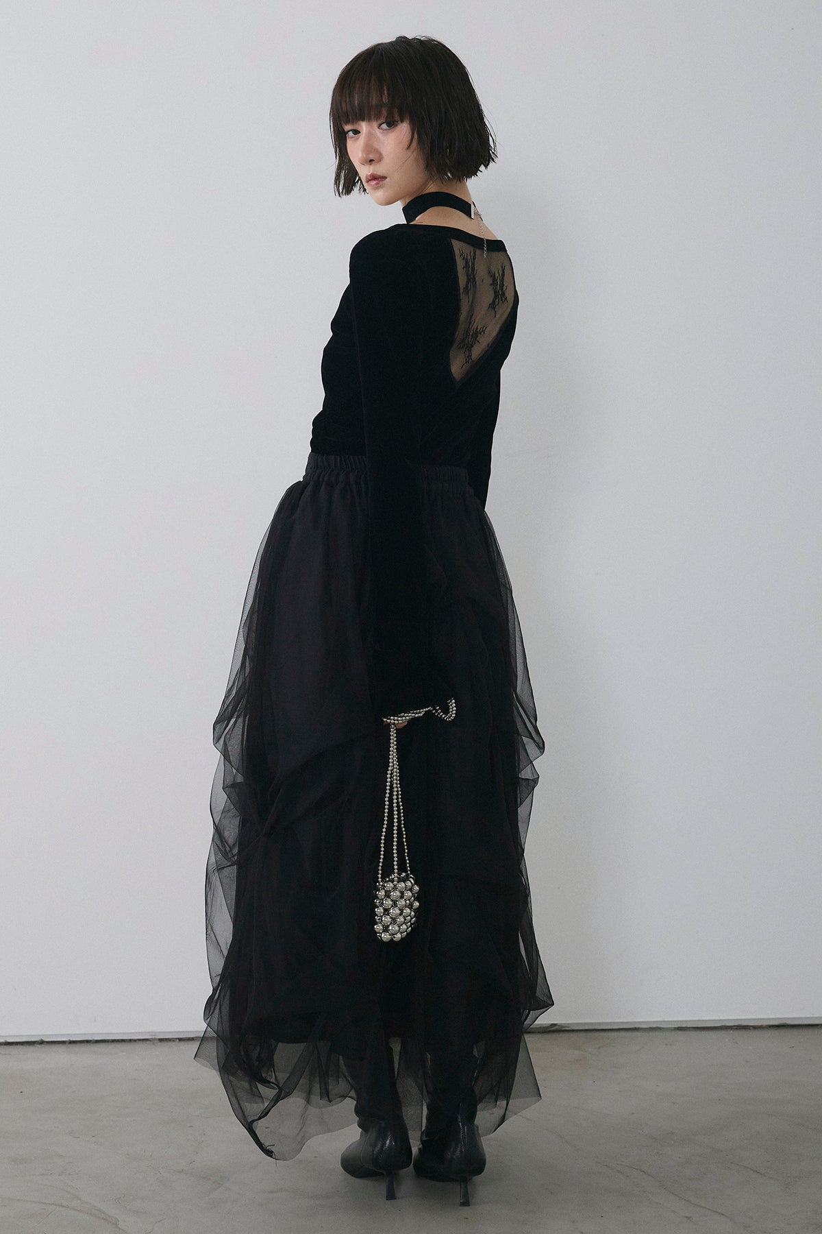 [予約/SET]バックレースベロアトップス+マルチパターンタックチュールスカート(2set)