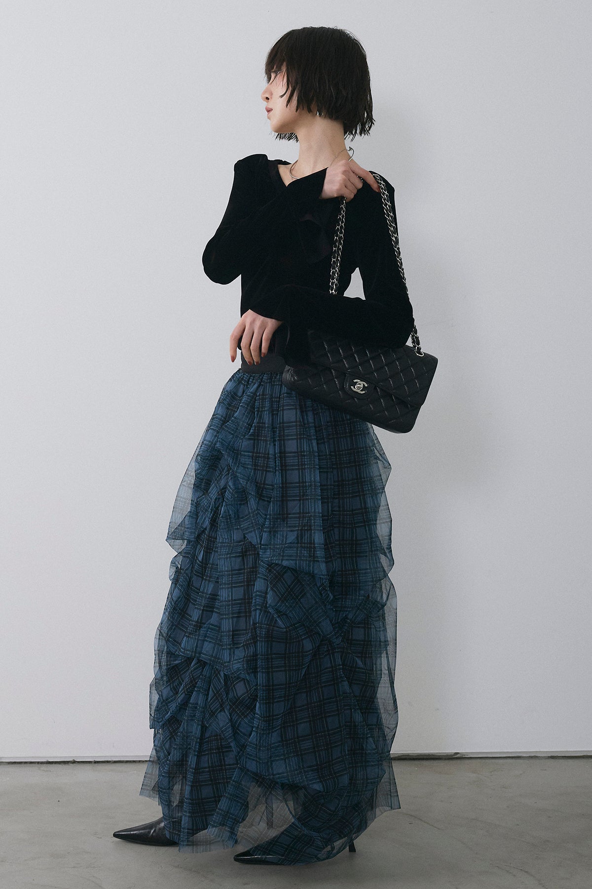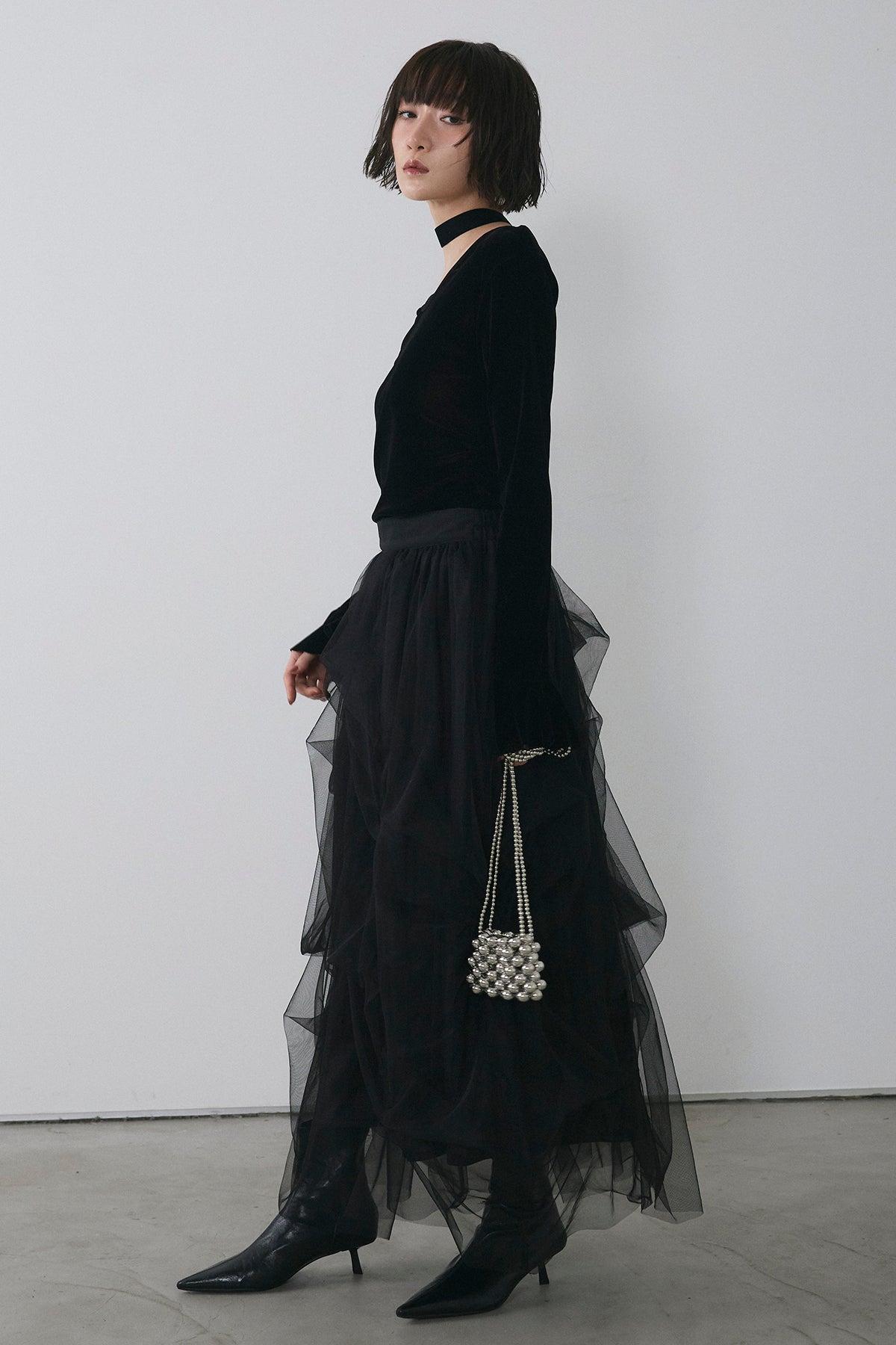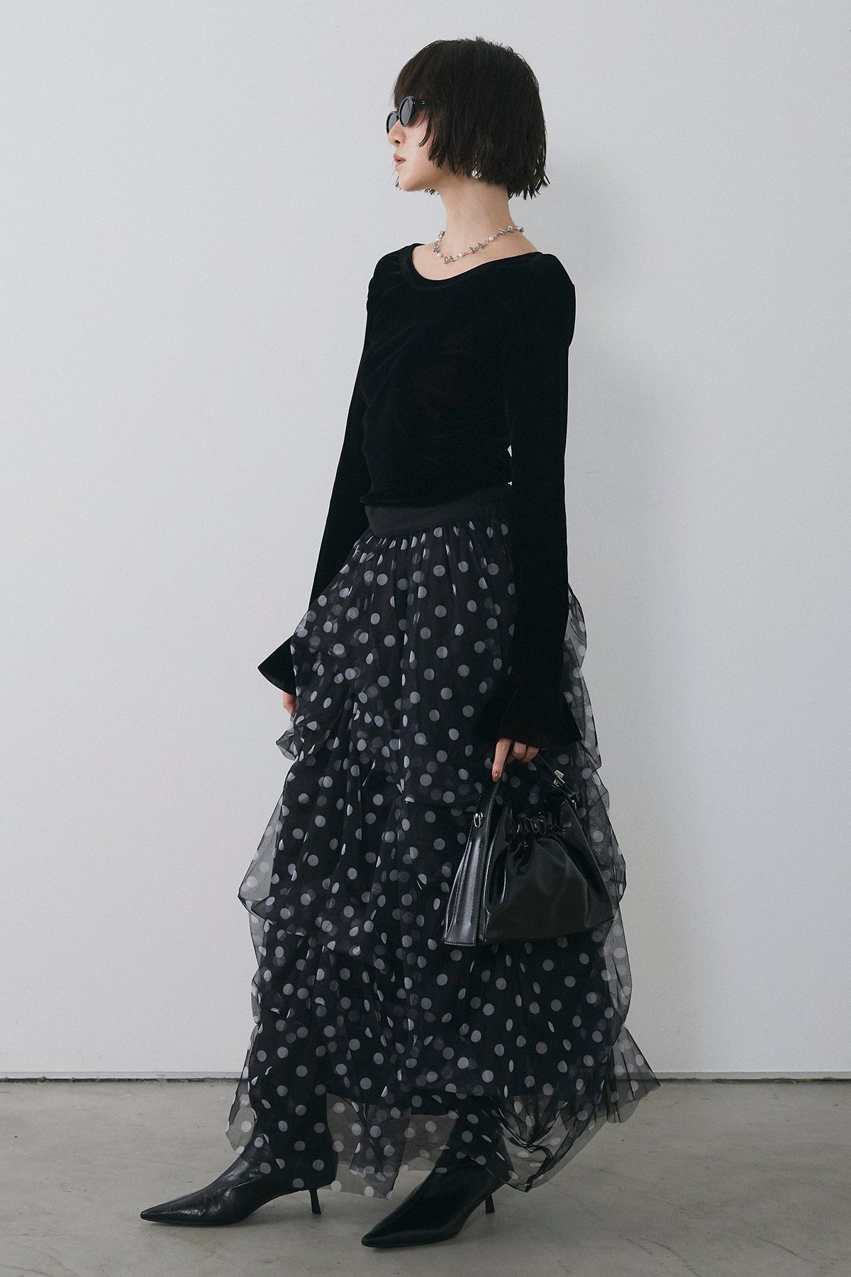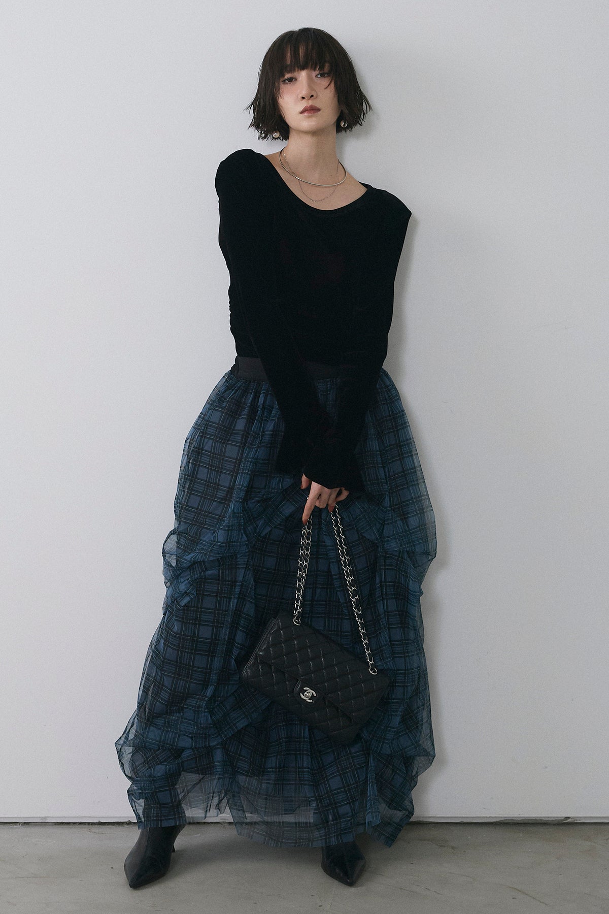 [予約/SET]バックレースベロアトップス+マルチパターンタックチュールスカート(2set)