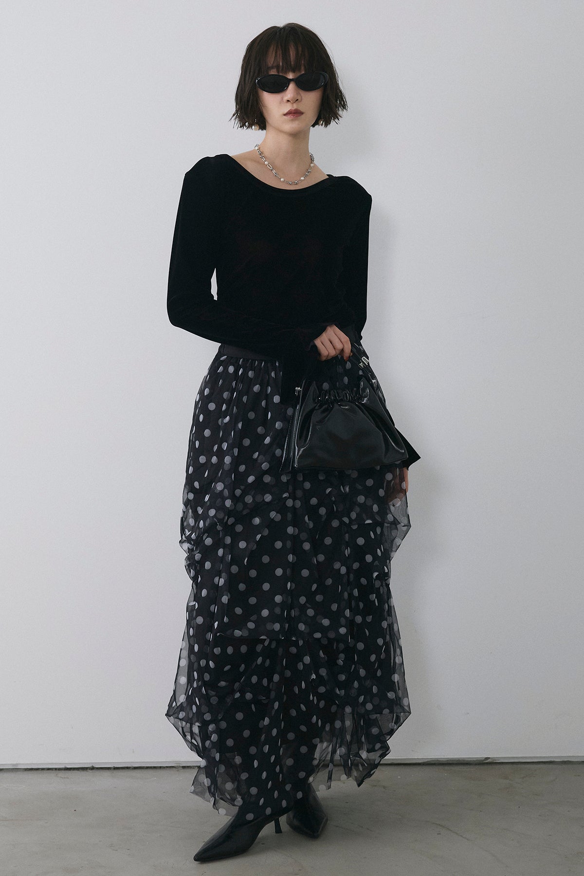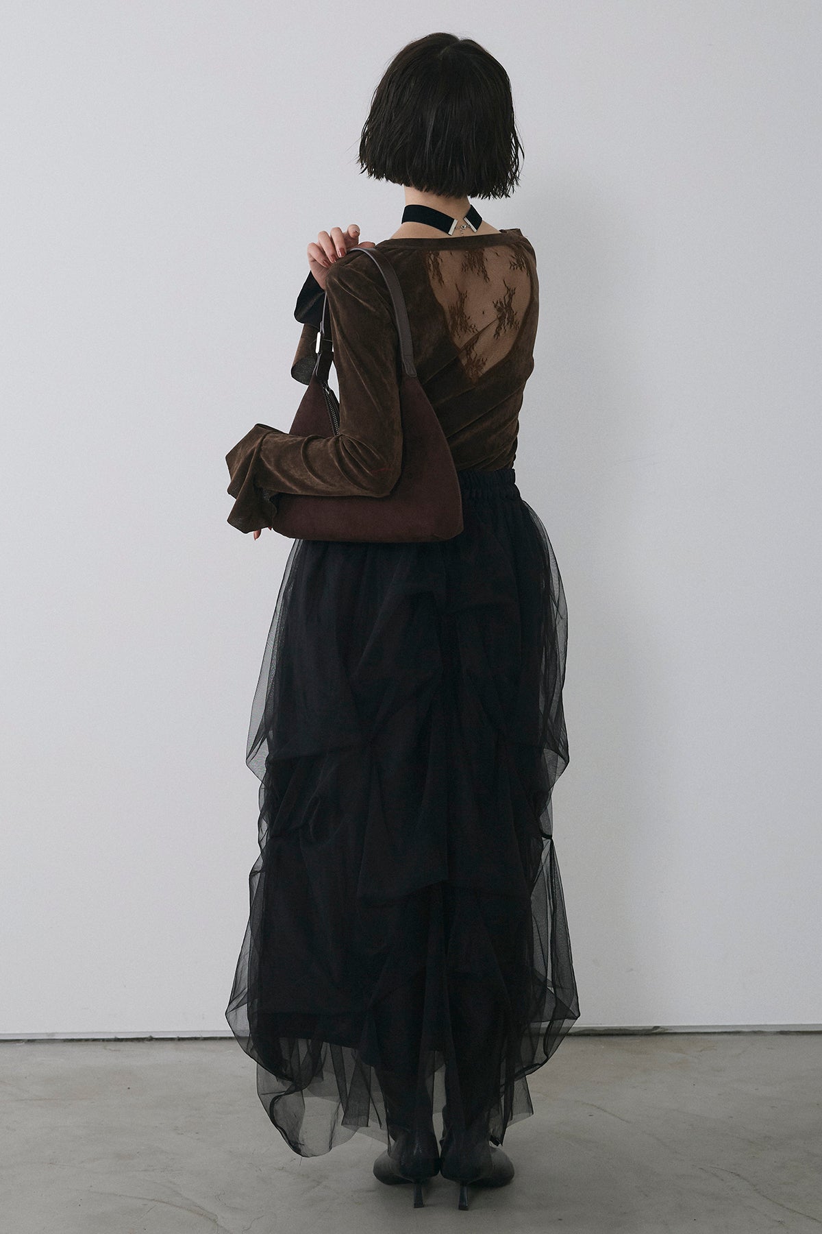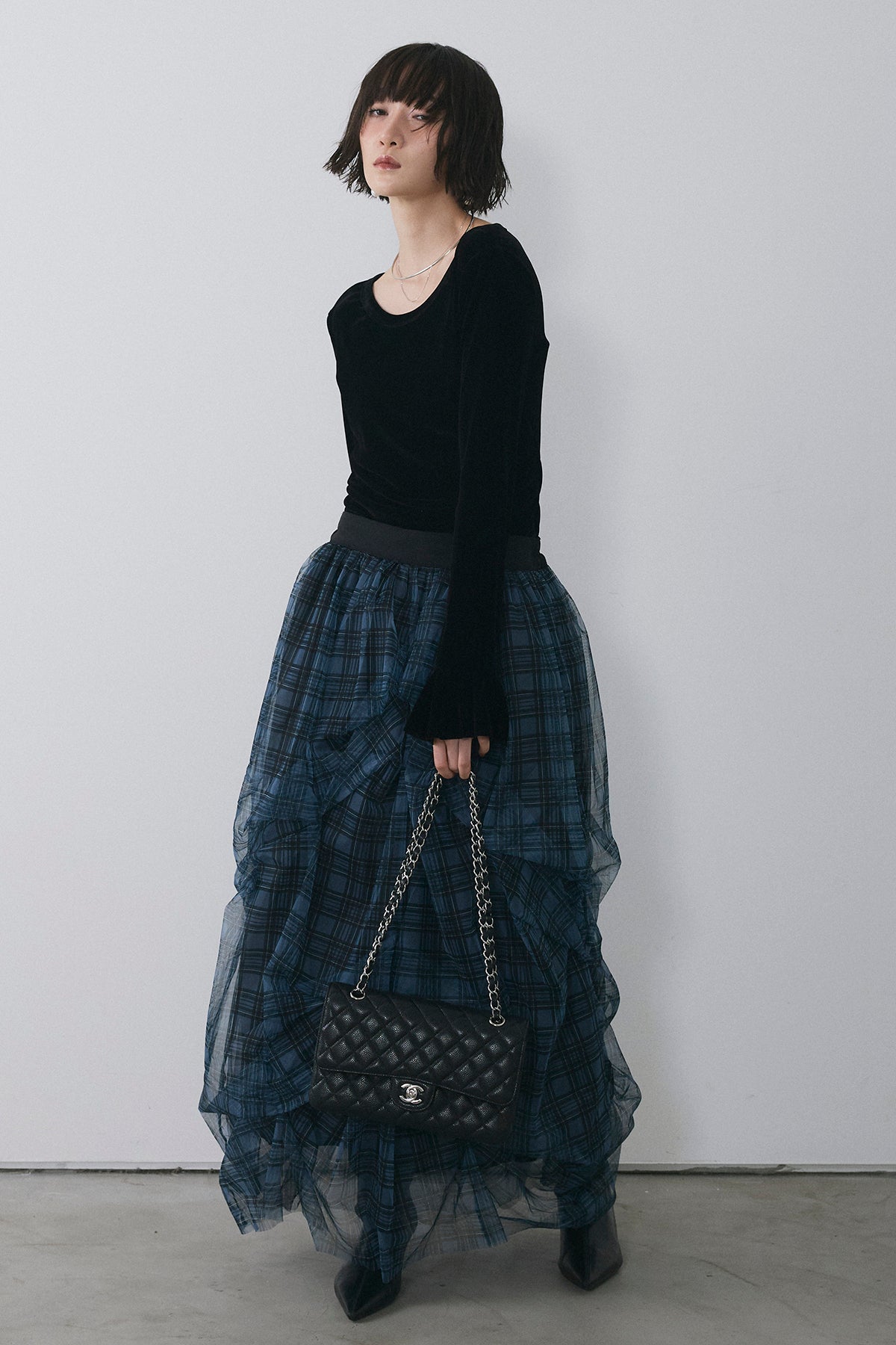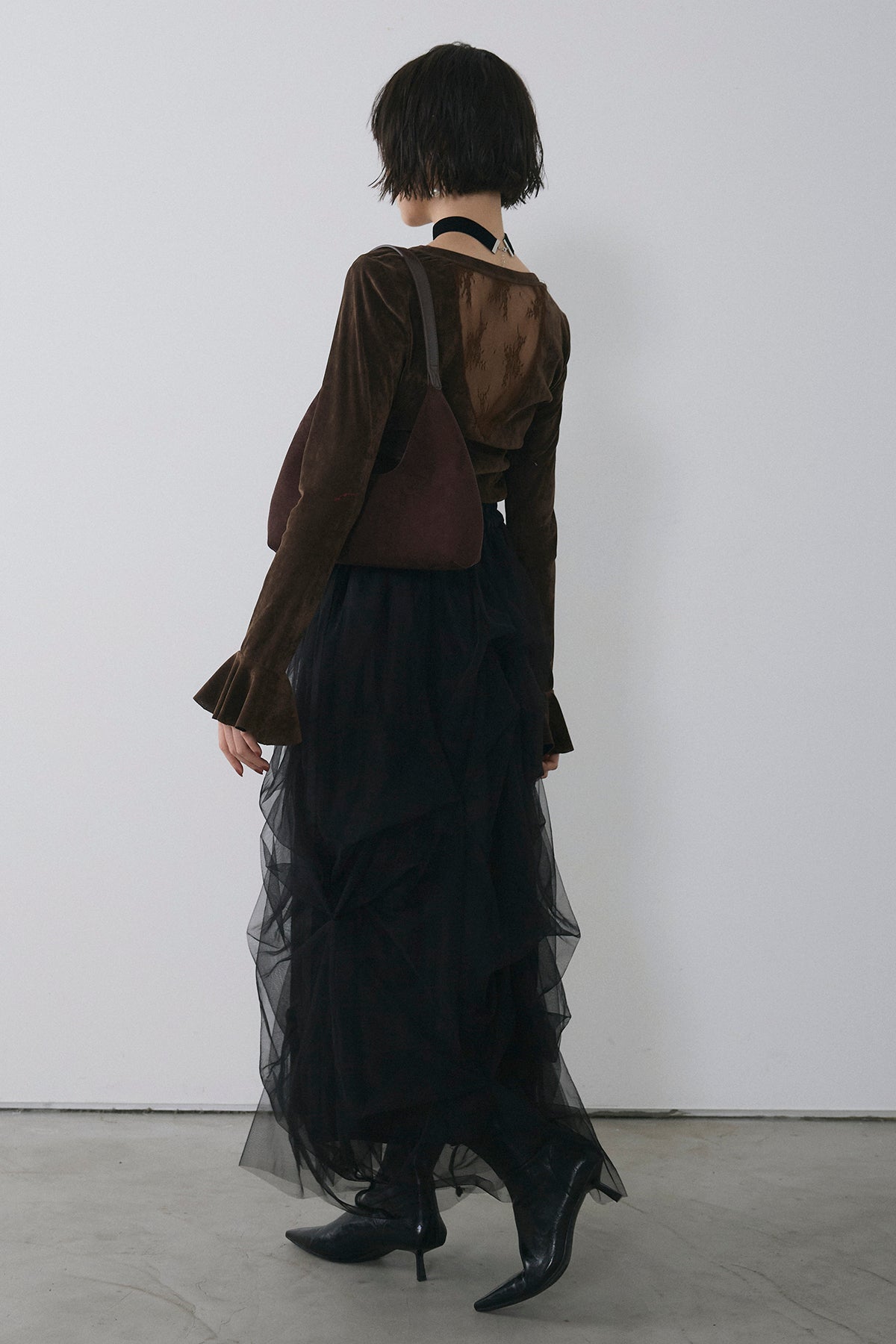[予約/SET]バックレースベロアトップス+マルチパターンタックチュールスカート(2set)