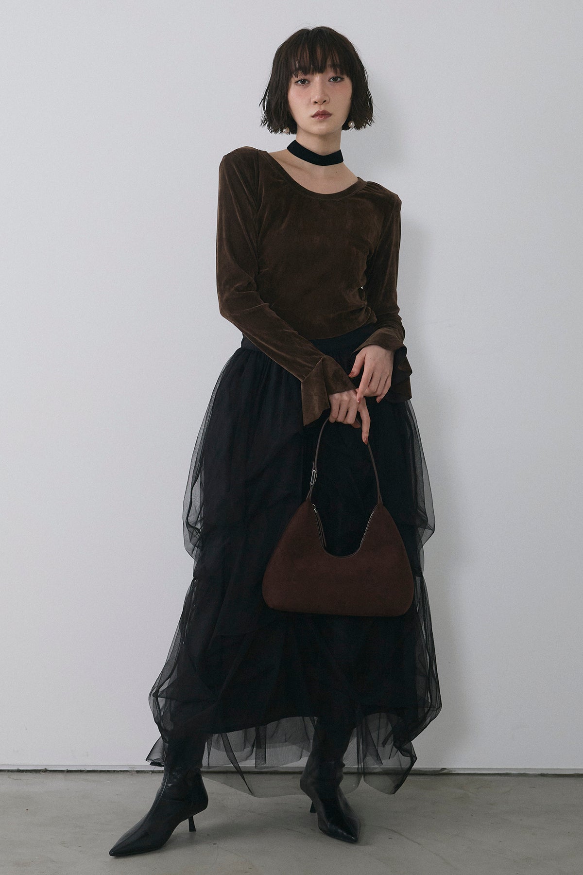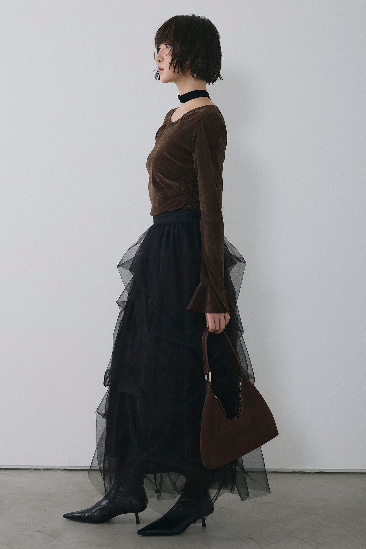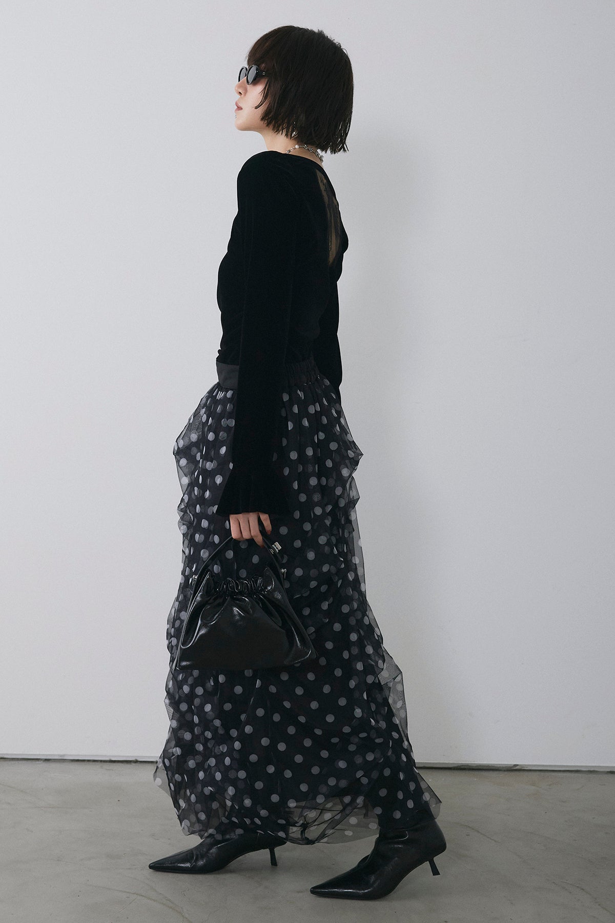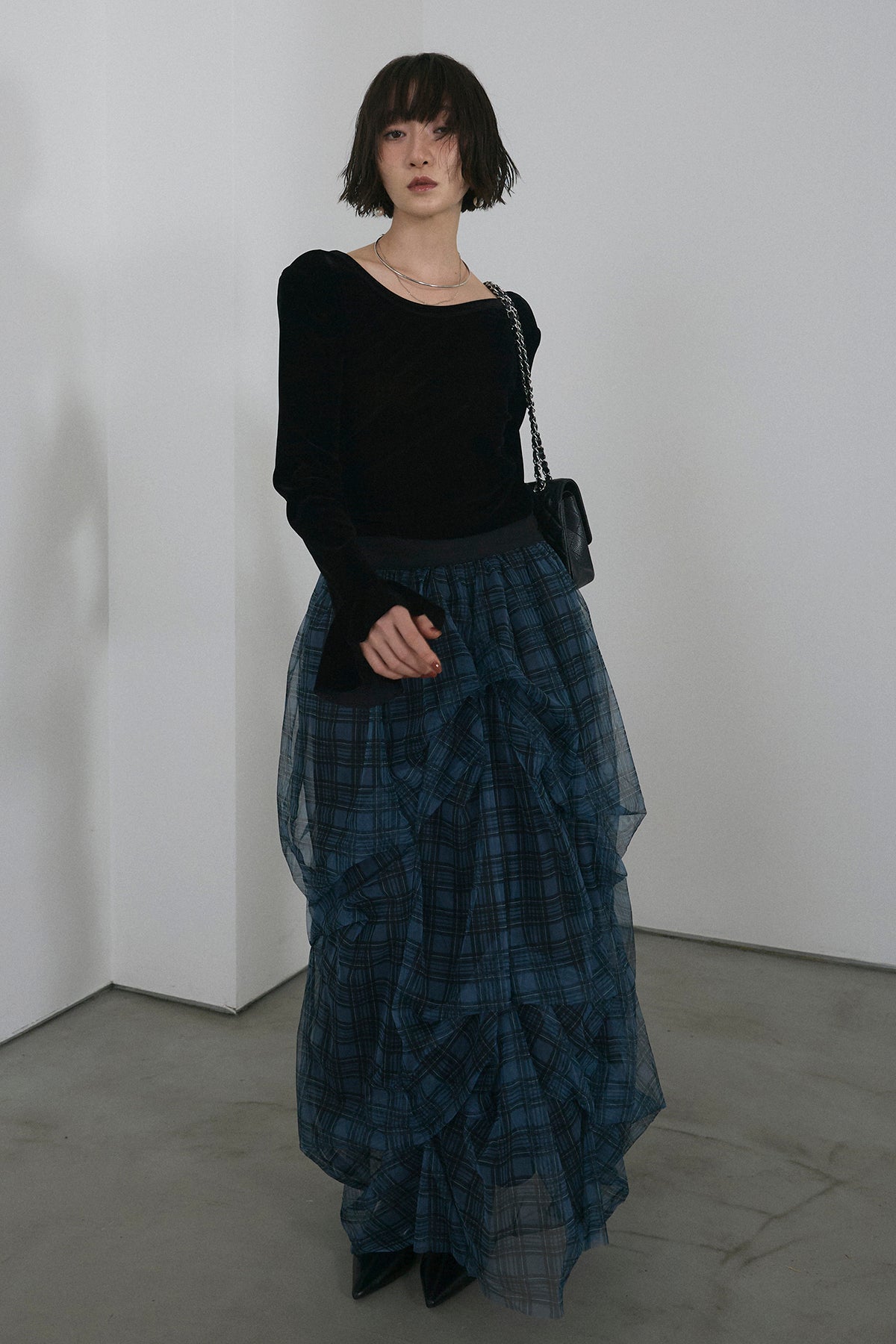 [予約/SET]バックレースベロアトップス+マルチパターンタックチュールスカート(2set)