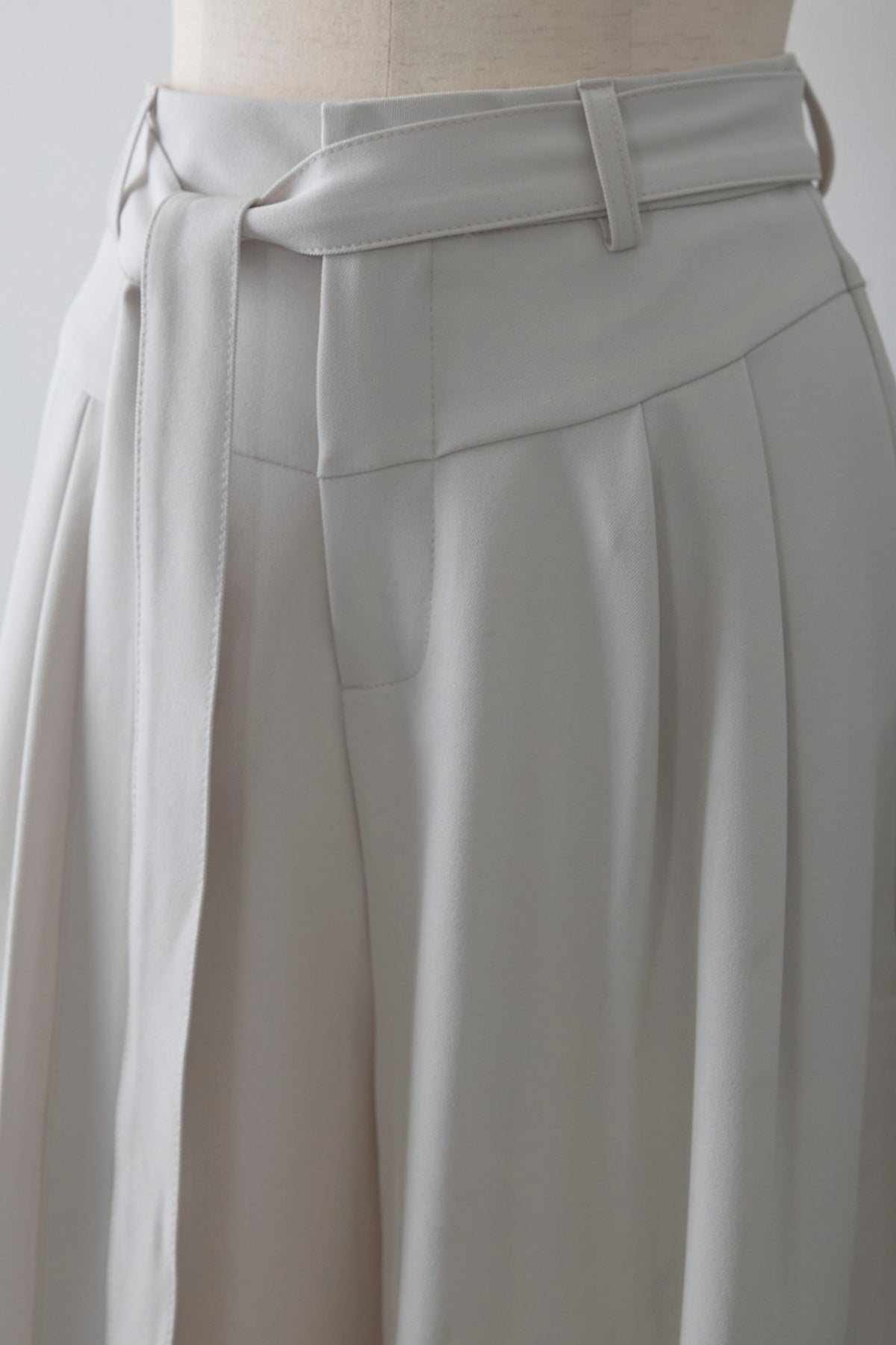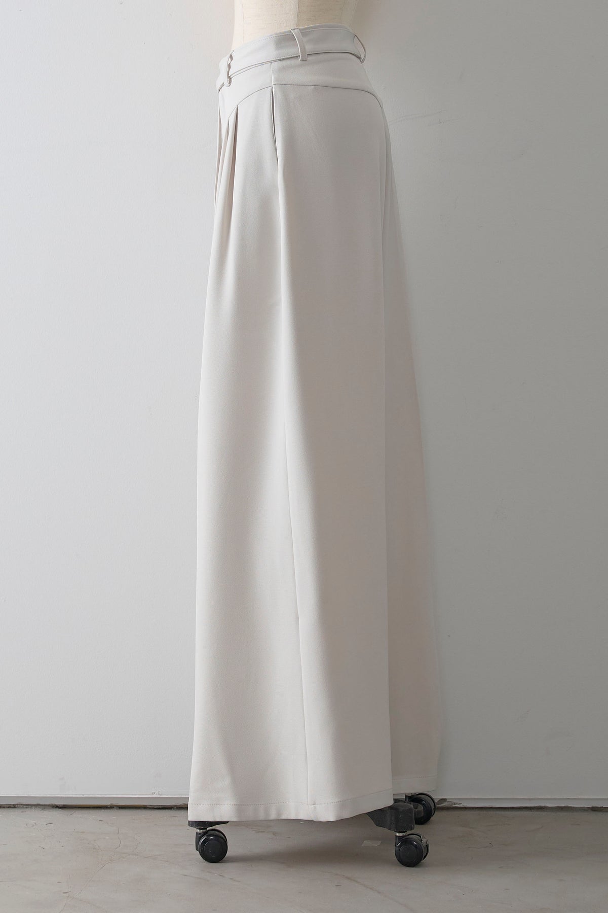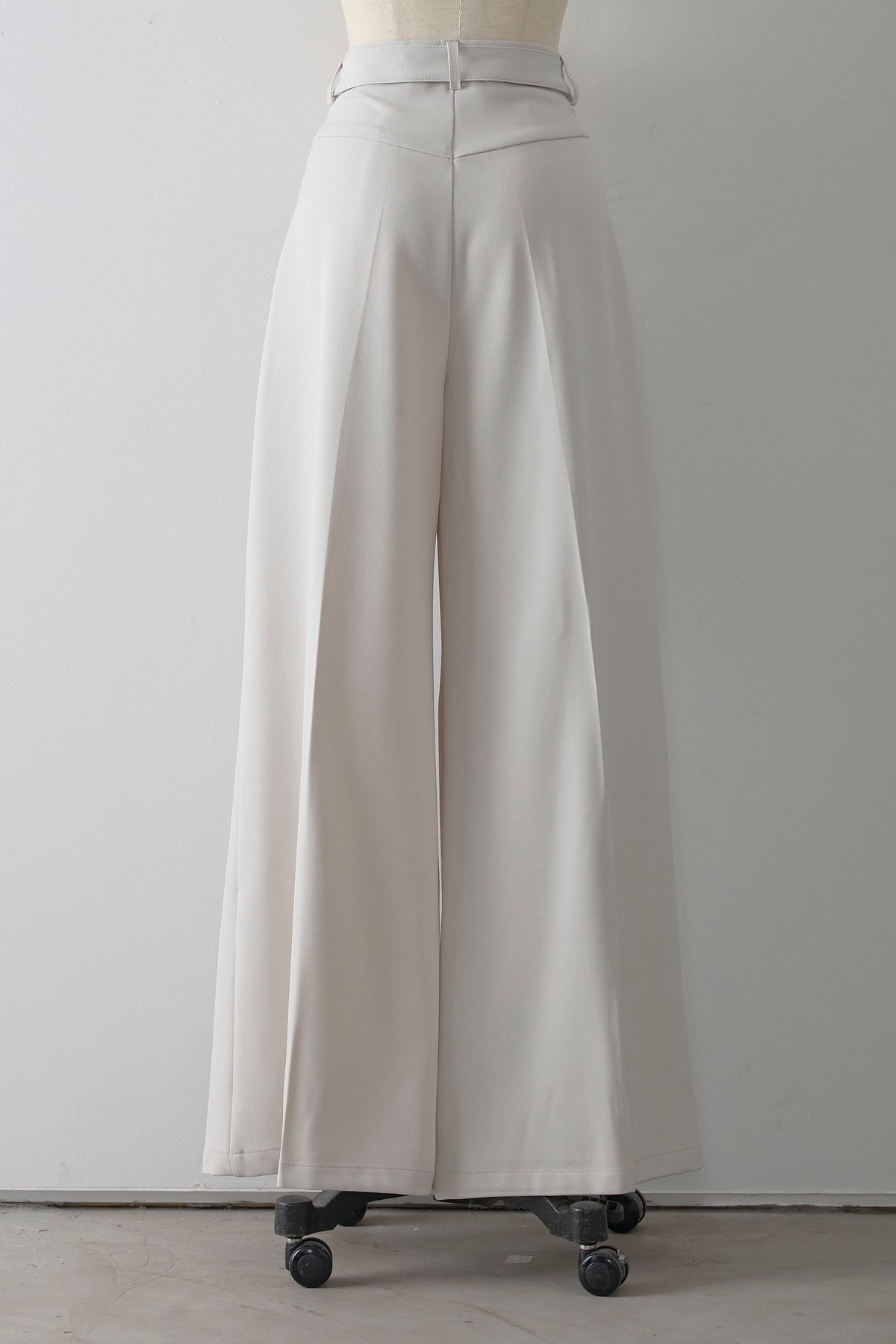 とろみのある上品な素材感が魅力のハイウエストワイドパンツ。フロントタックと落ち感のあるシルエットが、脚長効果と大人のリラクシー感を演出してくれます。リボンベルトでウエストマークすれば、さらにメリハリのあるスタイルに。オンオフ問わず着回せる万能な一本です。
