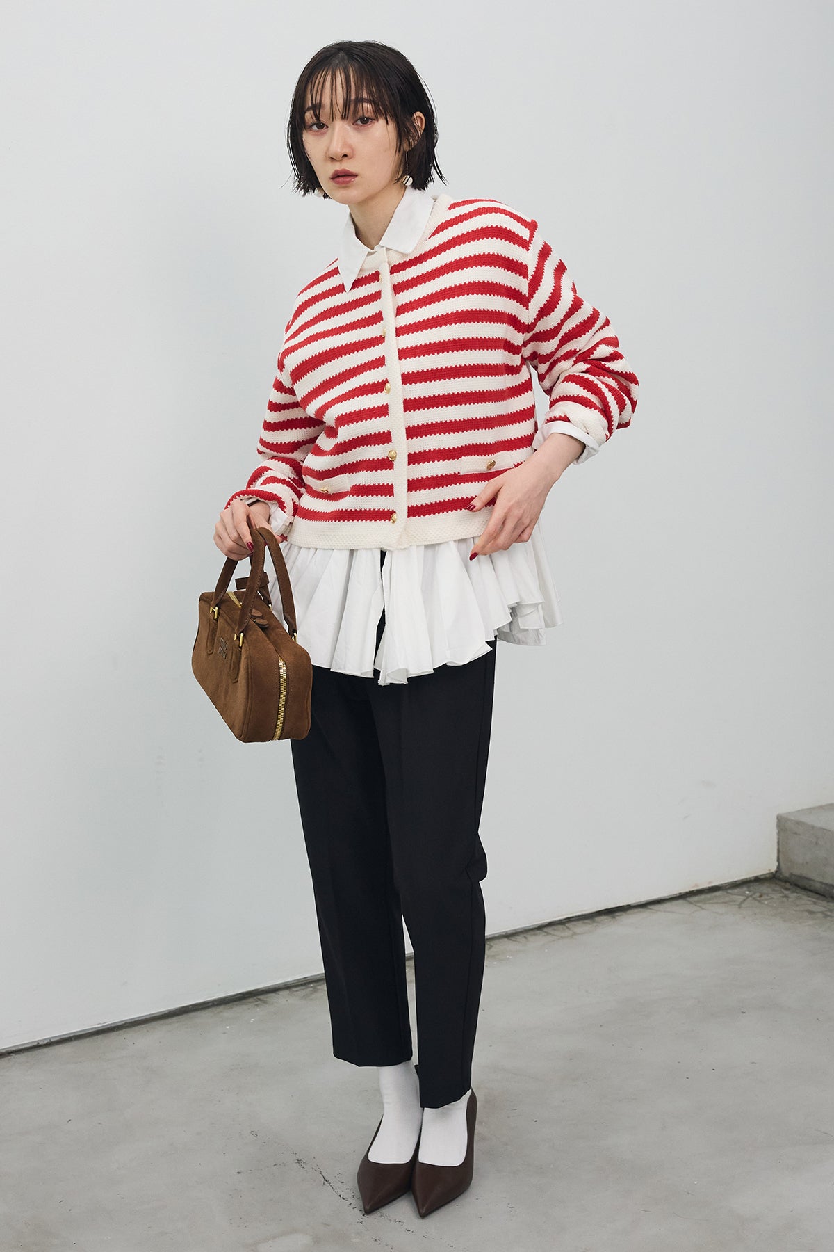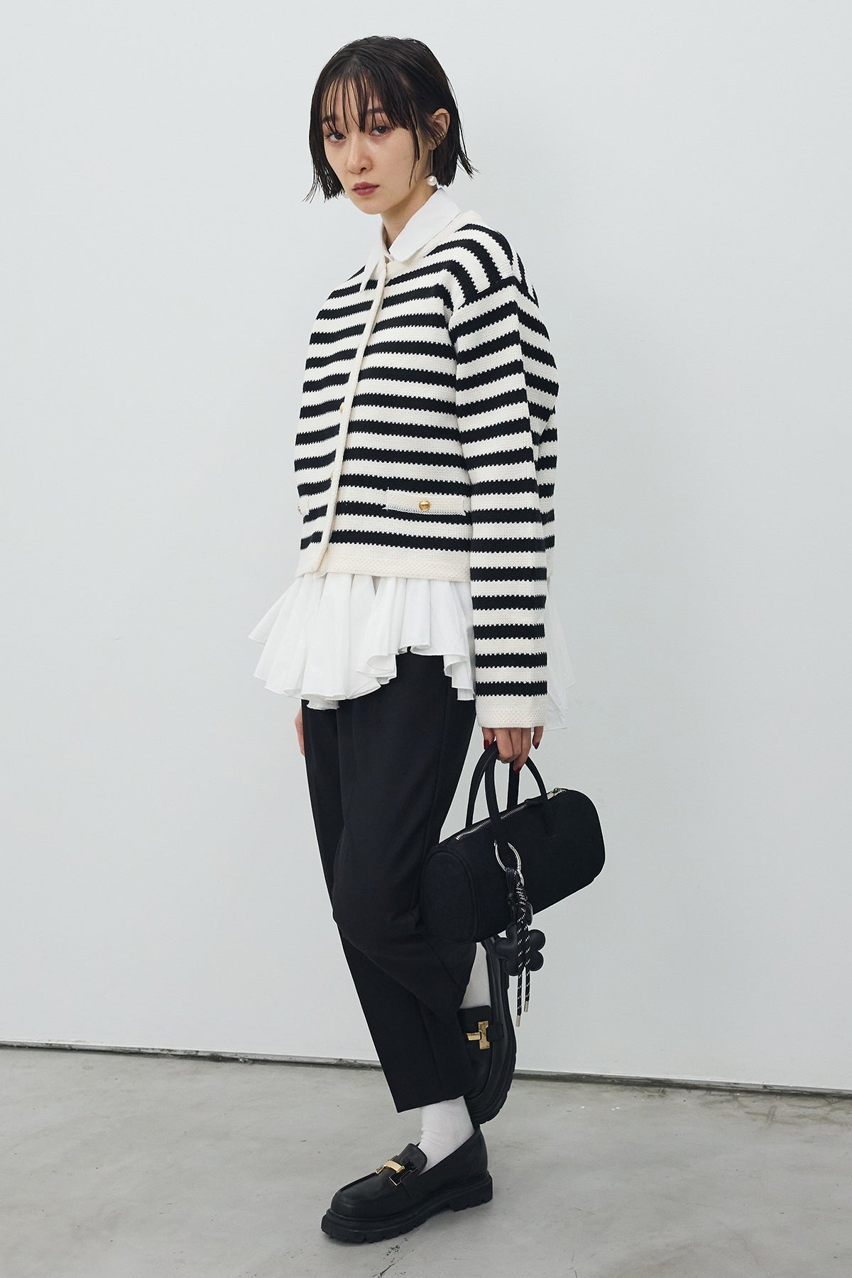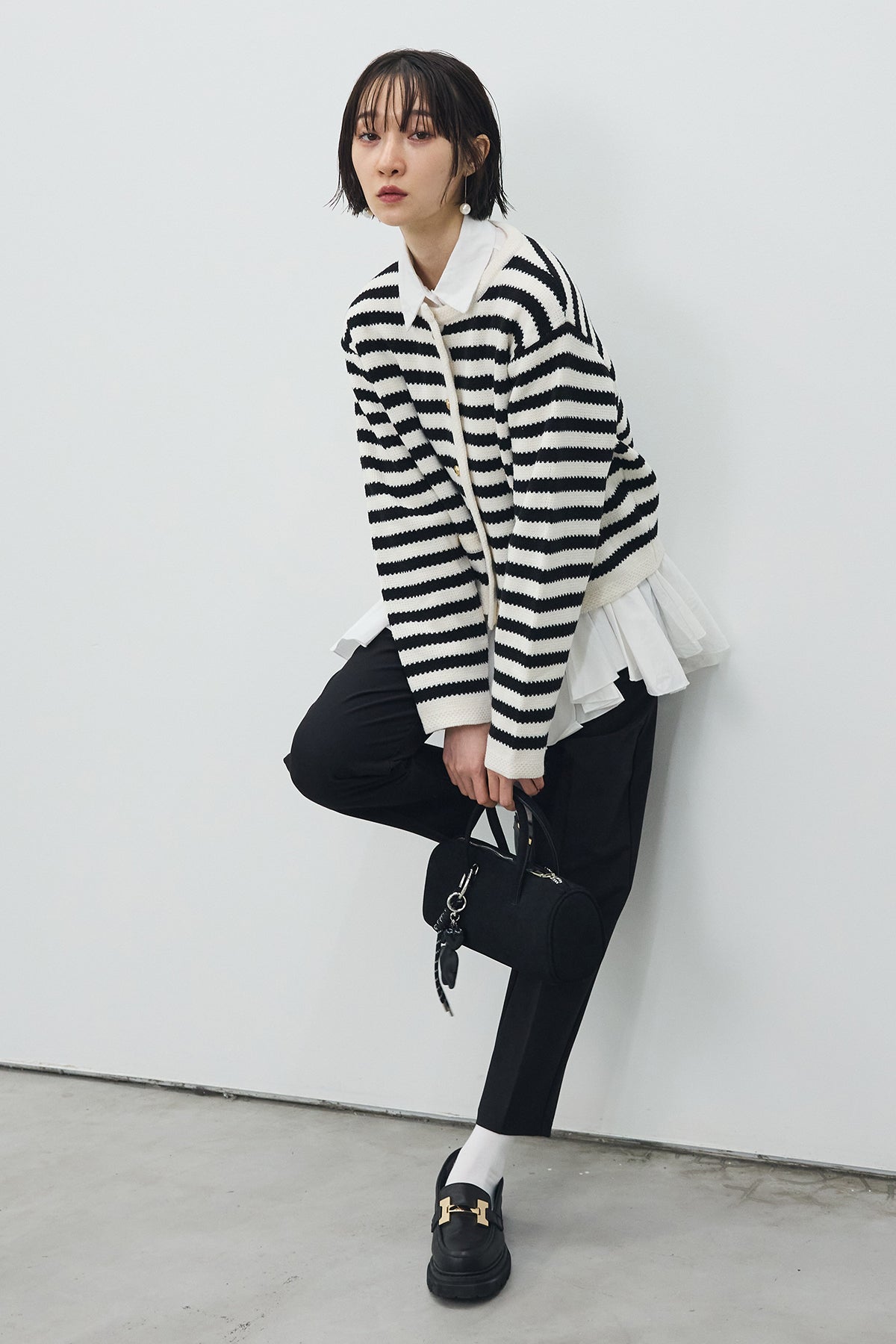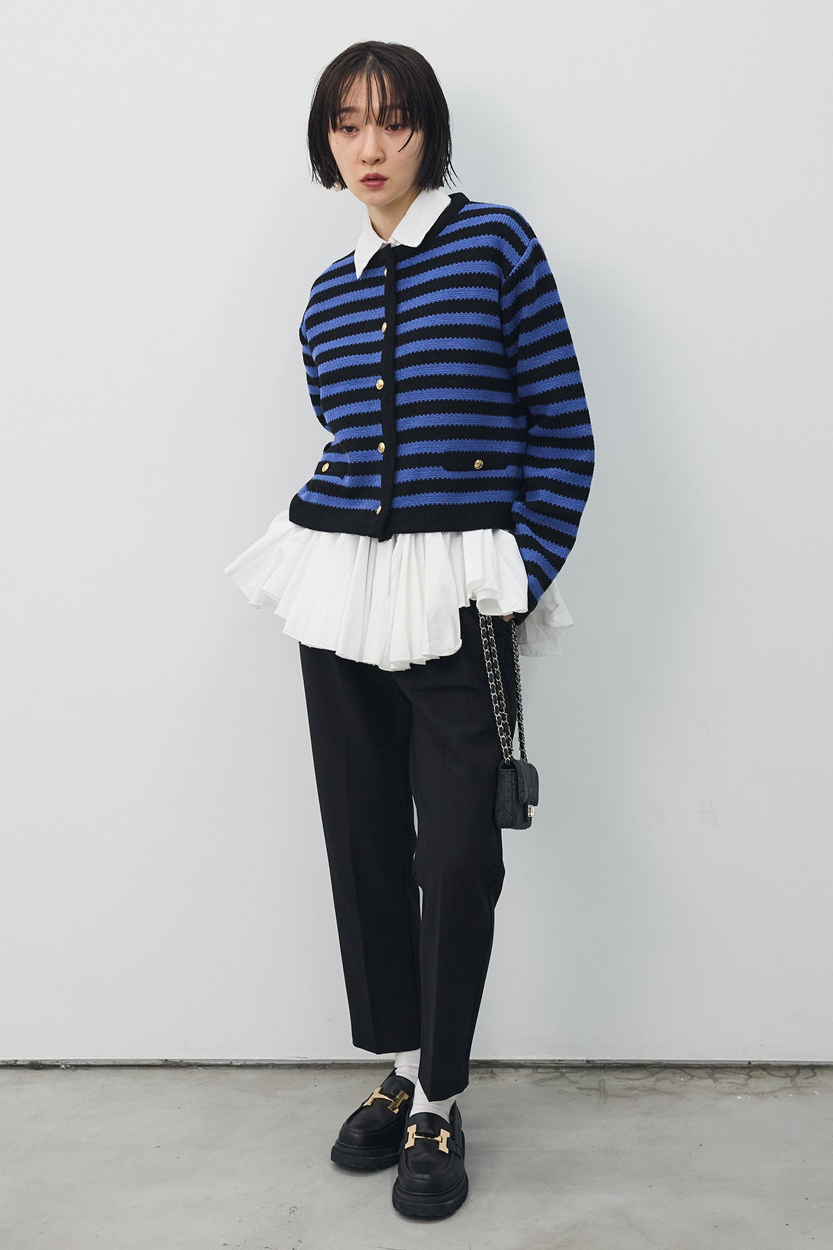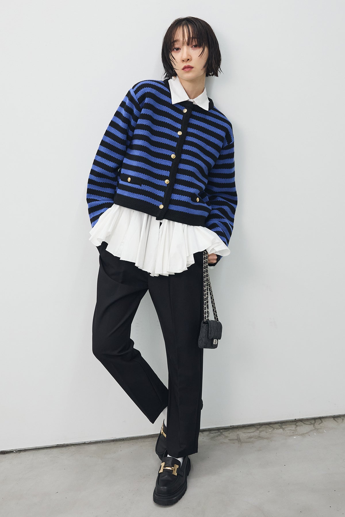 [予約/SET]マリンボタンボーダーカーデ+パネルフレアヘムシャツ+タックテーパードパンツ(3set)