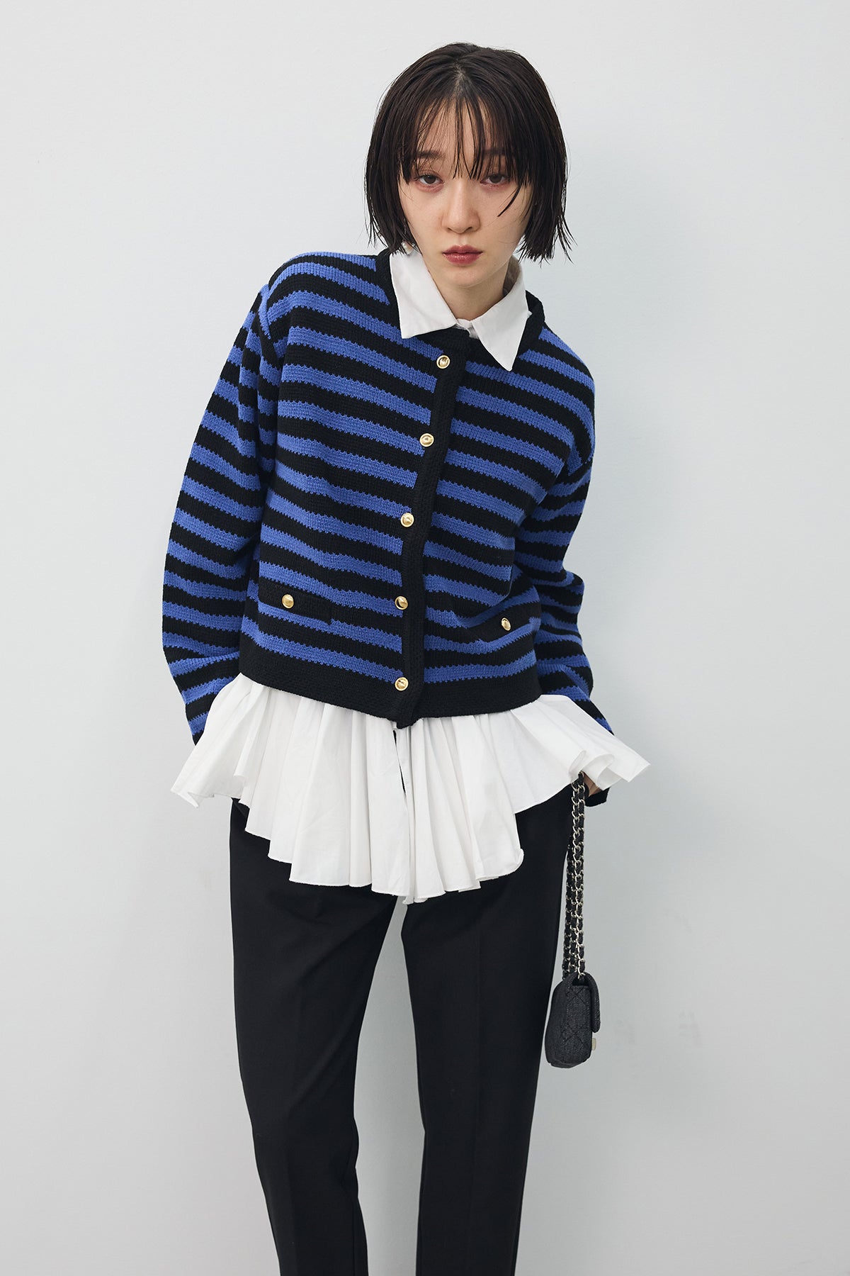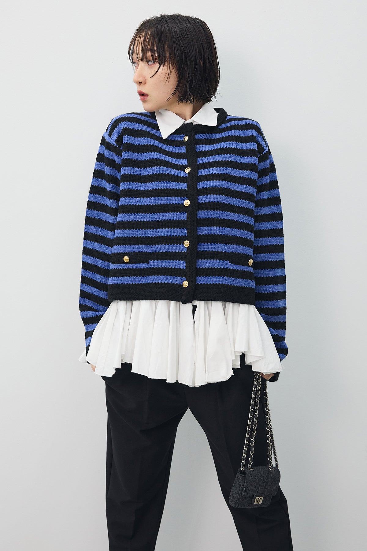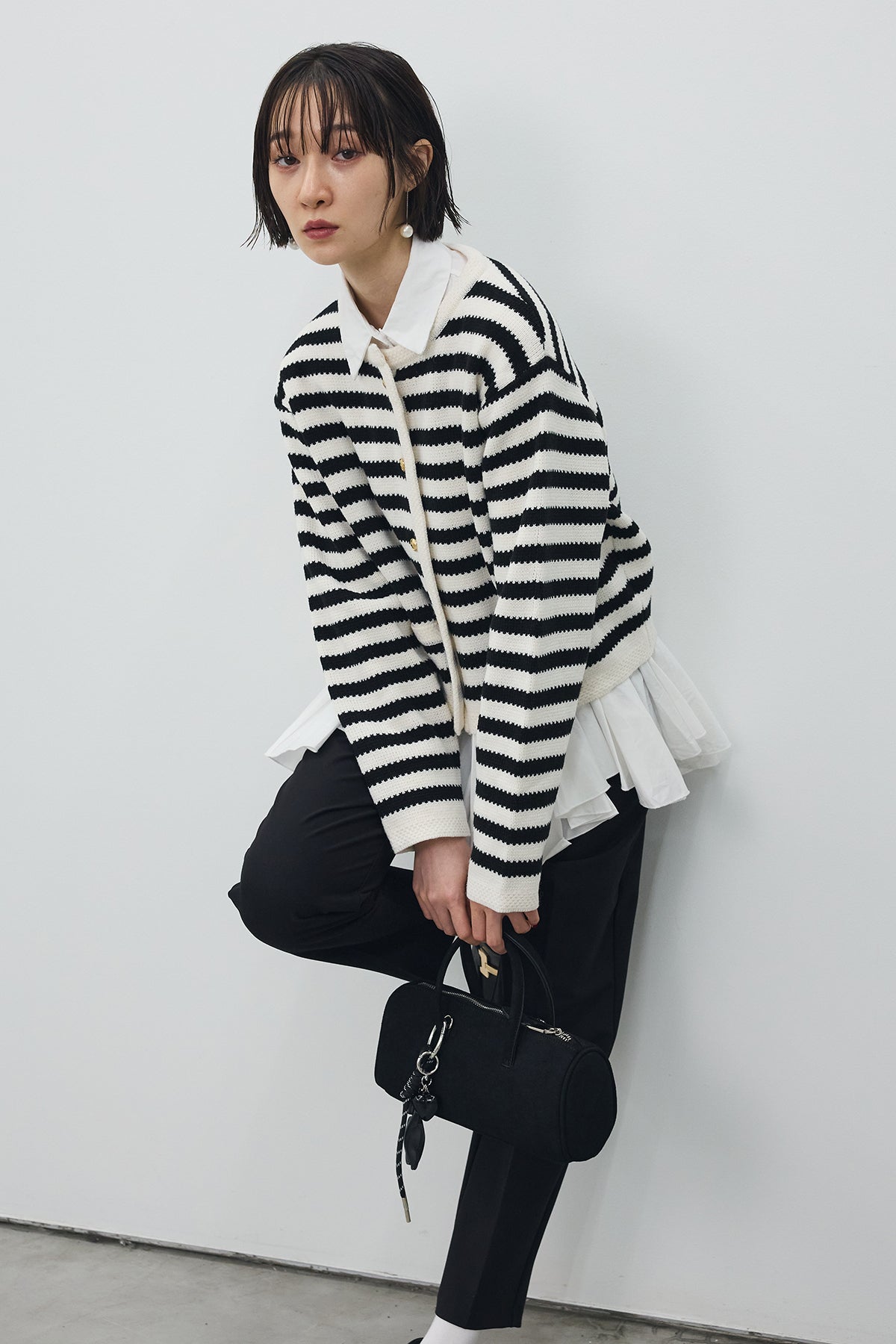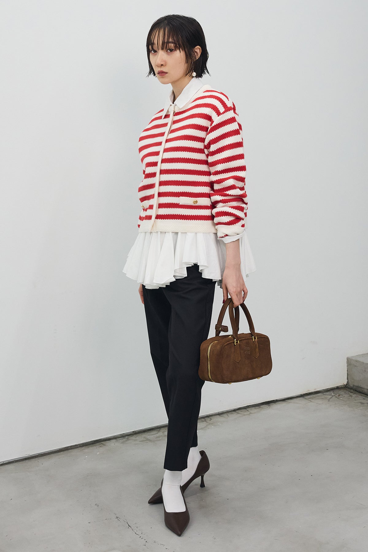 [予約/SET]マリンボタンボーダーカーデ+パネルフレアヘムシャツ+タックテーパードパンツ(3set)