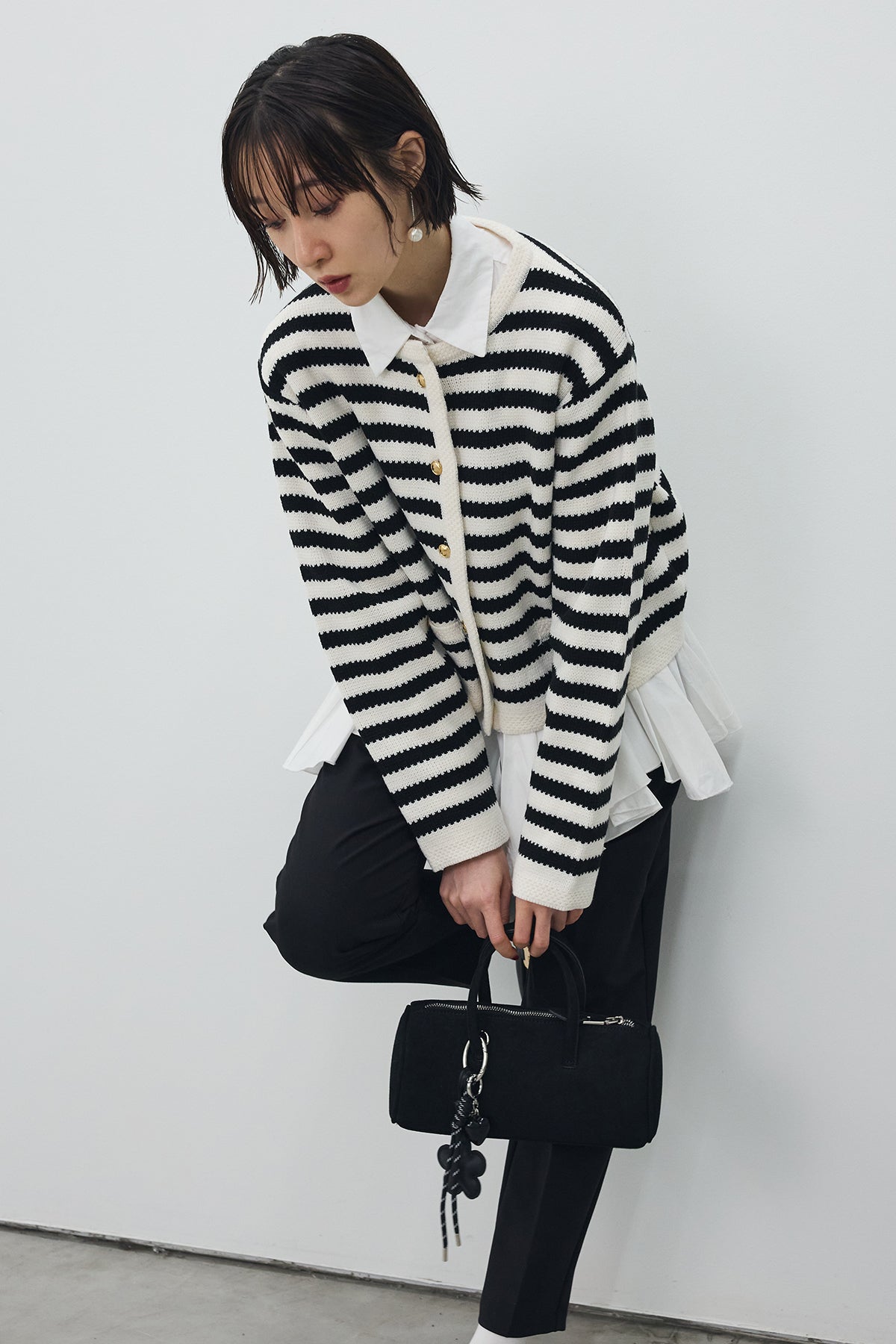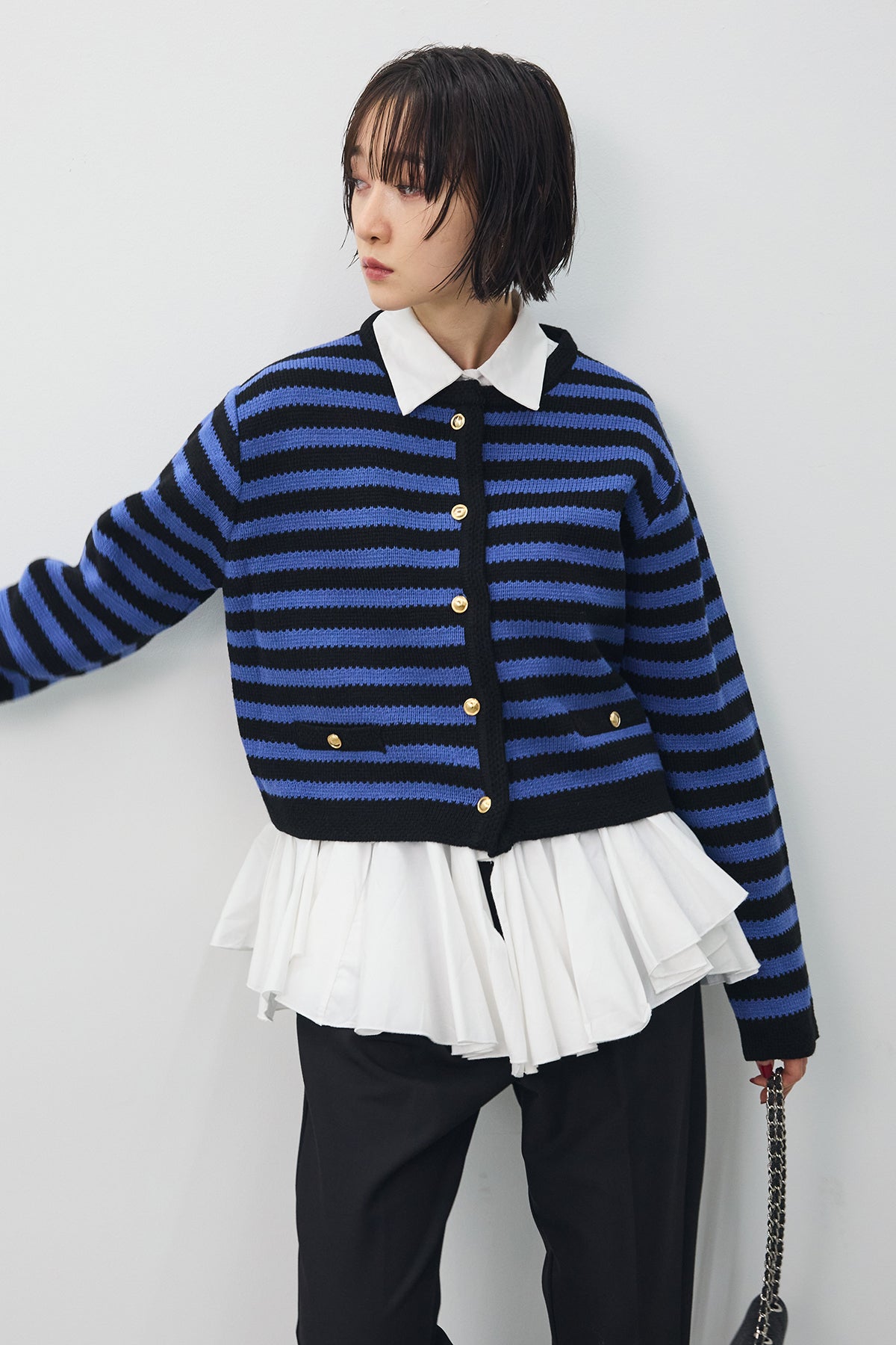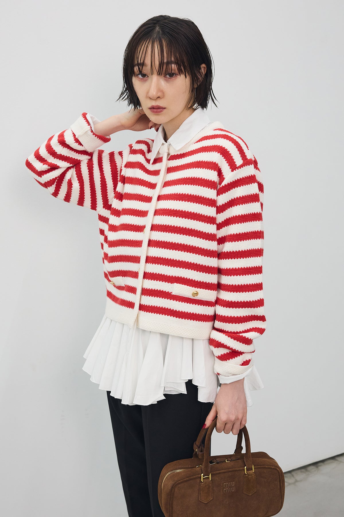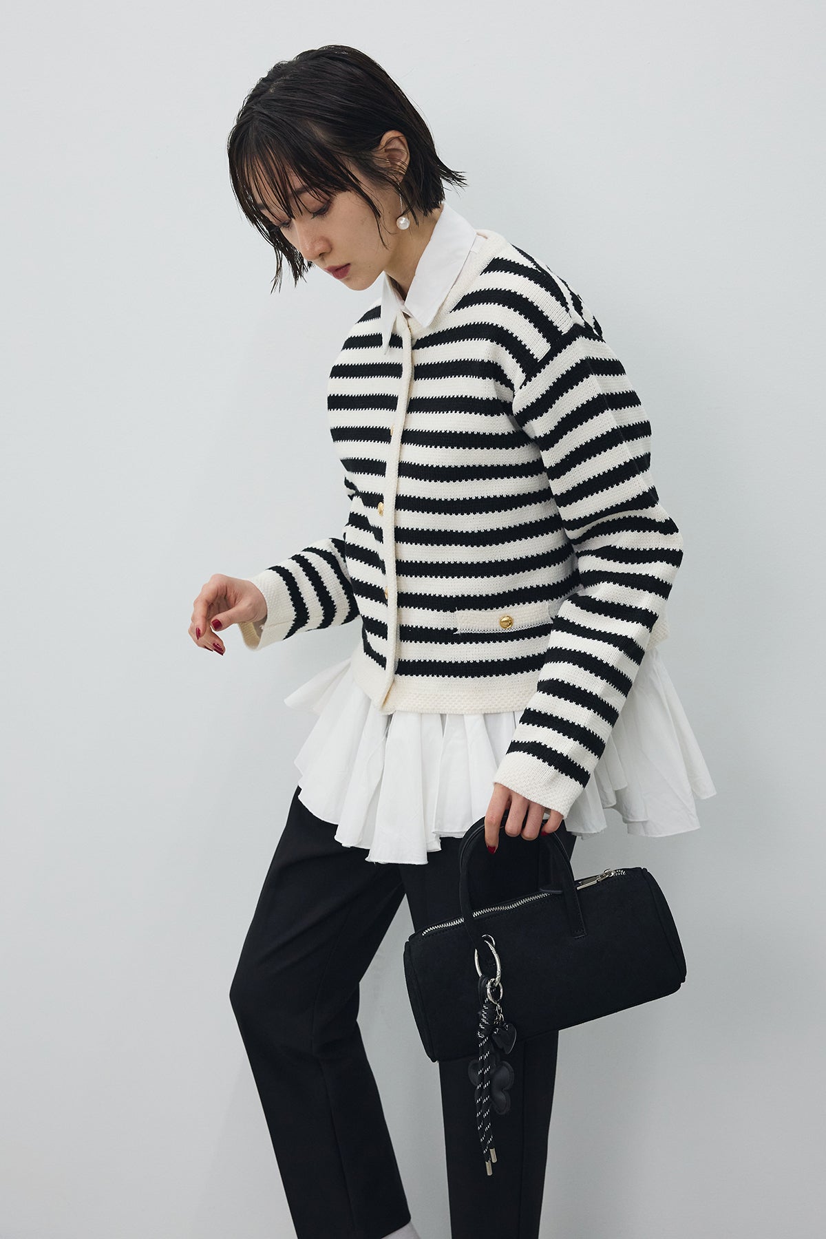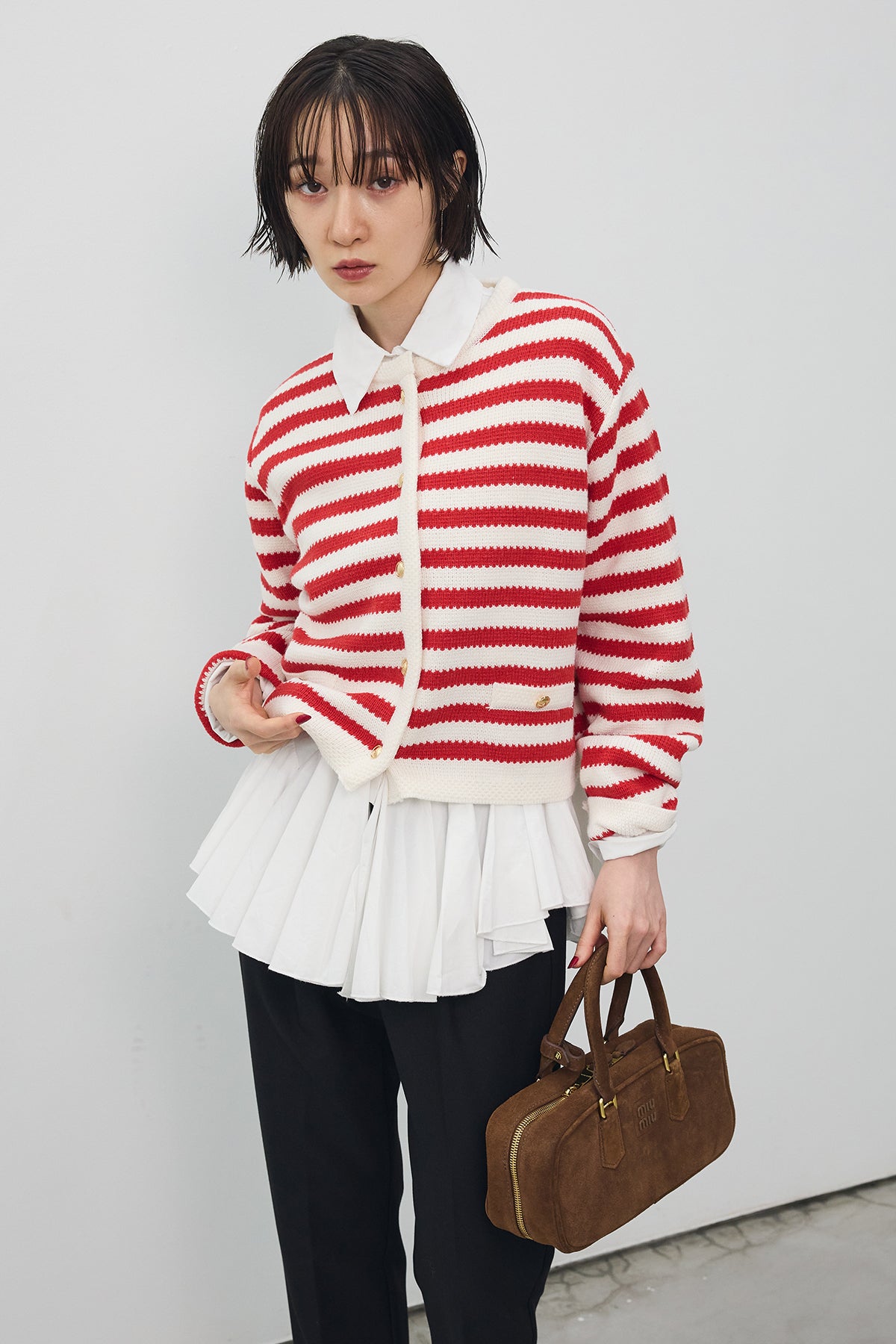 [予約/SET]マリンボタンボーダーカーデ+パネルフレアヘムシャツ+タックテーパードパンツ(3set)