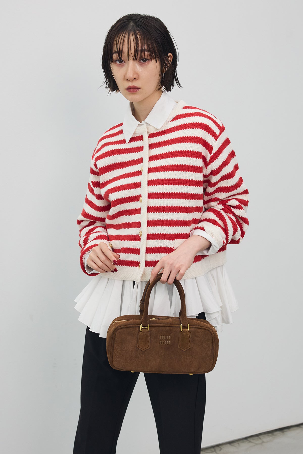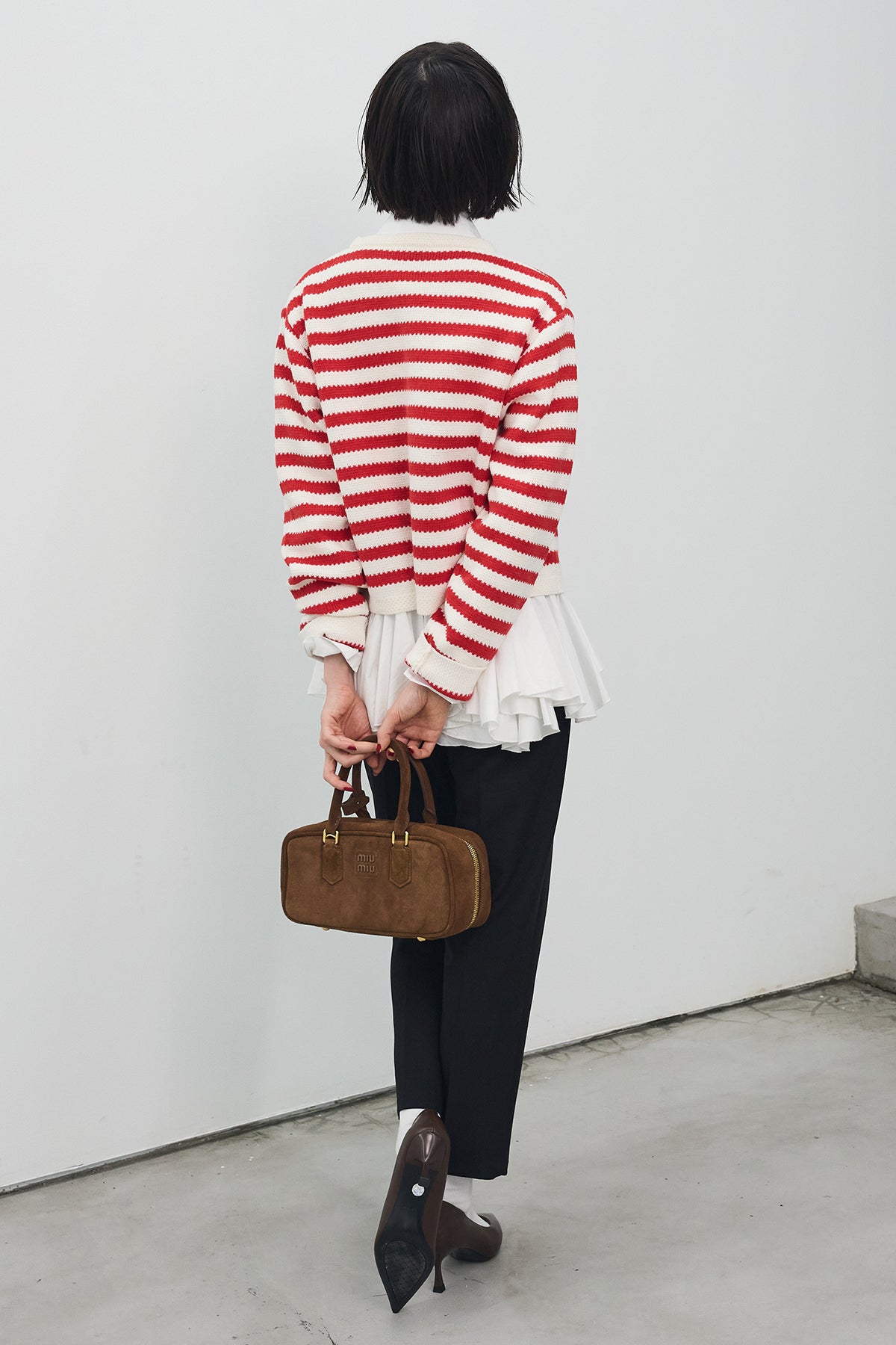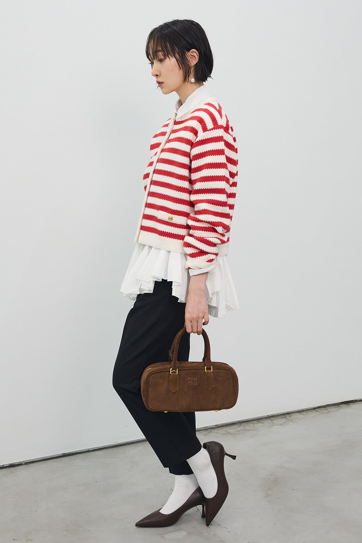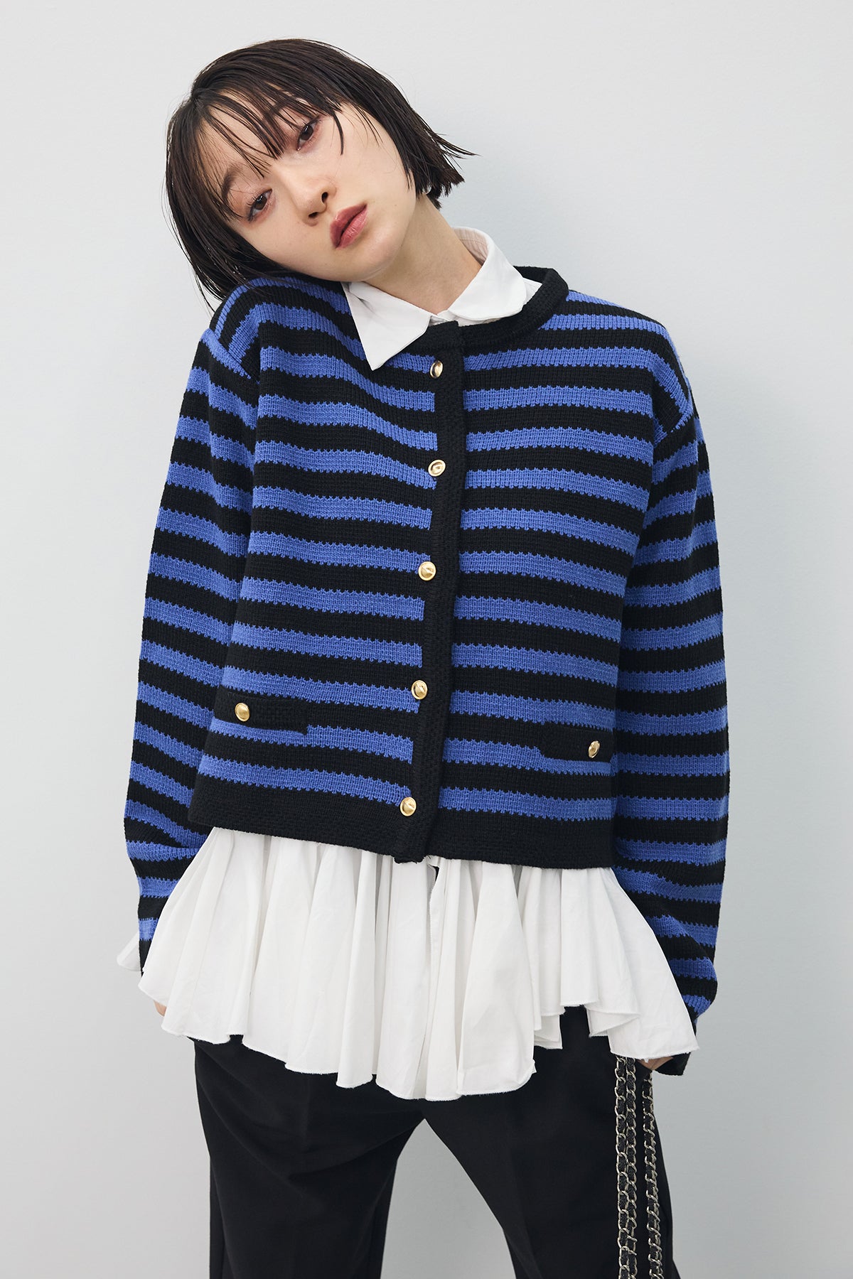 [予約/SET]マリンボタンボーダーカーデ+パネルフレアヘムシャツ+タックテーパードパンツ(3set)