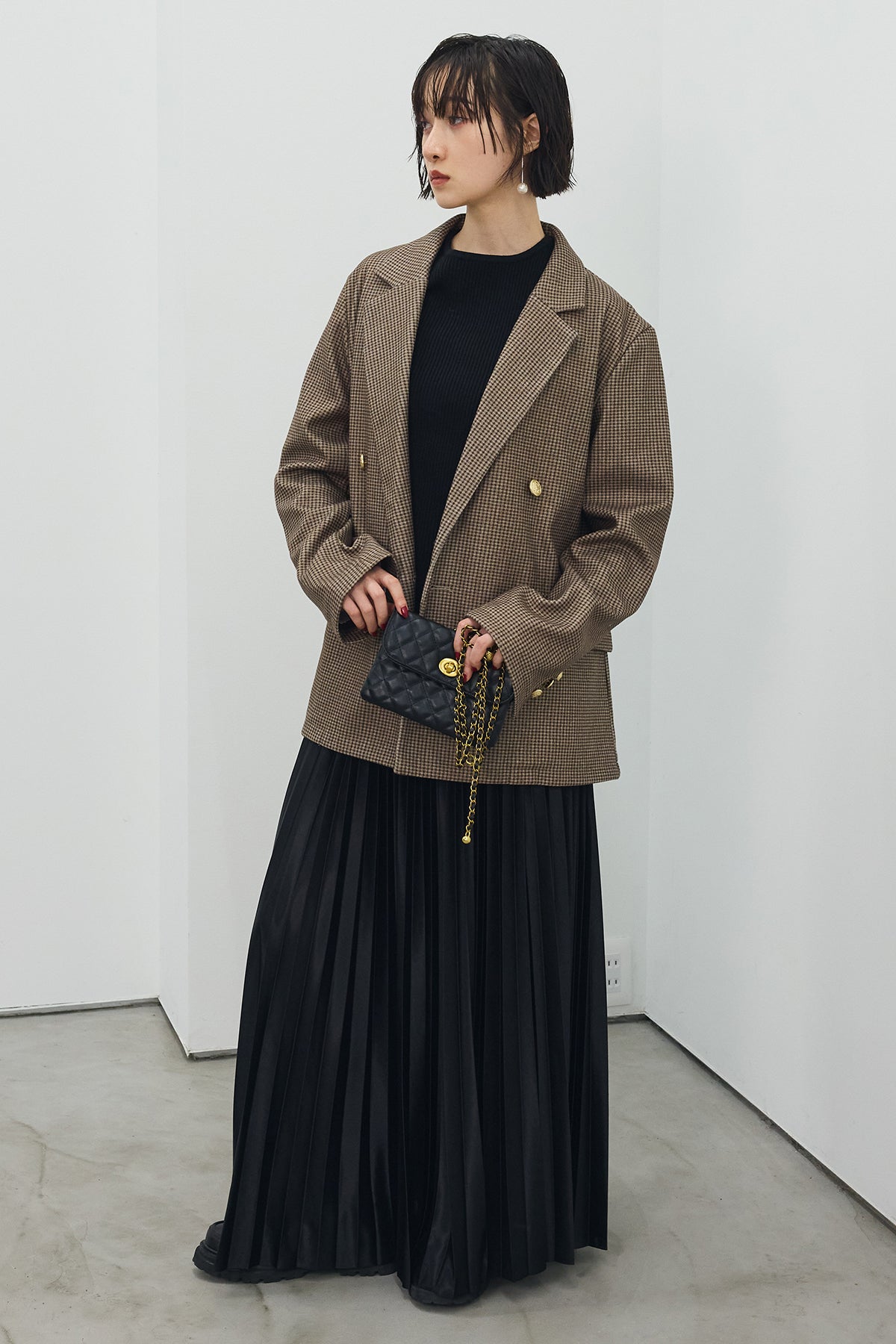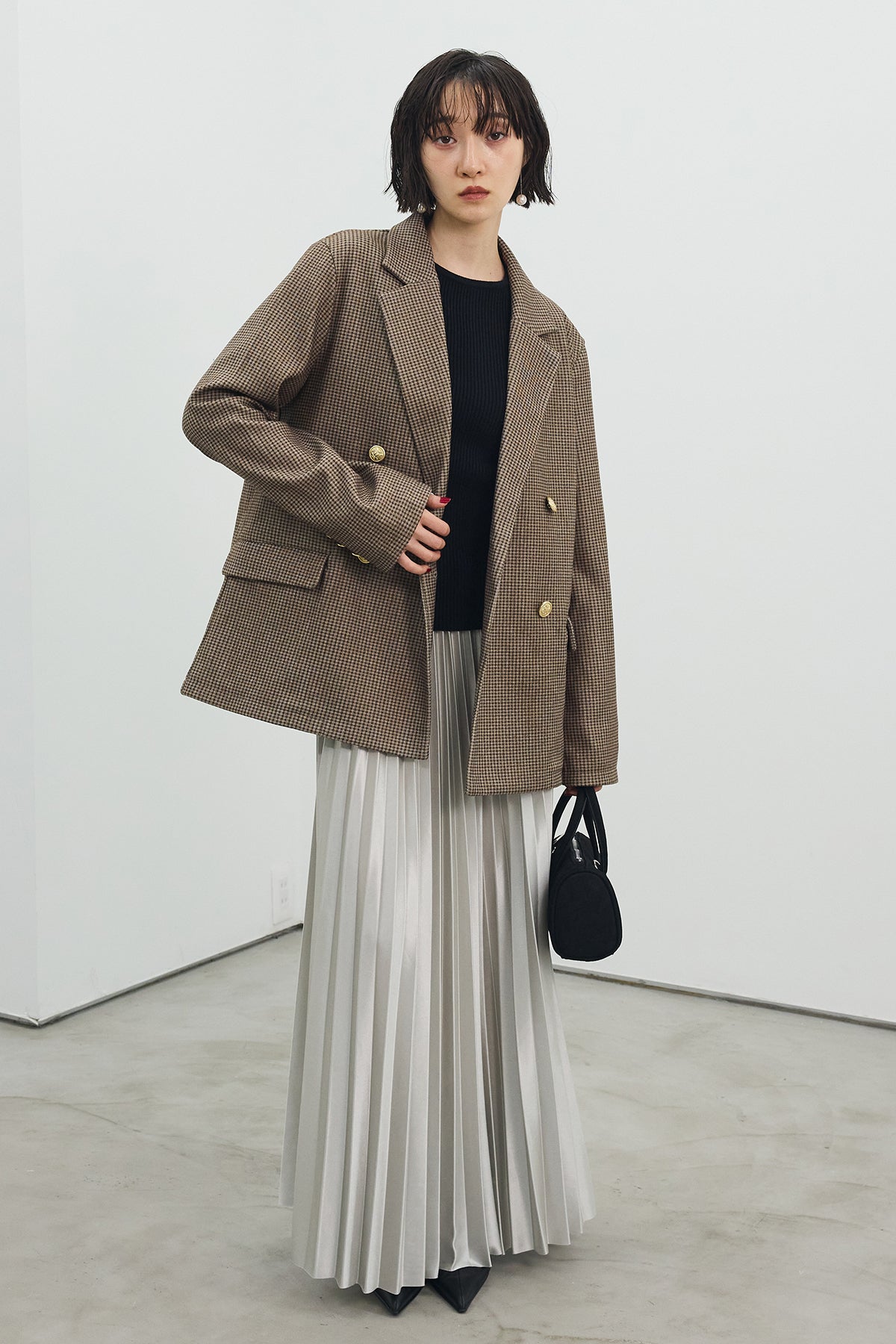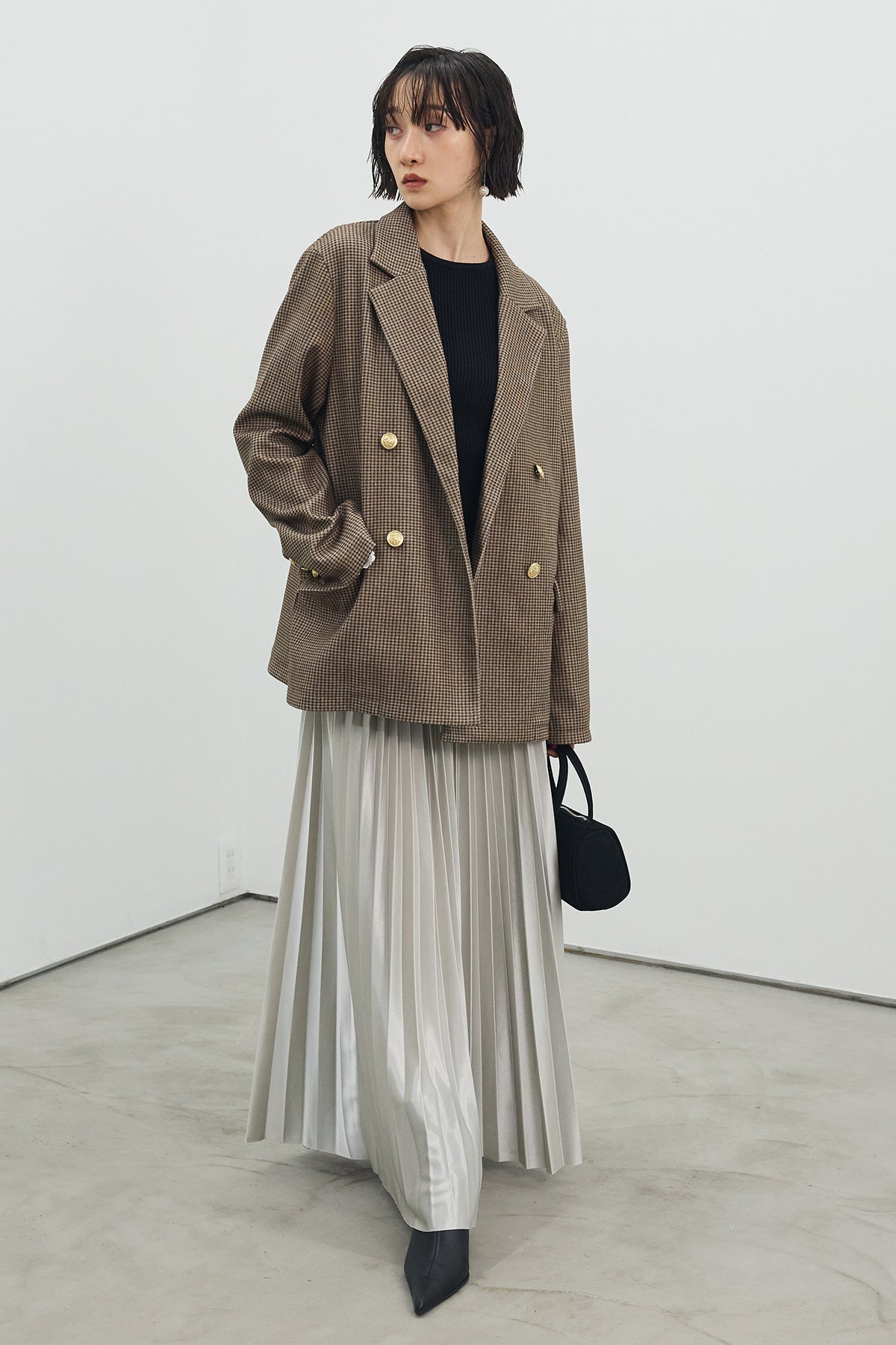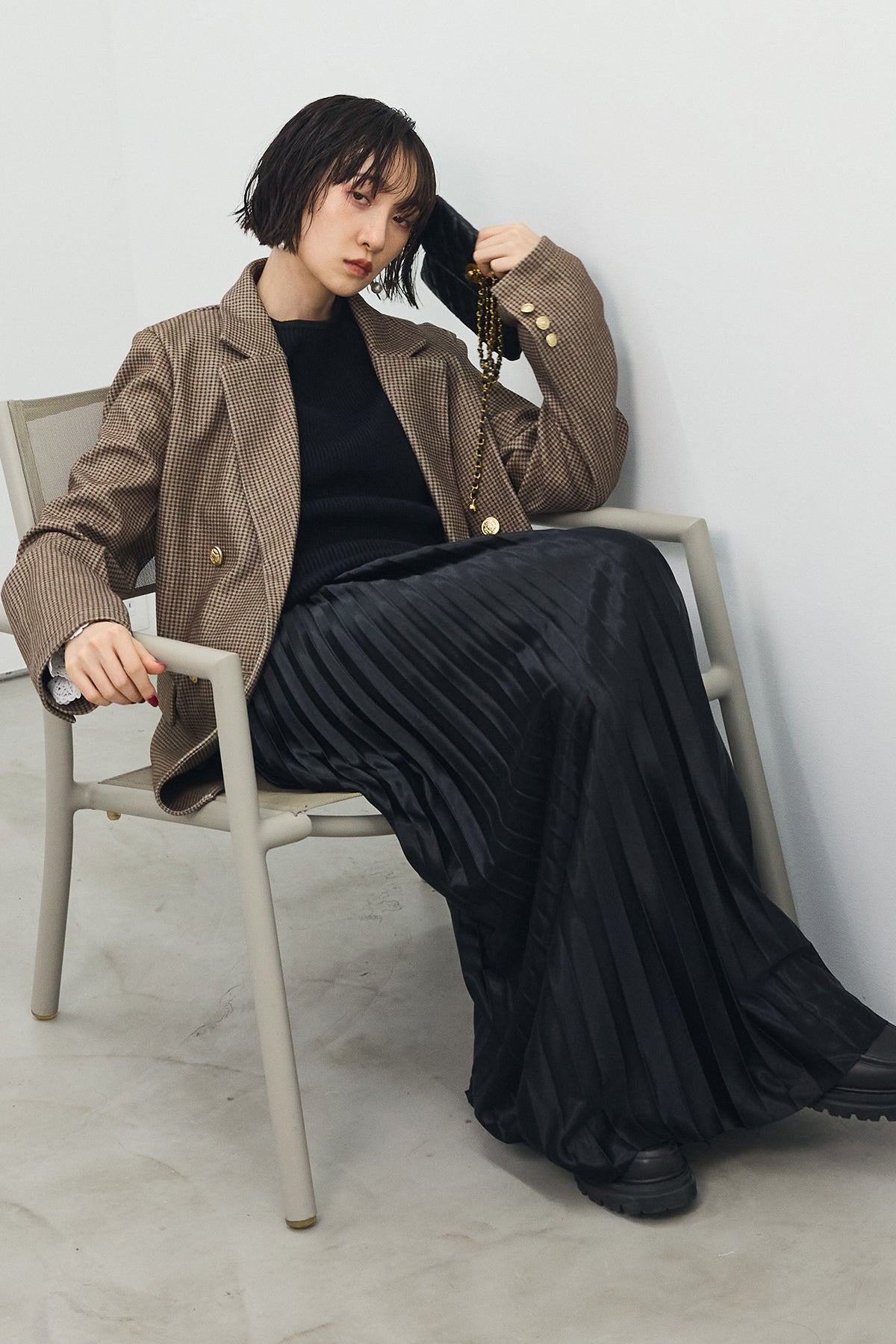 [予約/SET]チェック柄ダブルフェイスジャケット+シャイニープリーツサテンスカート(2set)