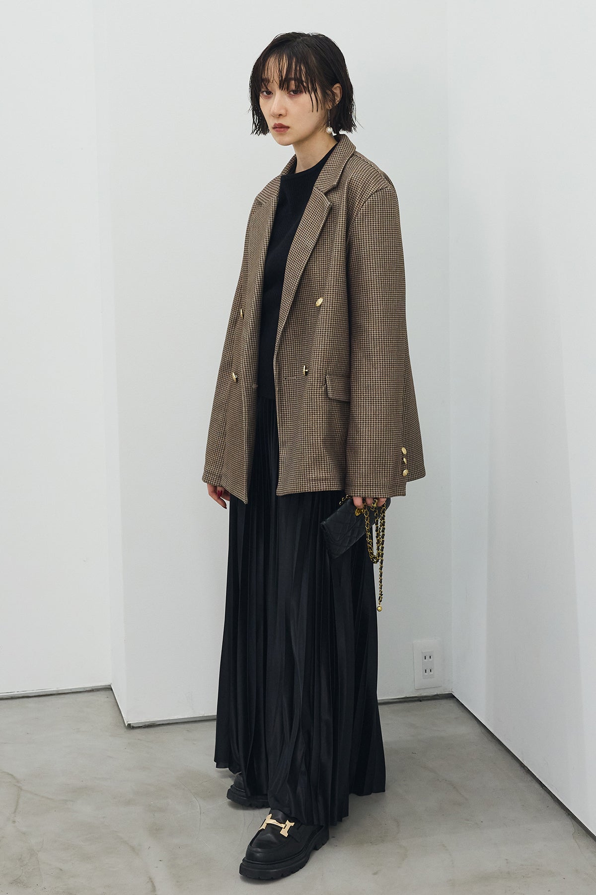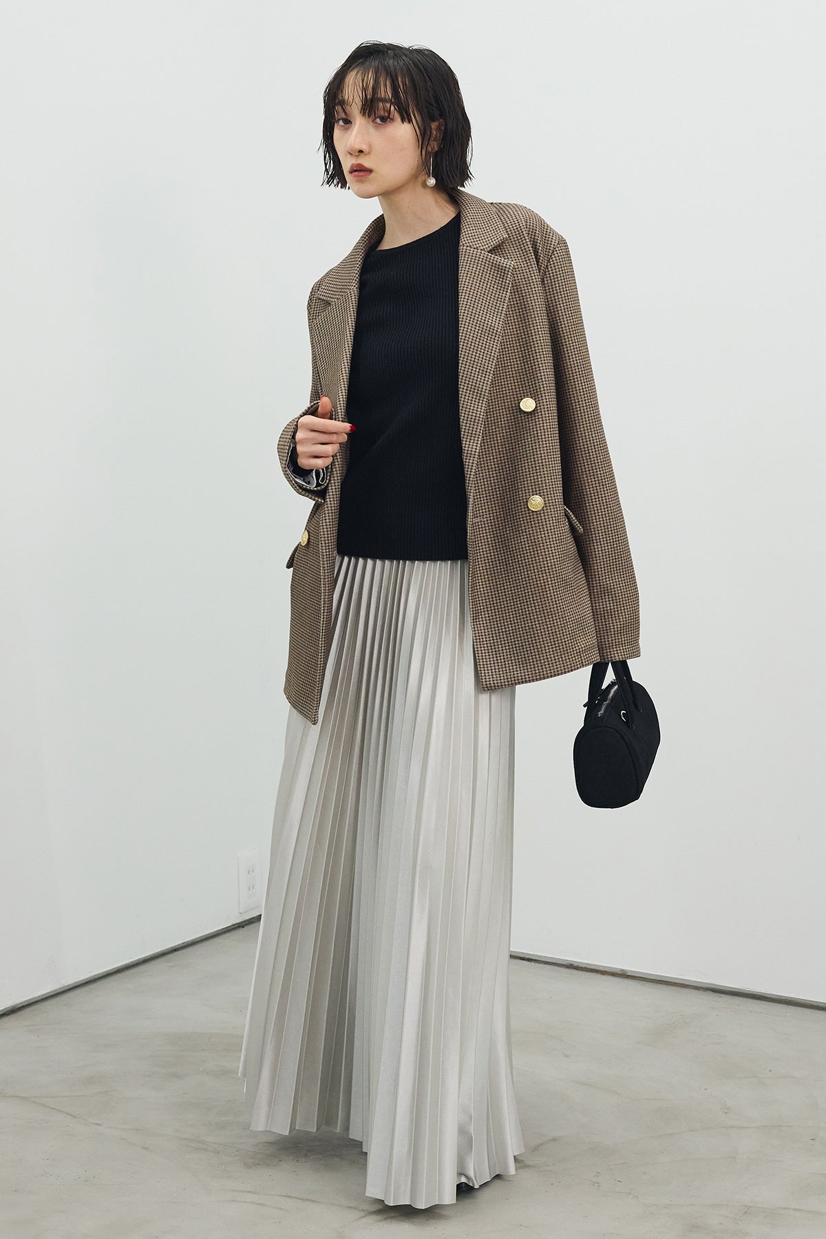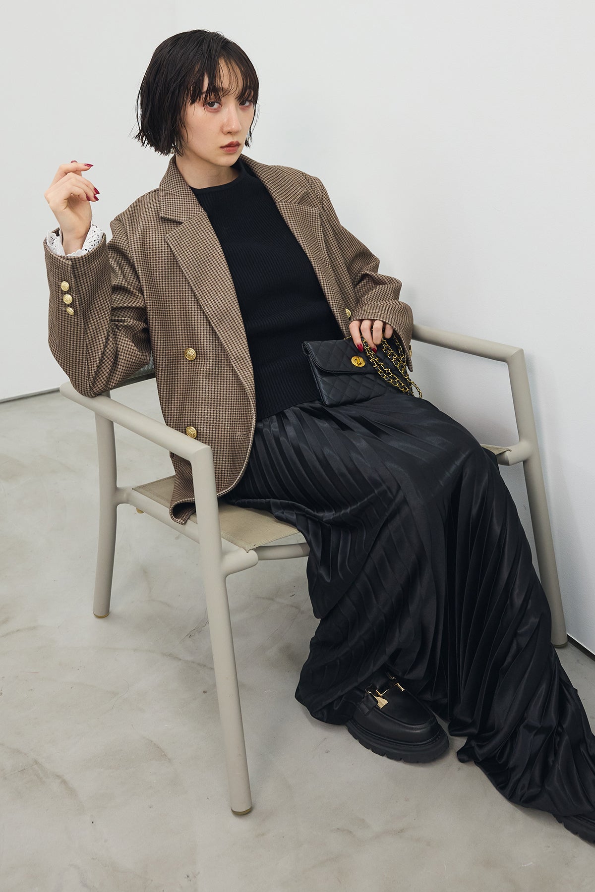 [予約/SET]チェック柄ダブルフェイスジャケット+シャイニープリーツサテンスカート(2set)