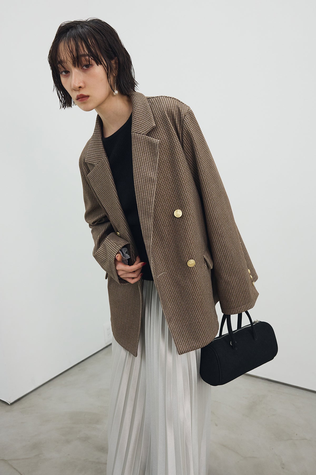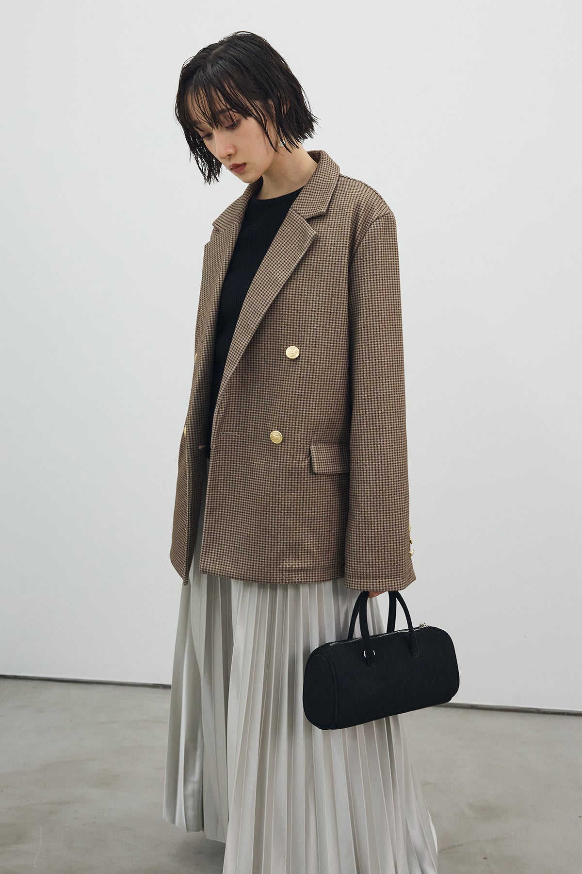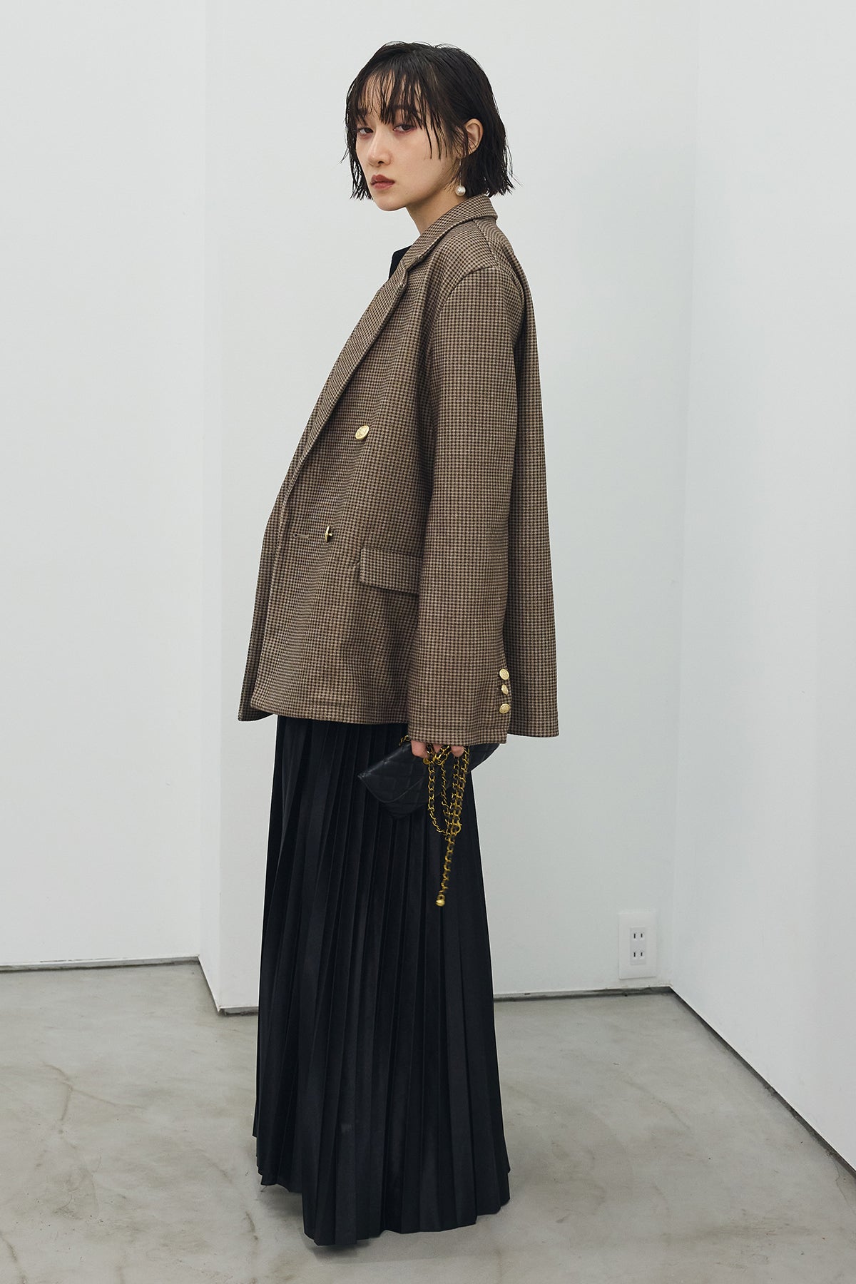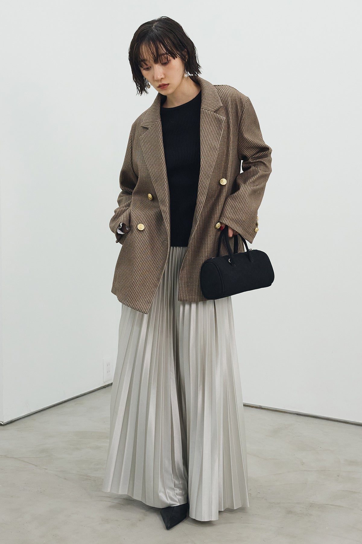[予約/SET]チェック柄ダブルフェイスジャケット+シャイニープリーツサテンスカート(2set)