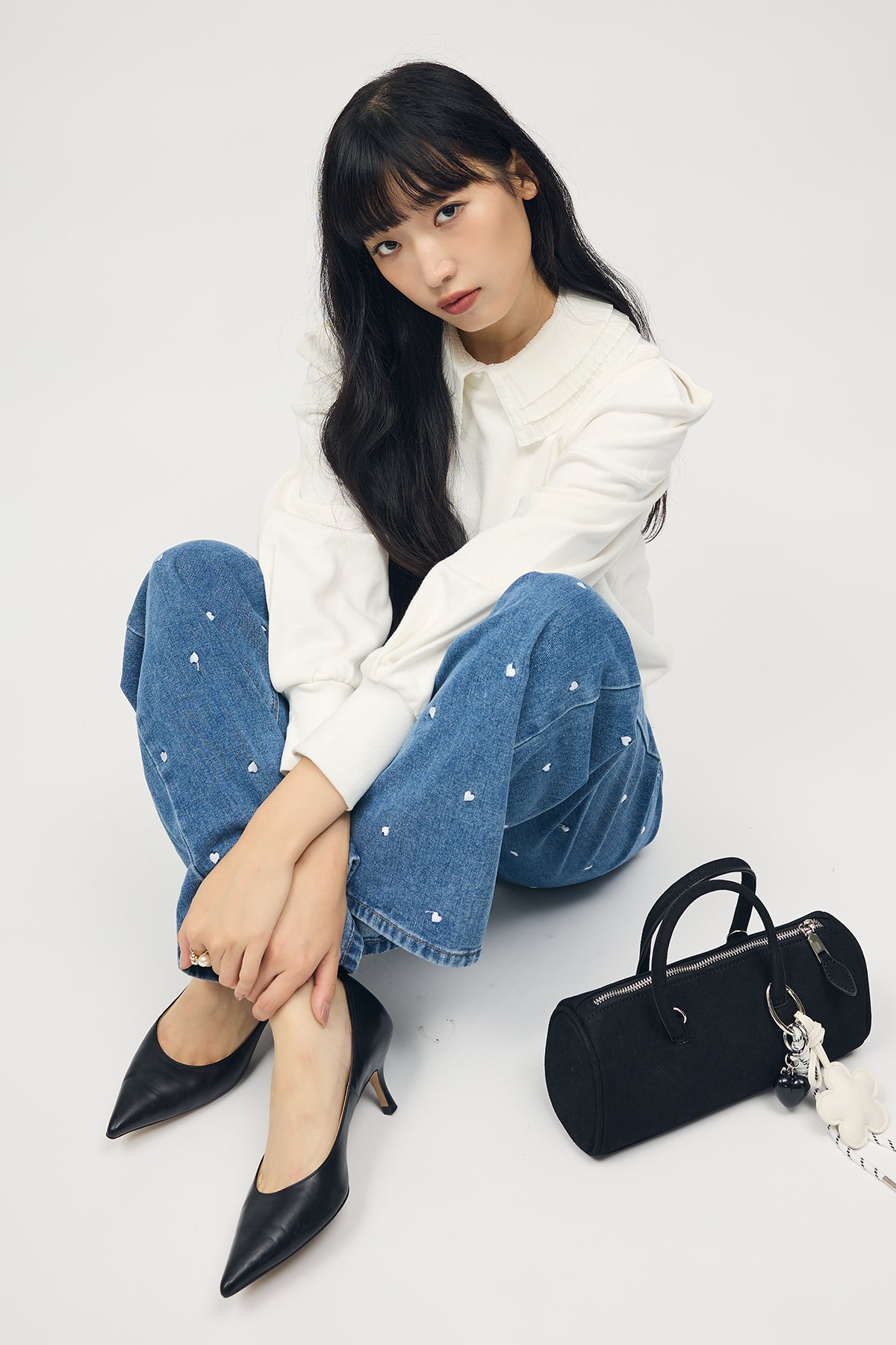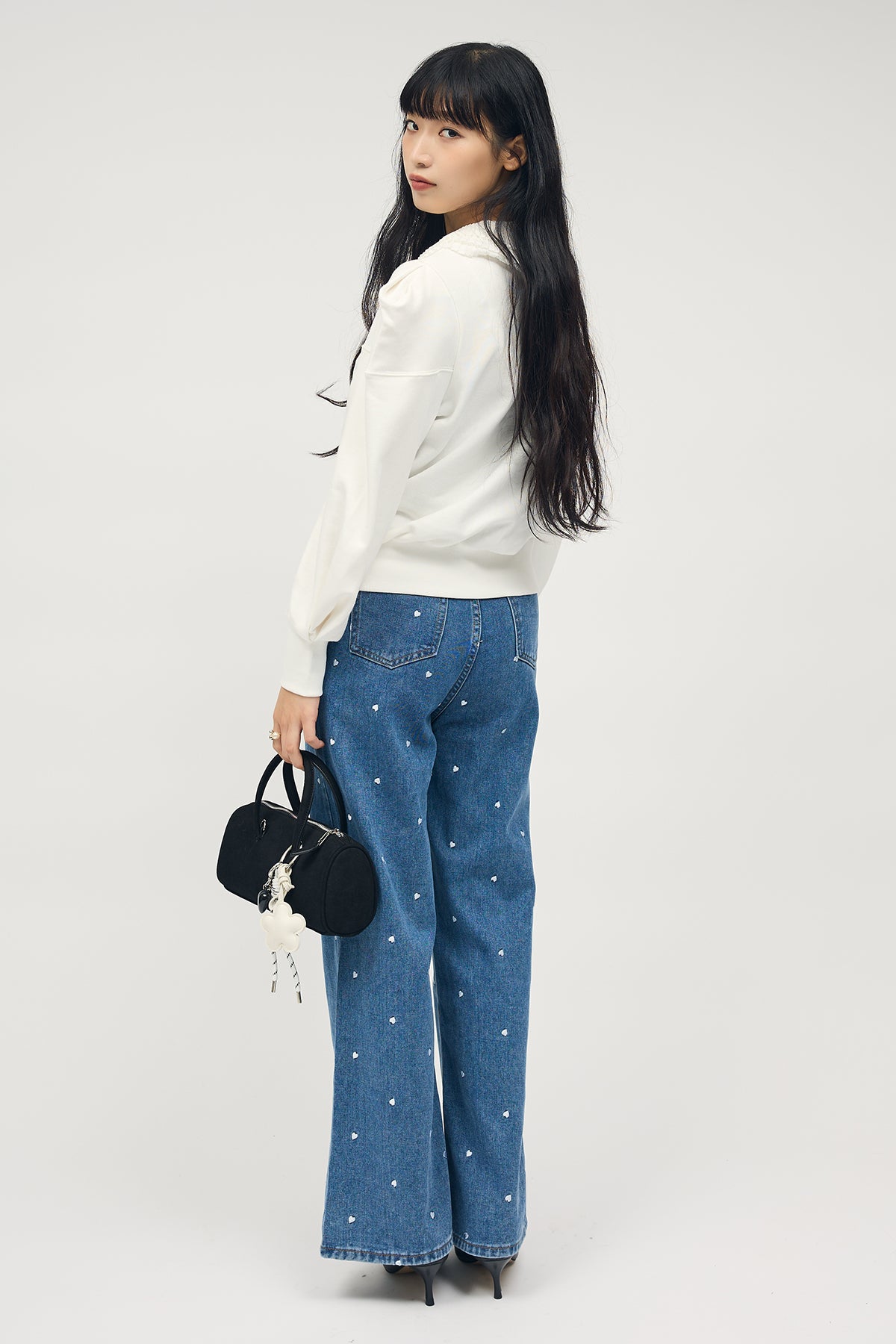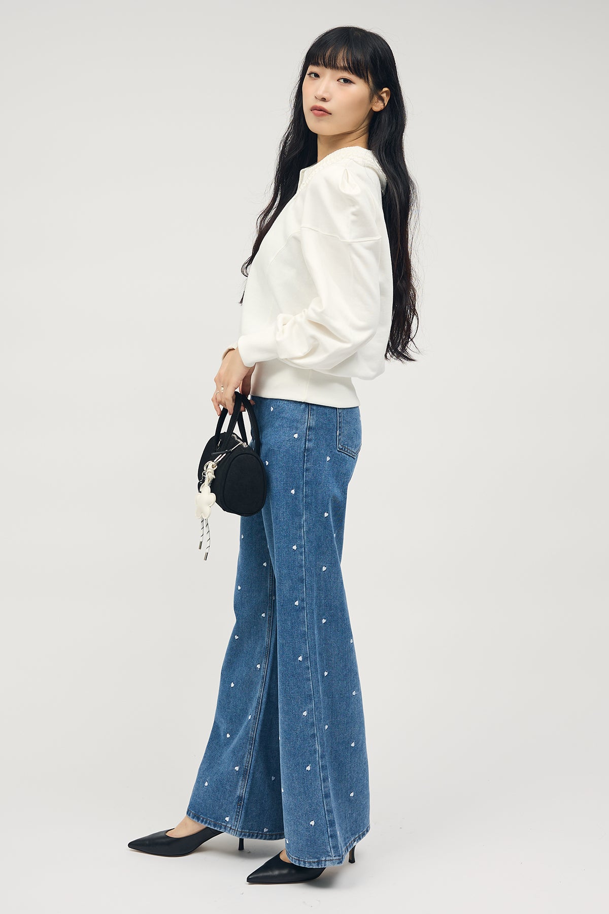 [予約]ハート刺繍ハイウエストデニムパンツ