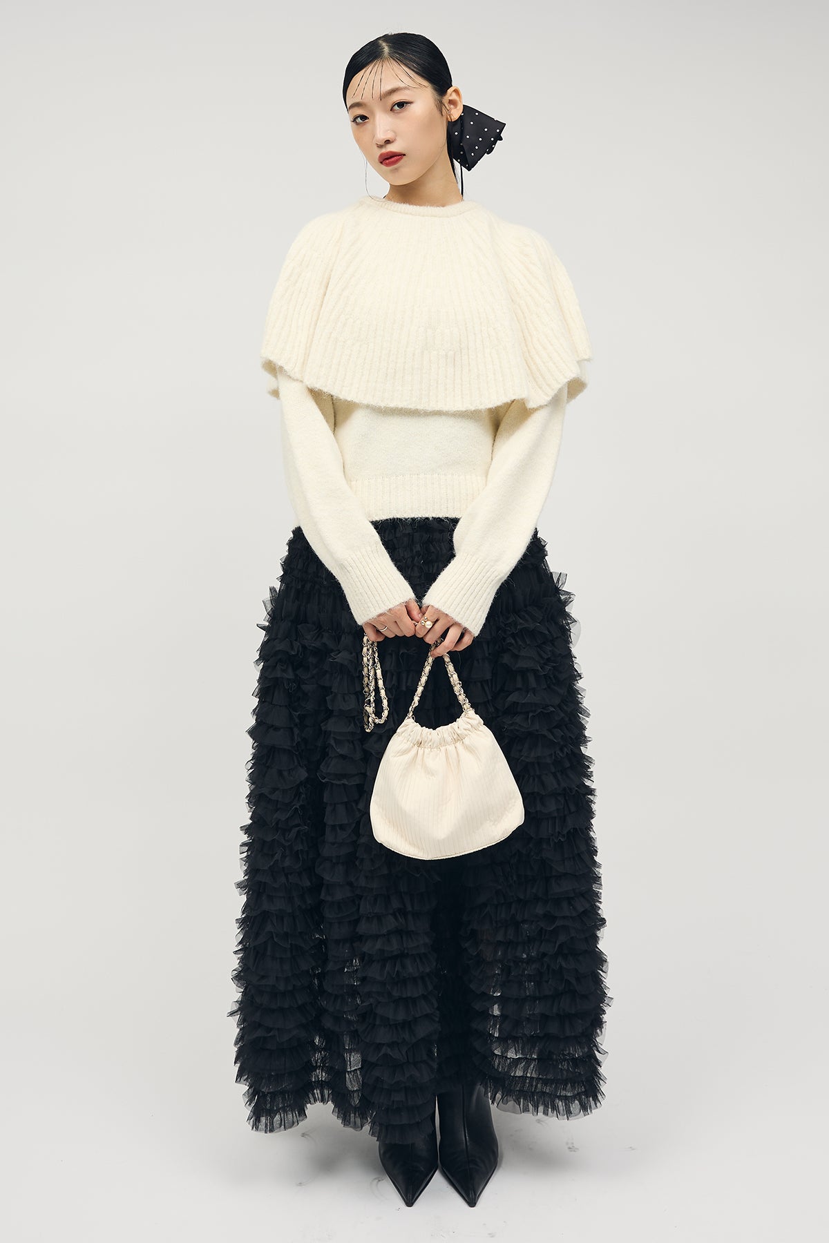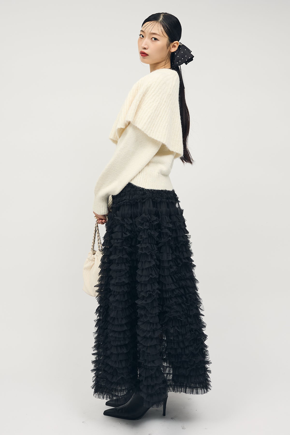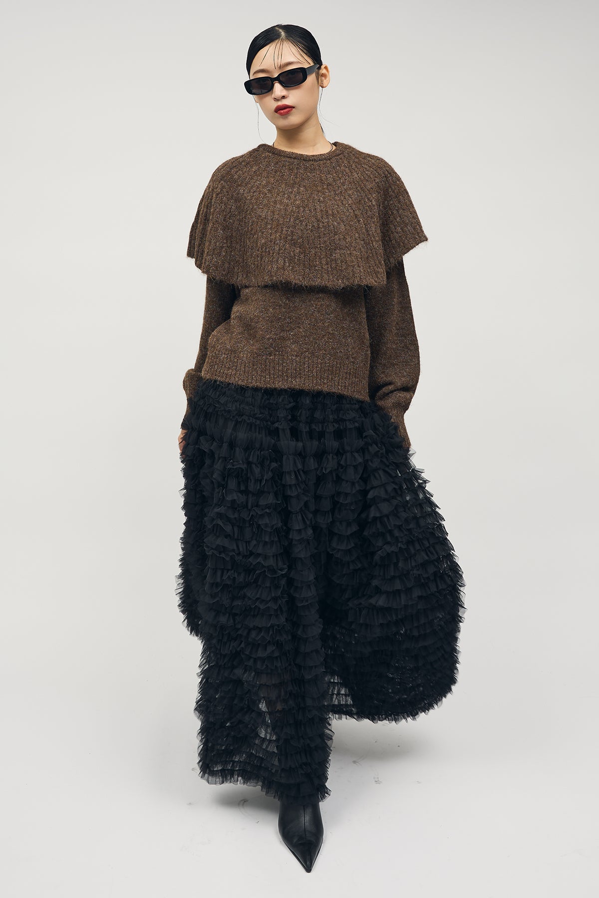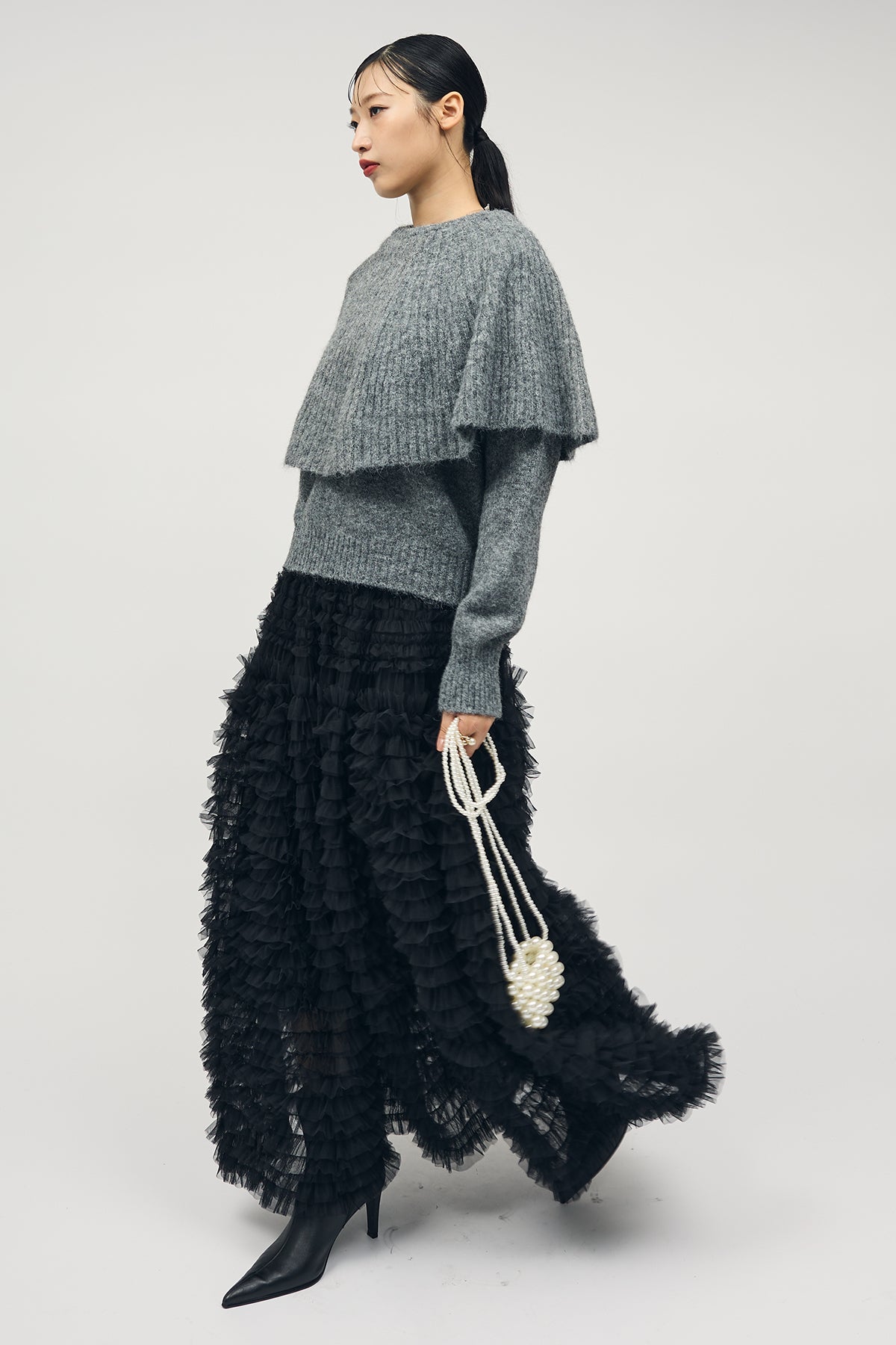 [予約/SET]ウールタッチケープ2wayニット+ホイップチュールティアードスカート(2set)