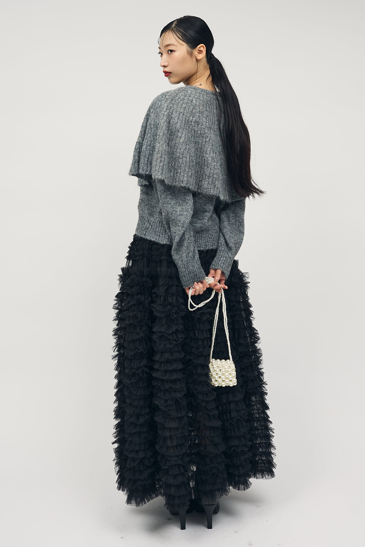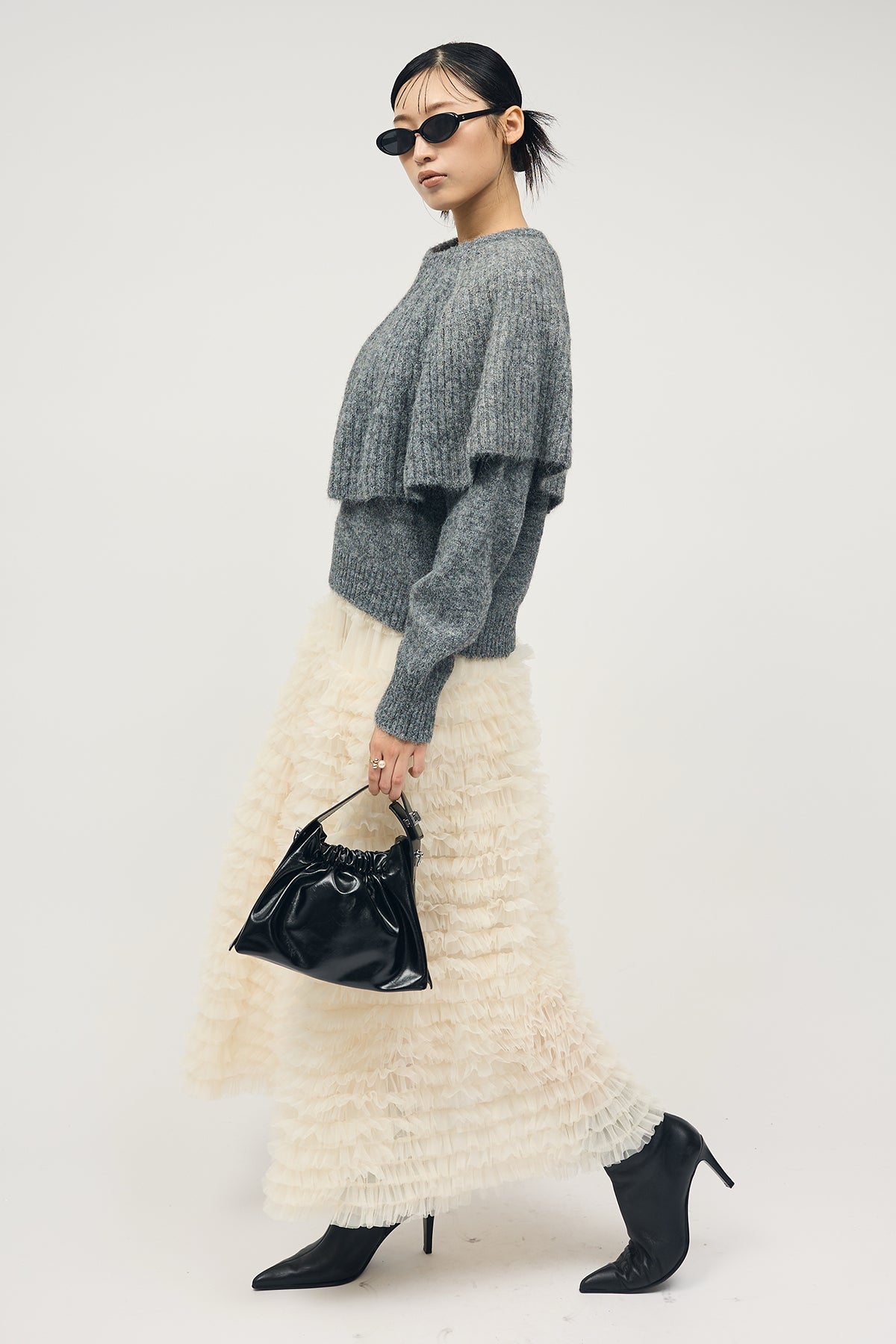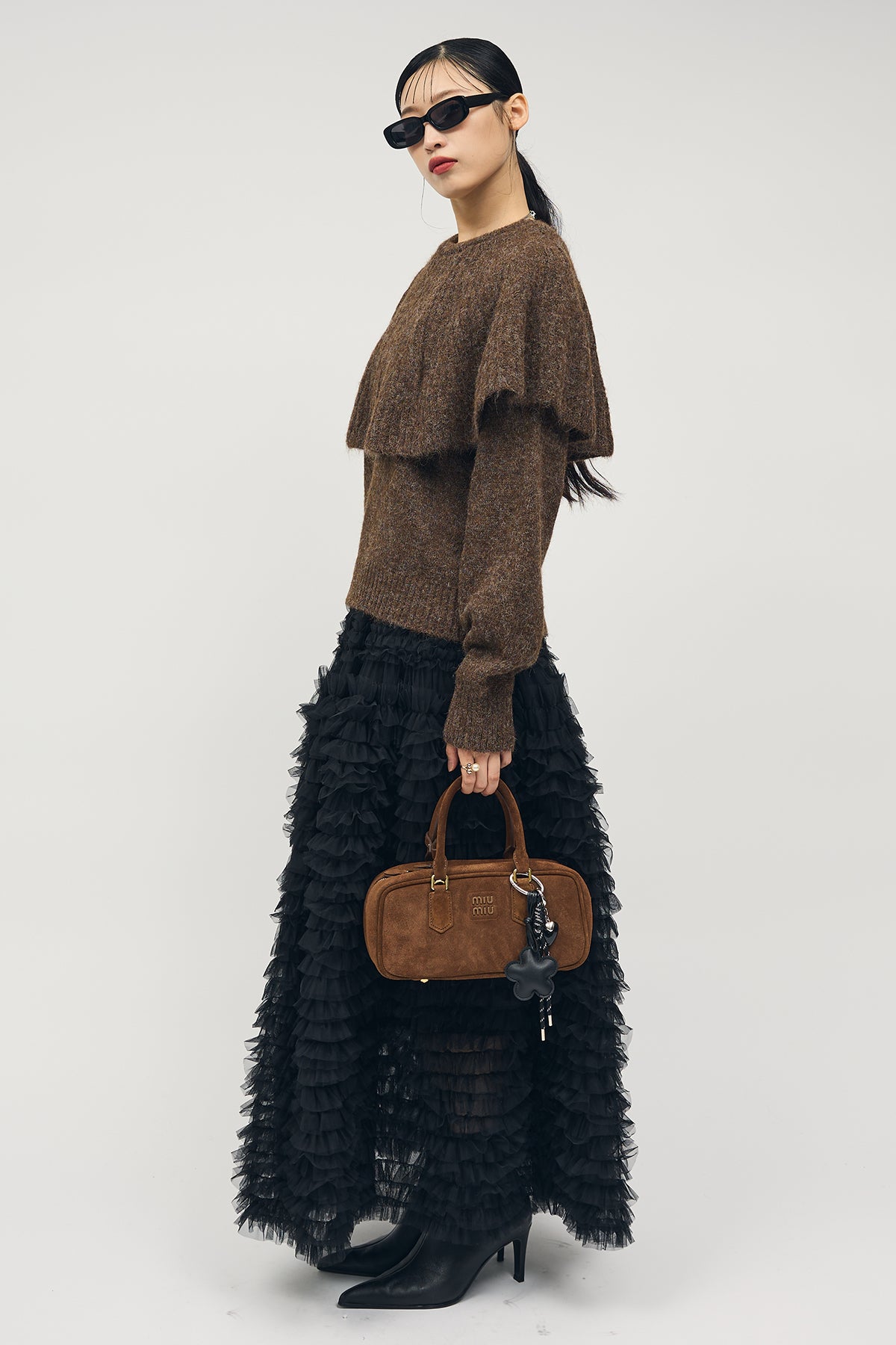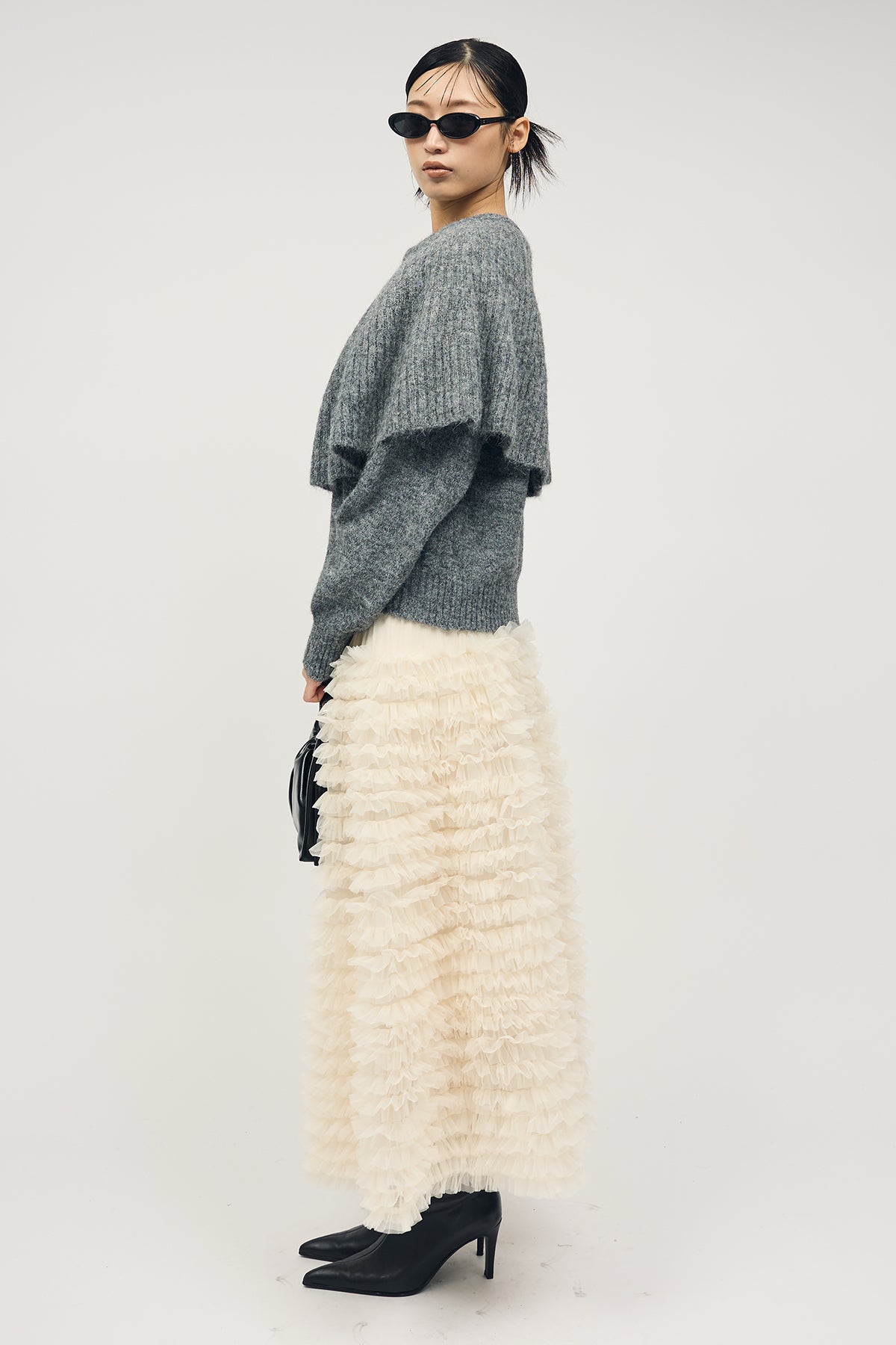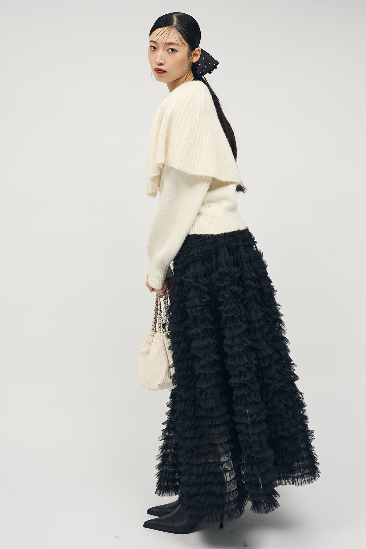 [予約/SET]ウールタッチケープ2wayニット+ホイップチュールティアードスカート(2set)