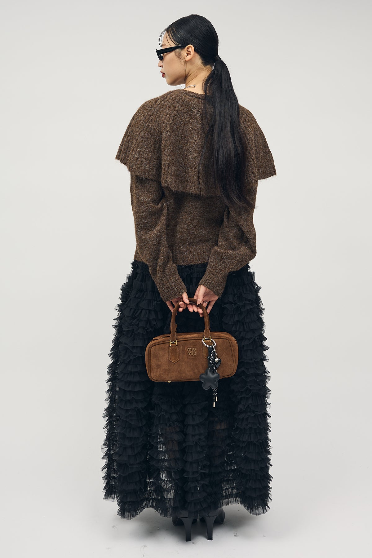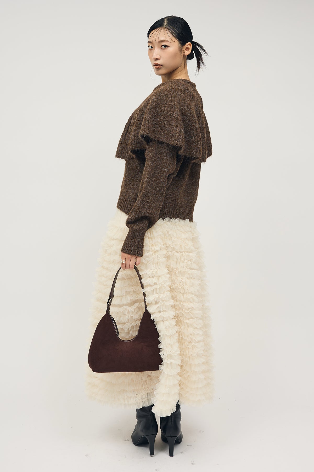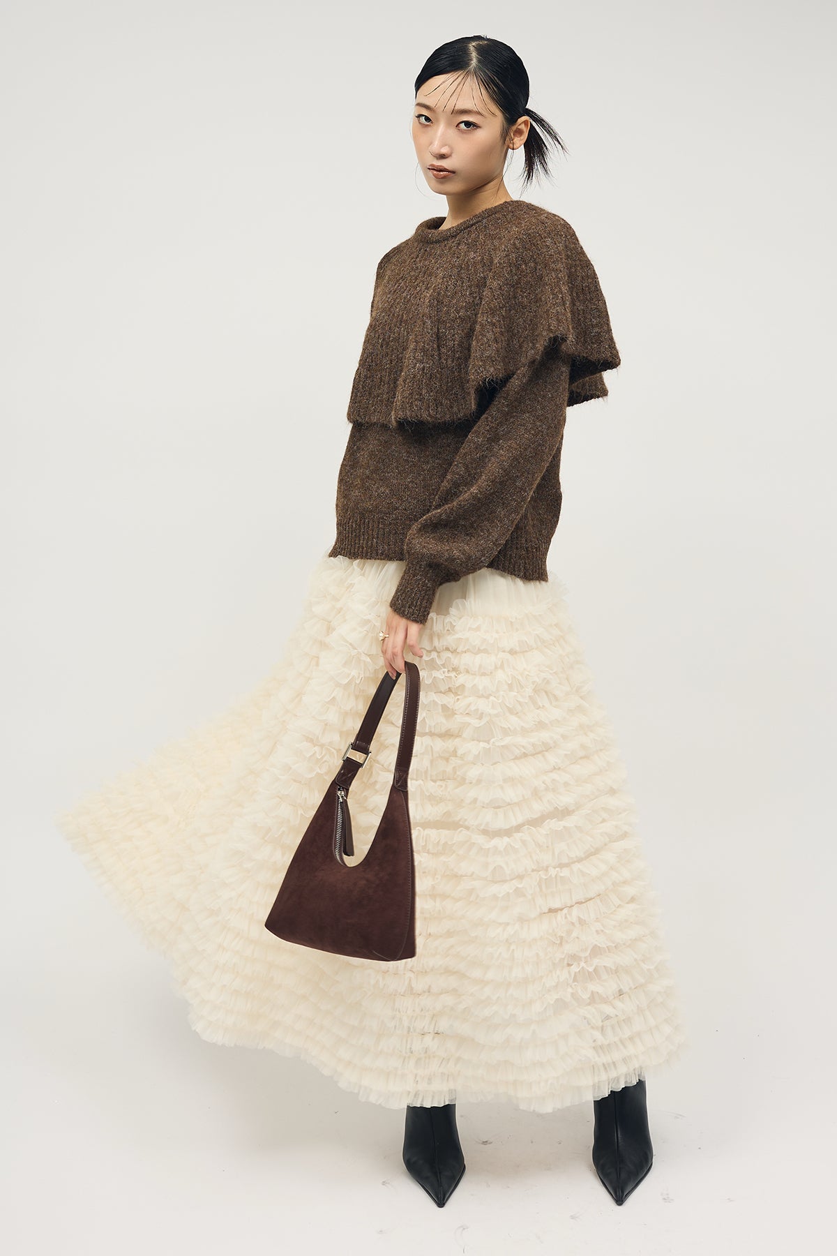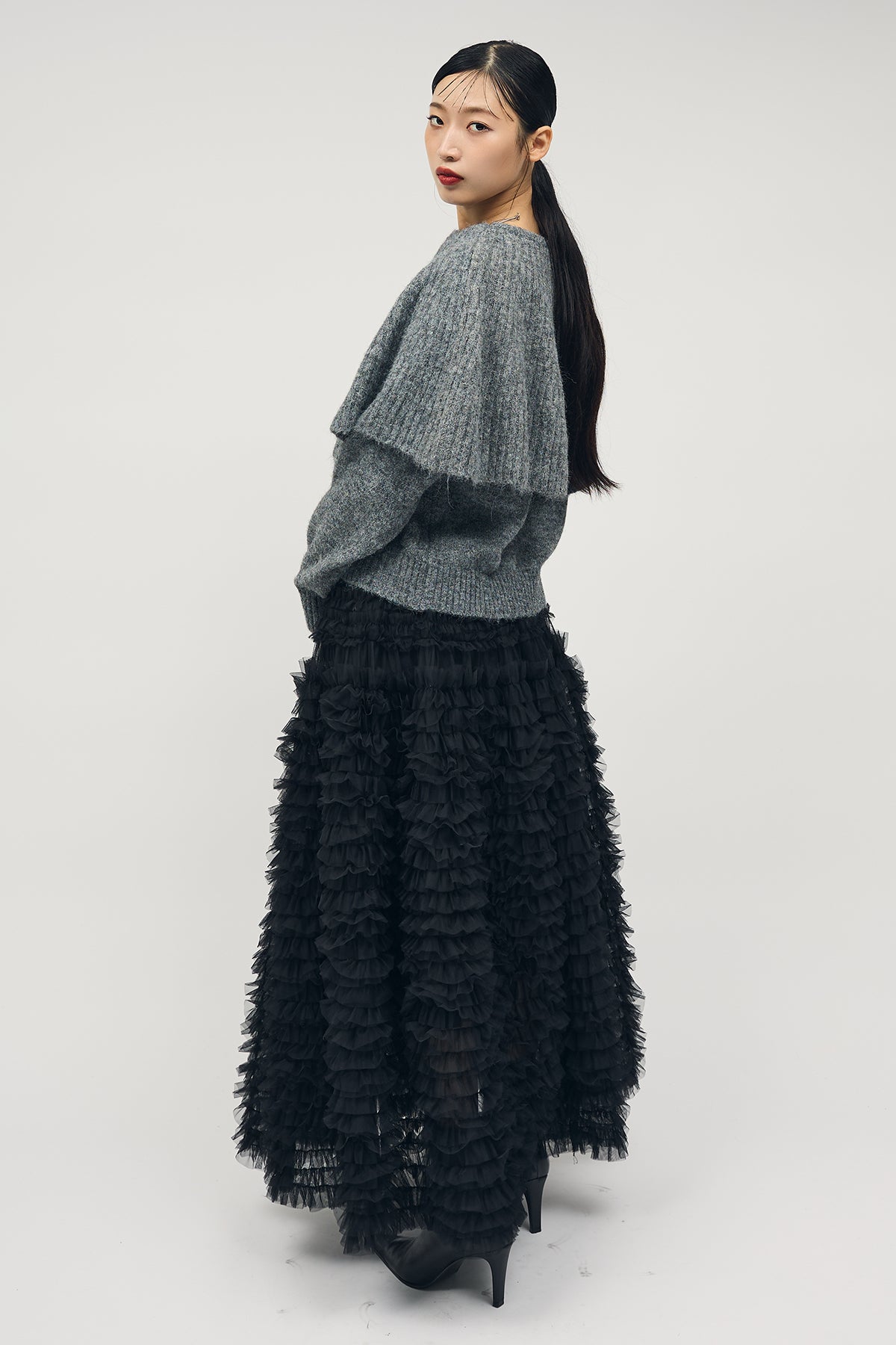[予約/SET]ウールタッチケープ2wayニット+ホイップチュールティアードスカート(2set)