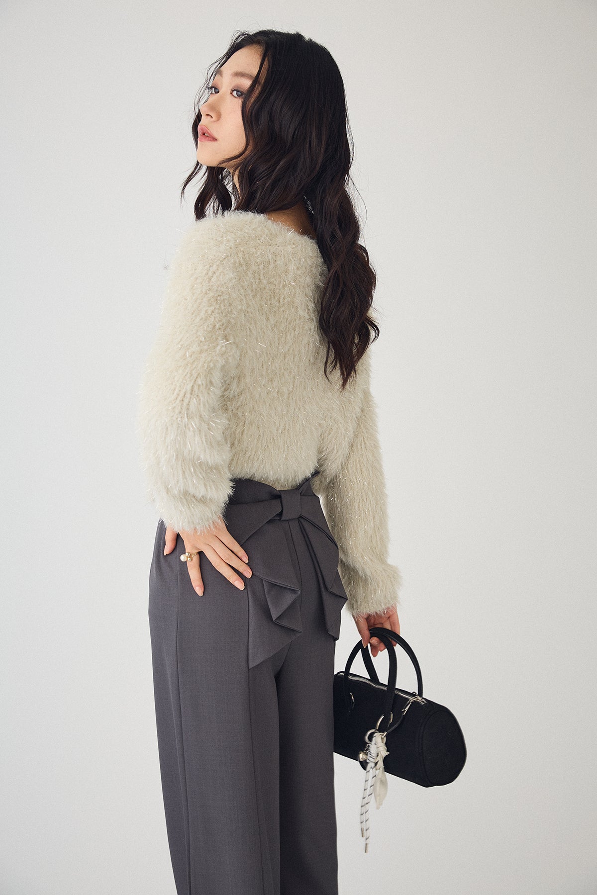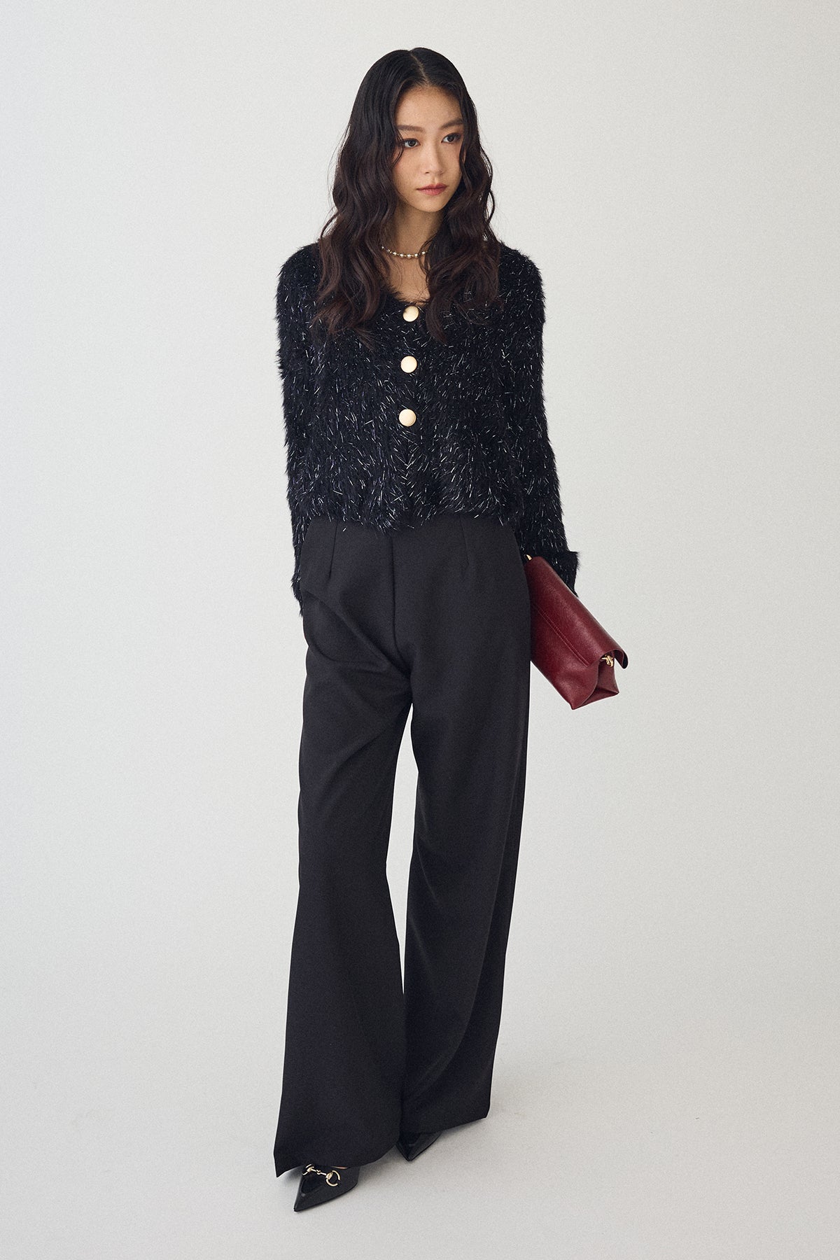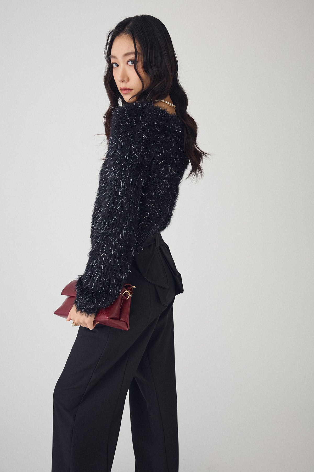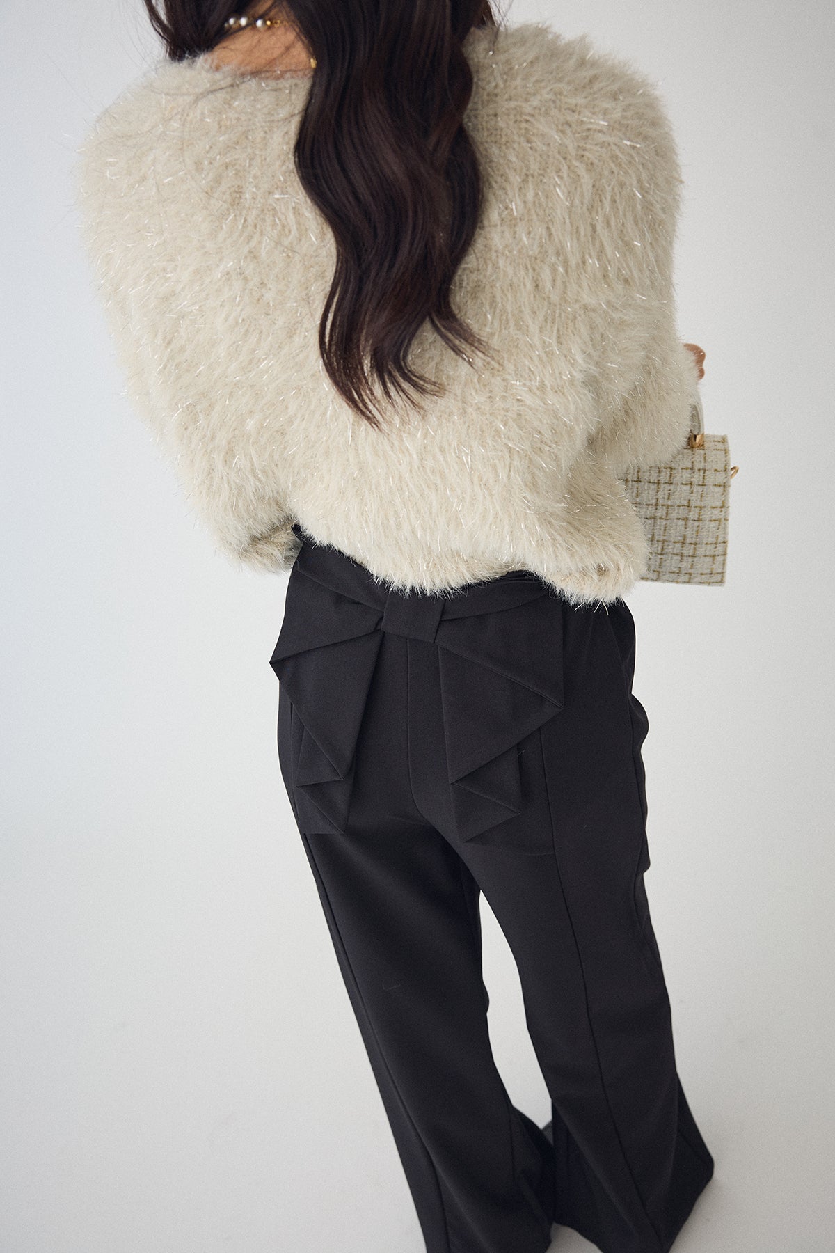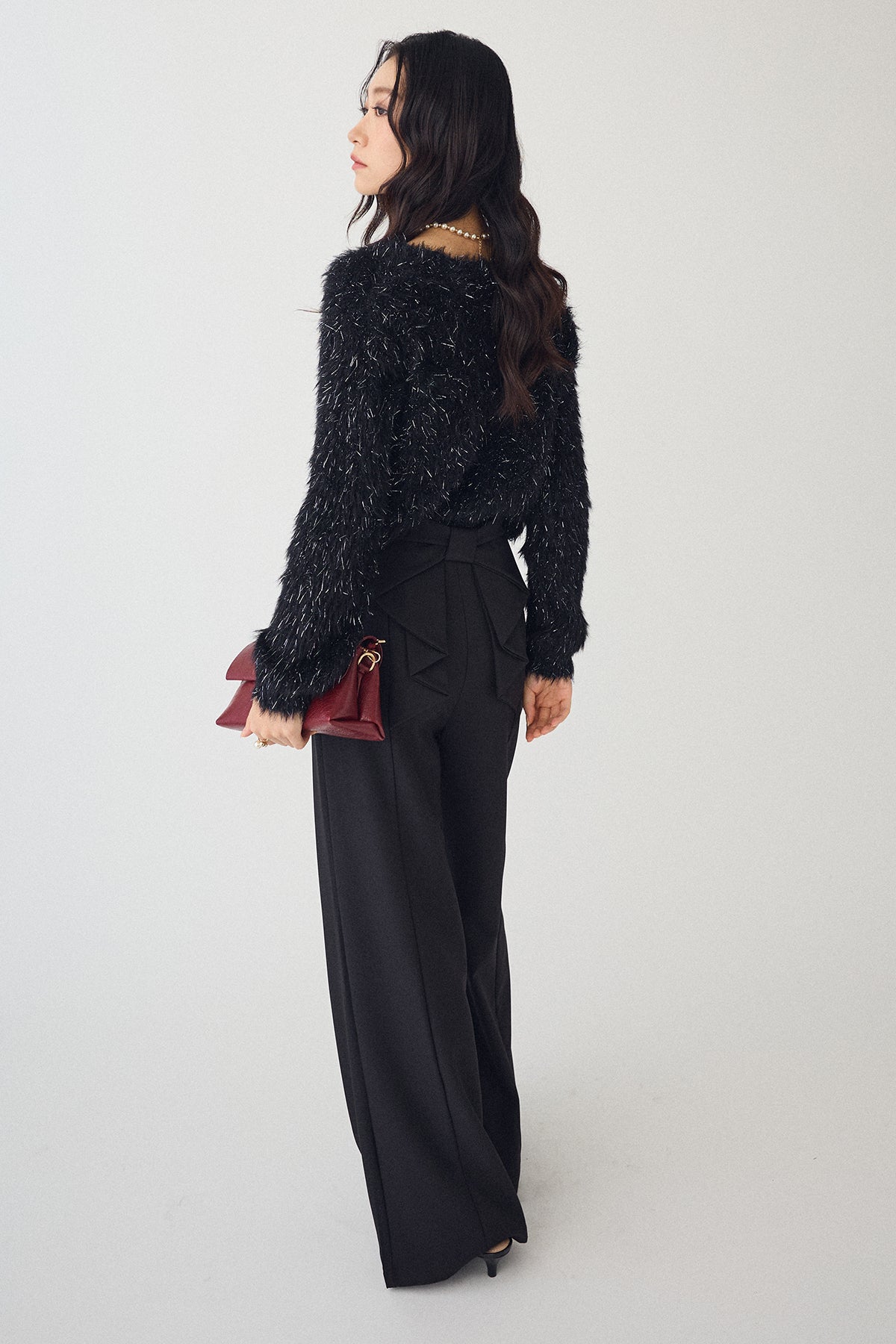 [予約/SET]ゴールドボタンラメシャギーニット+バックリボンストレートパンツ(2set)