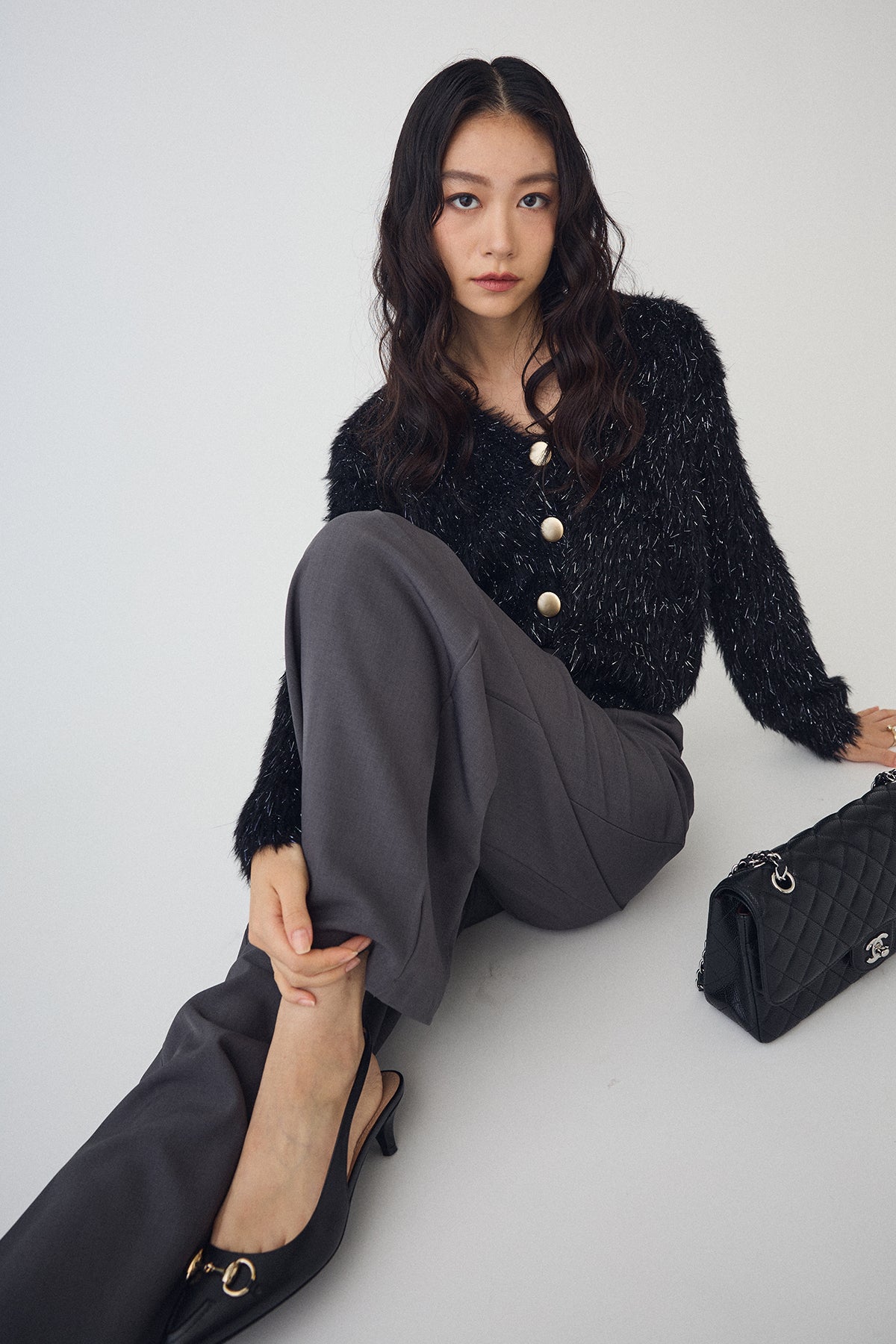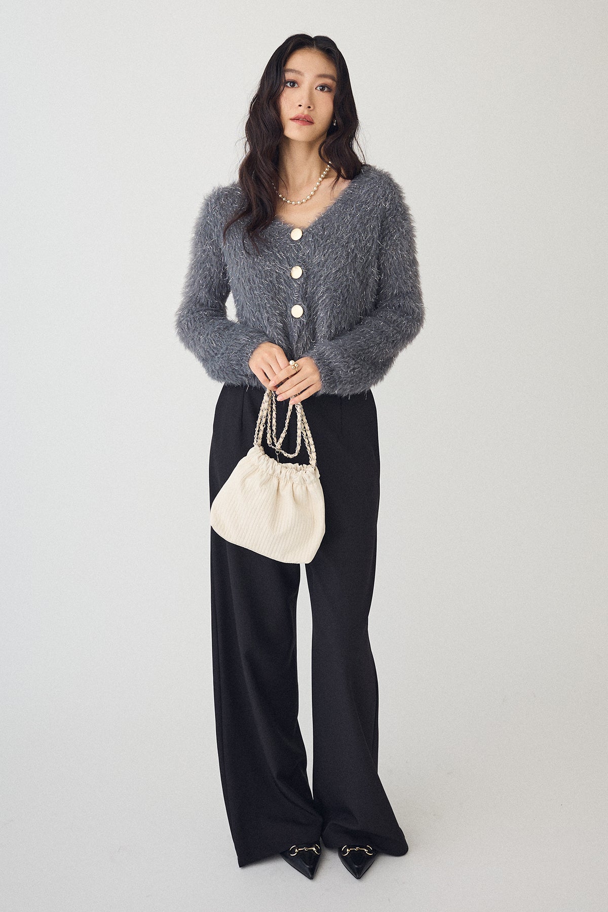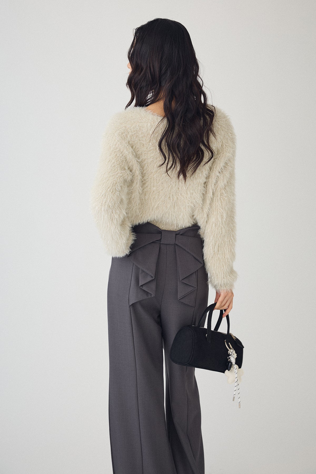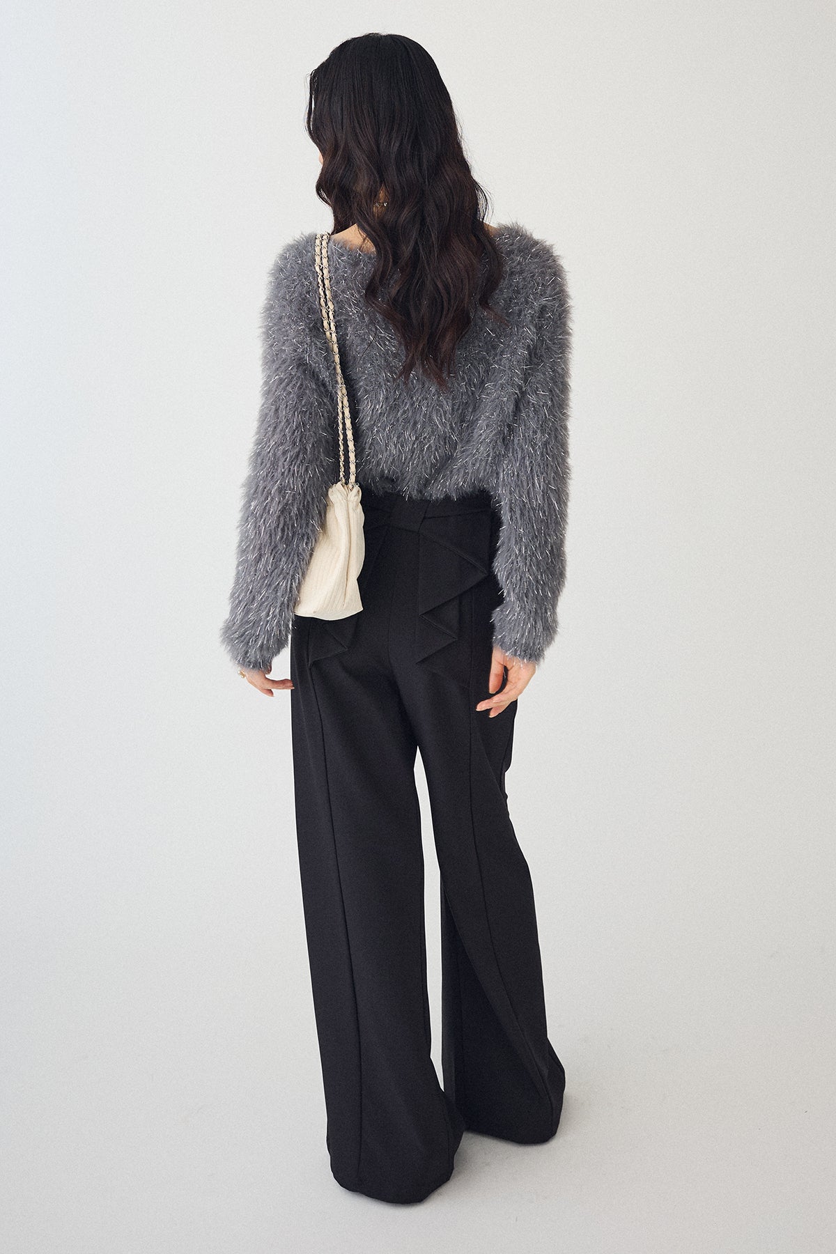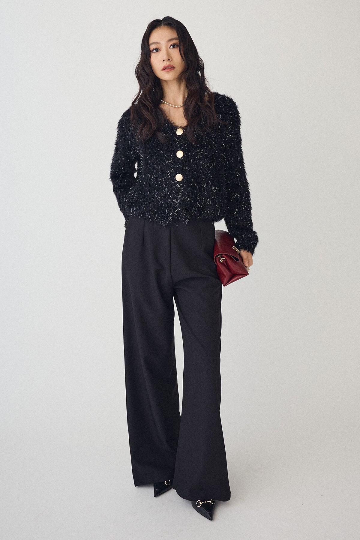 [予約/SET]ゴールドボタンラメシャギーニット+バックリボンストレートパンツ(2set)