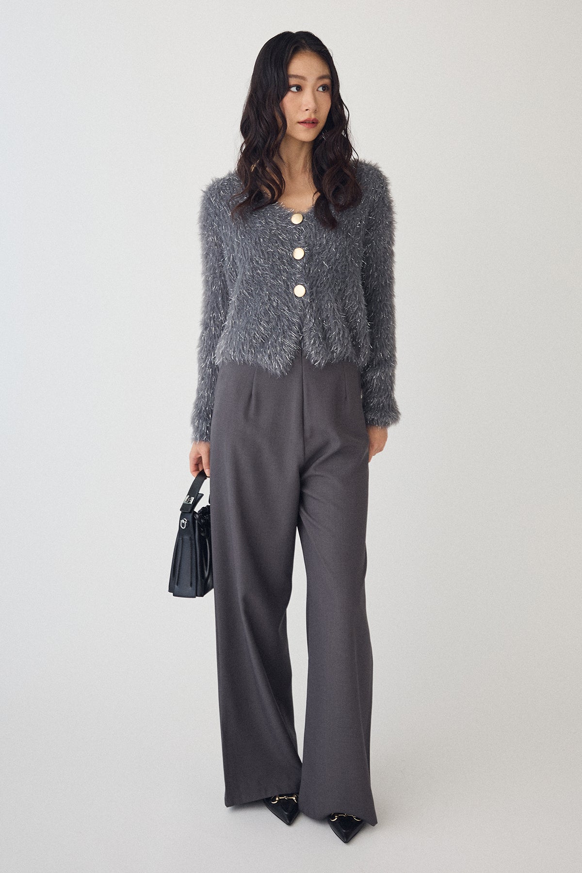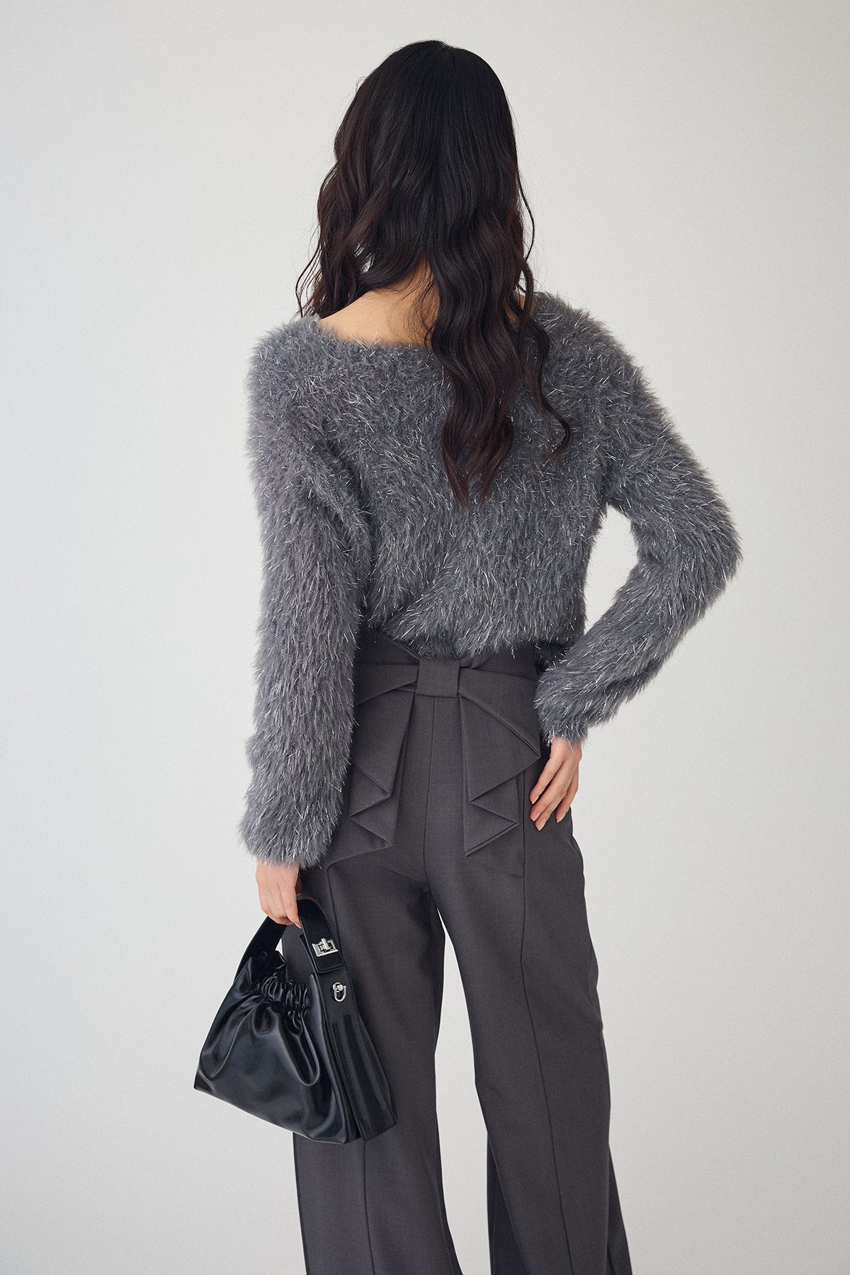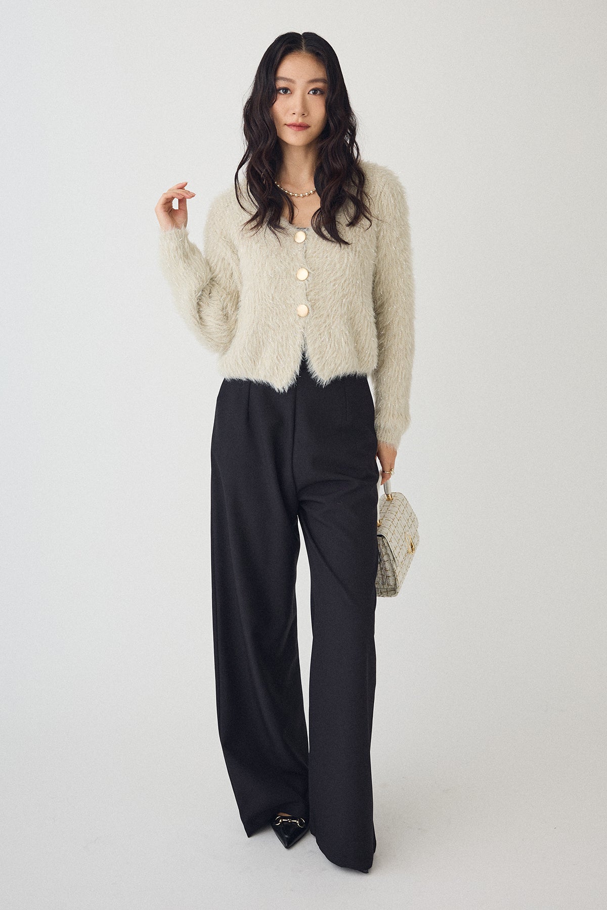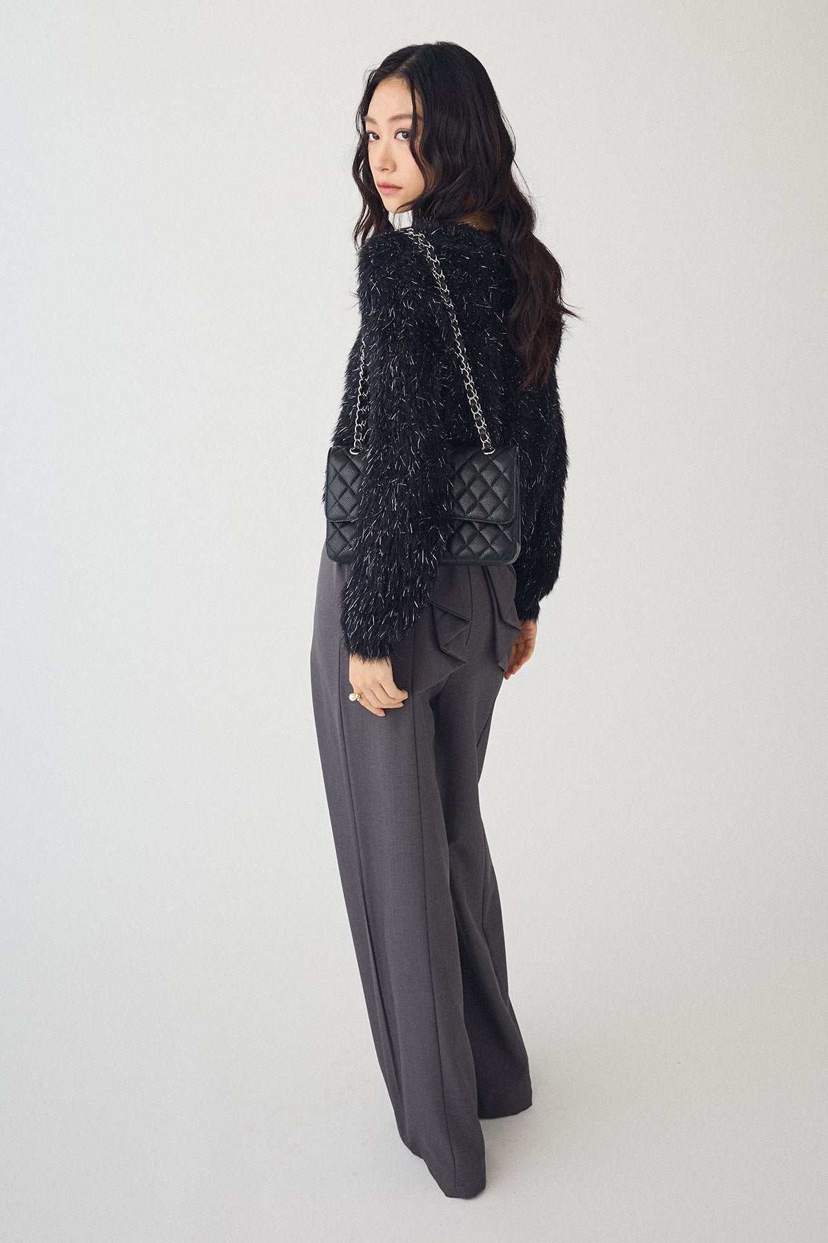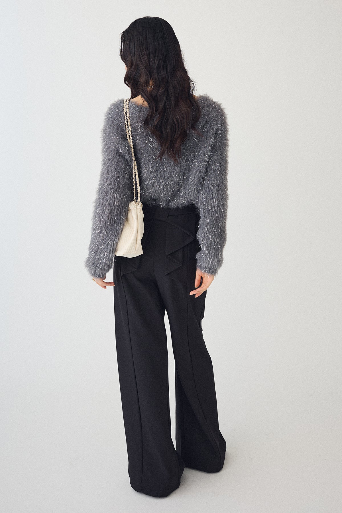 [予約/SET]ゴールドボタンラメシャギーニット+バックリボンストレートパンツ(2set)