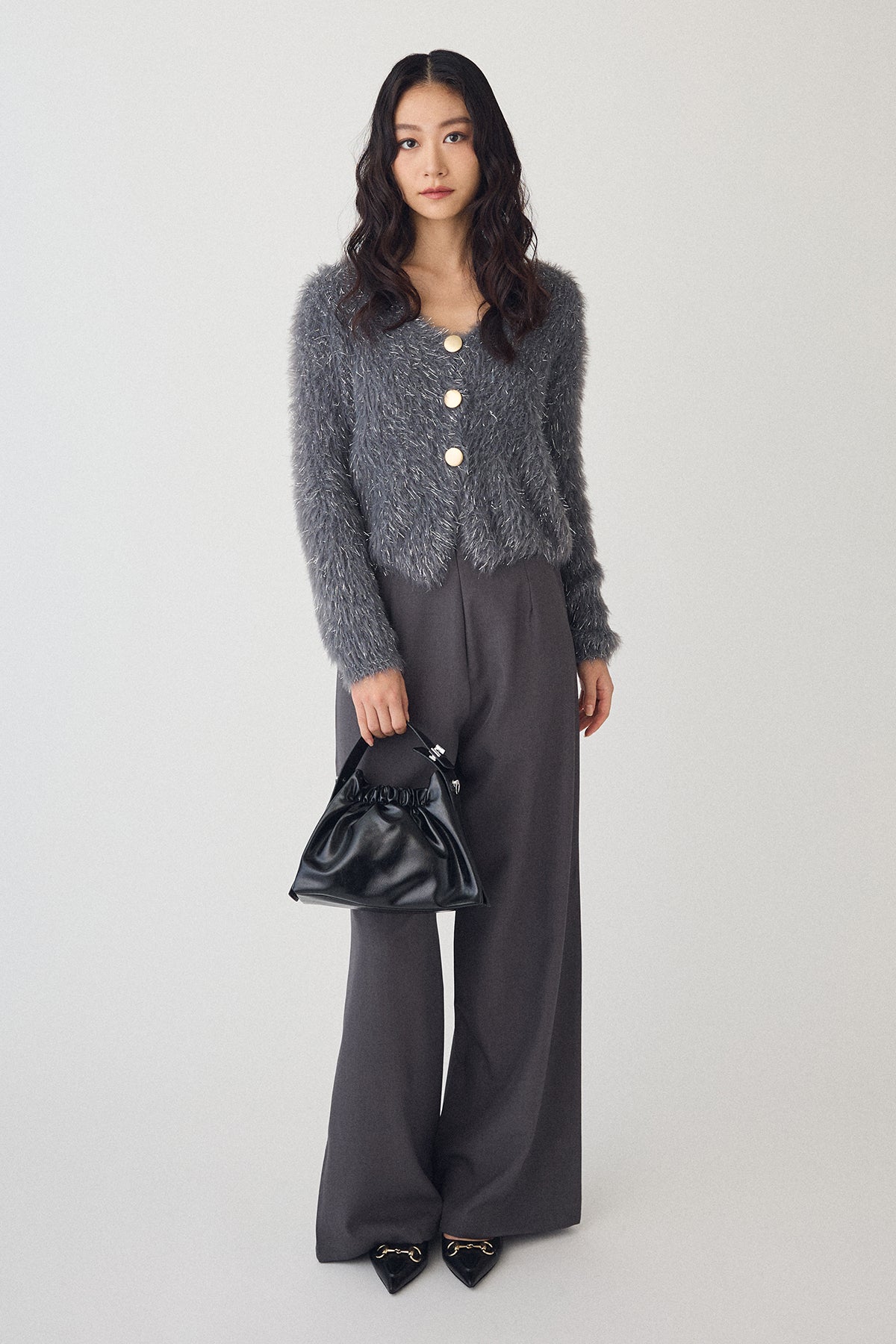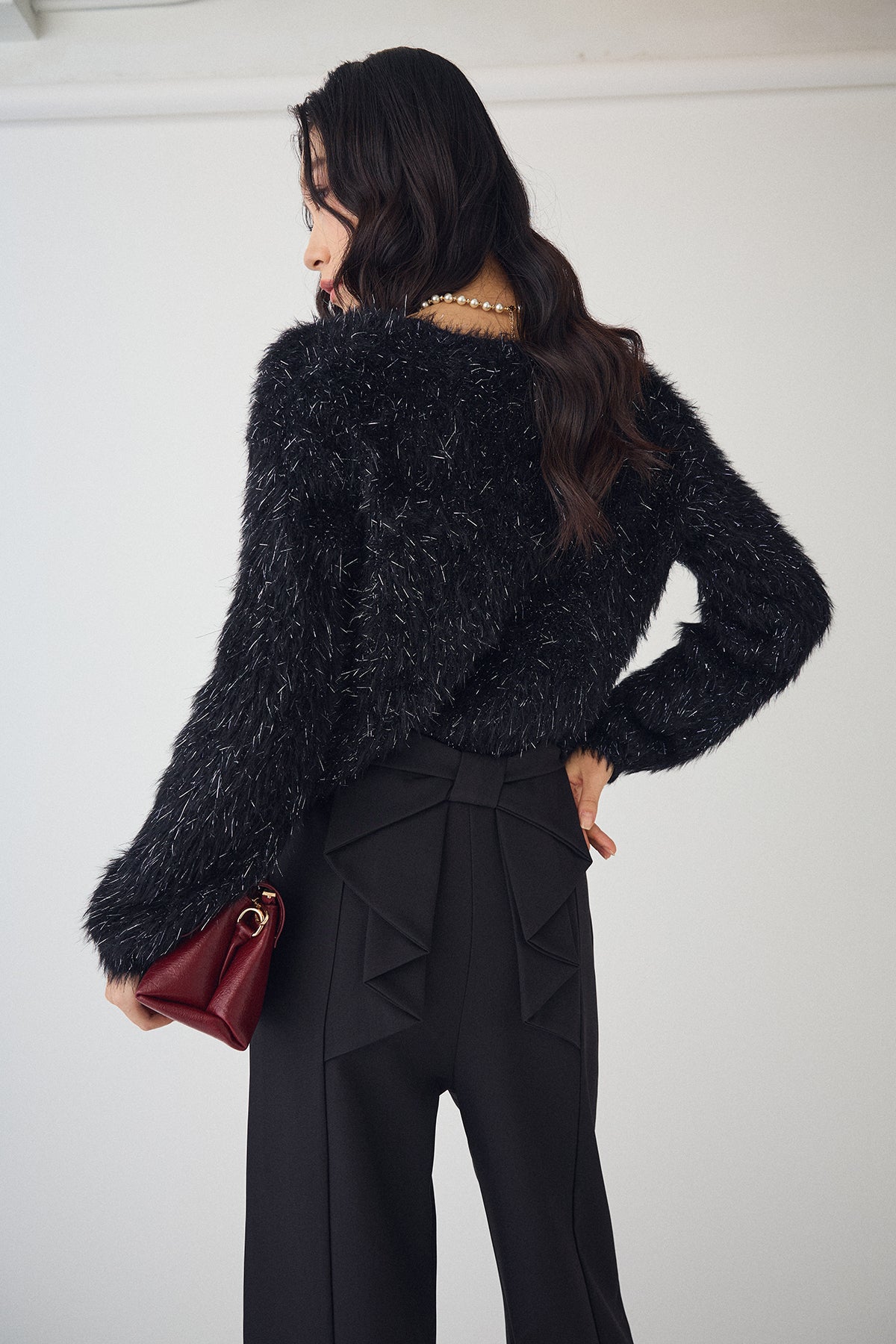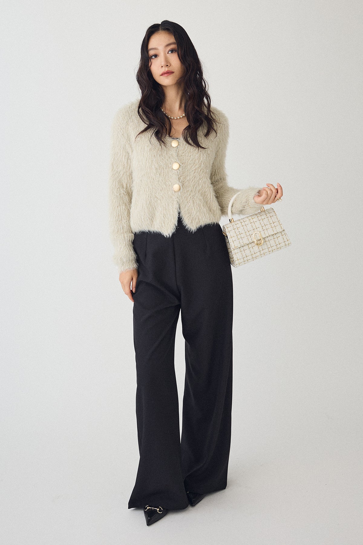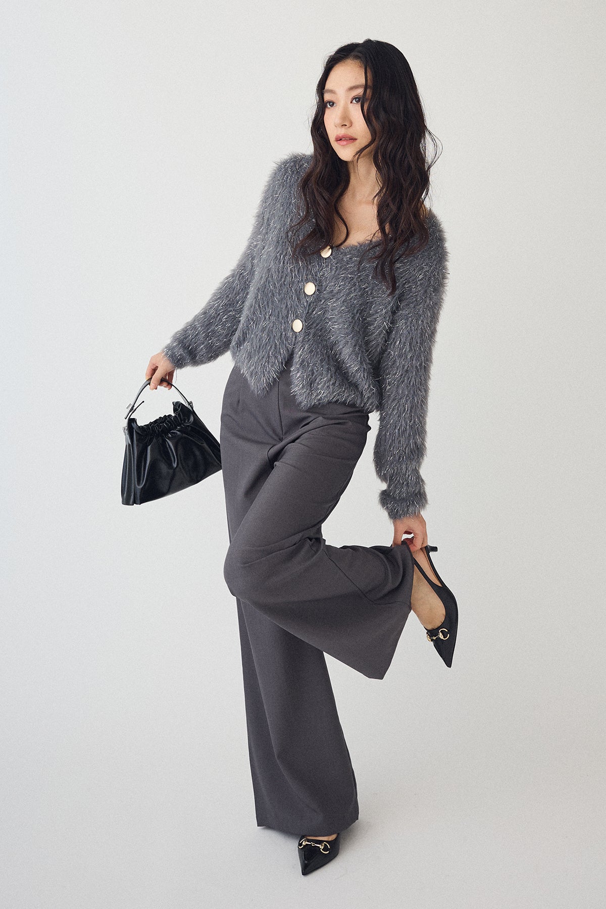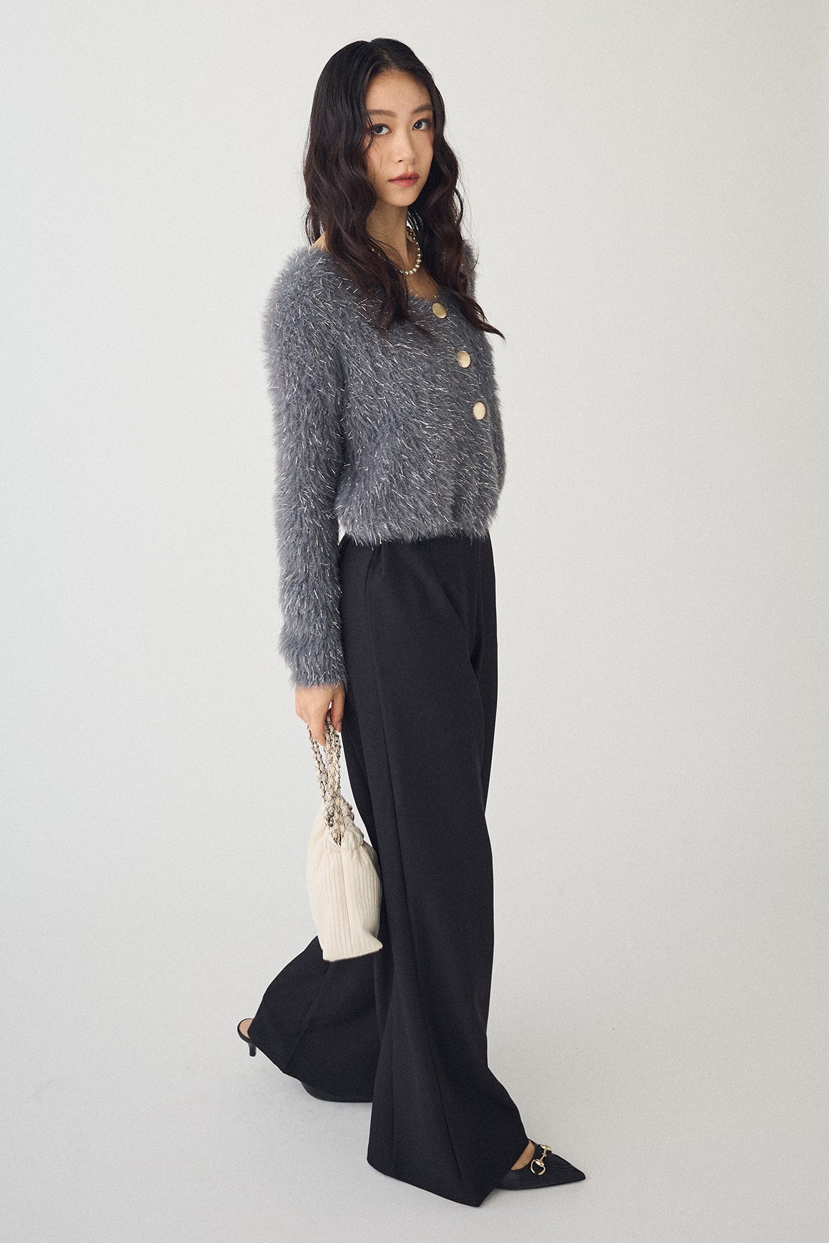[予約/SET]ゴールドボタンラメシャギーニット+バックリボンストレートパンツ(2set)