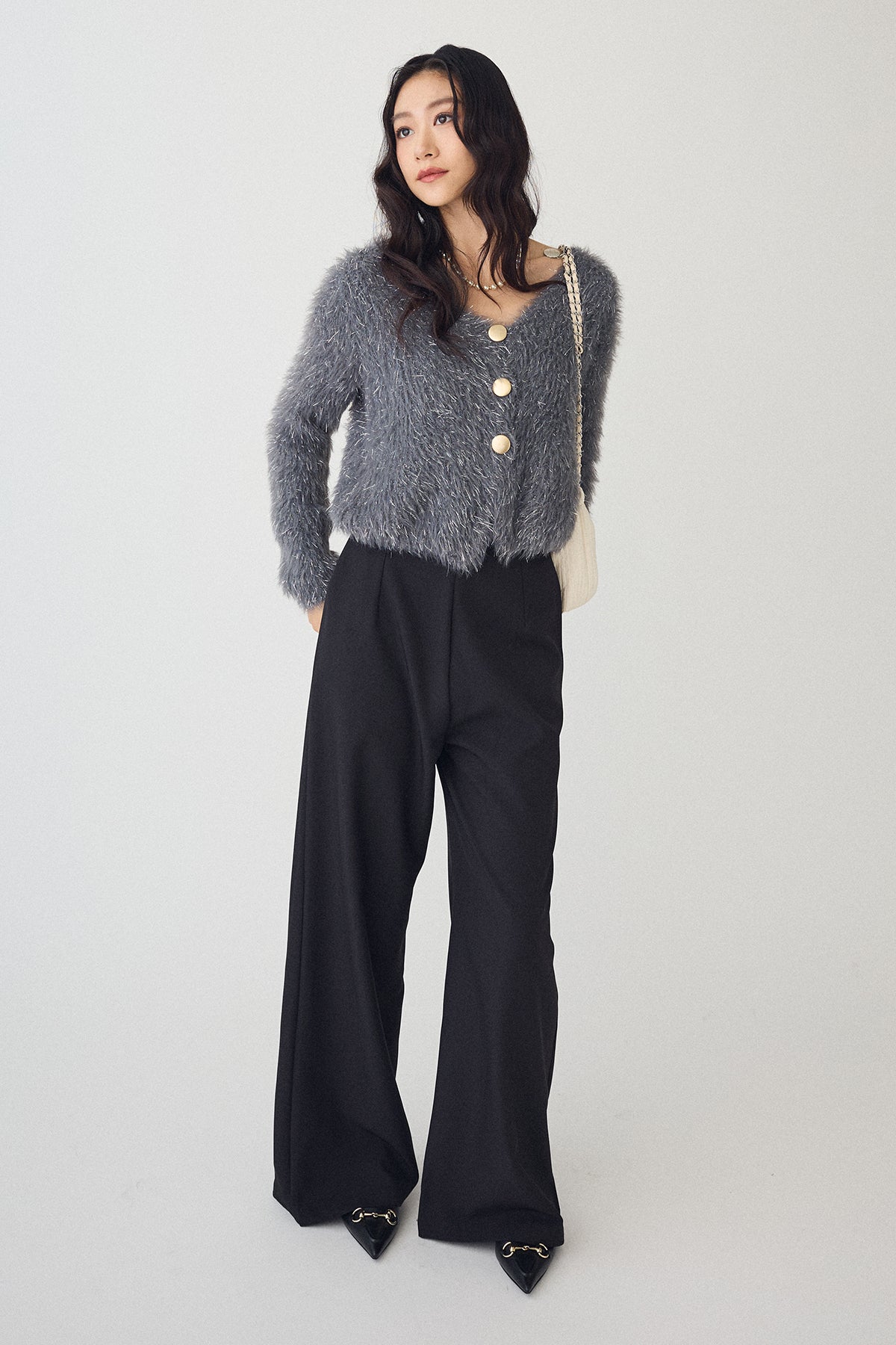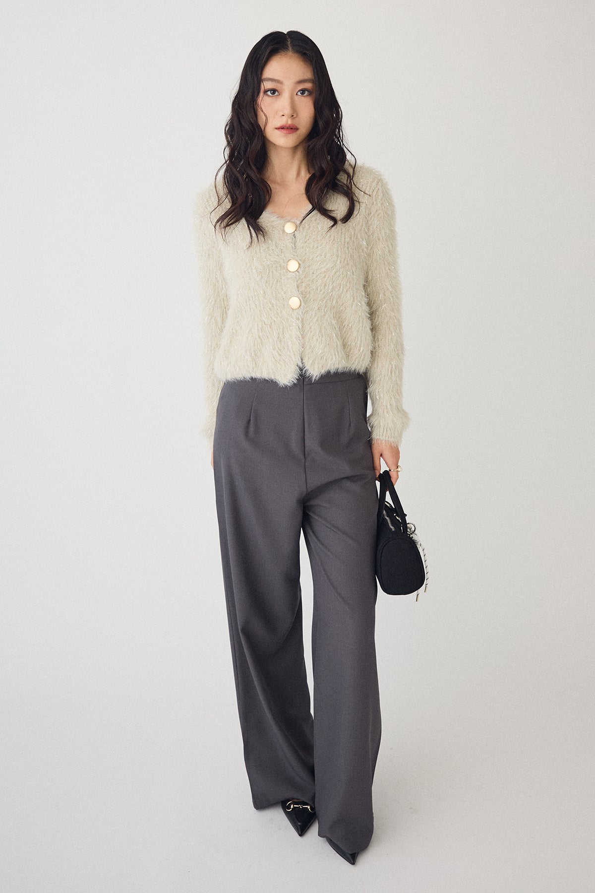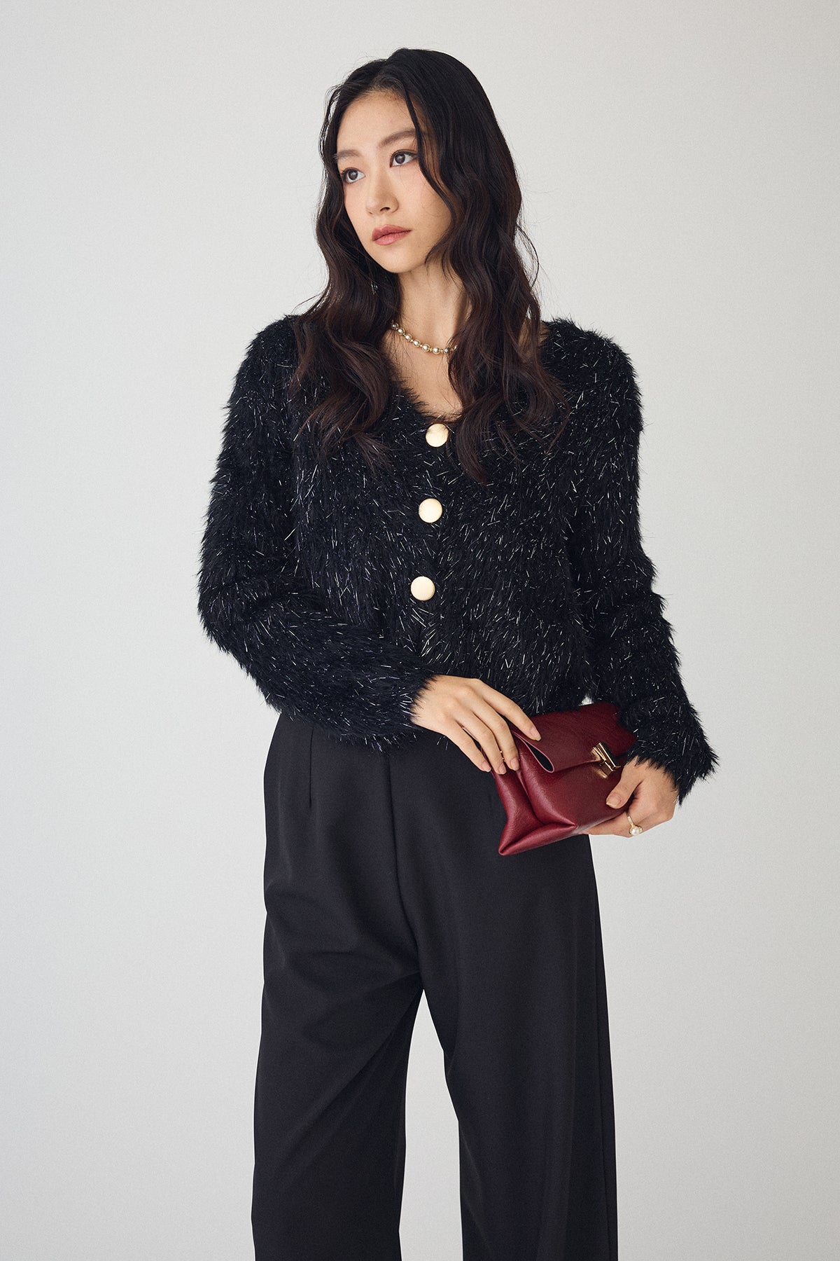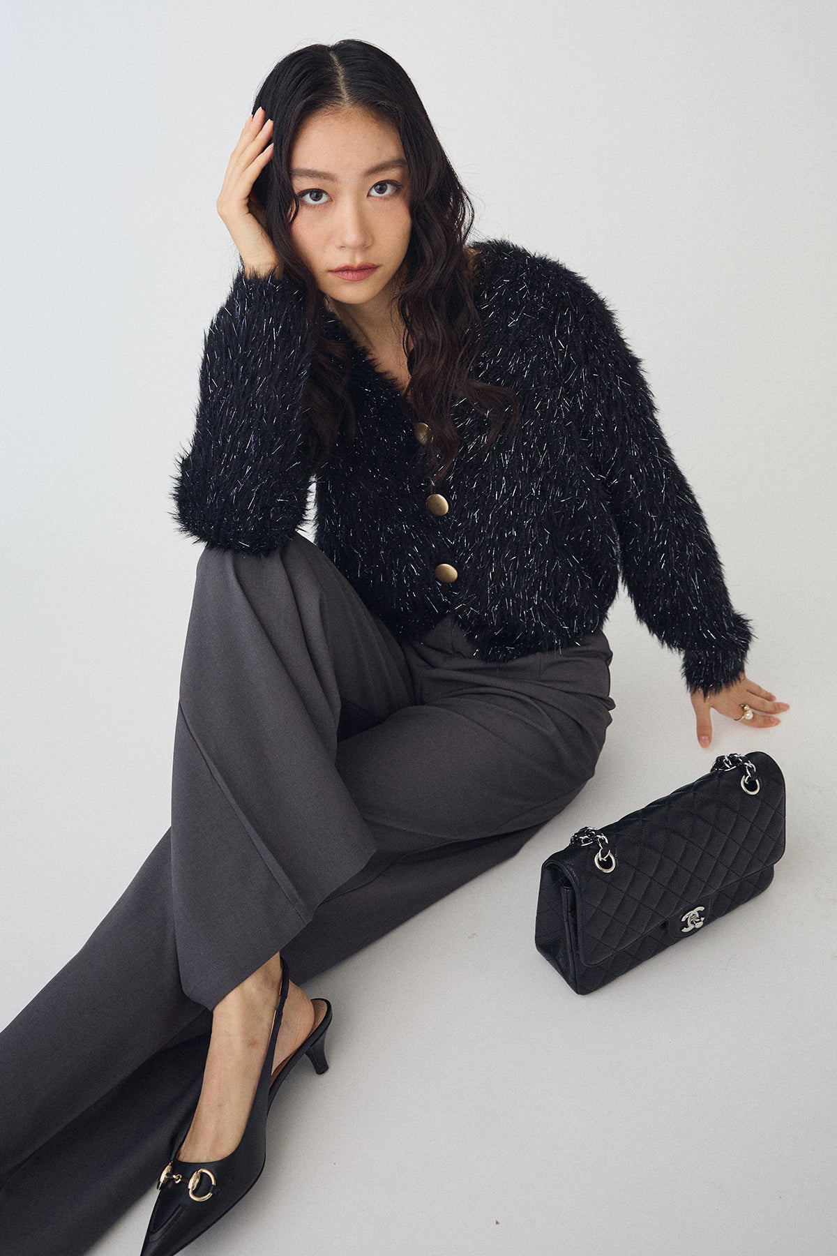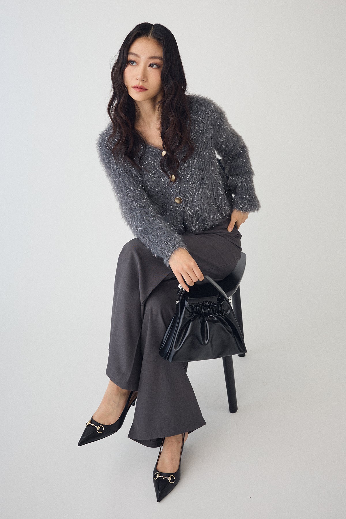 [予約/SET]ゴールドボタンラメシャギーニット+バックリボンストレートパンツ(2set)