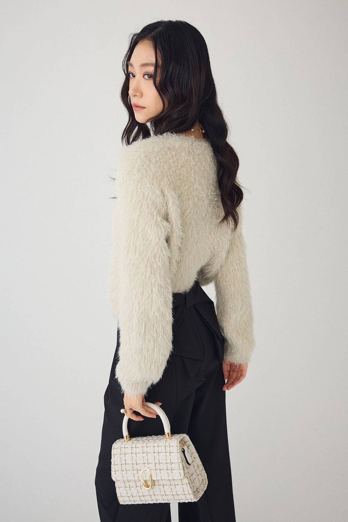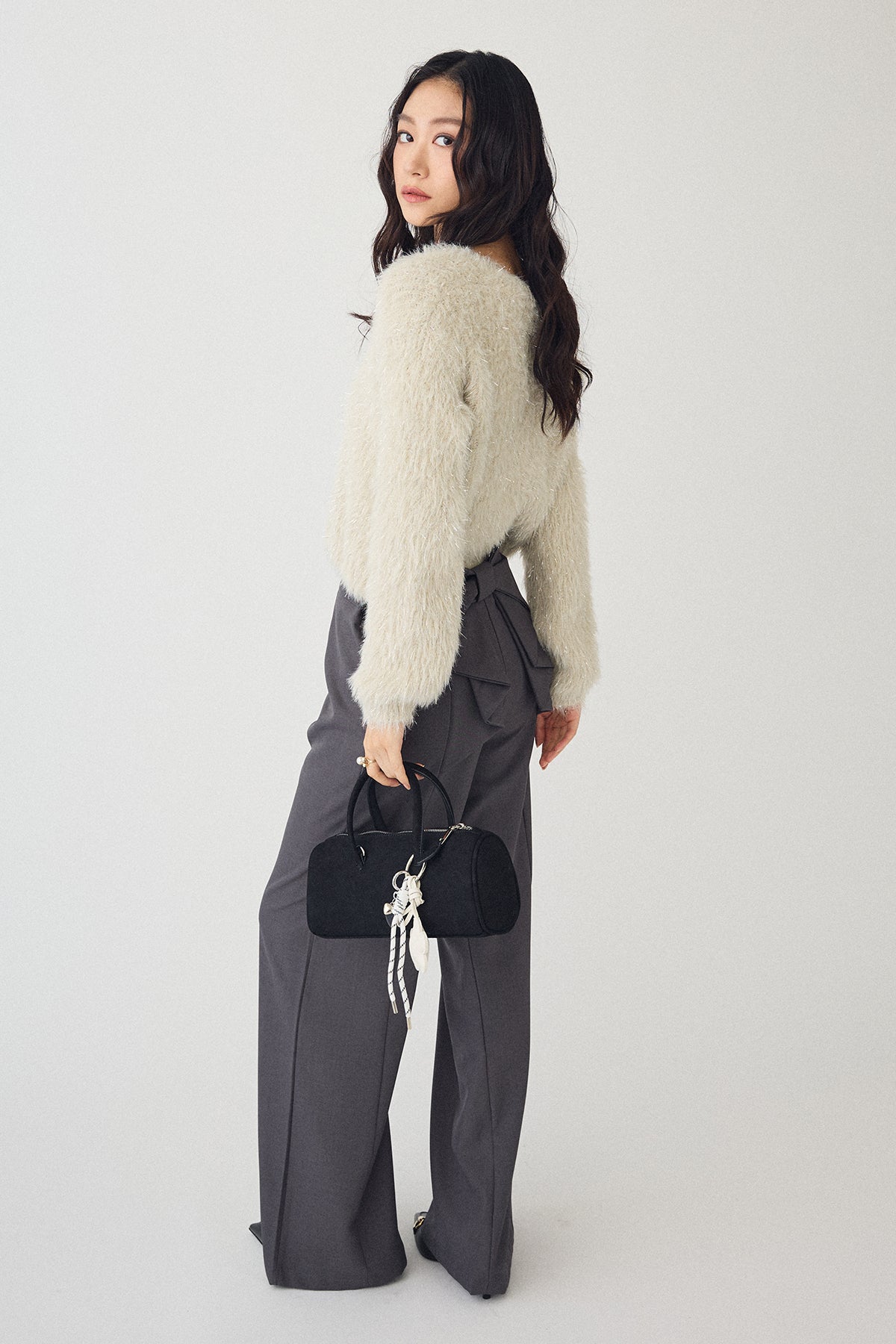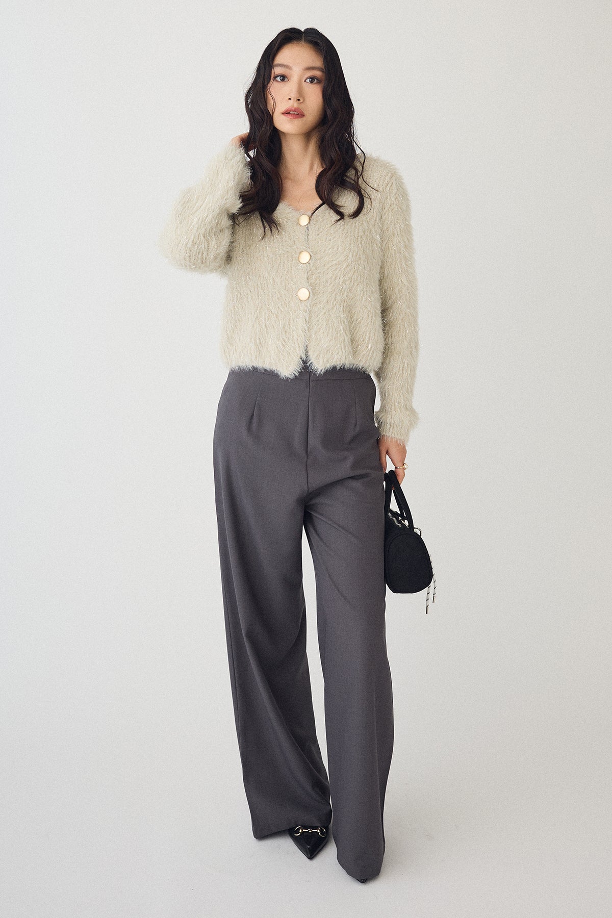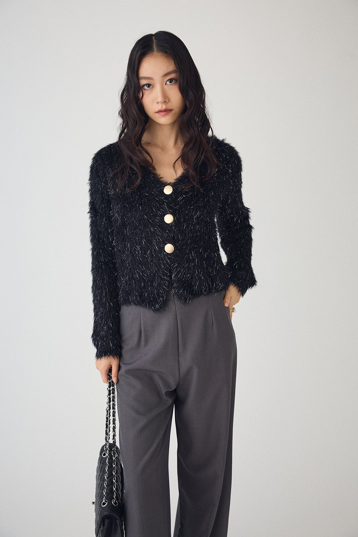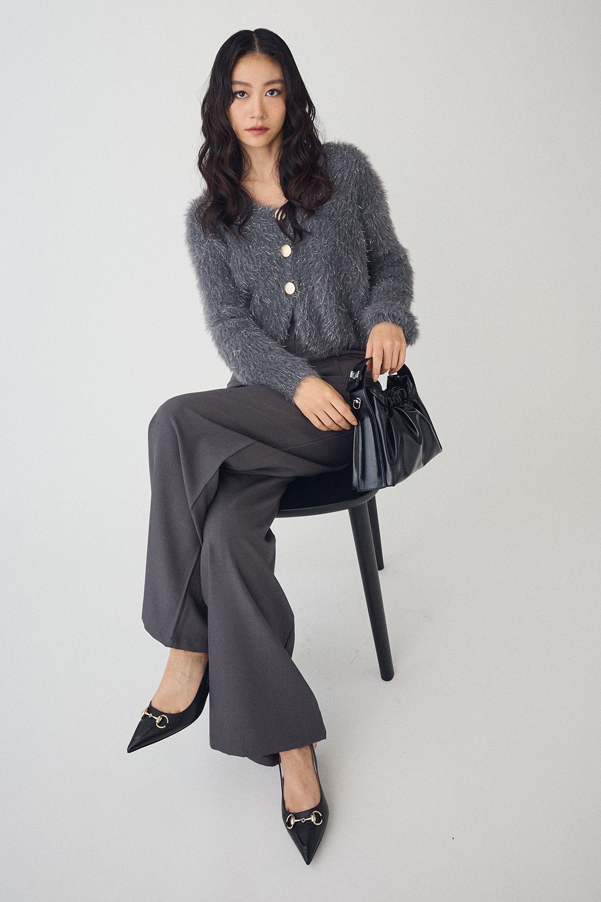 [予約/SET]ゴールドボタンラメシャギーニット+バックリボンストレートパンツ(2set)