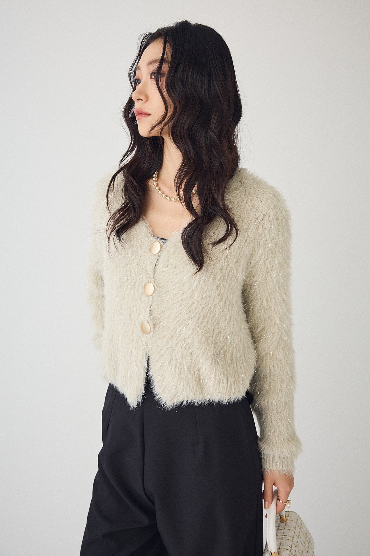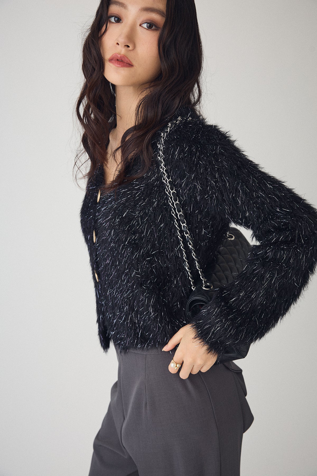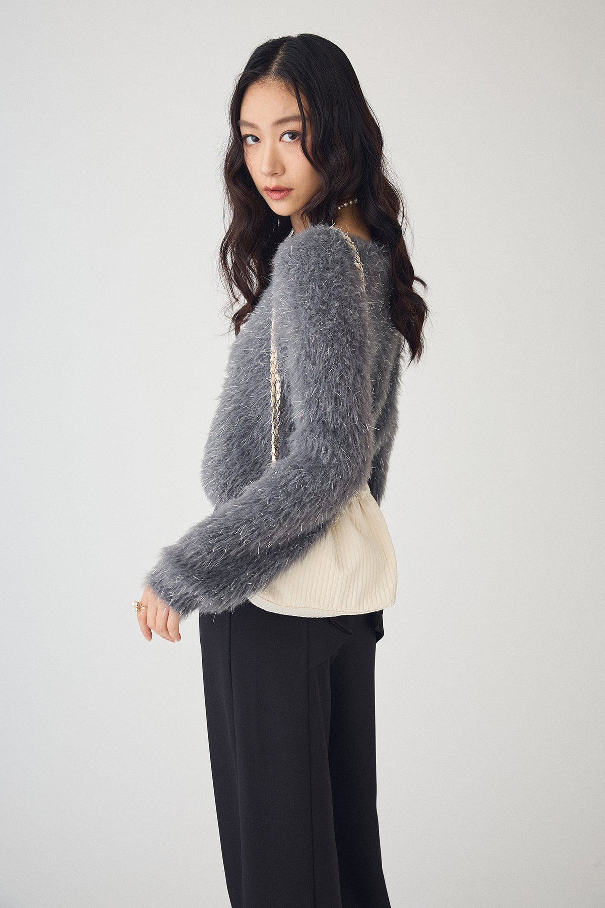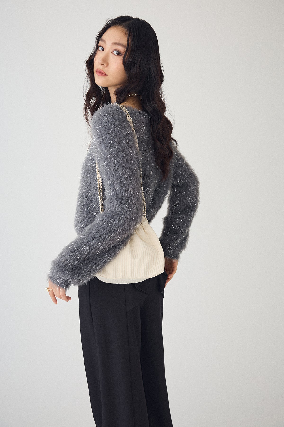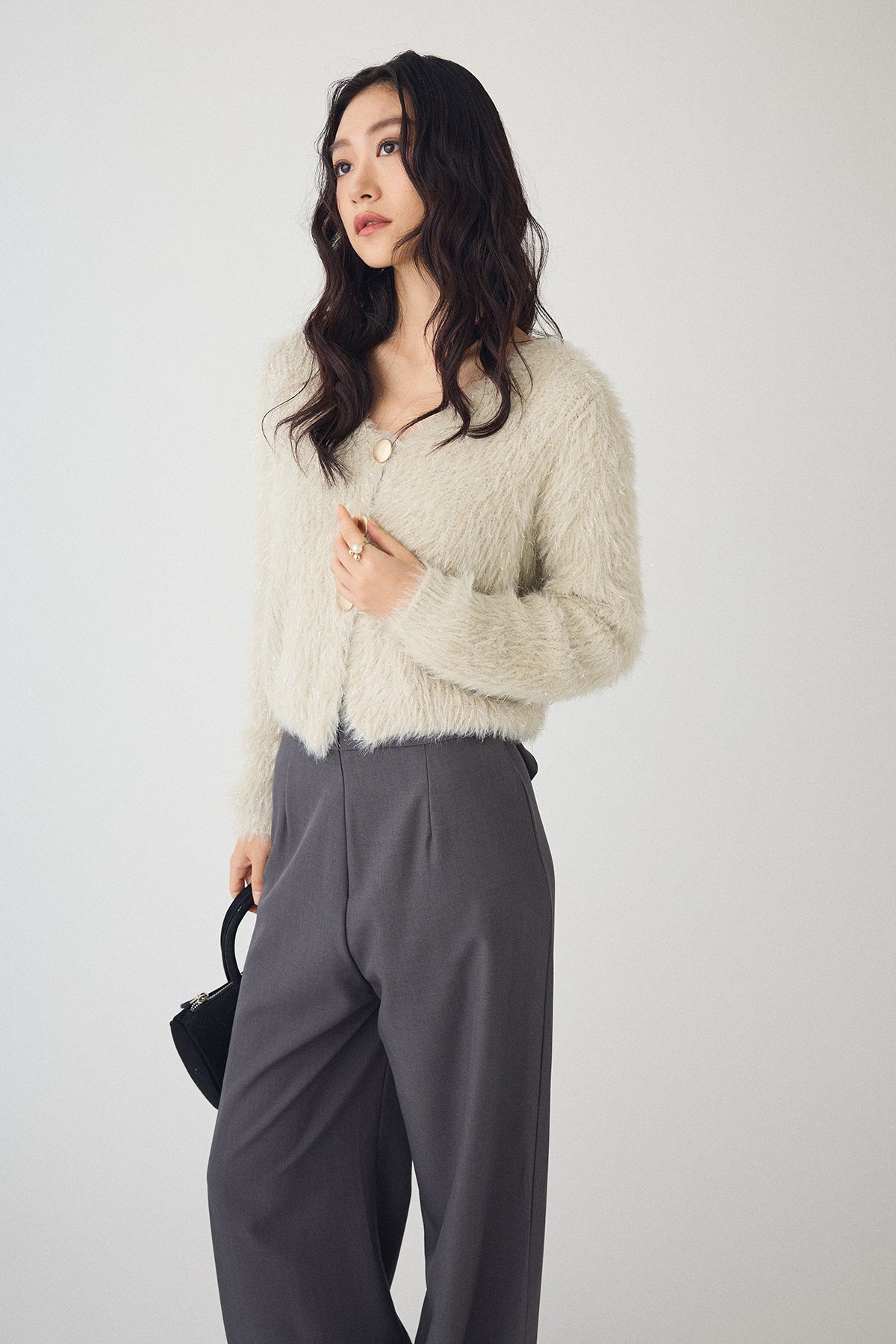 [予約/SET]ゴールドボタンラメシャギーニット+バックリボンストレートパンツ(2set)
