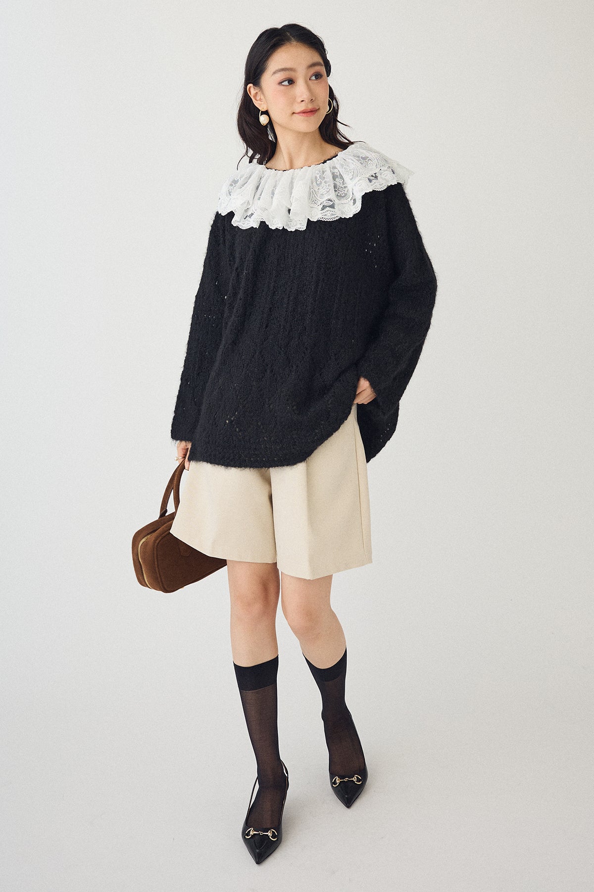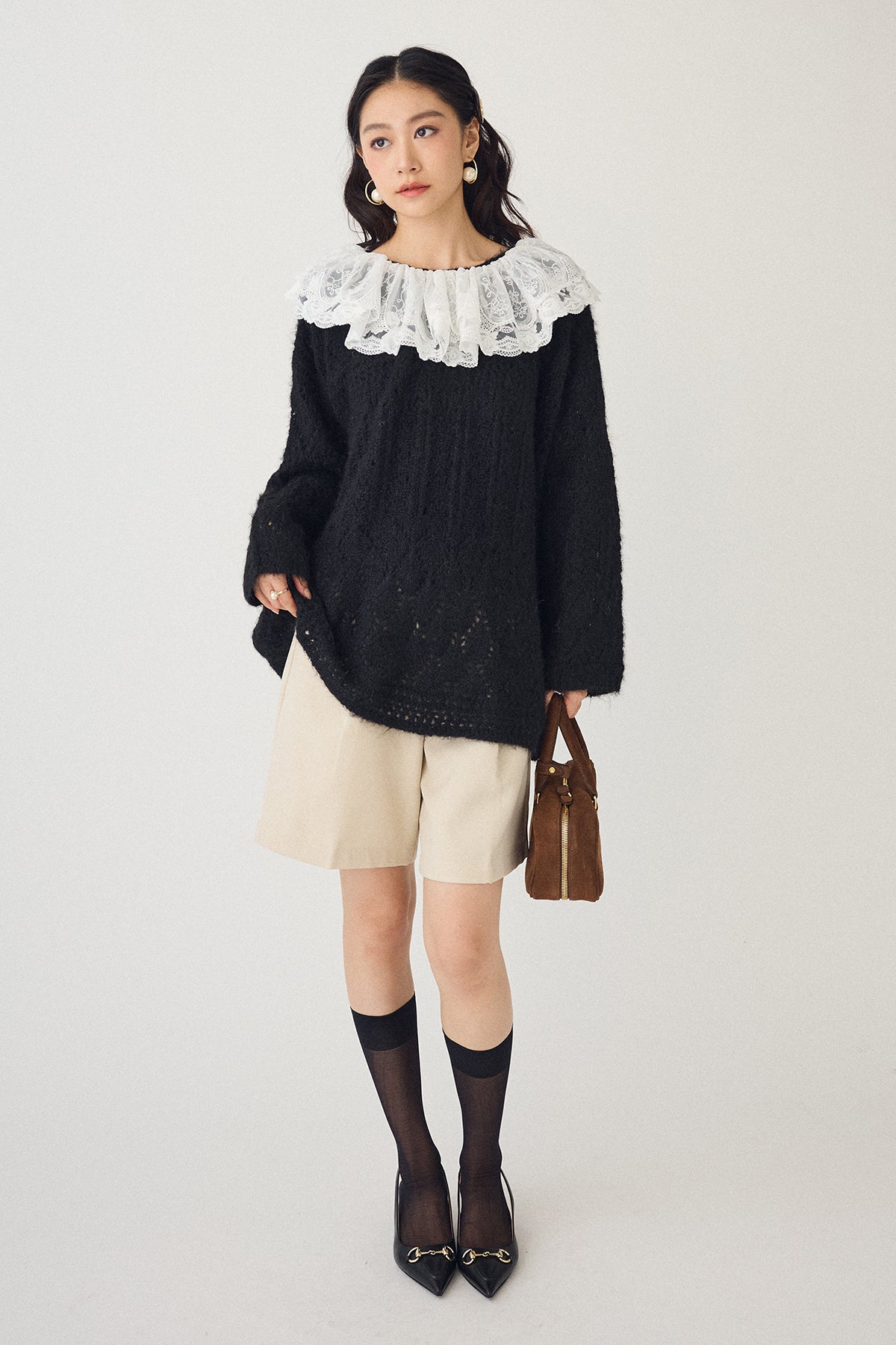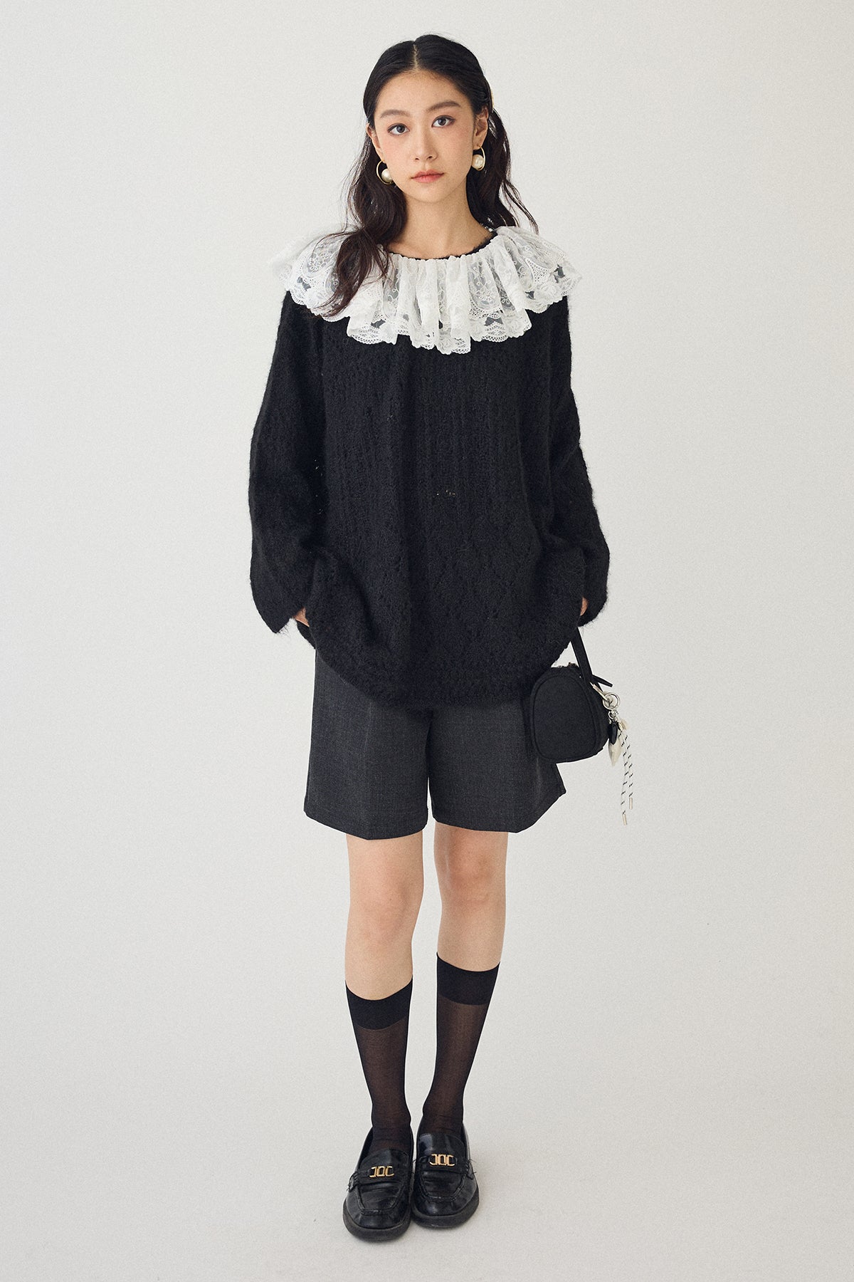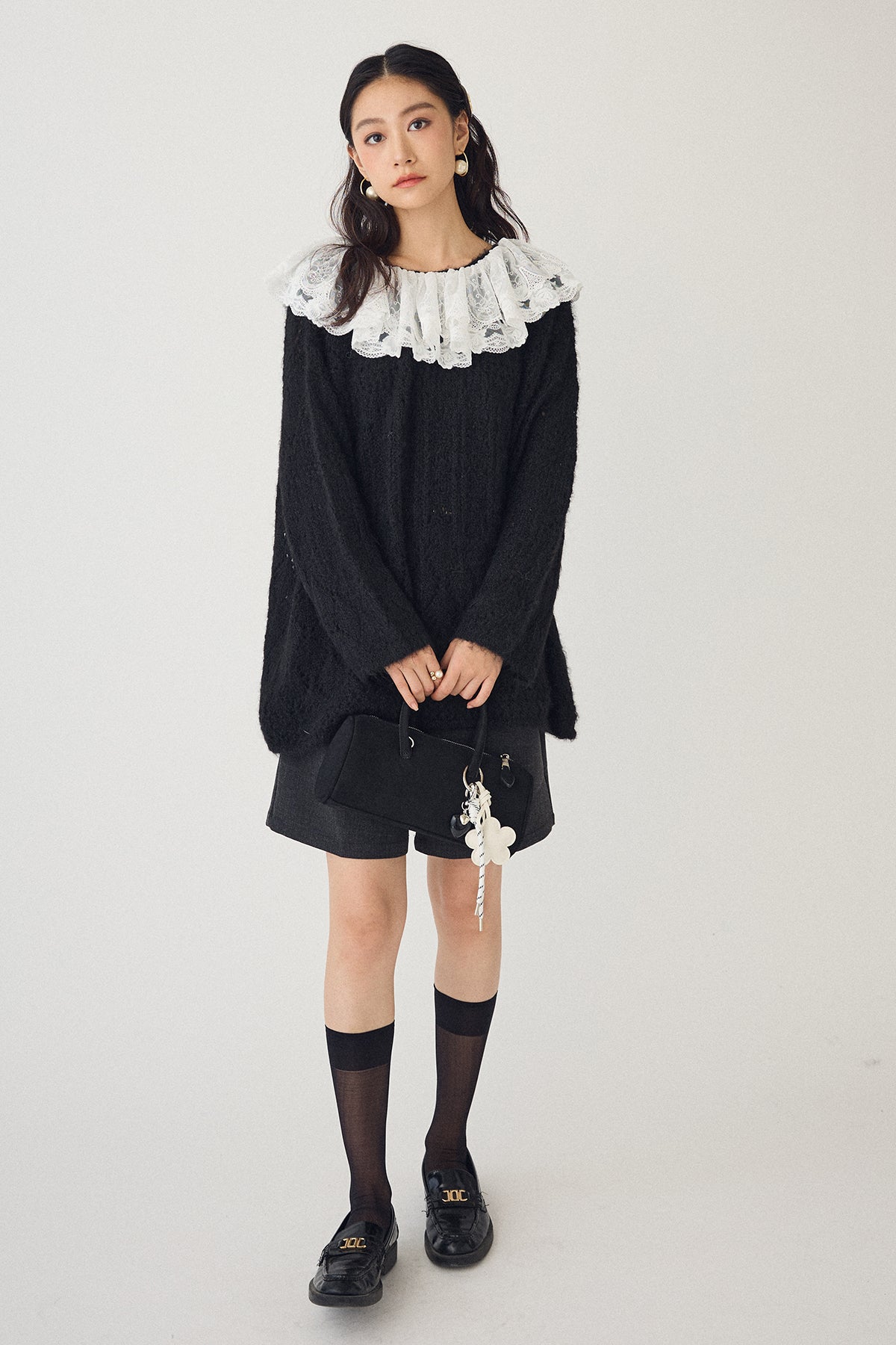 [予約/SET]ダブルレースカラードッキングニット+ウールタッチセンタープレスハーフパンツ(2set)