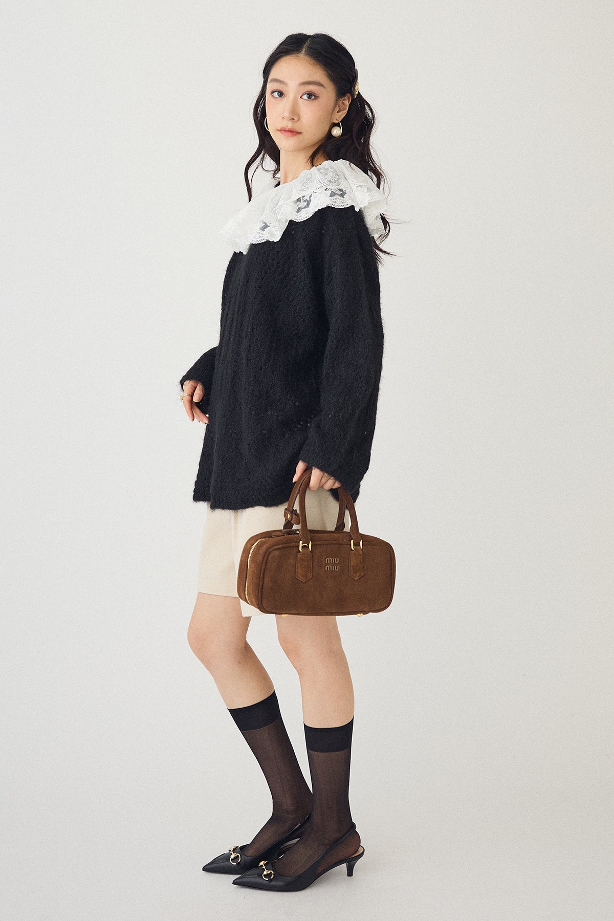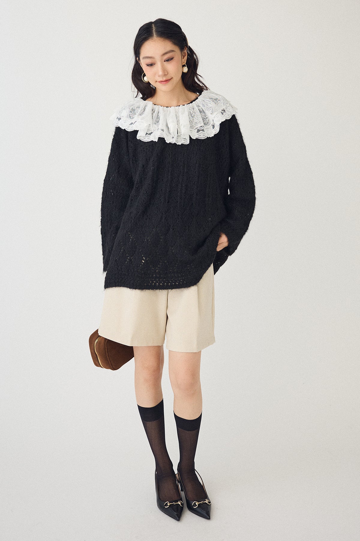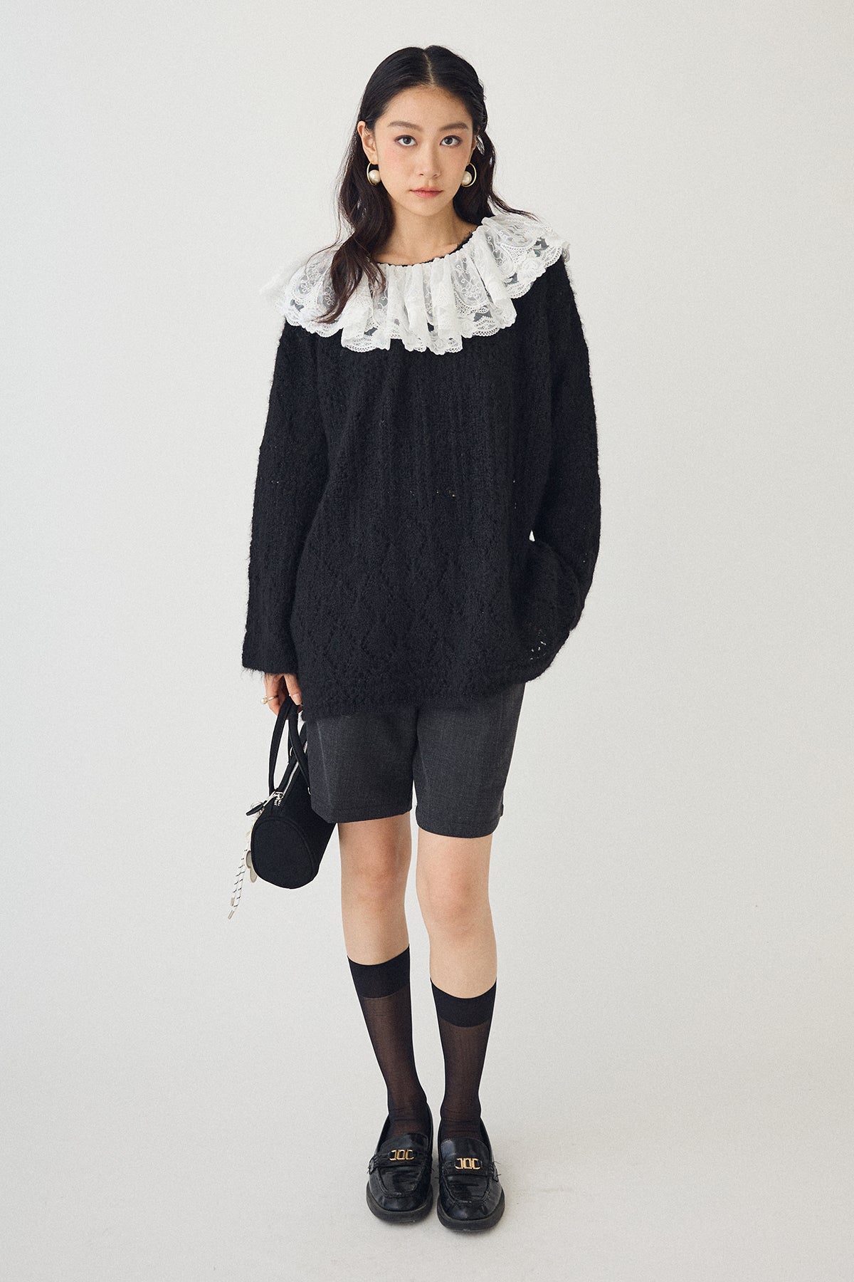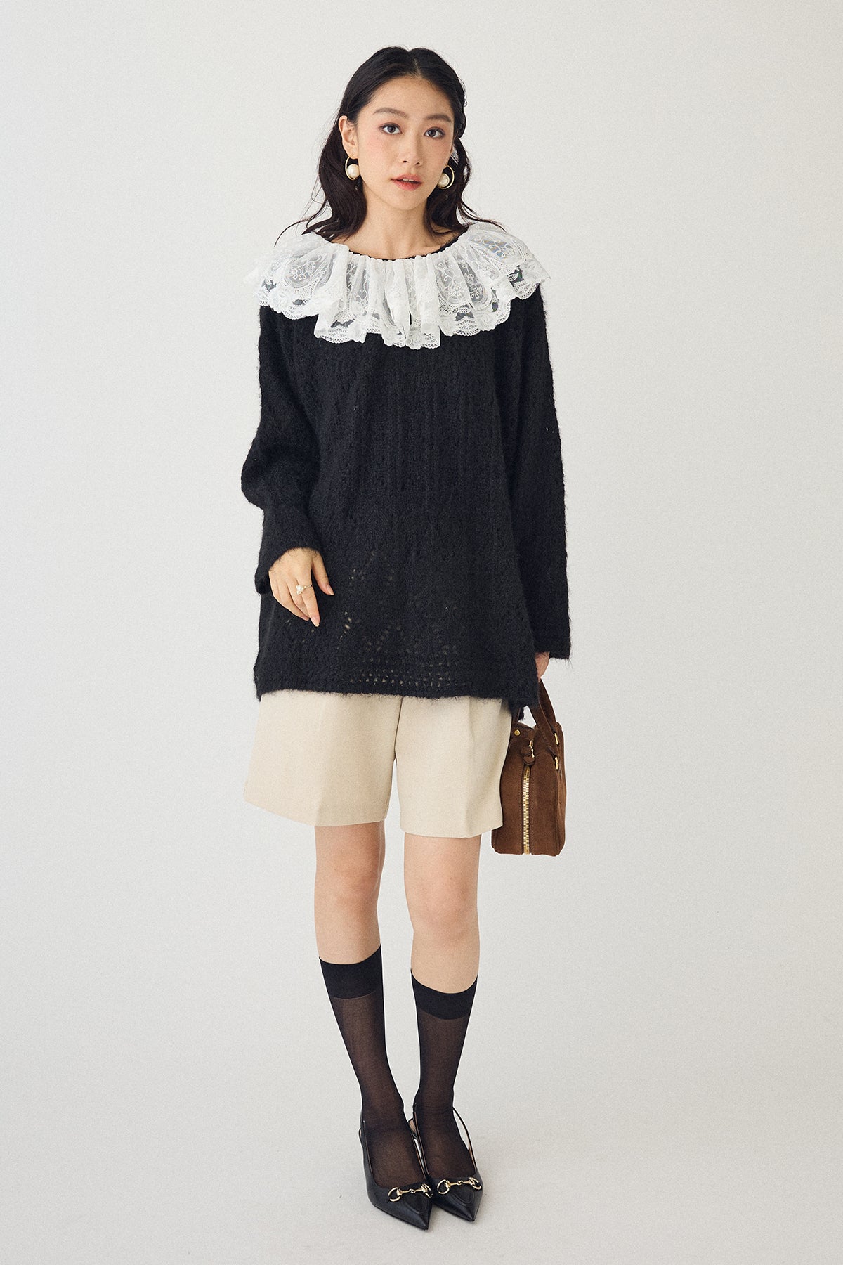 [予約/SET]ダブルレースカラードッキングニット+ウールタッチセンタープレスハーフパンツ(2set)