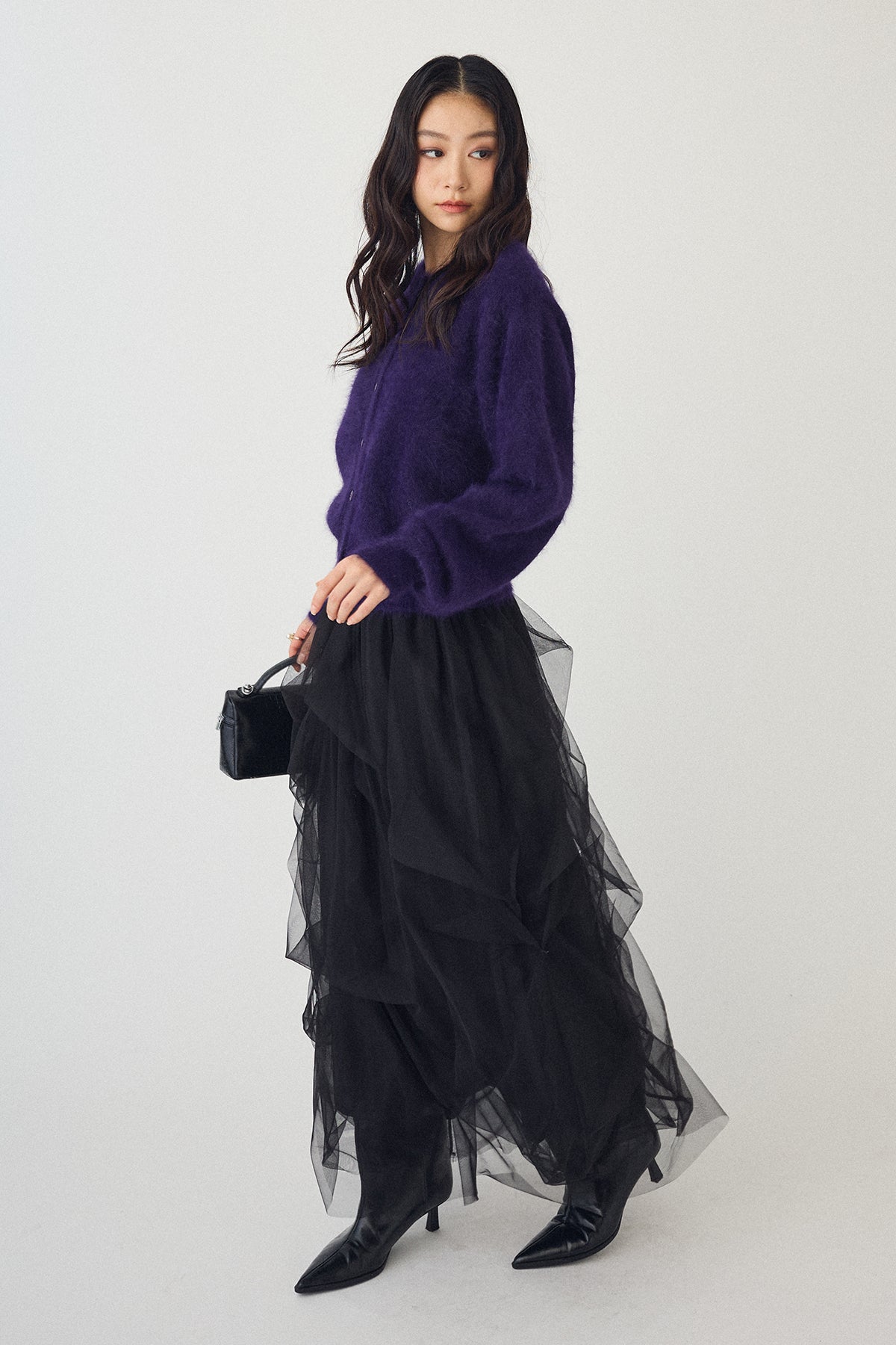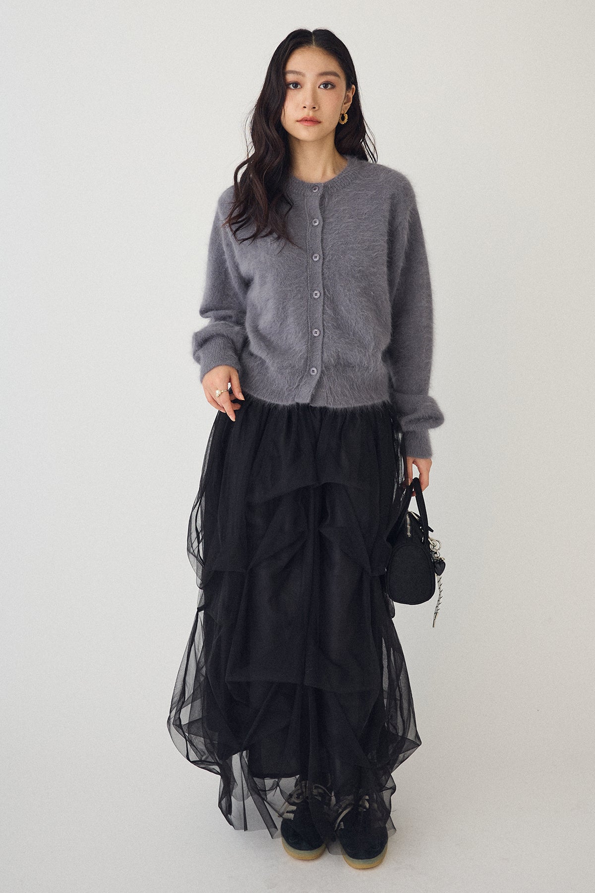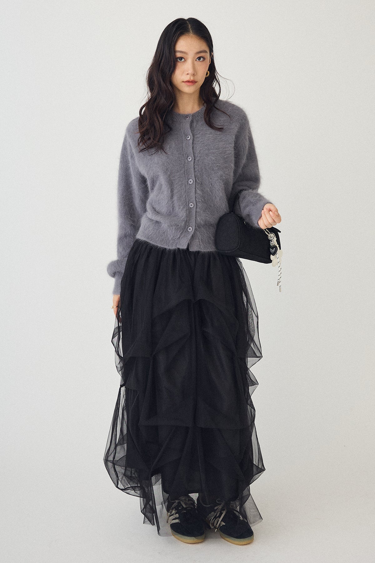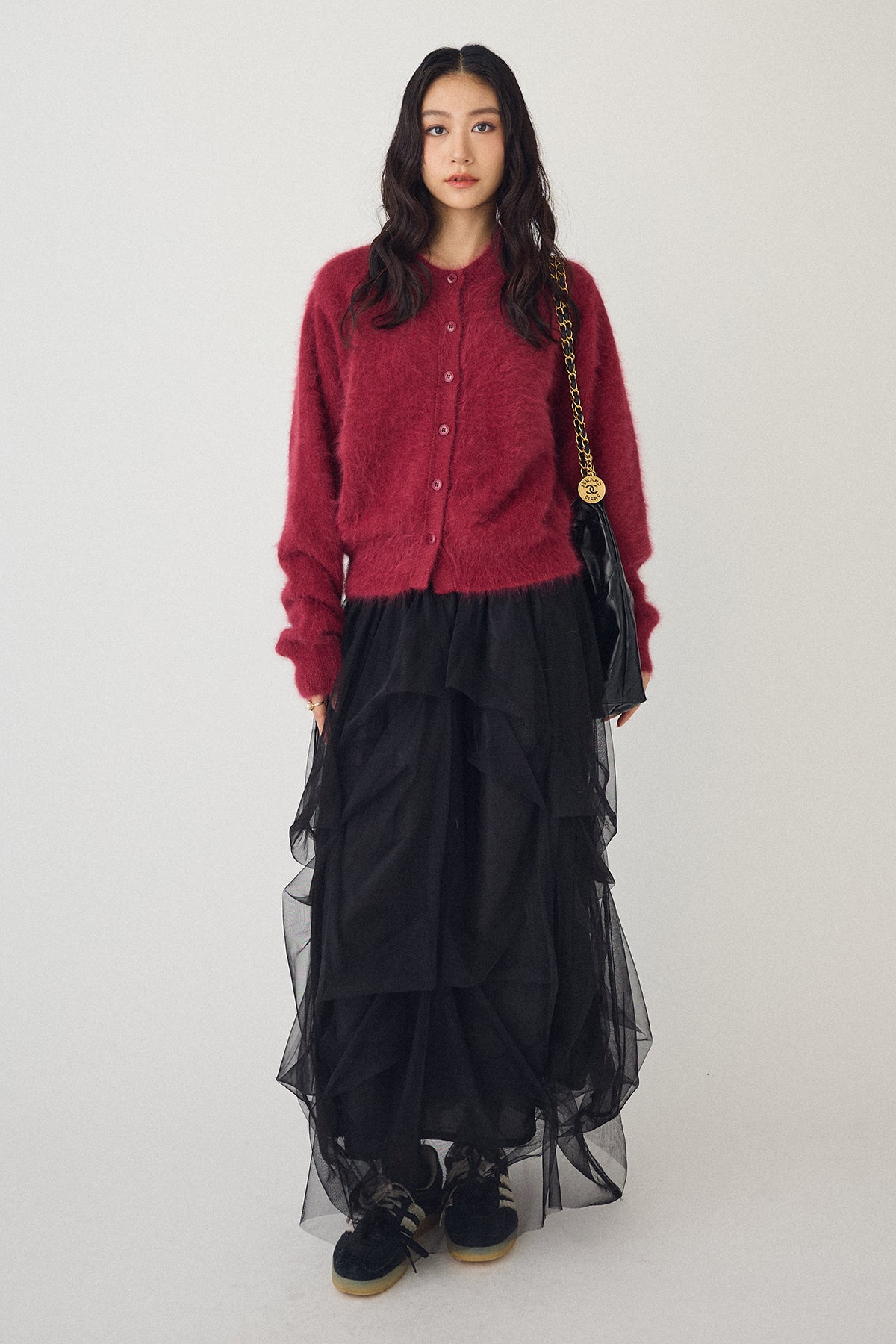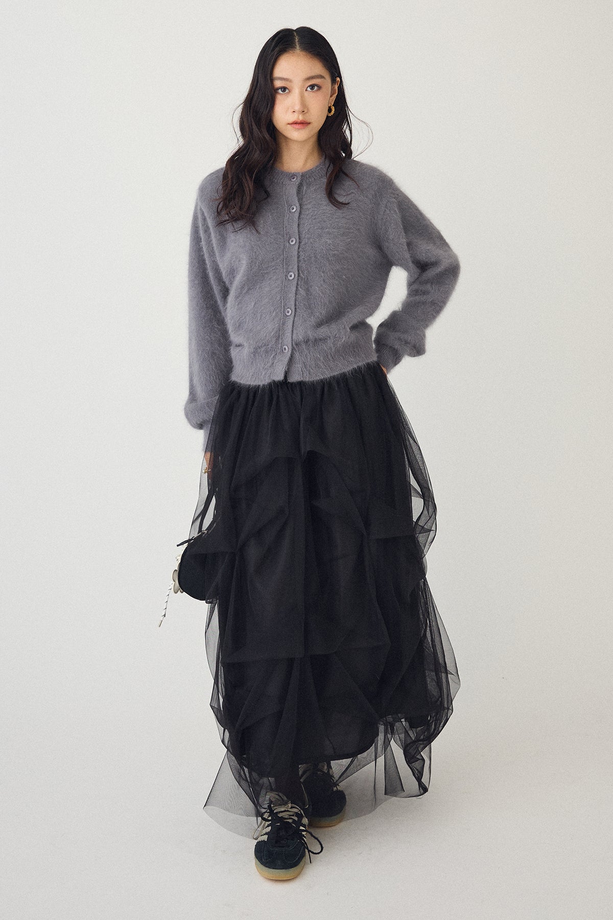 [予約/SET]ウールソフトカーディガン+マルチパターンタックチュールスカート(2set)