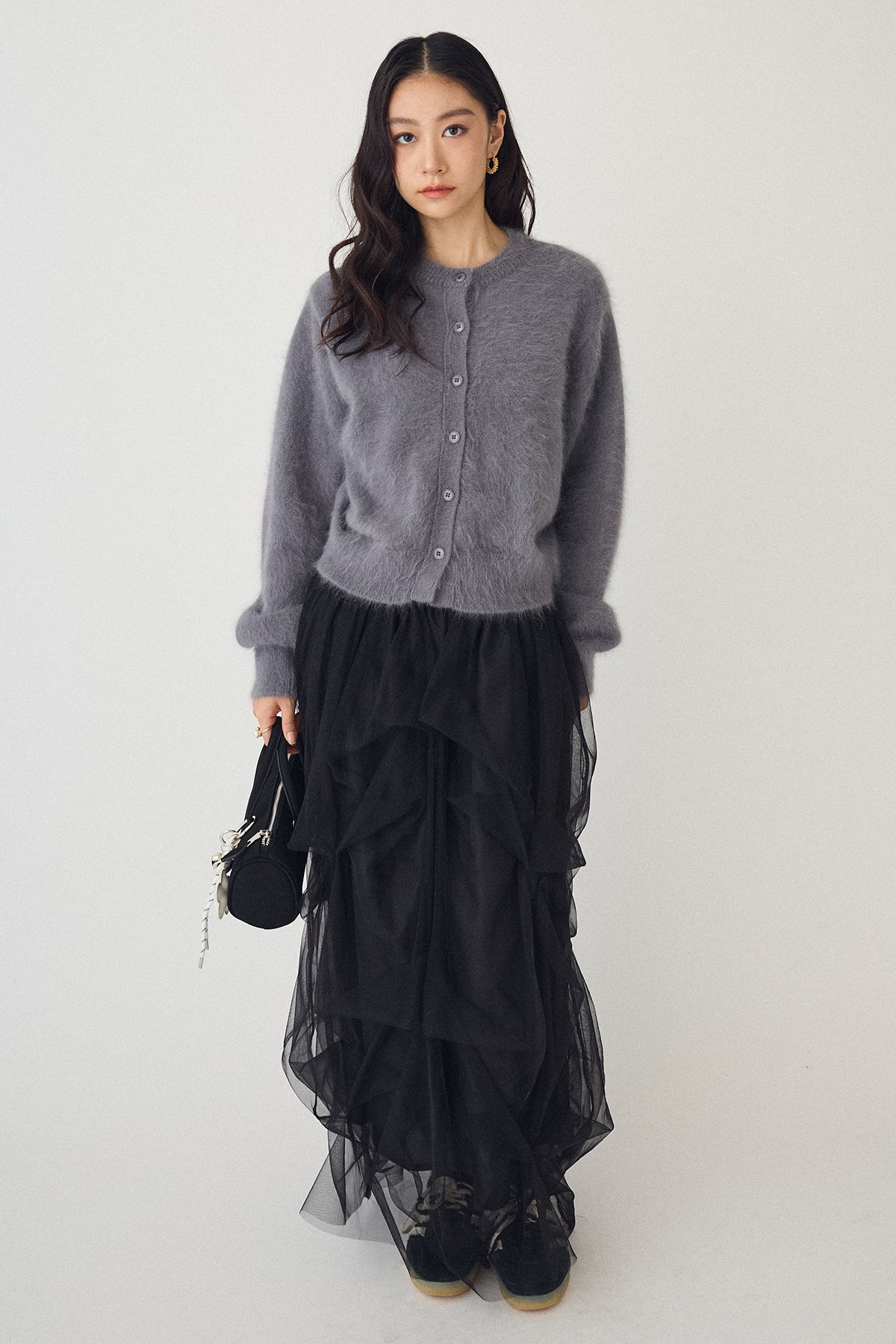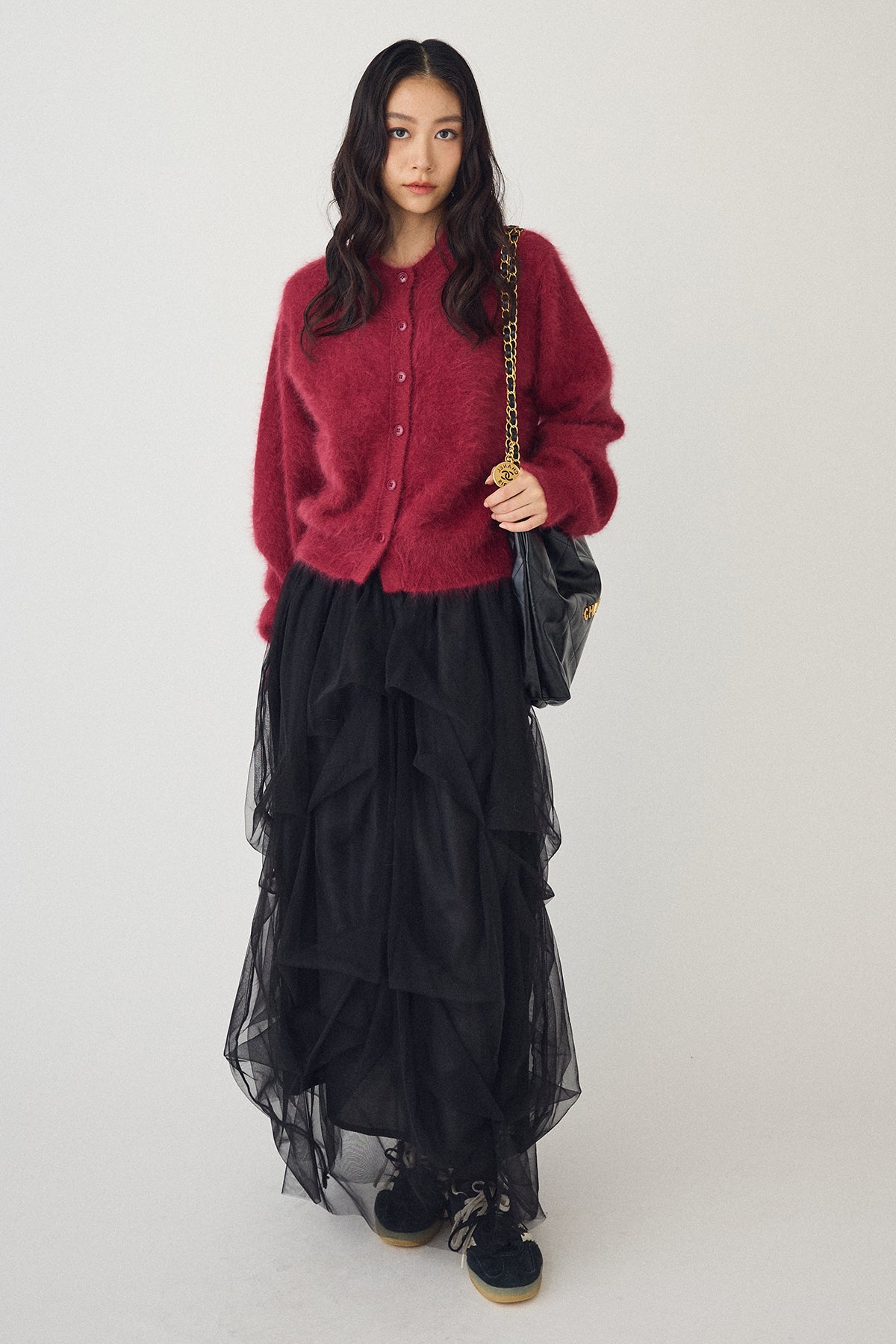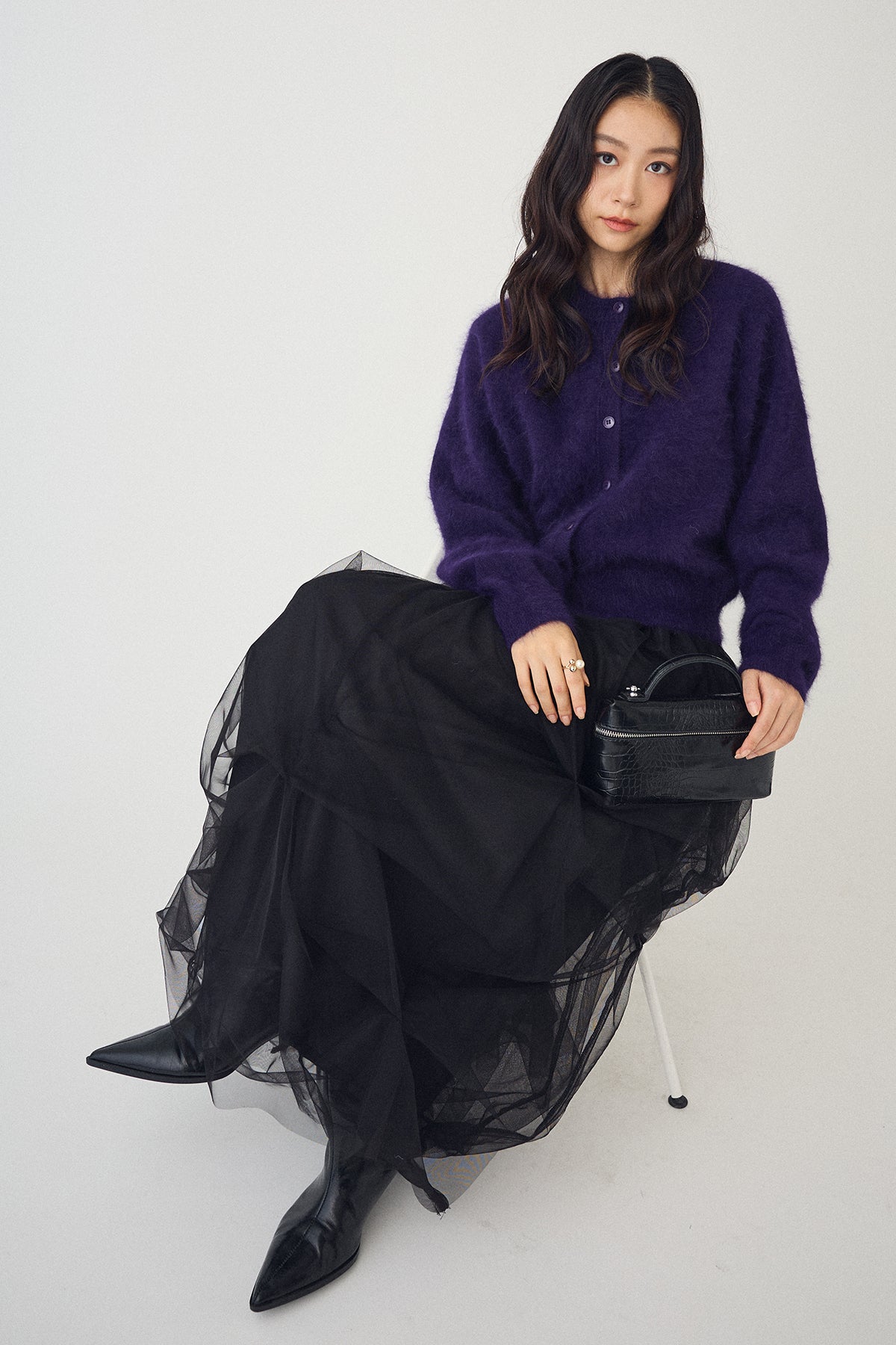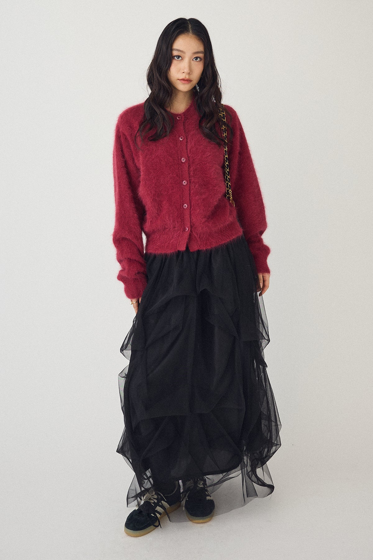 [予約/SET]ウールソフトカーディガン+マルチパターンタックチュールスカート(2set)