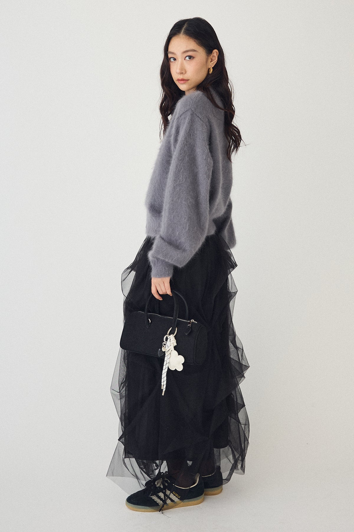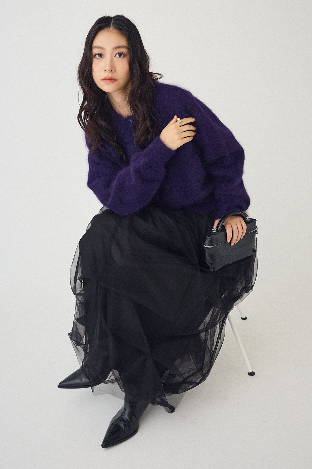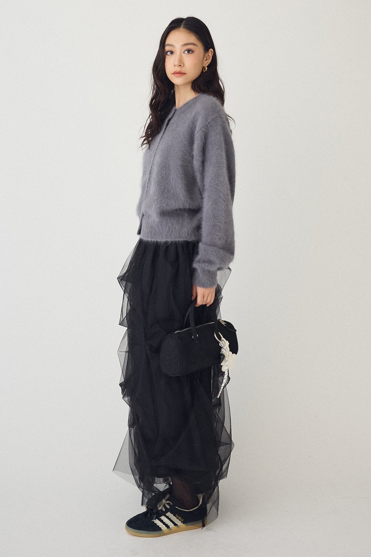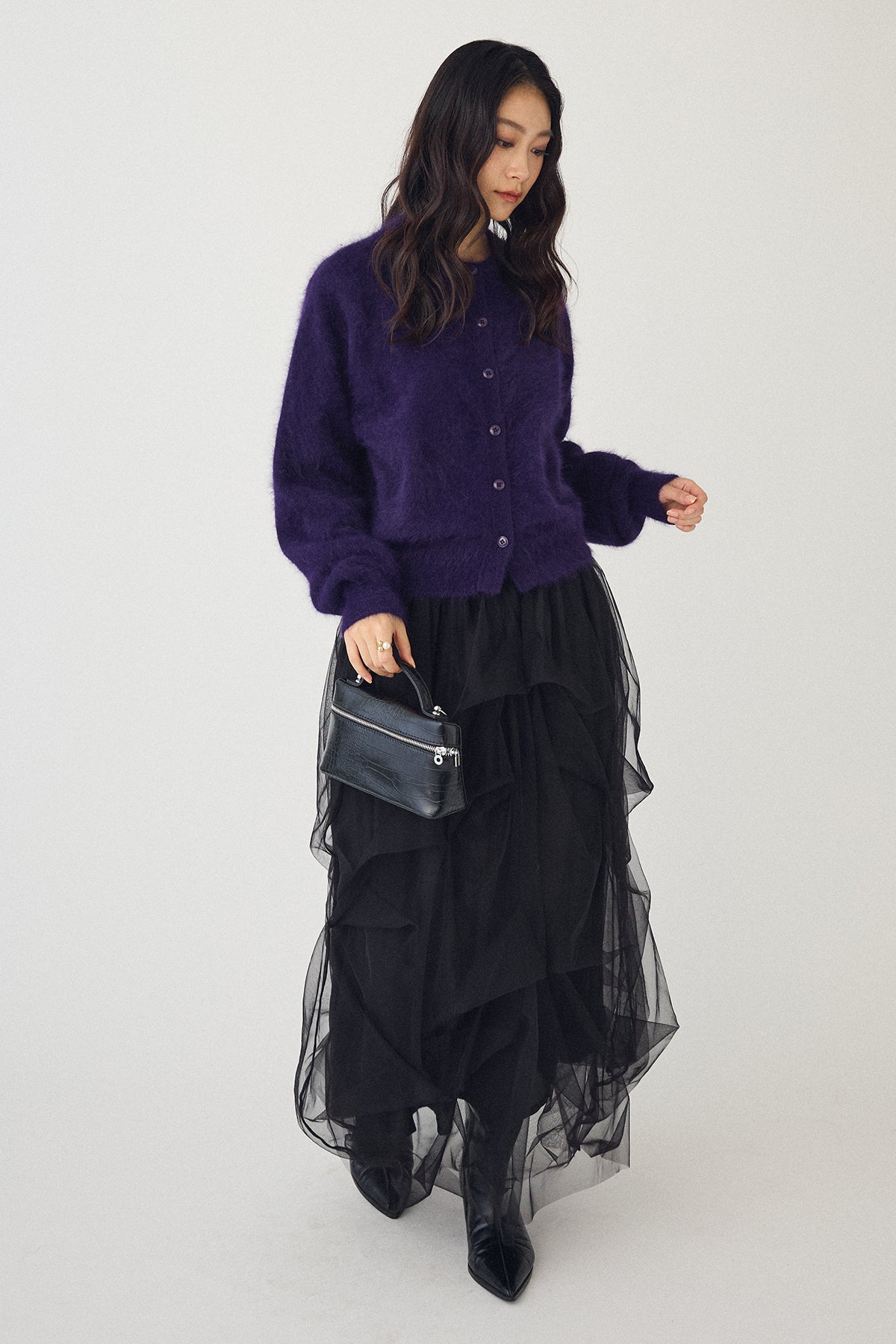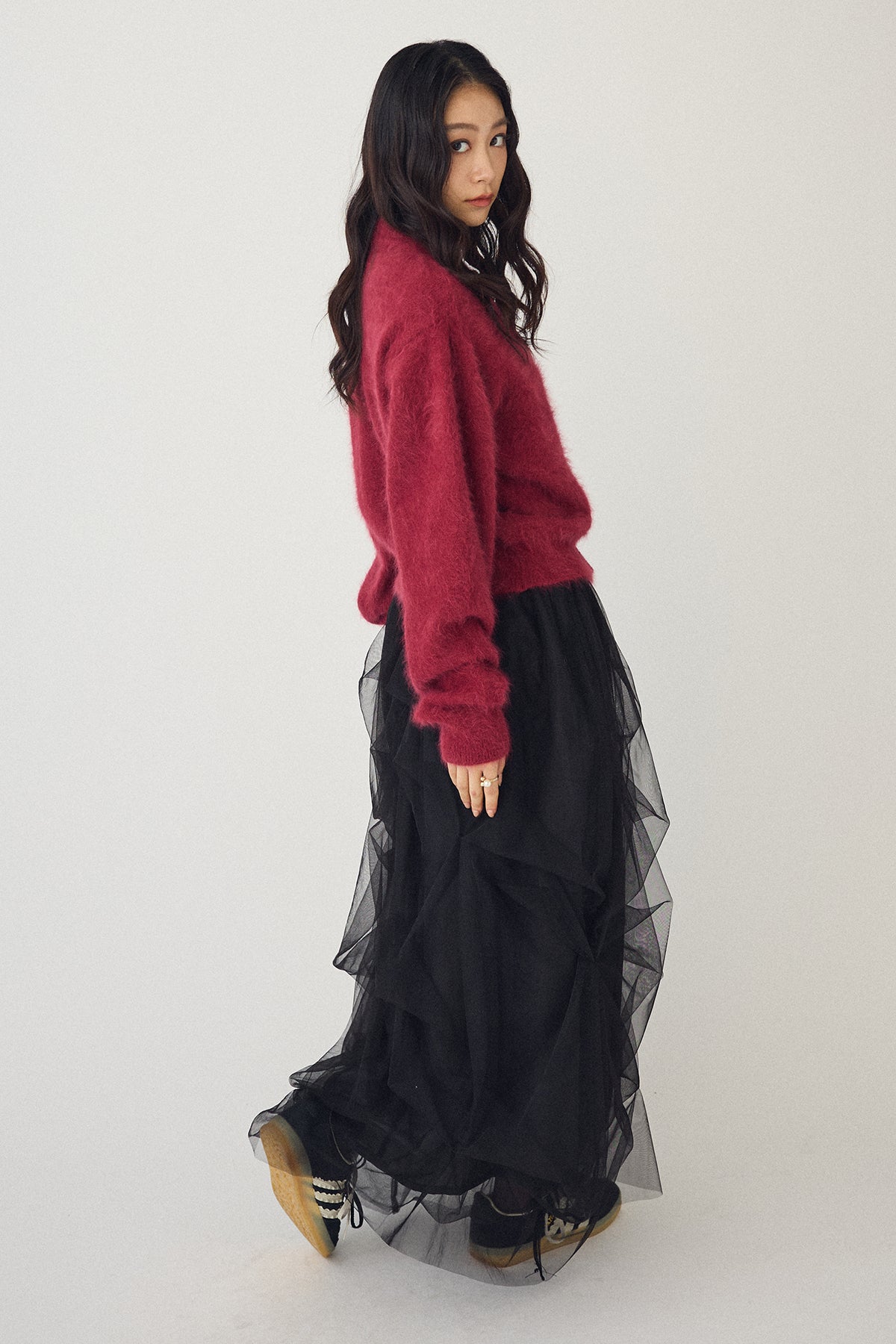 [予約/SET]ウールソフトカーディガン+マルチパターンタックチュールスカート(2set)