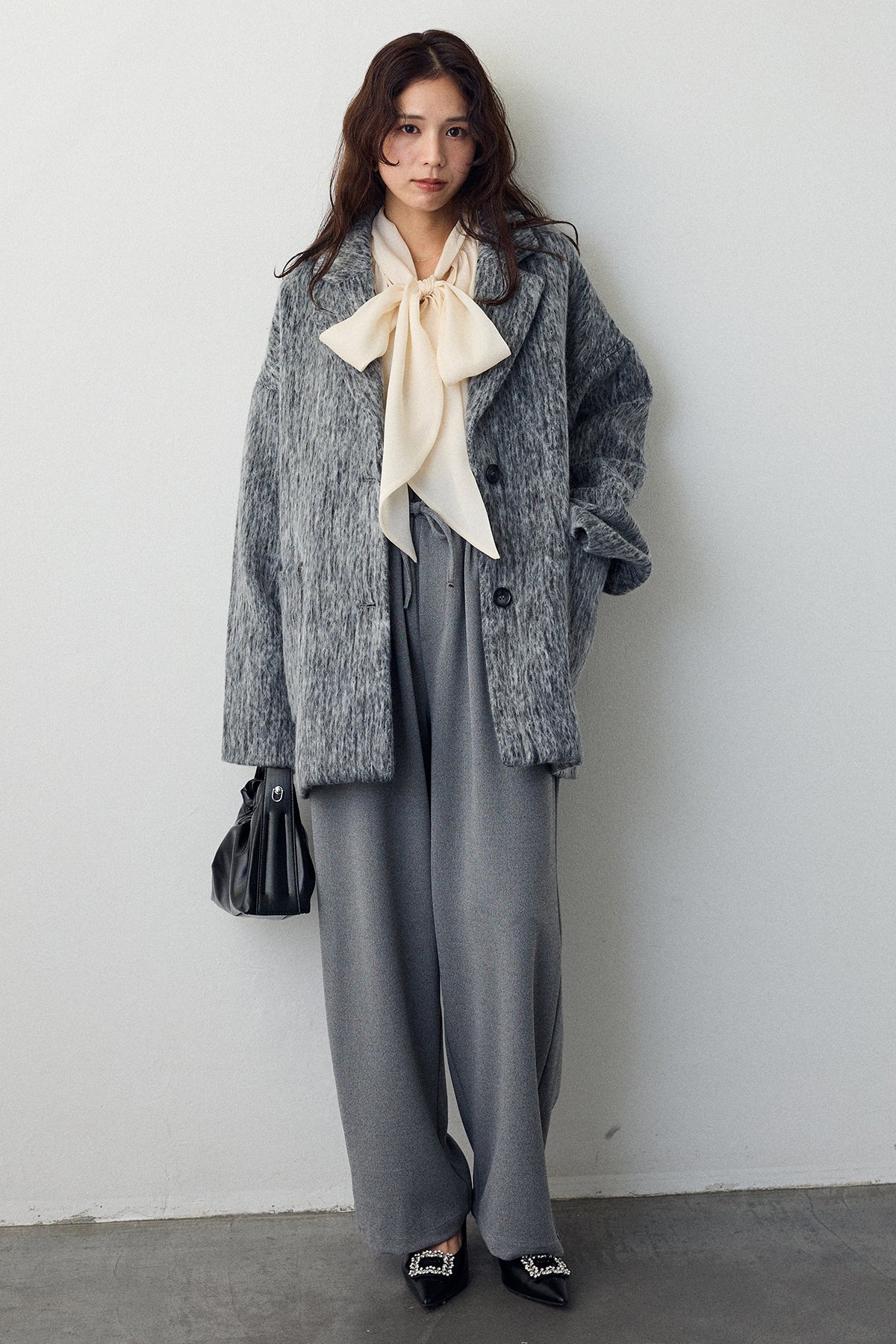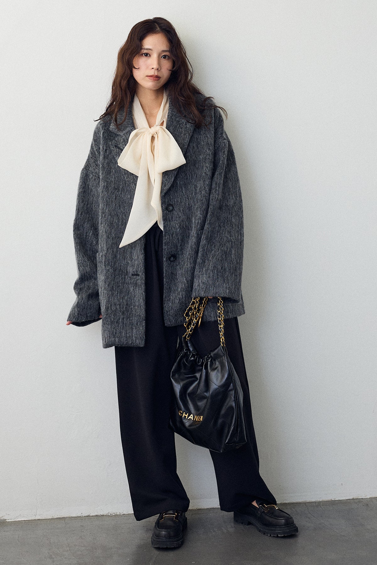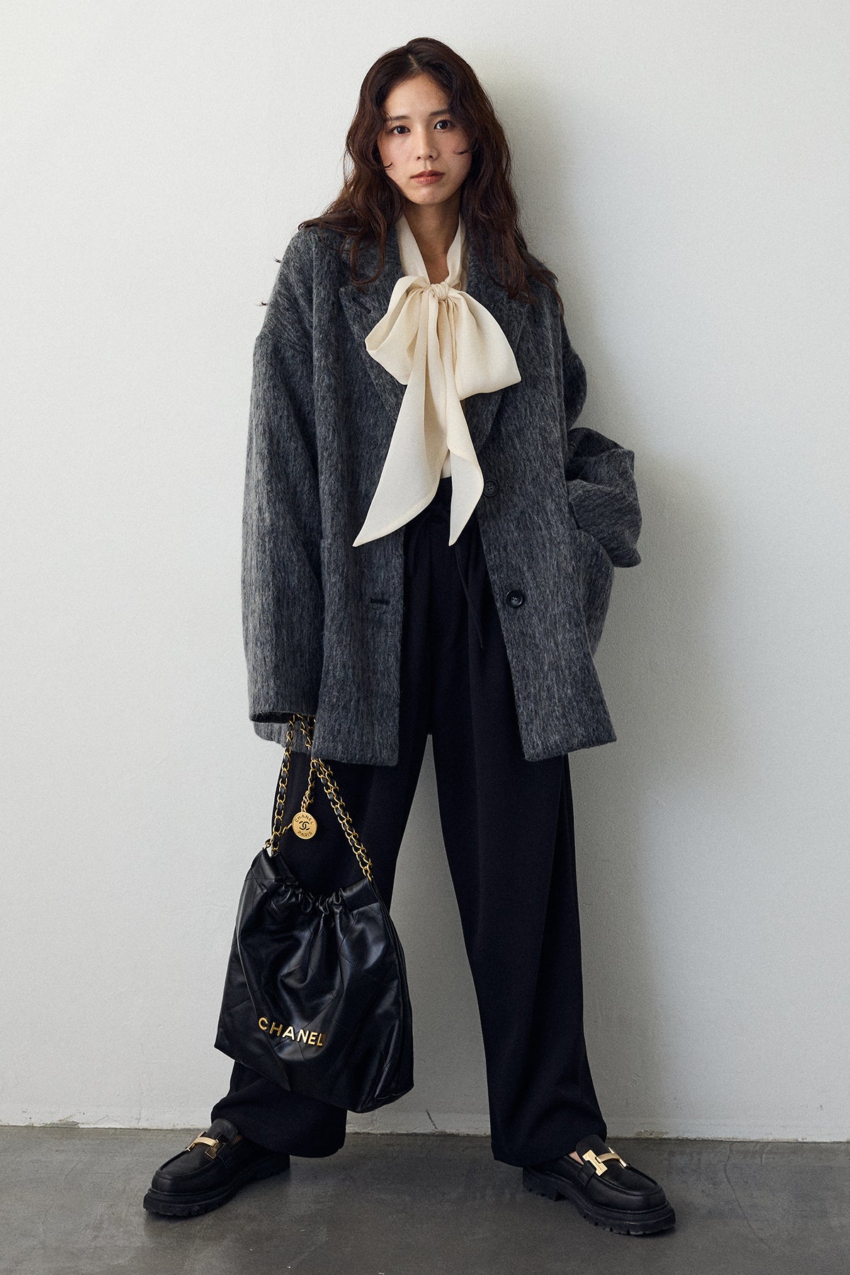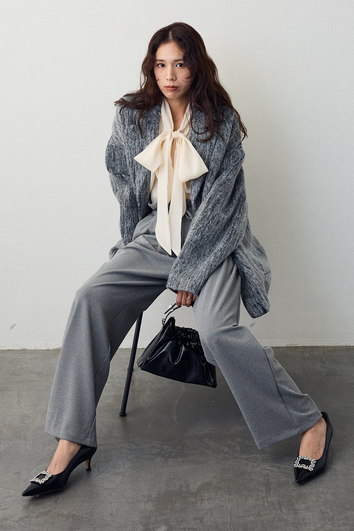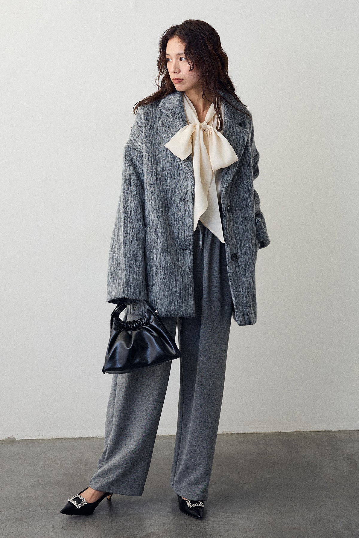 [予約/SET]前後2wayリボンシアーブラウス+シャギーミドル丈コート+2タック美シルエットパンツ(3set)